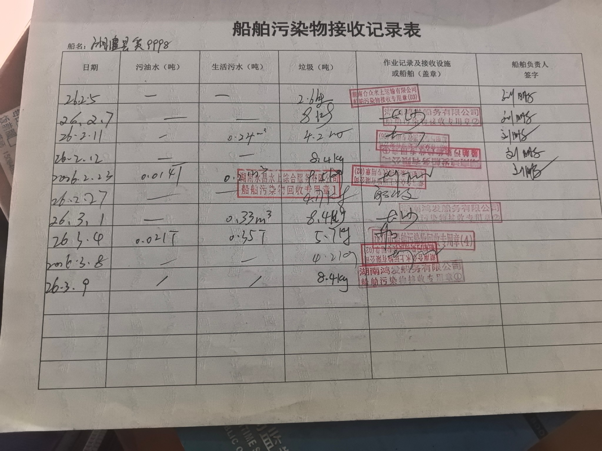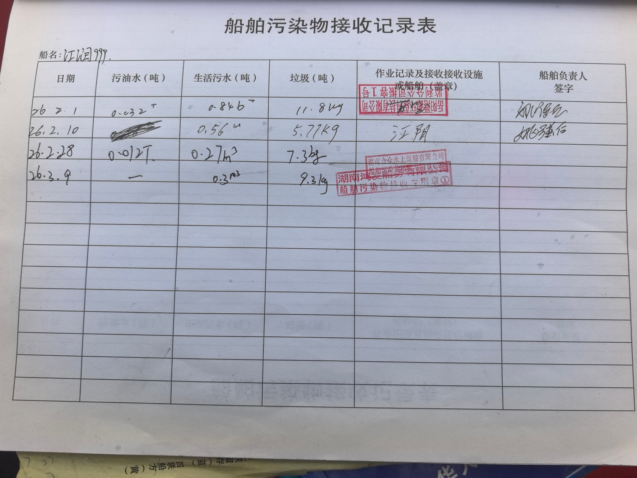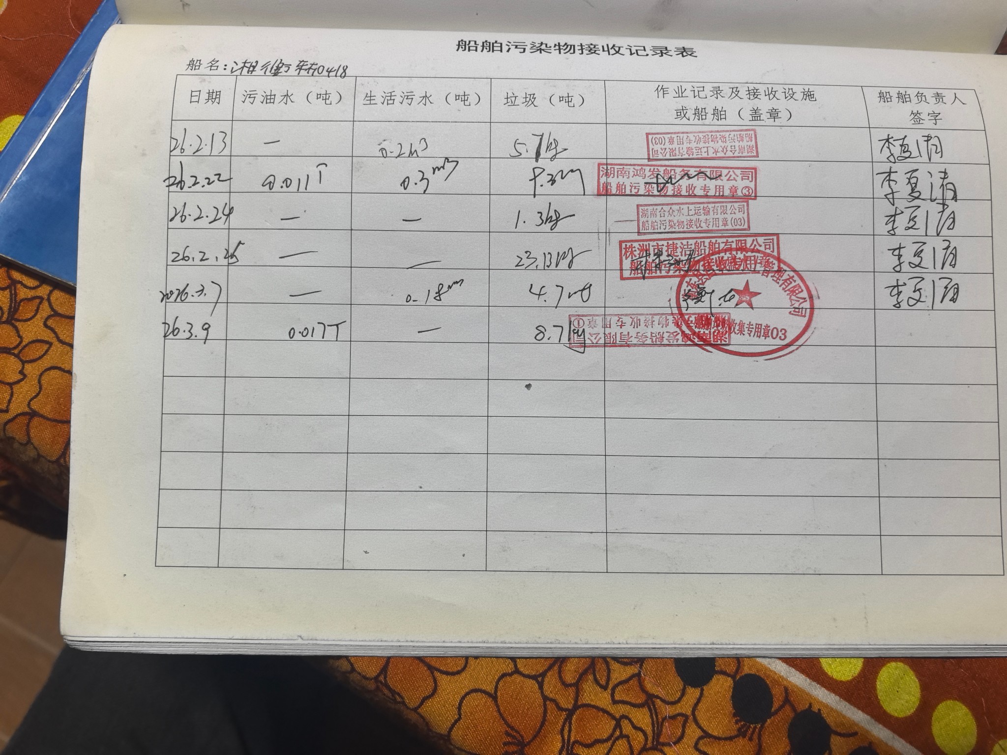 登船台账