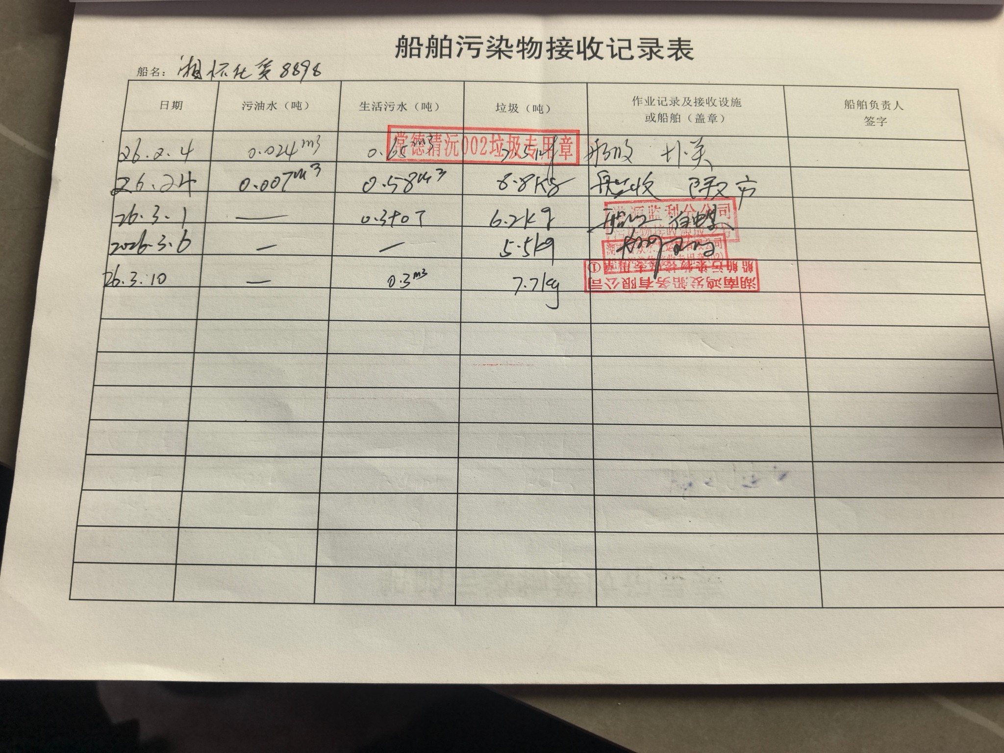 登船台账