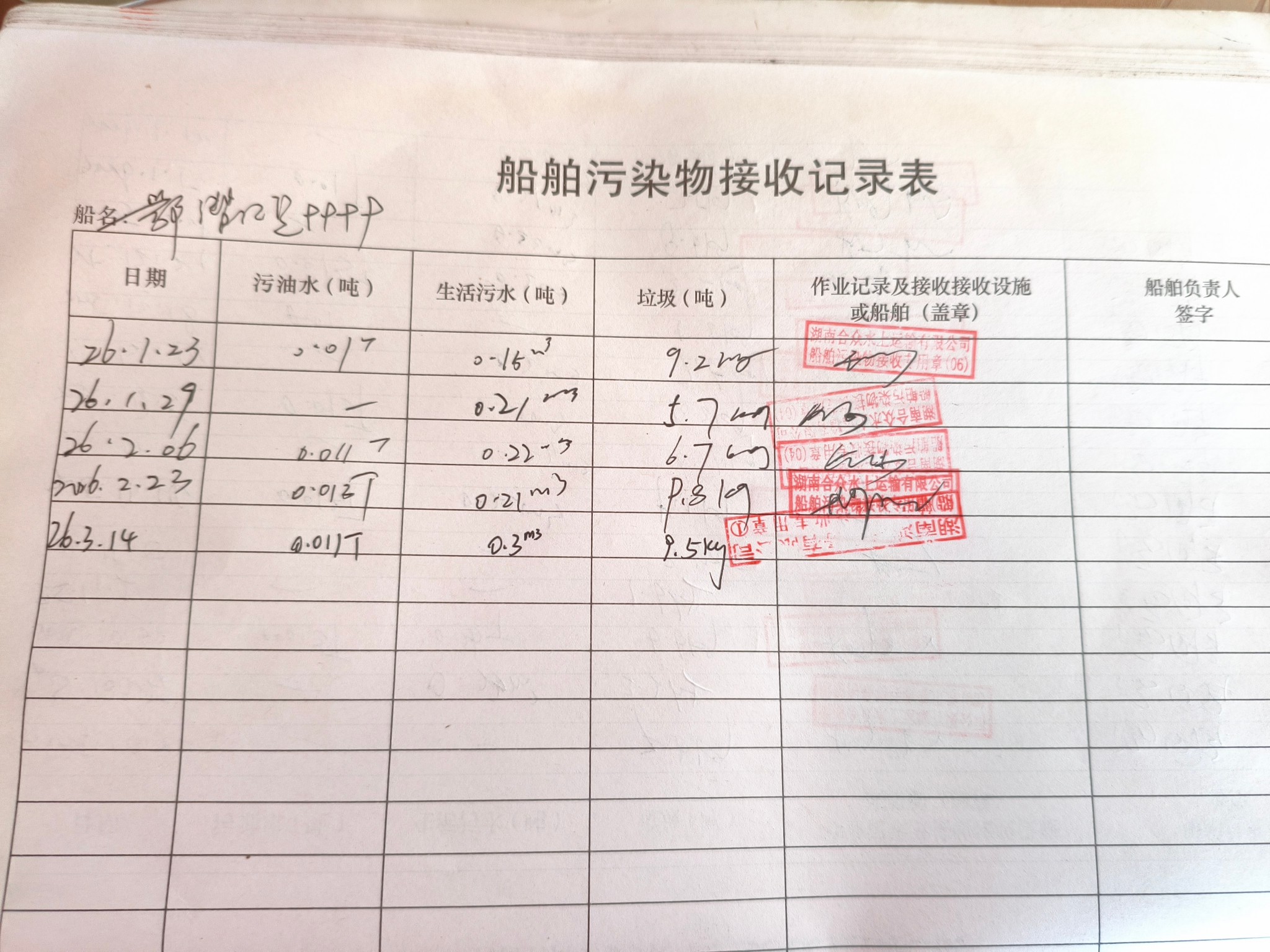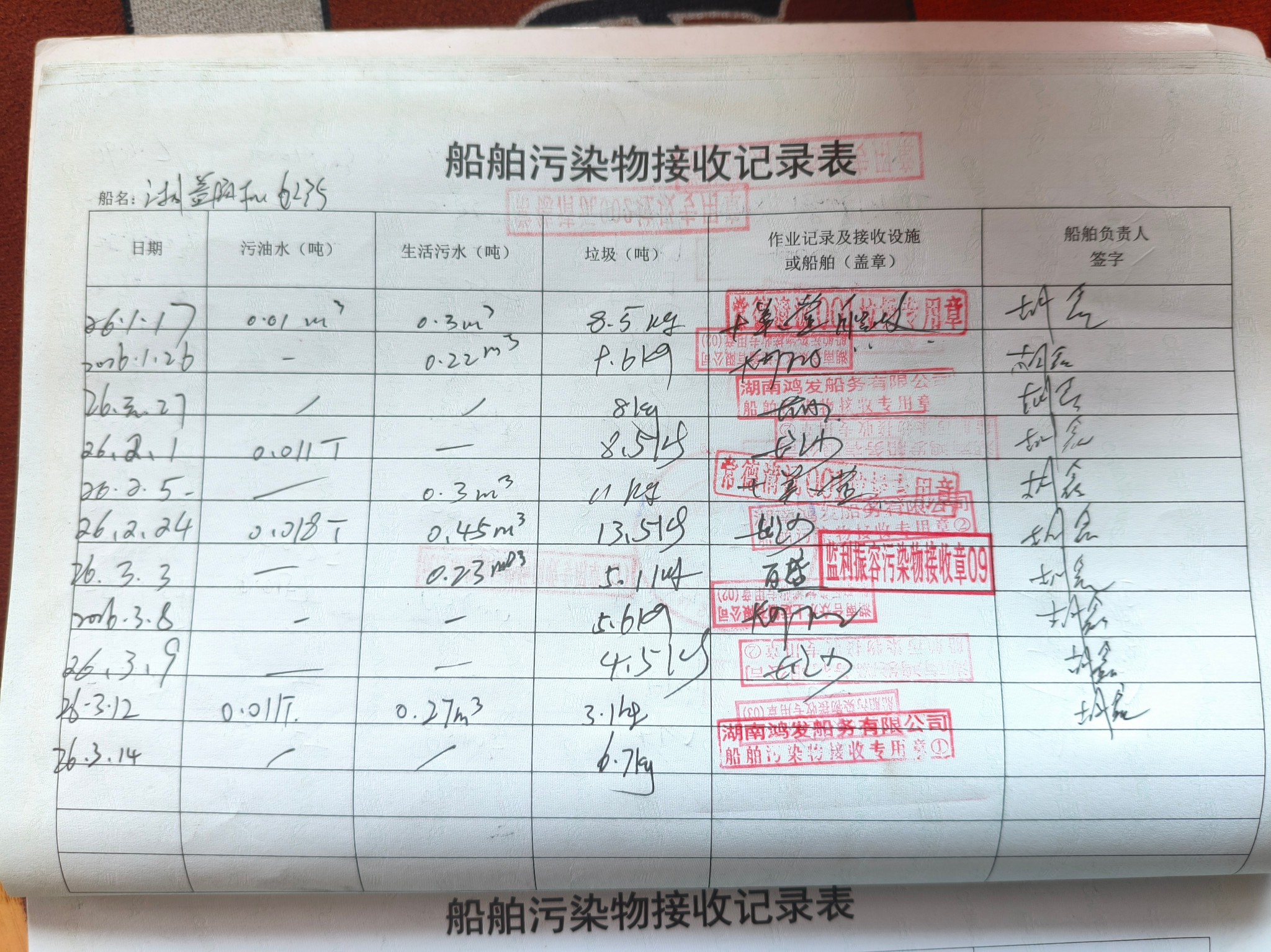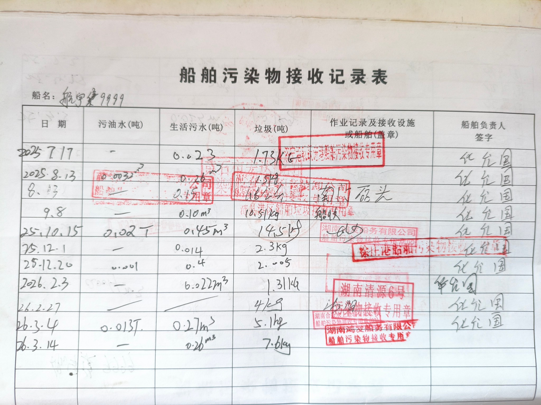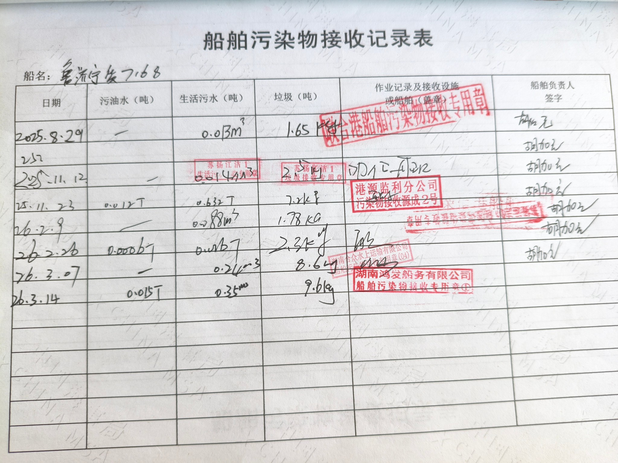 登船台账