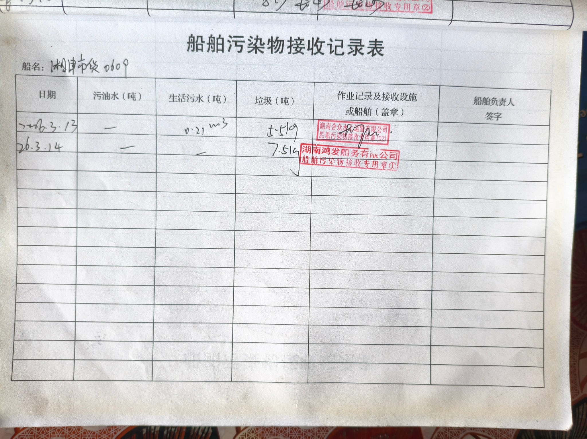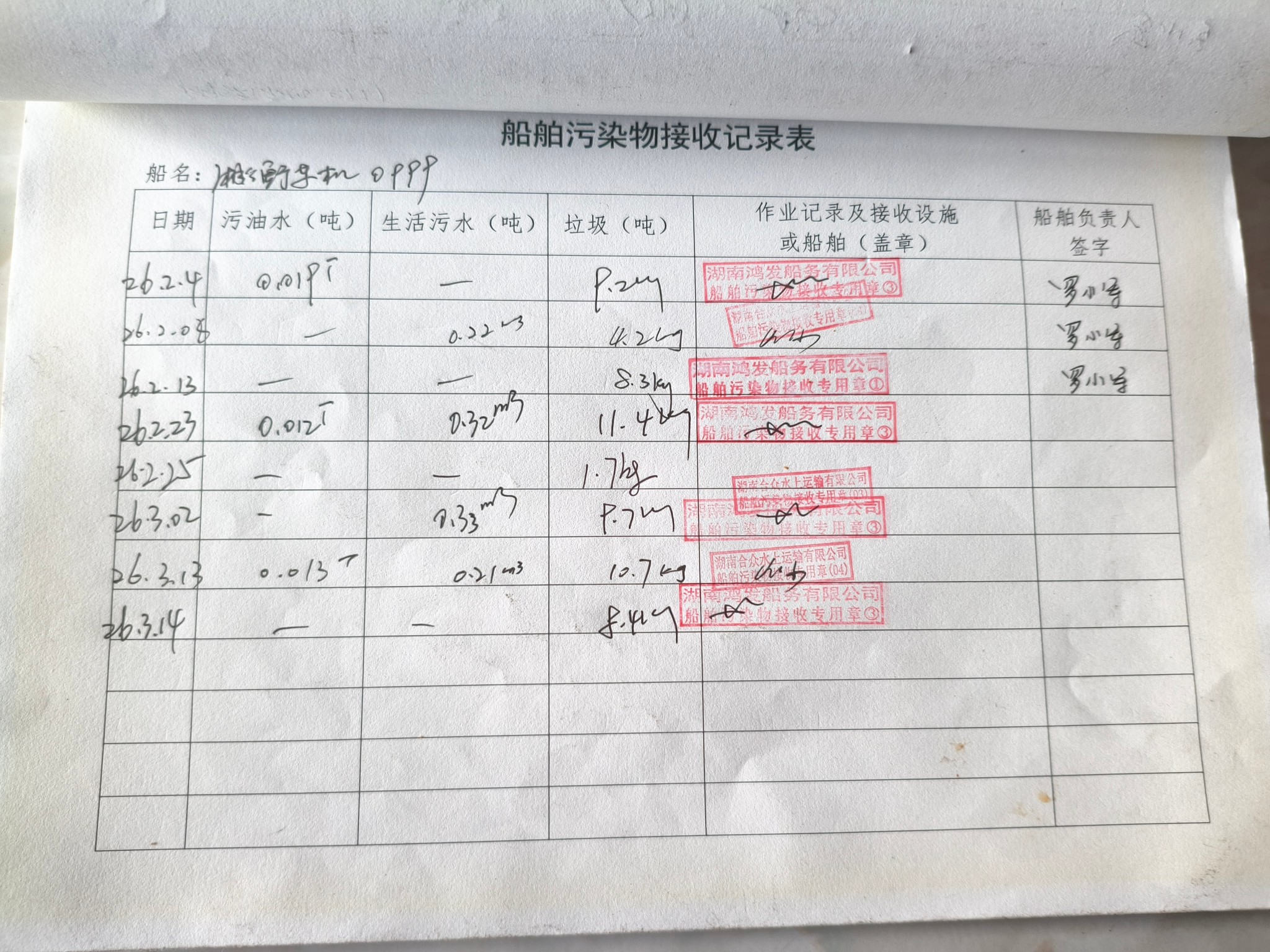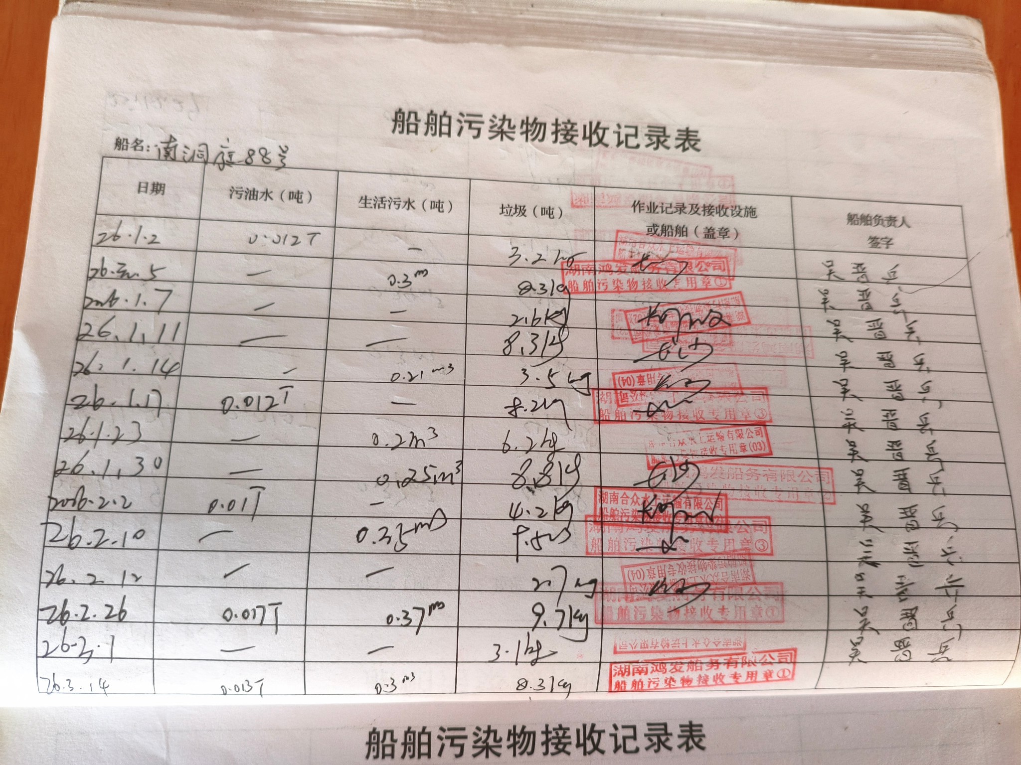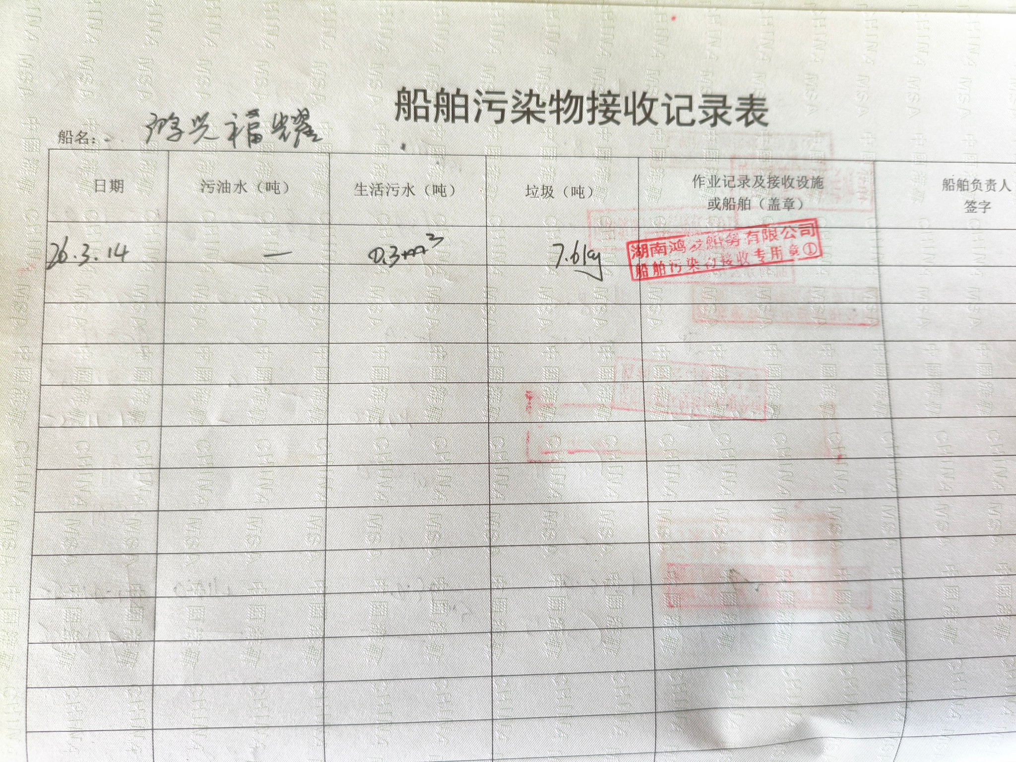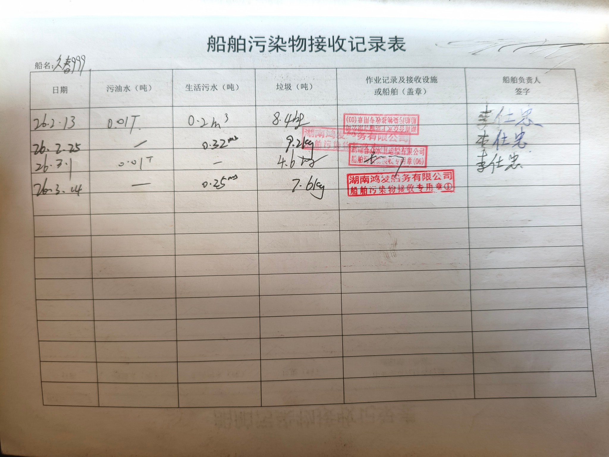 登船台账