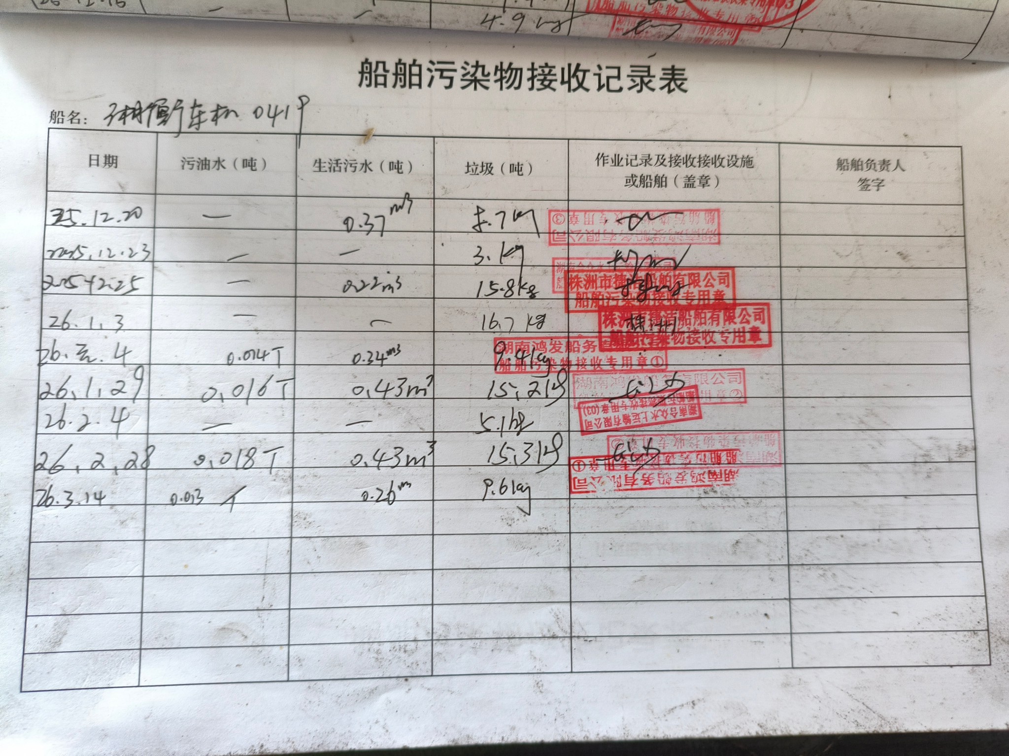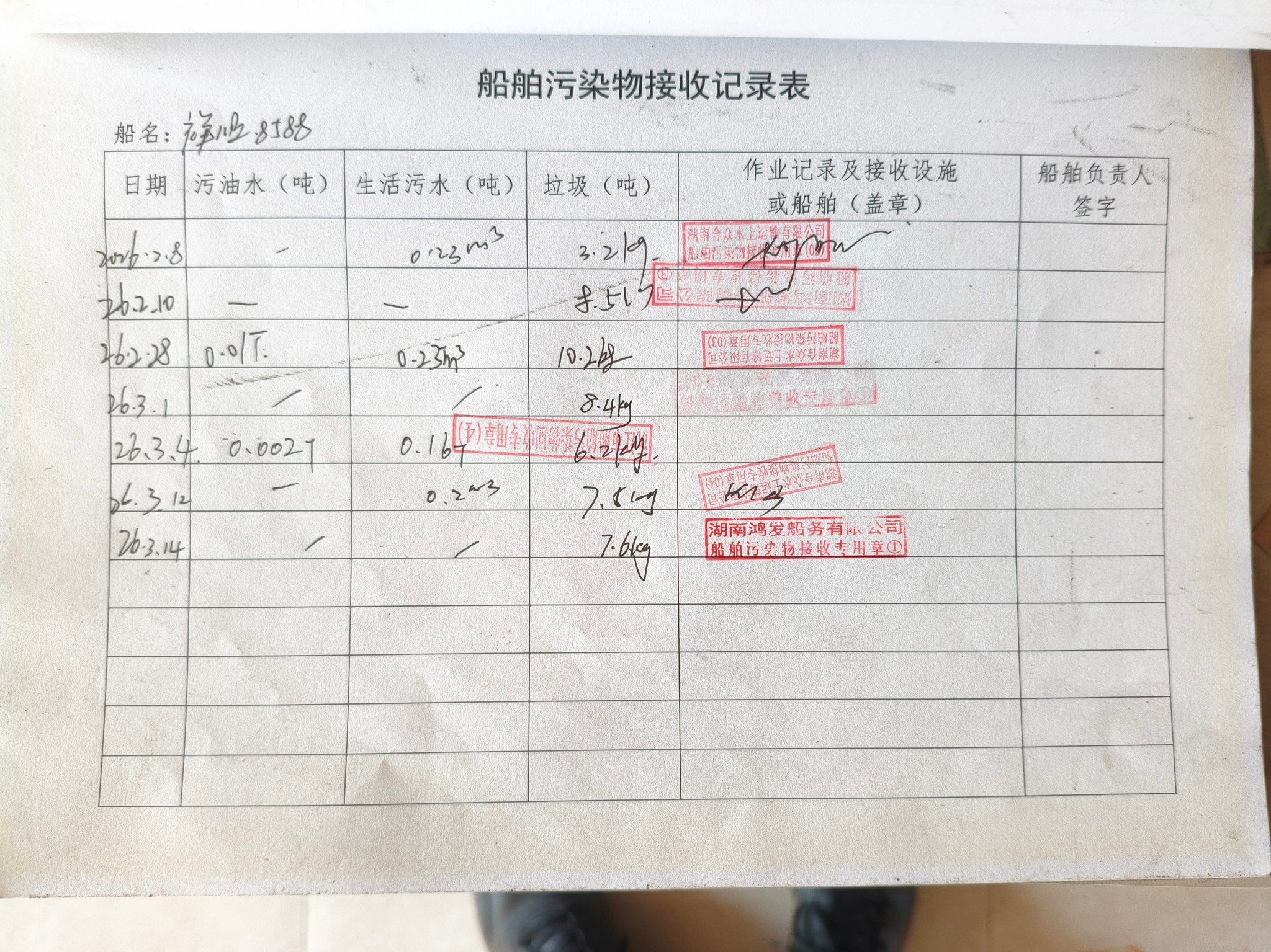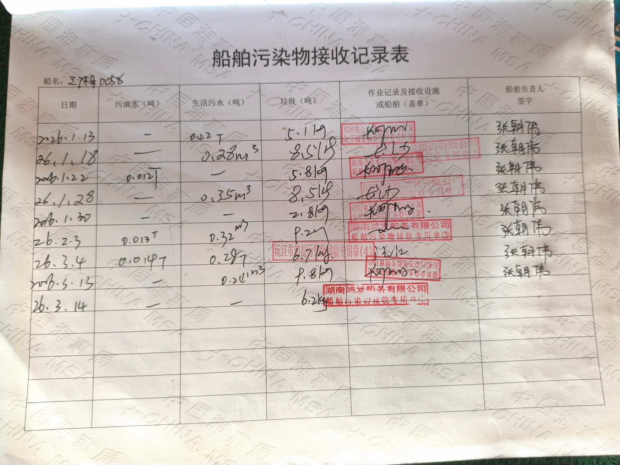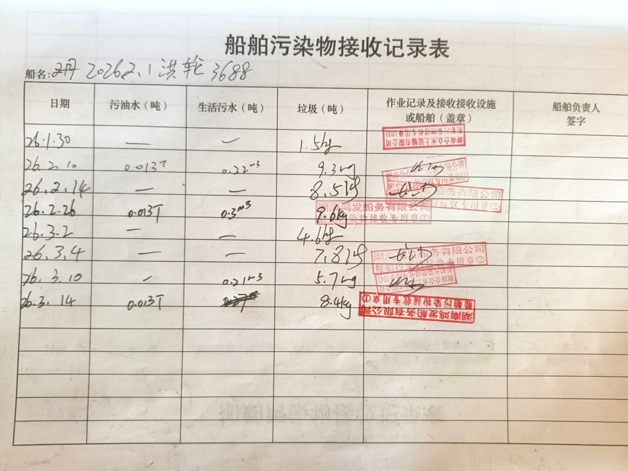 登船台账