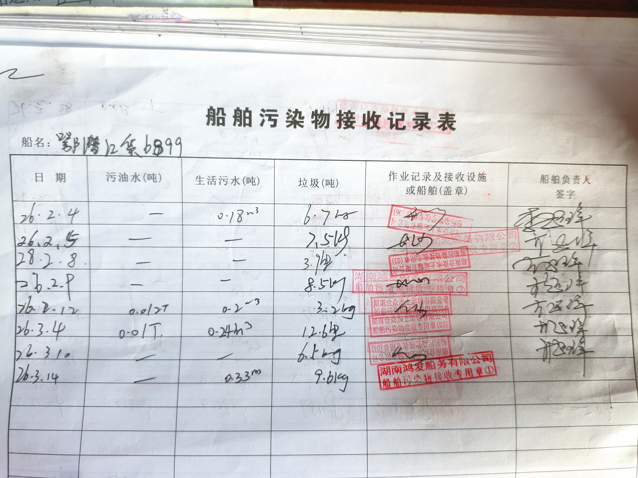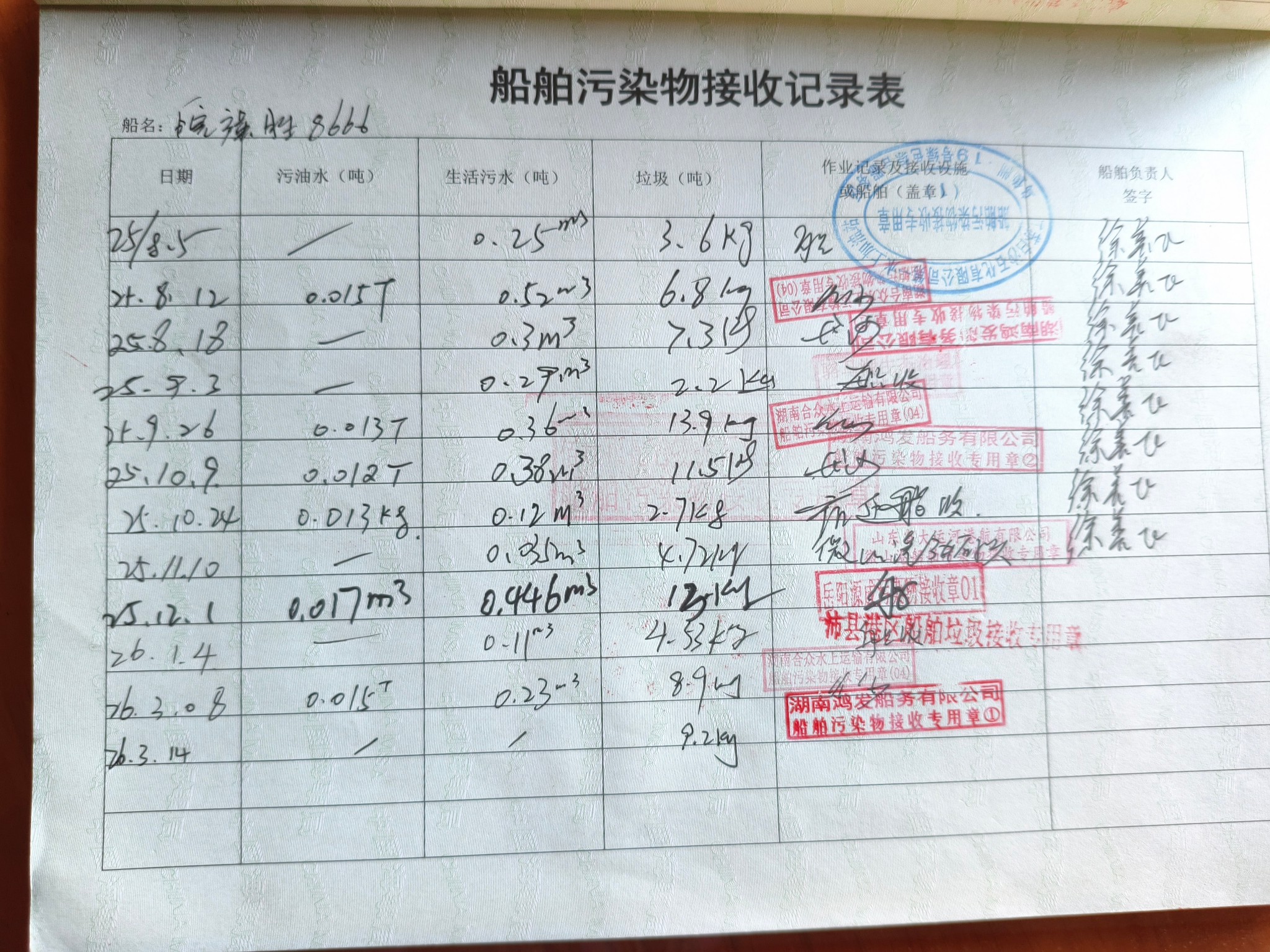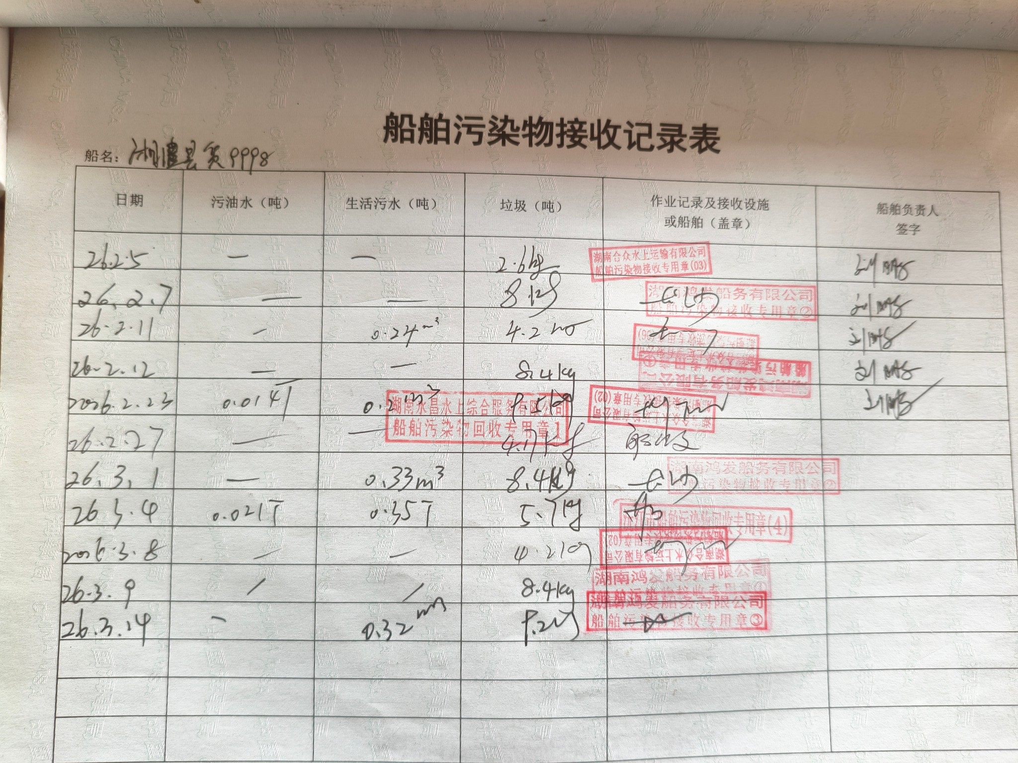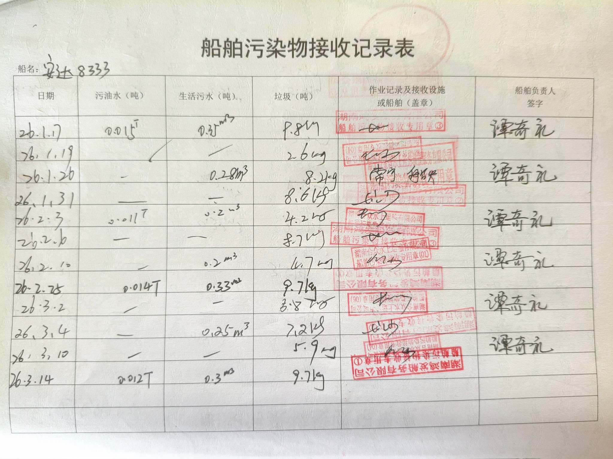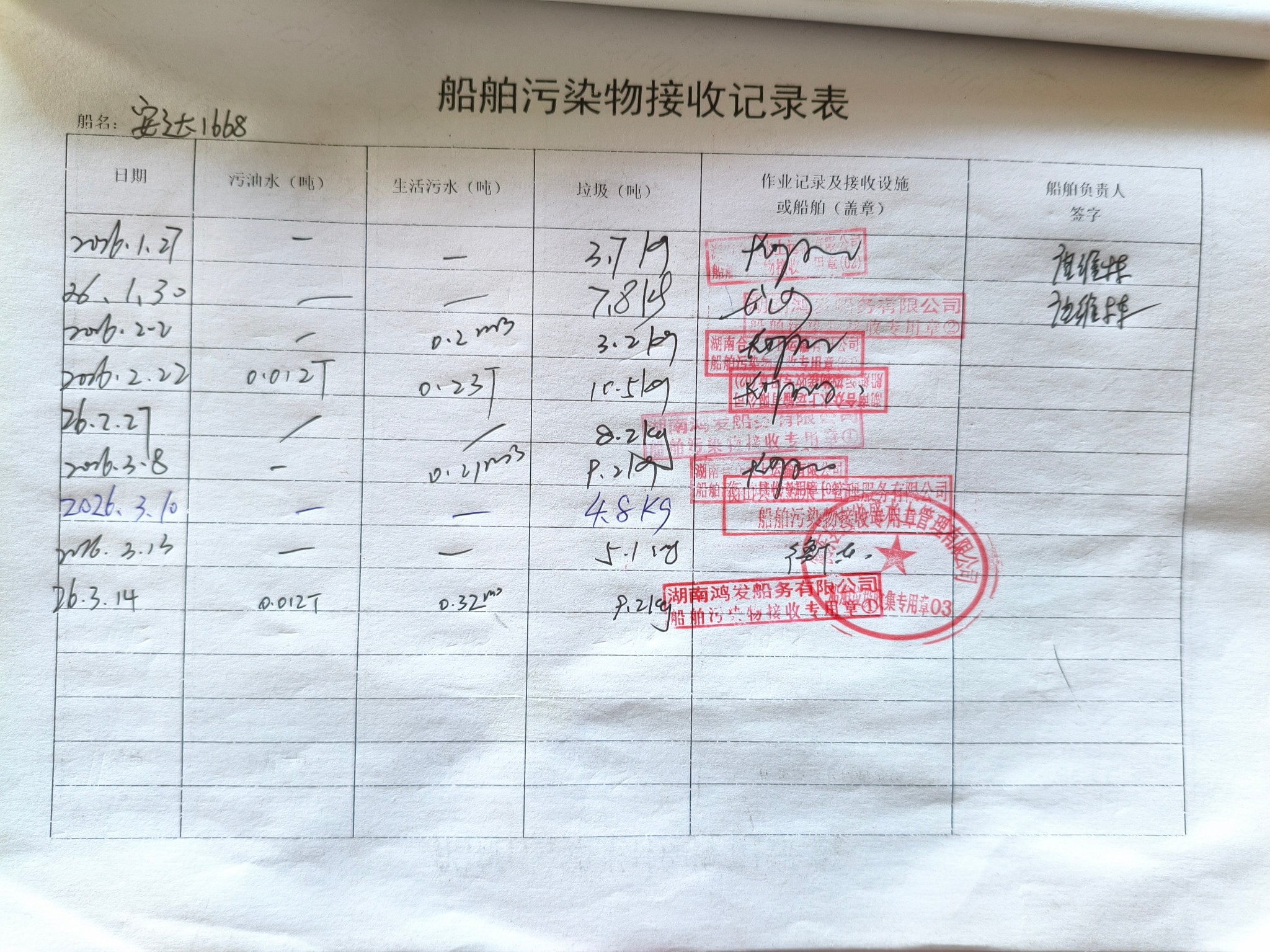 登船台账