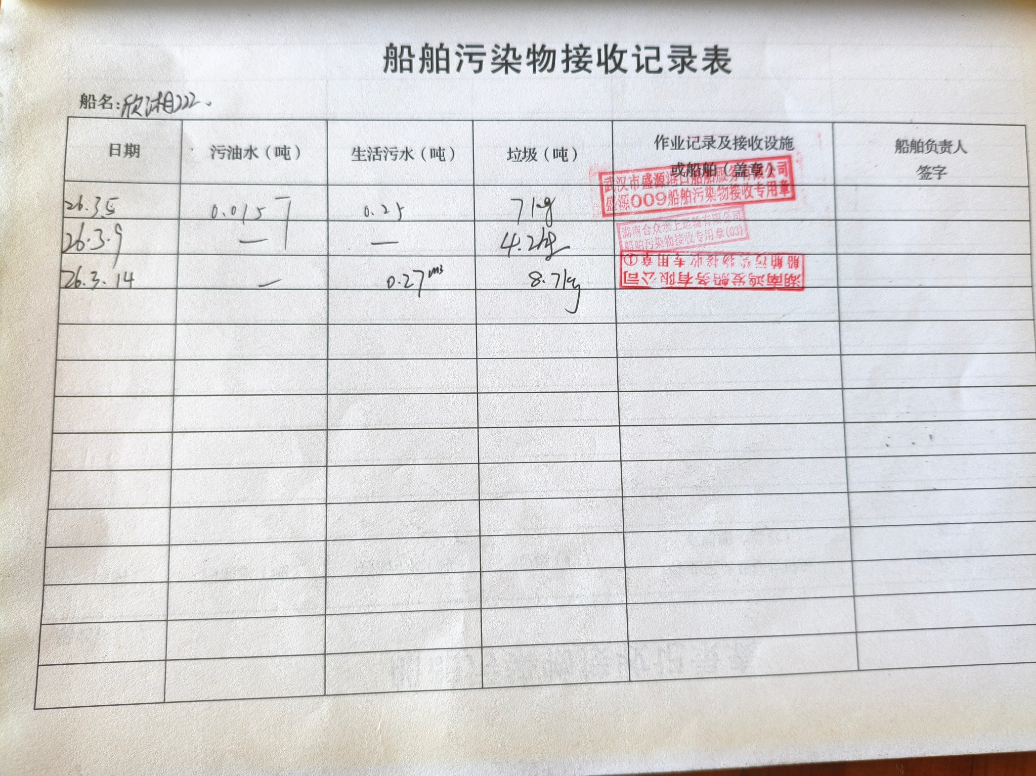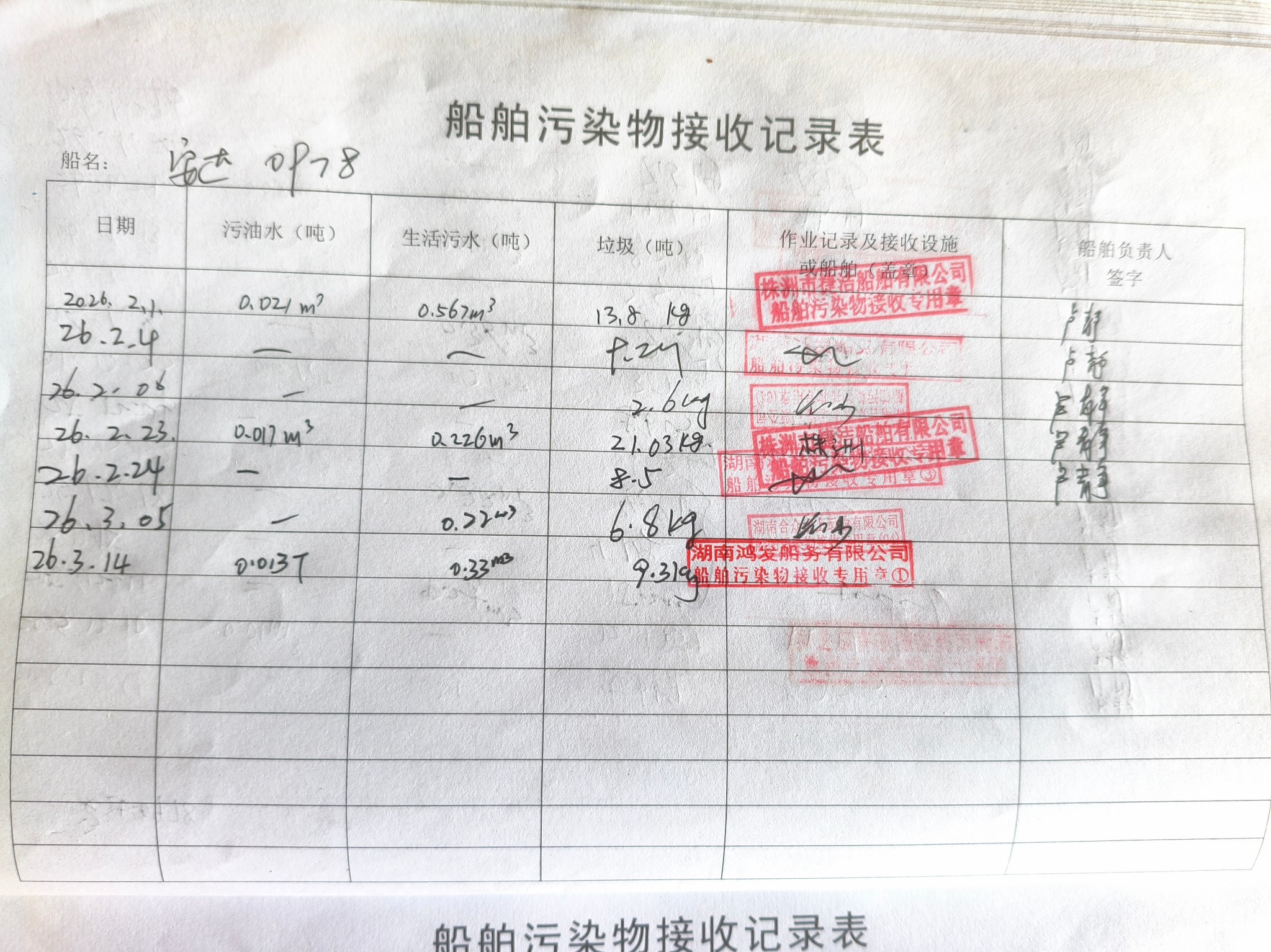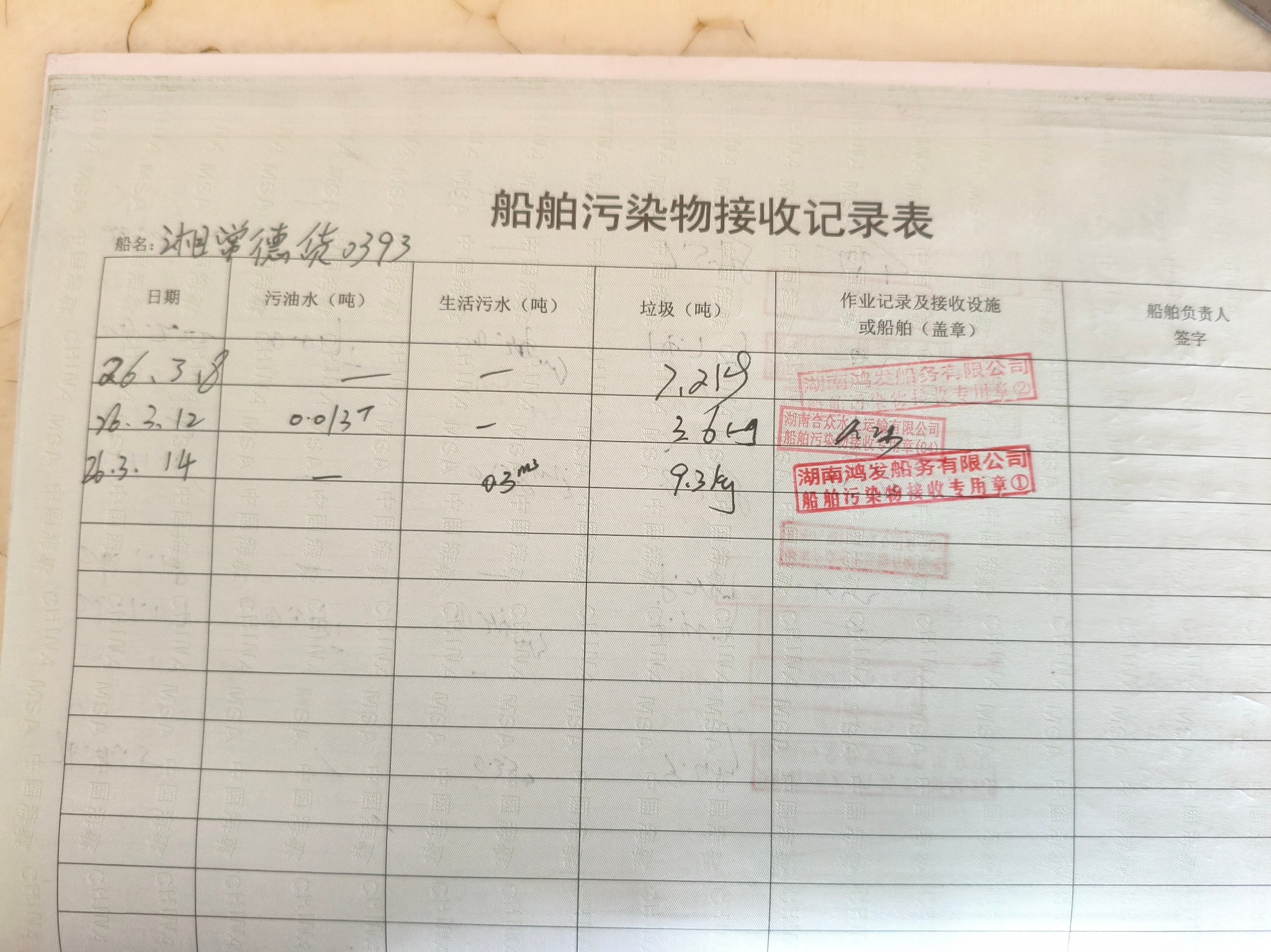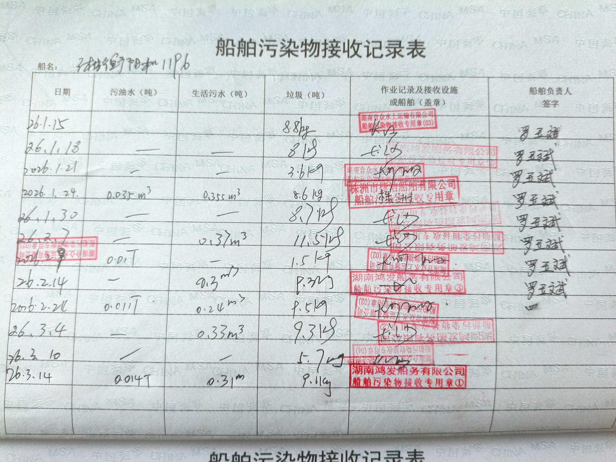 登船台账