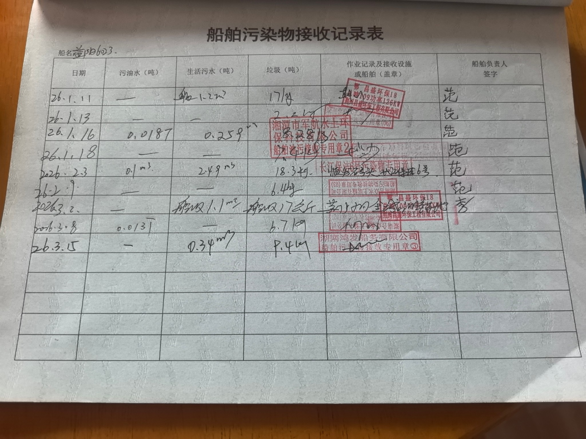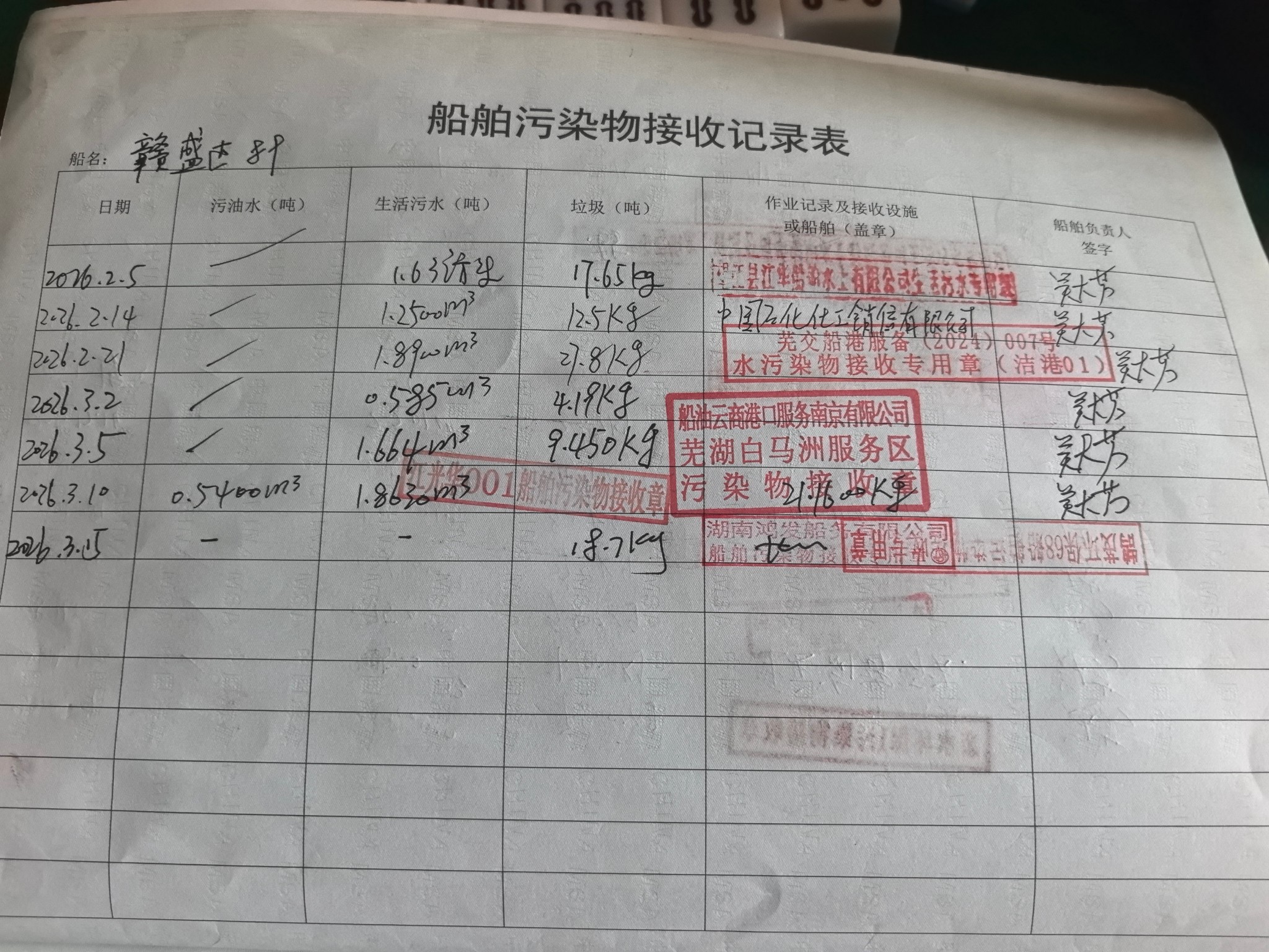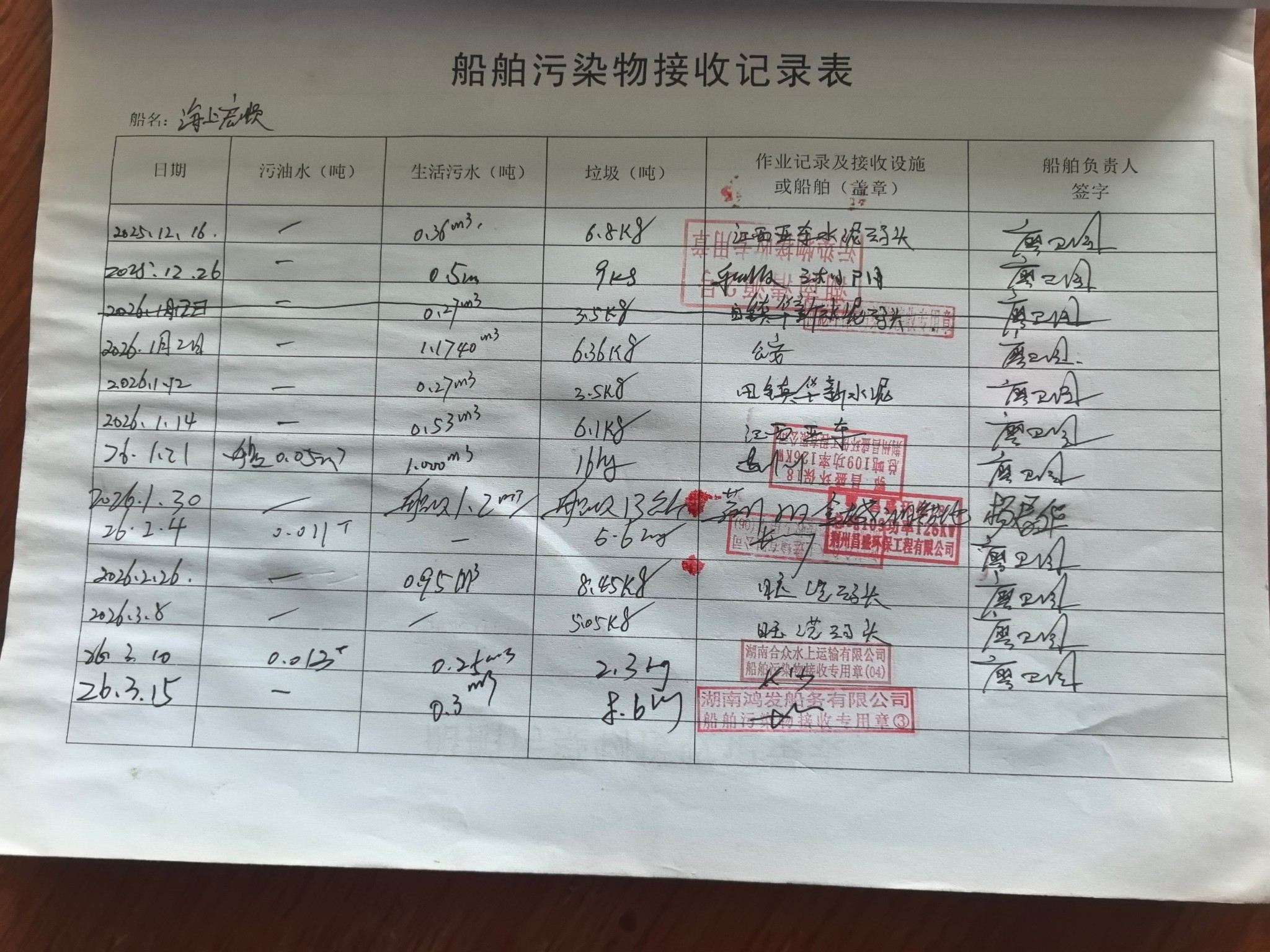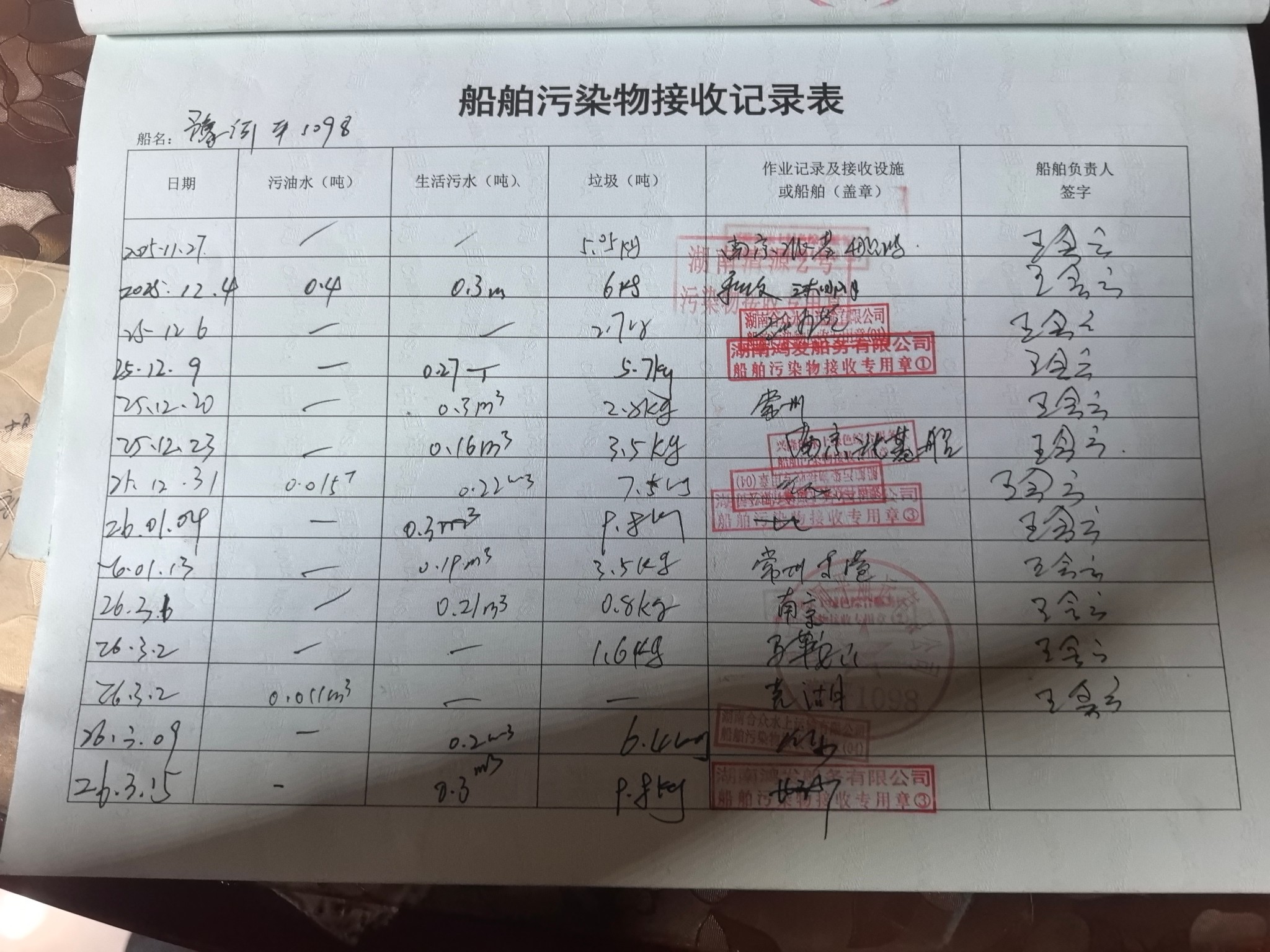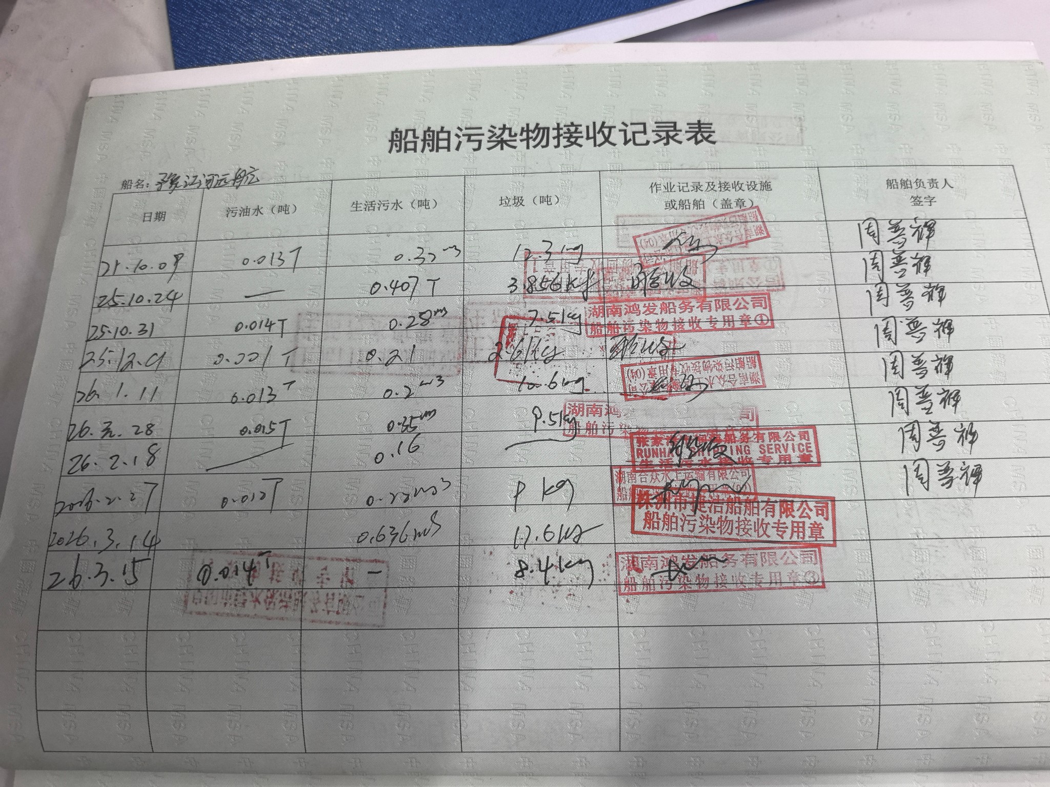 登船台账