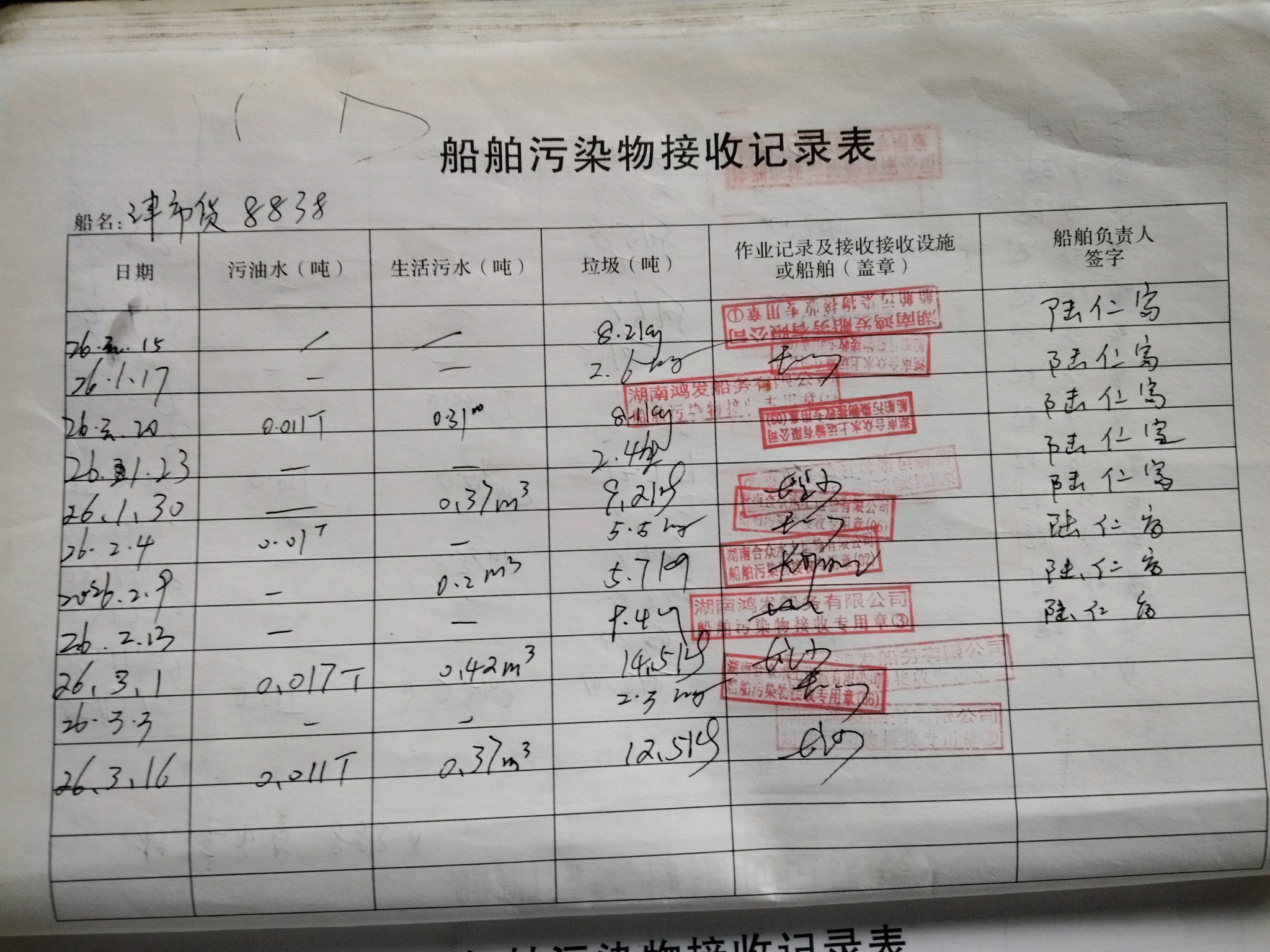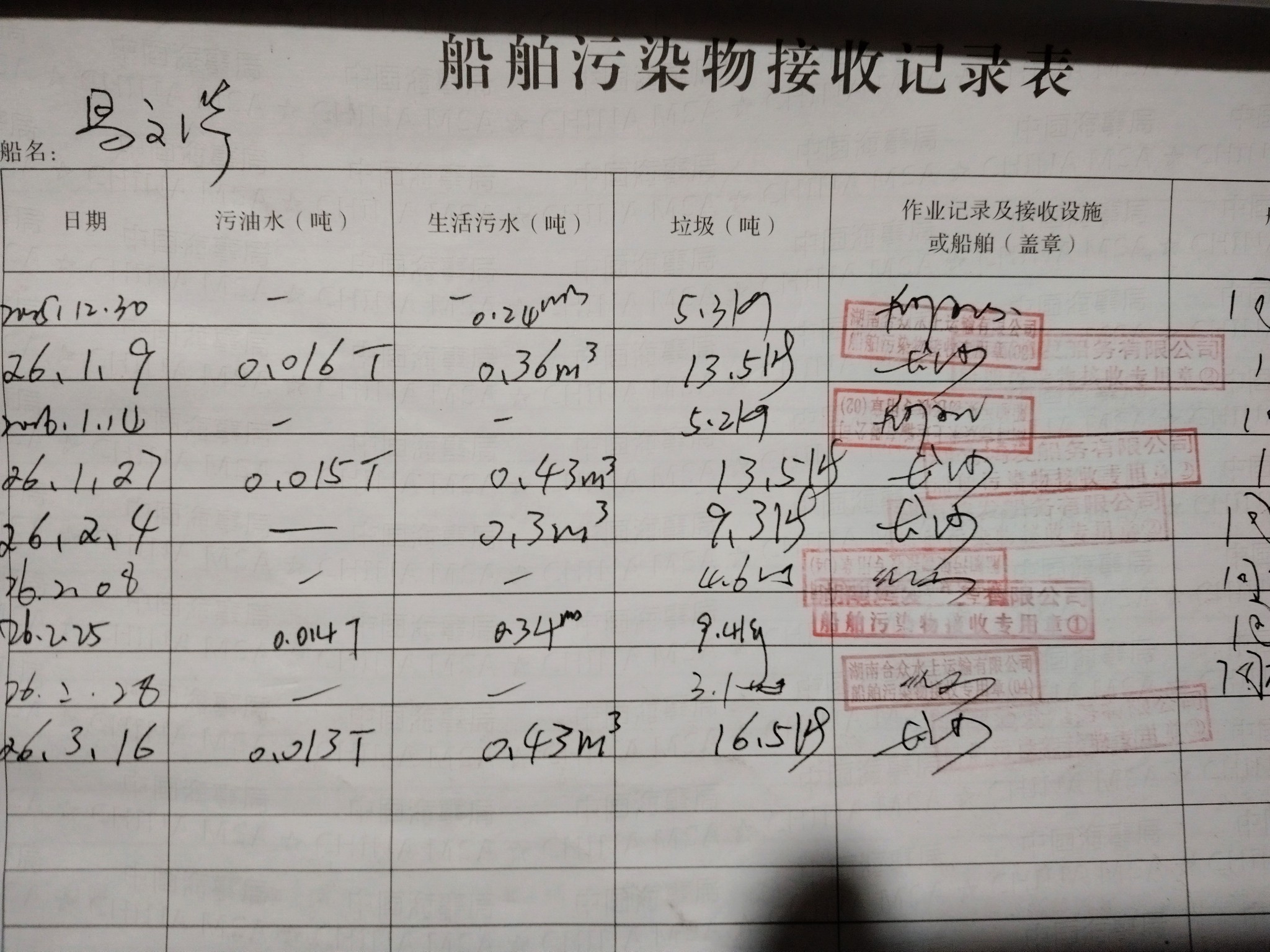 登船台账