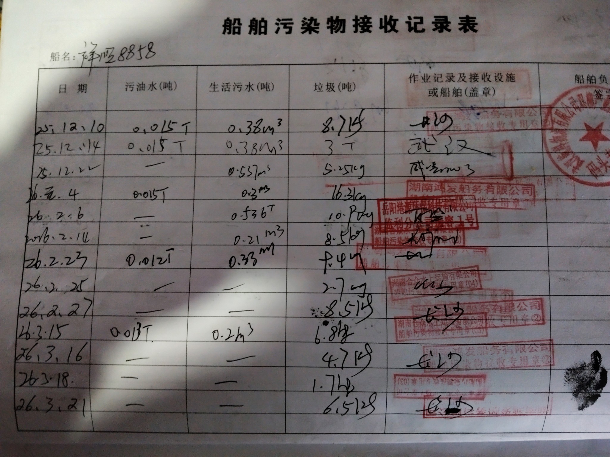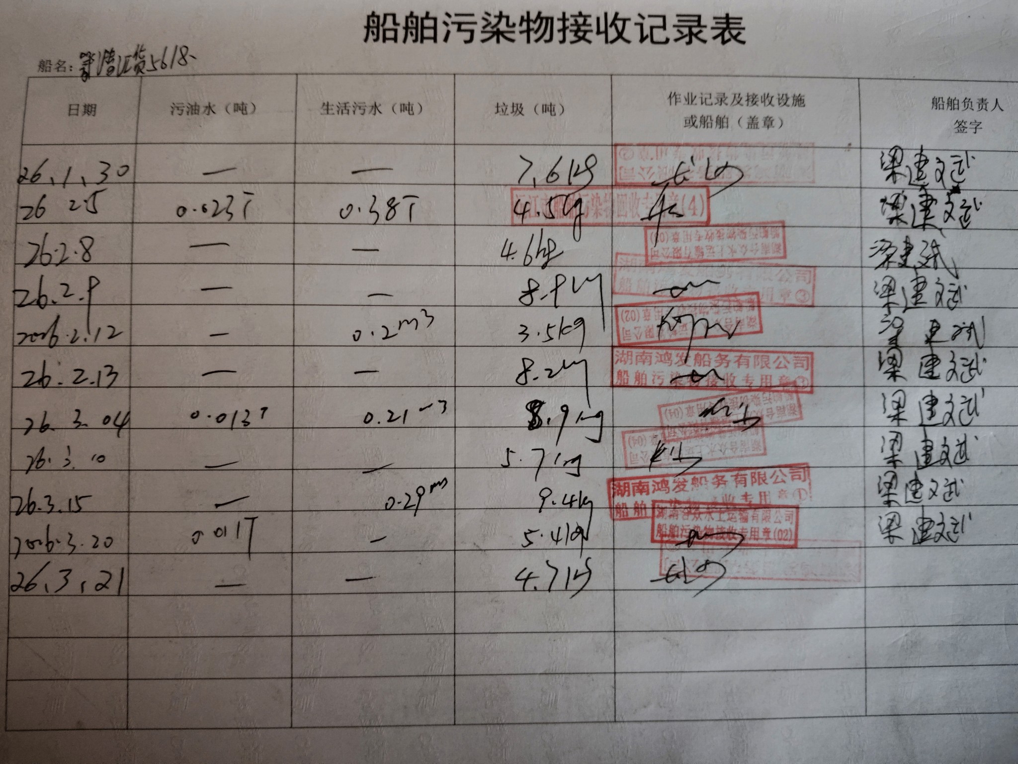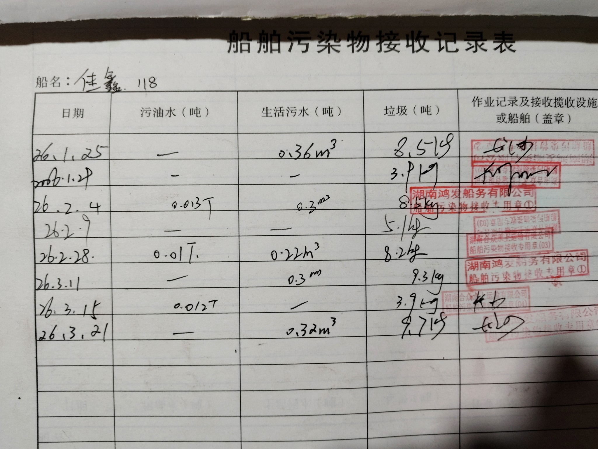 登船台账