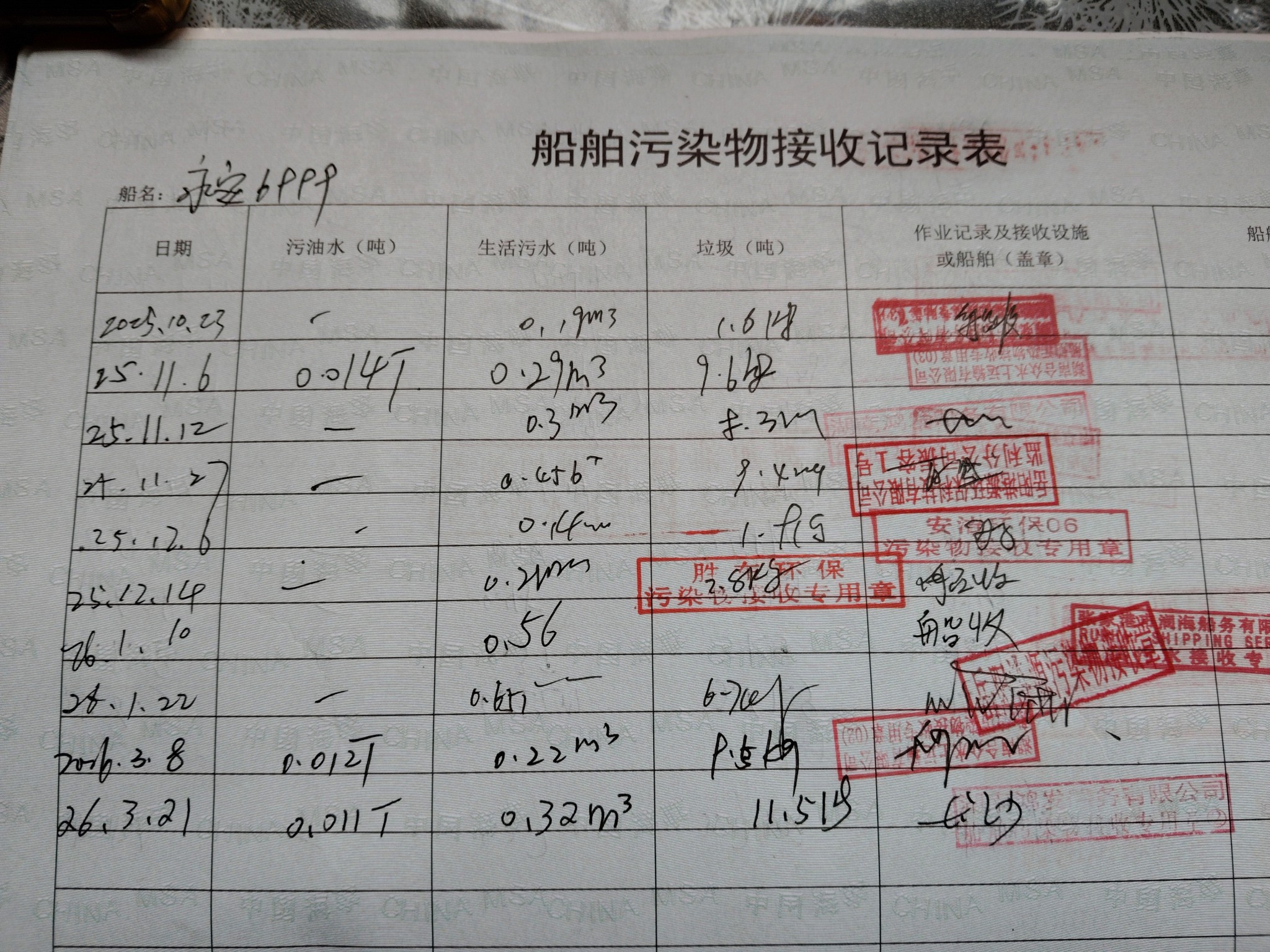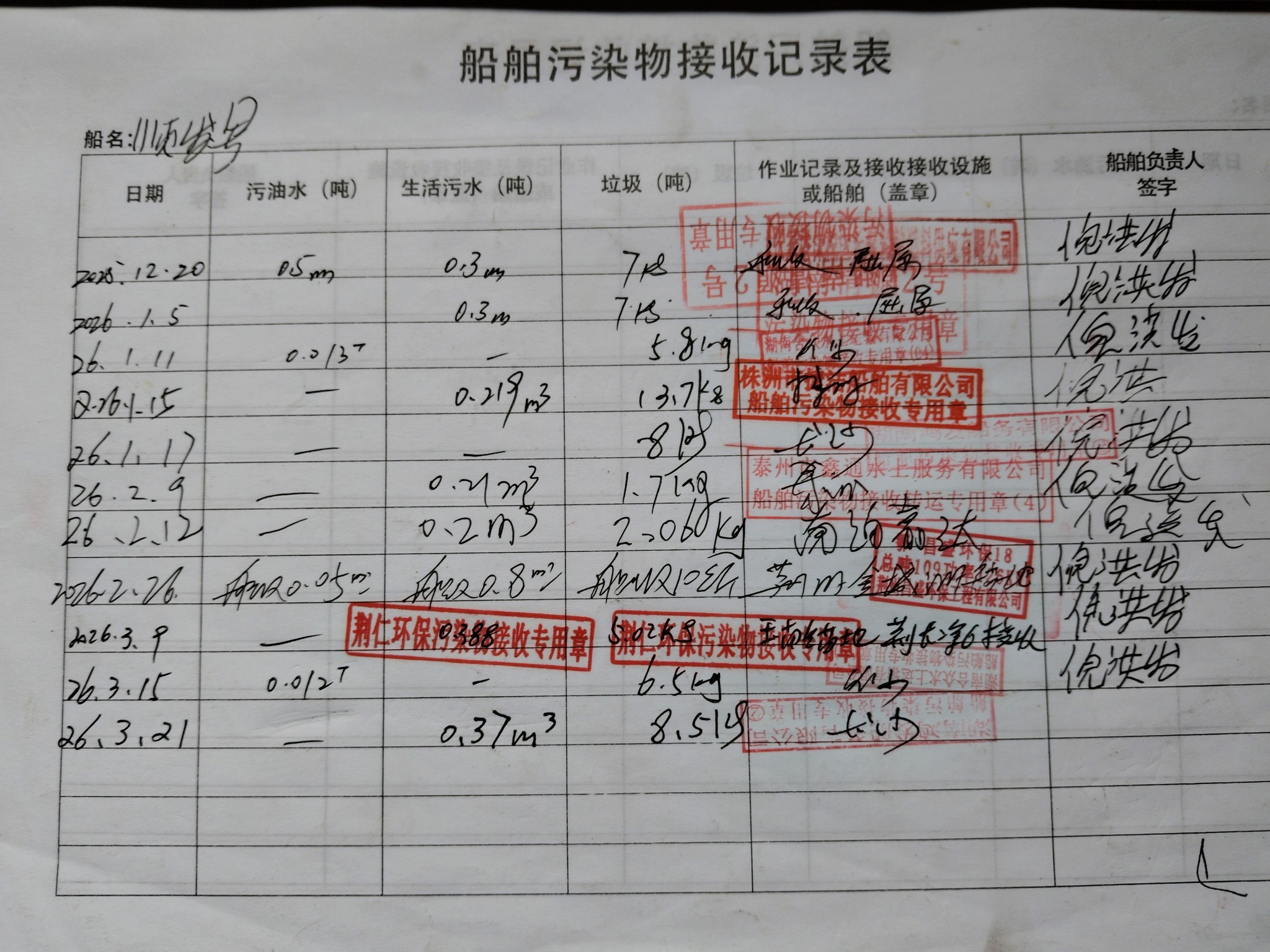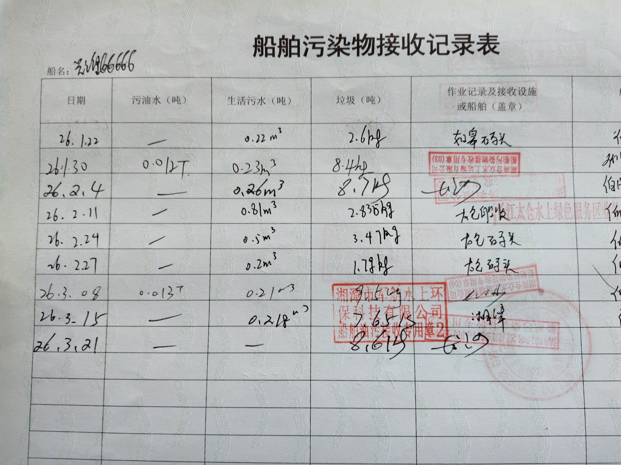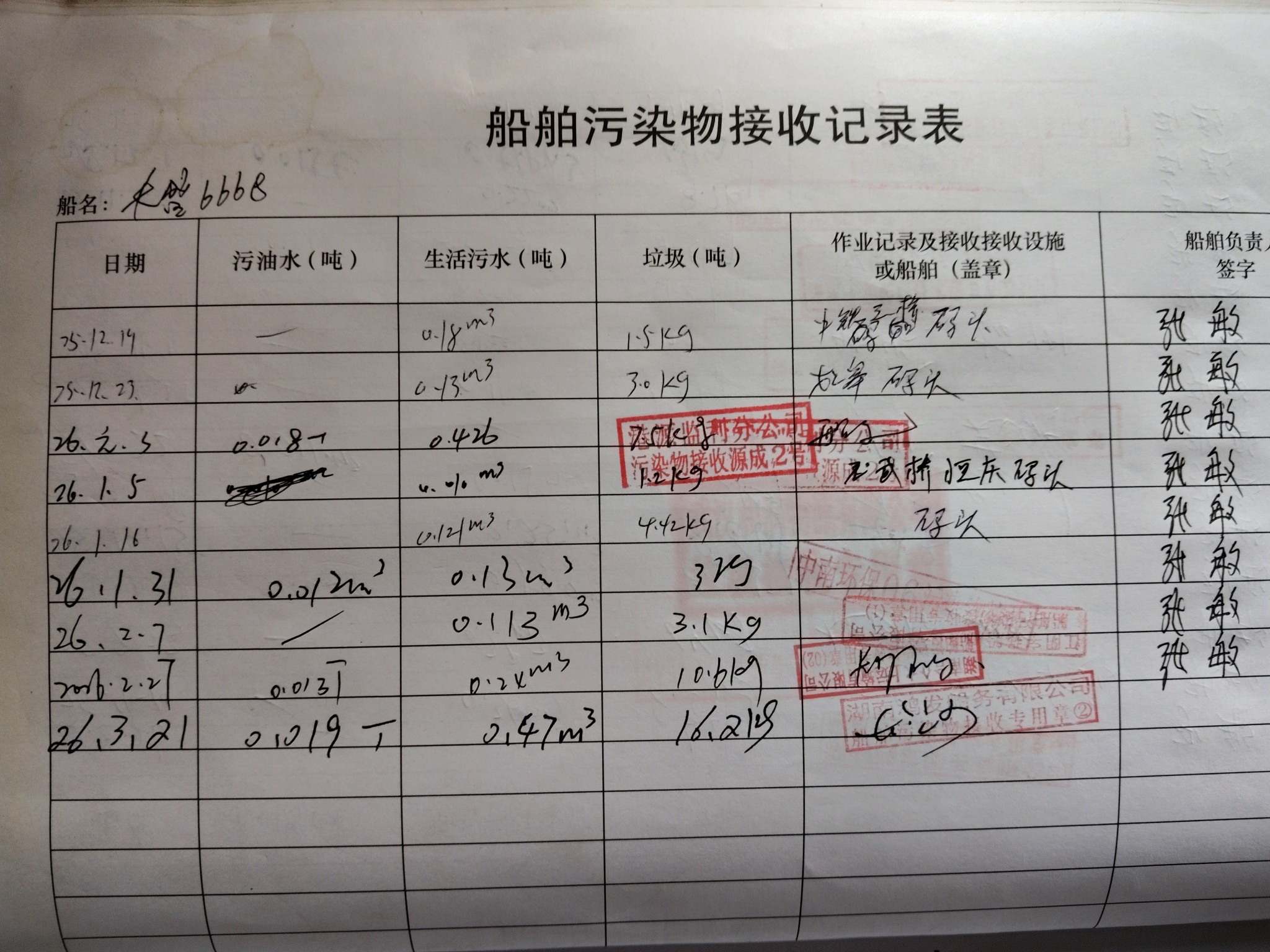 登船台账