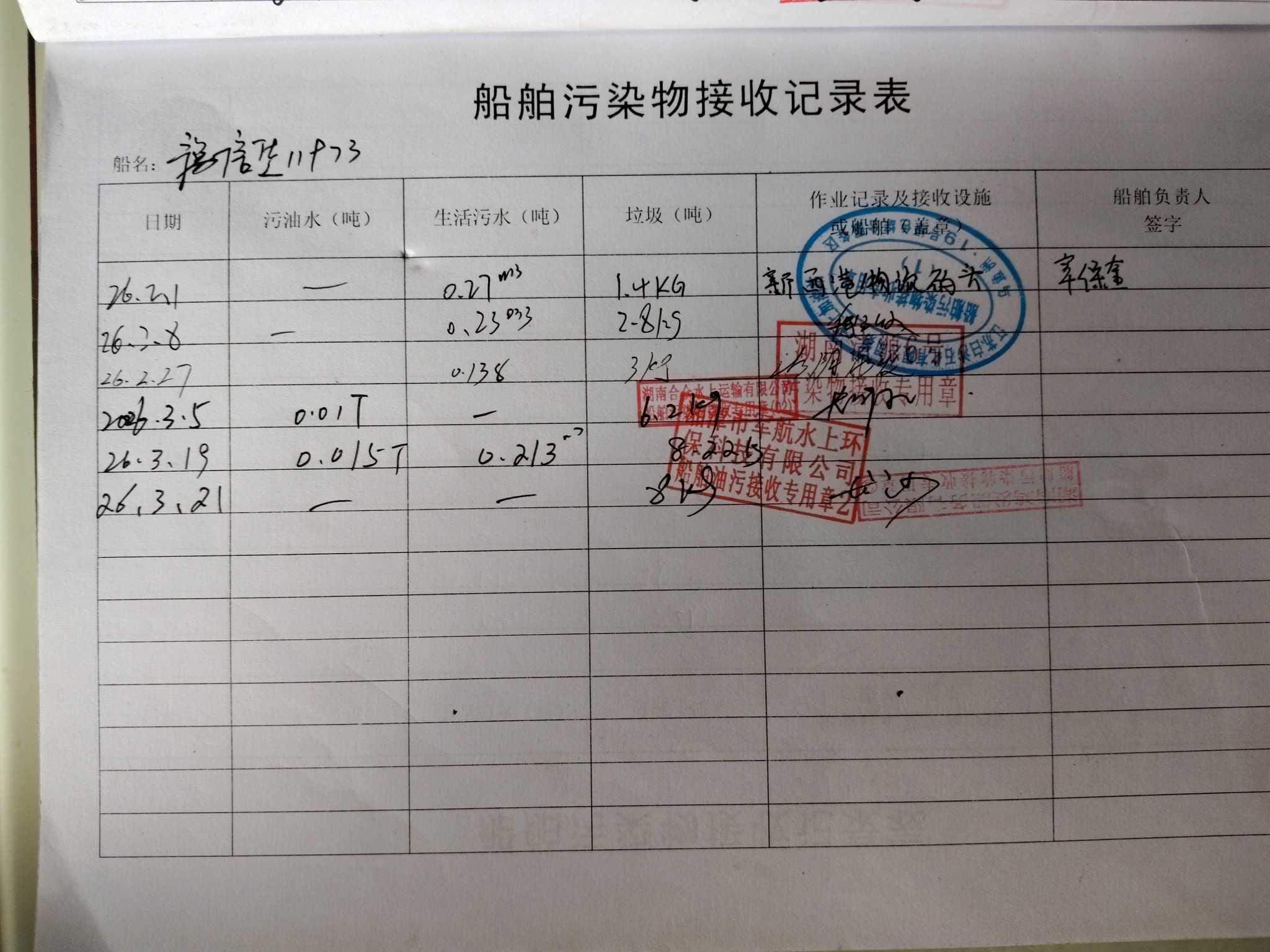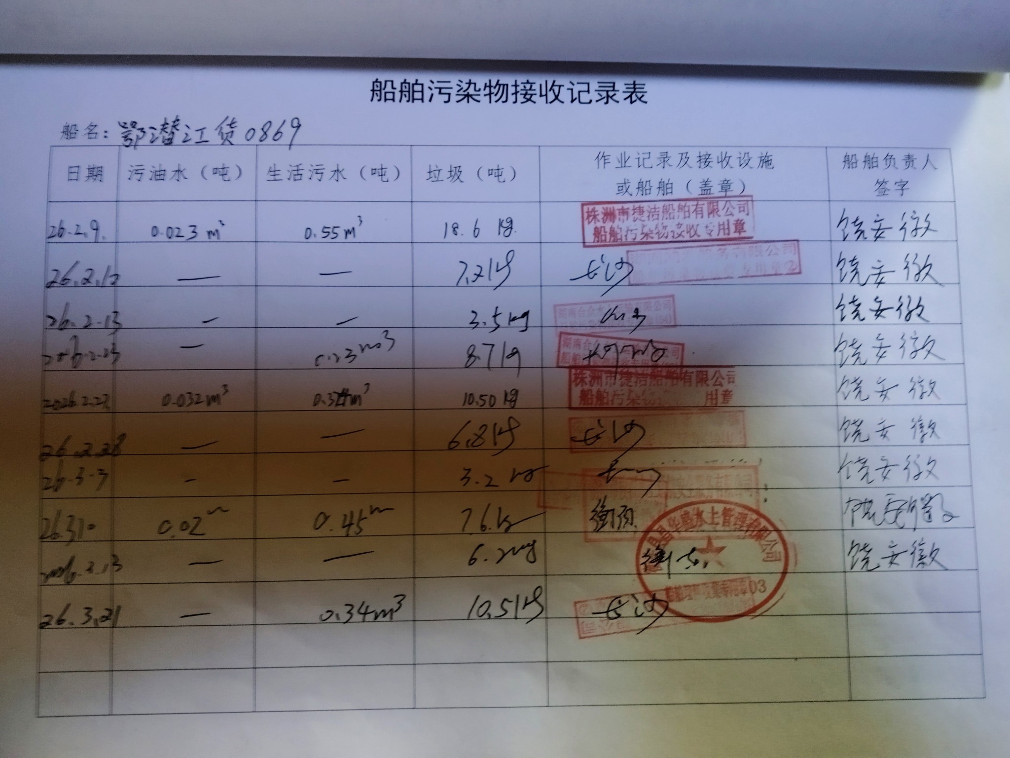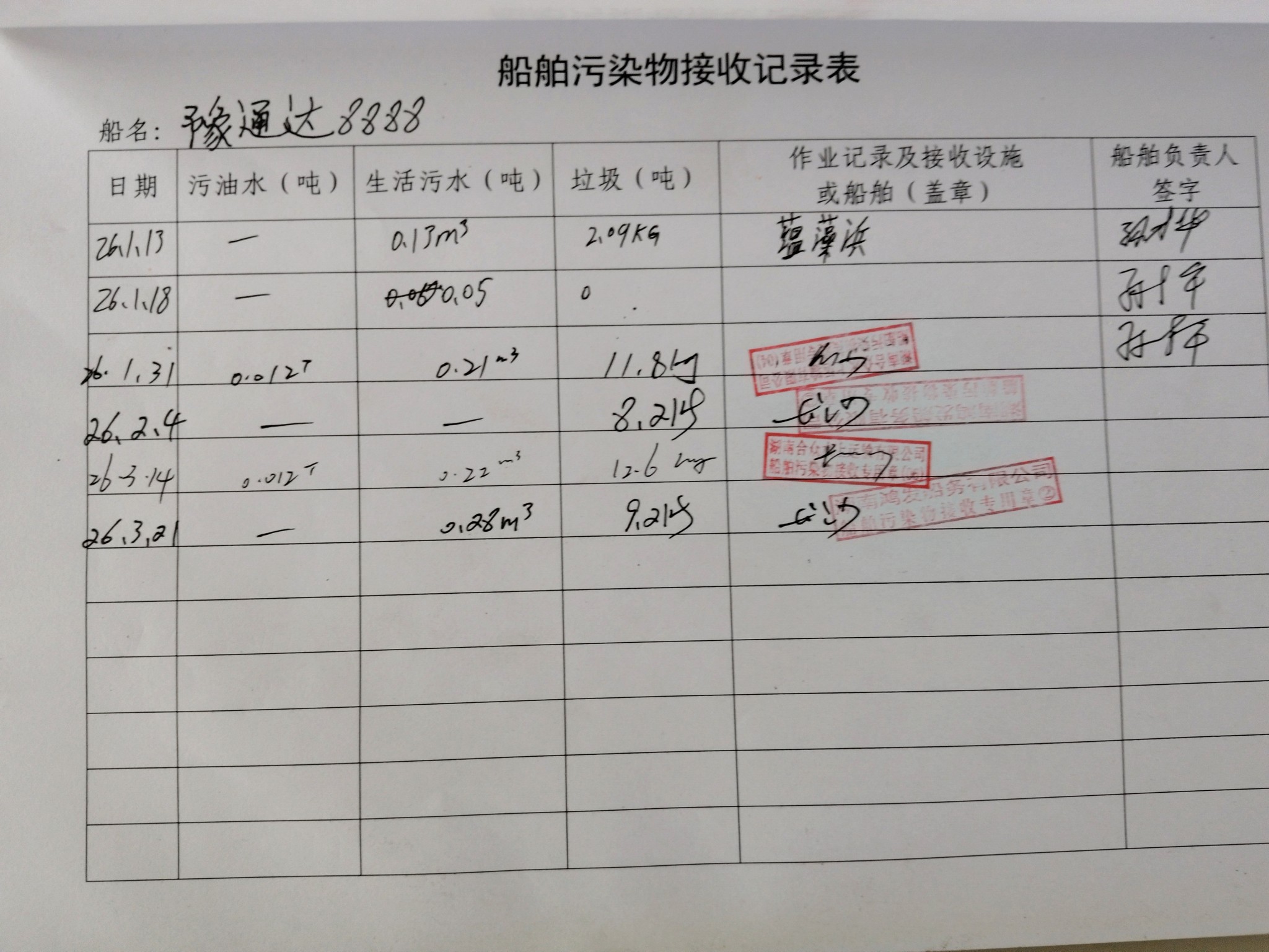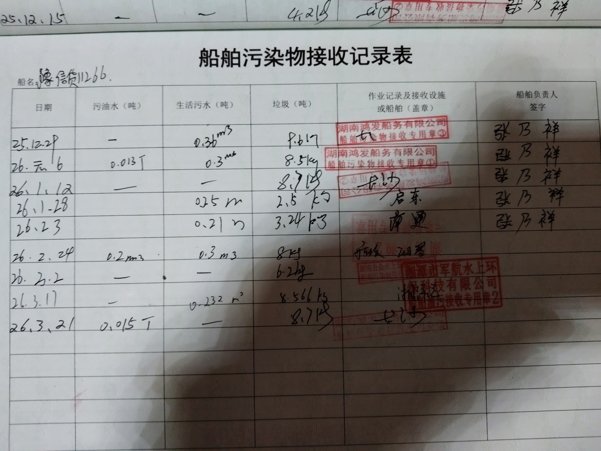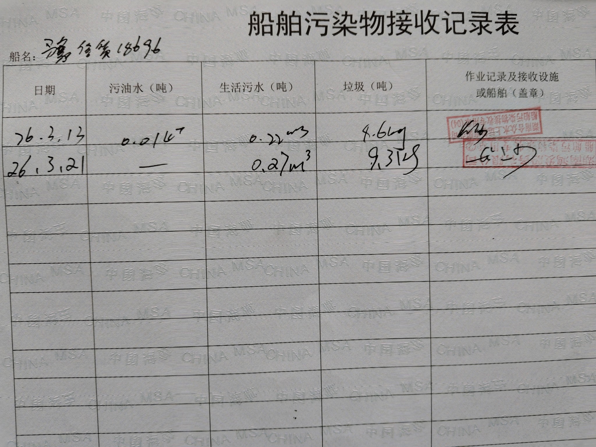 登船台账