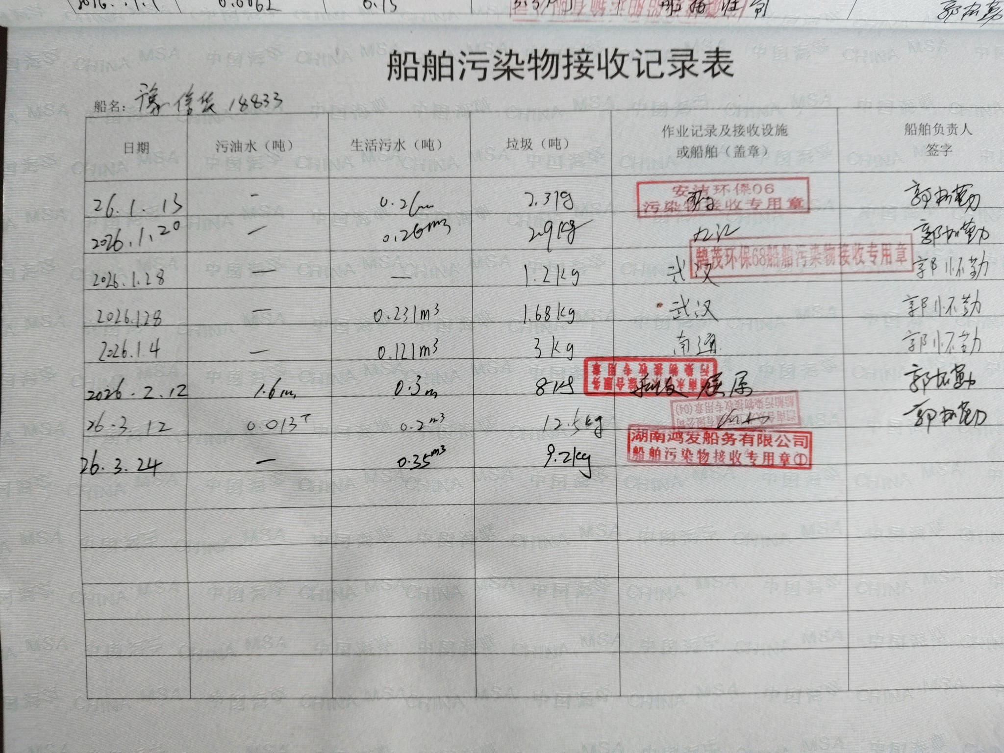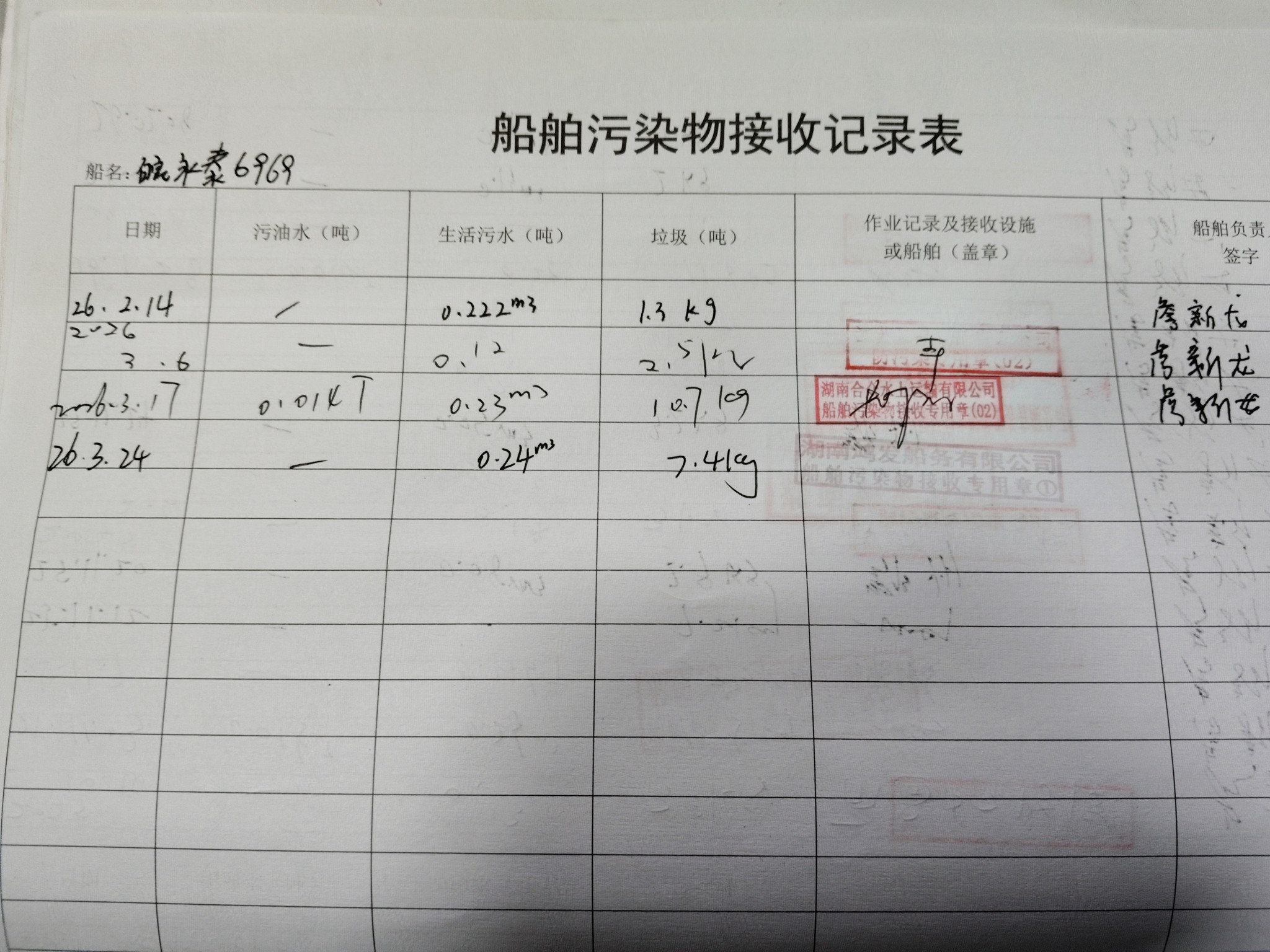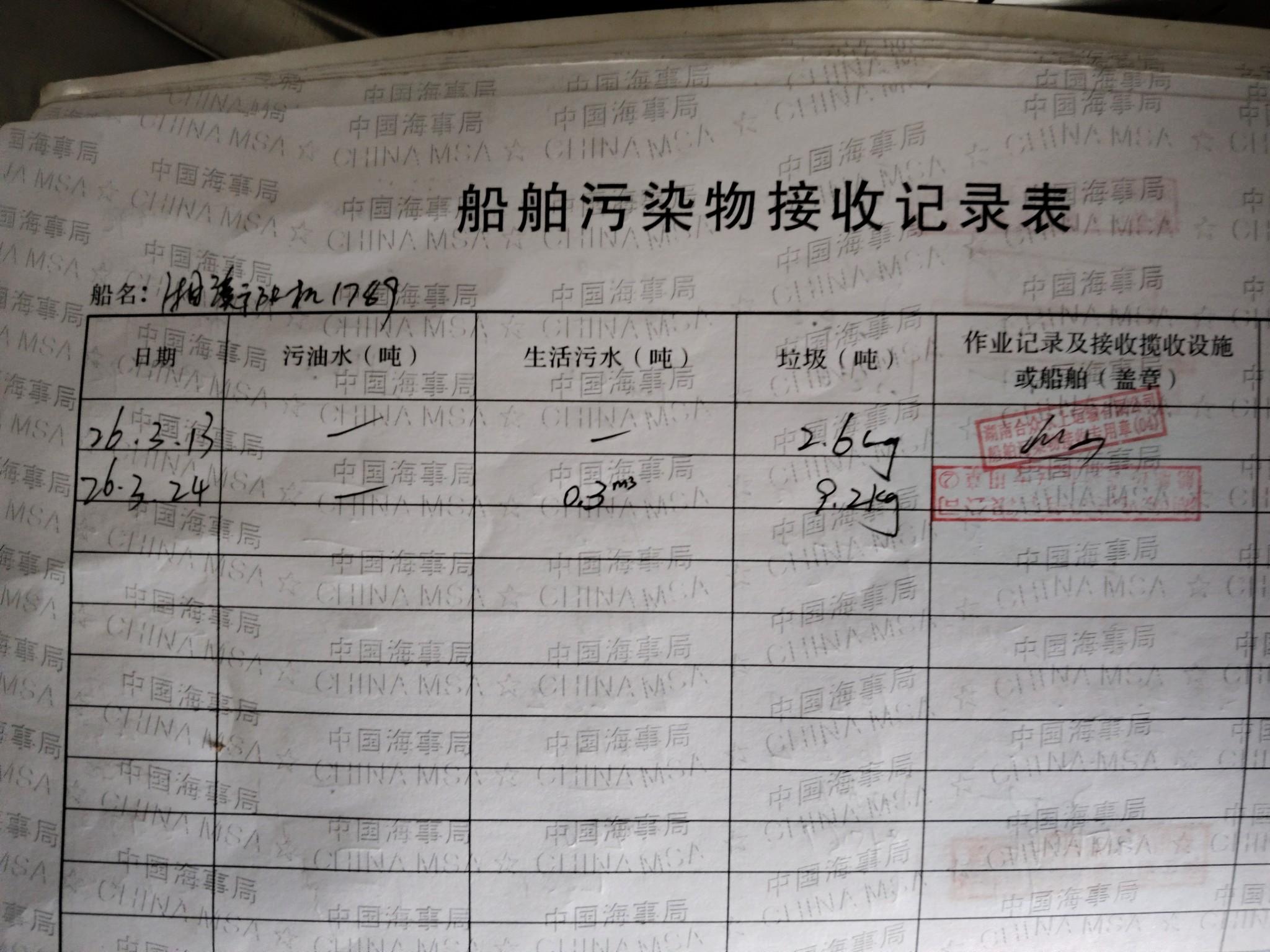 登船台账