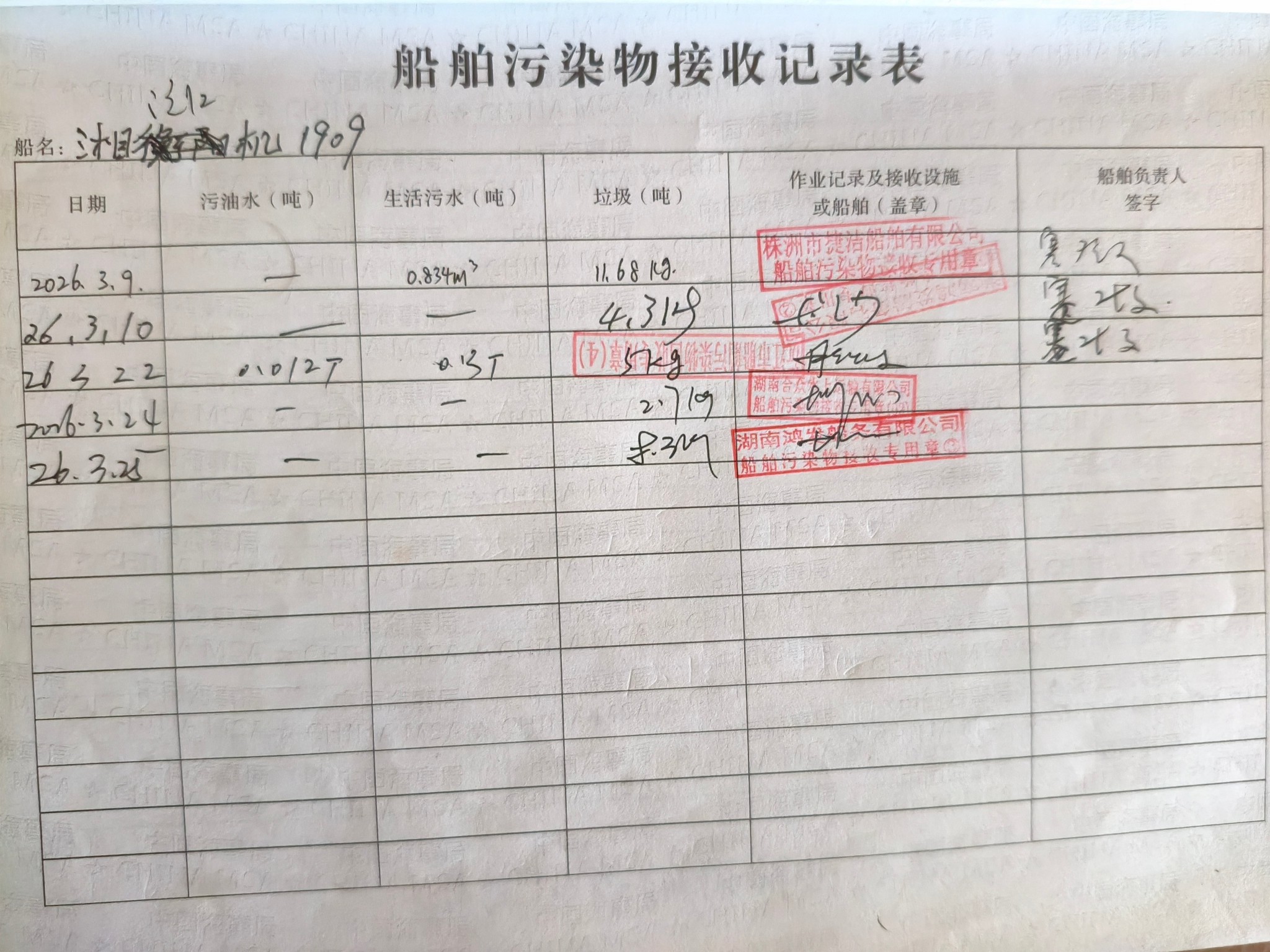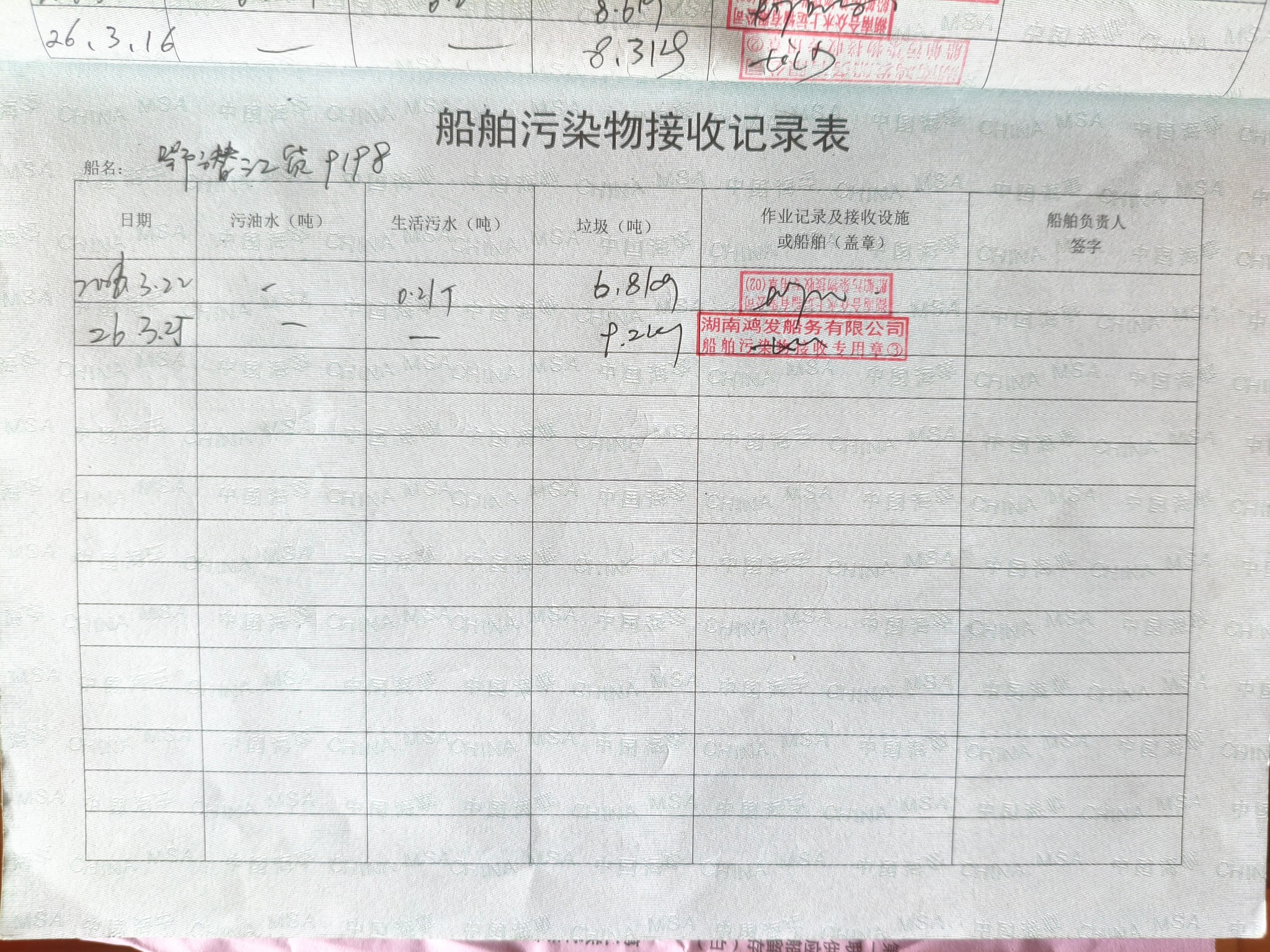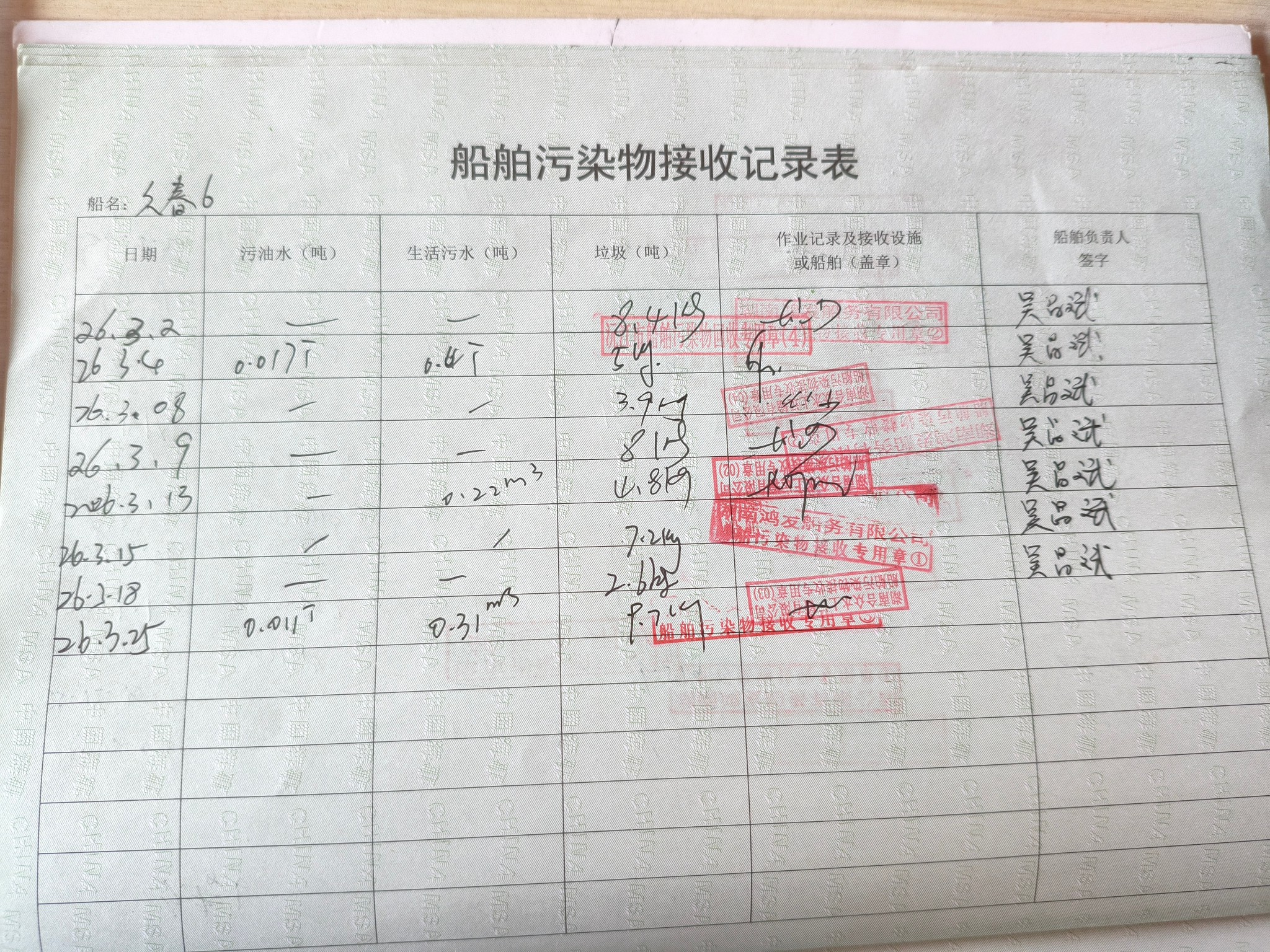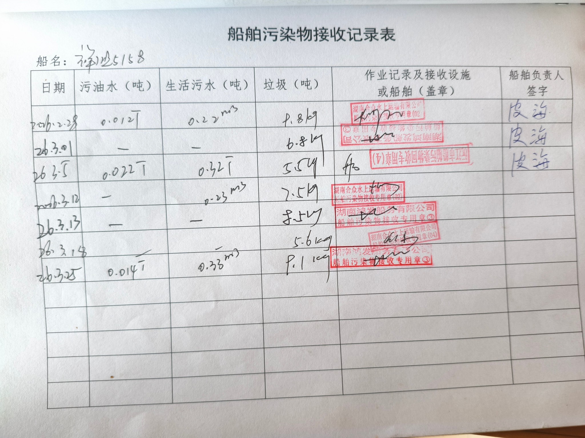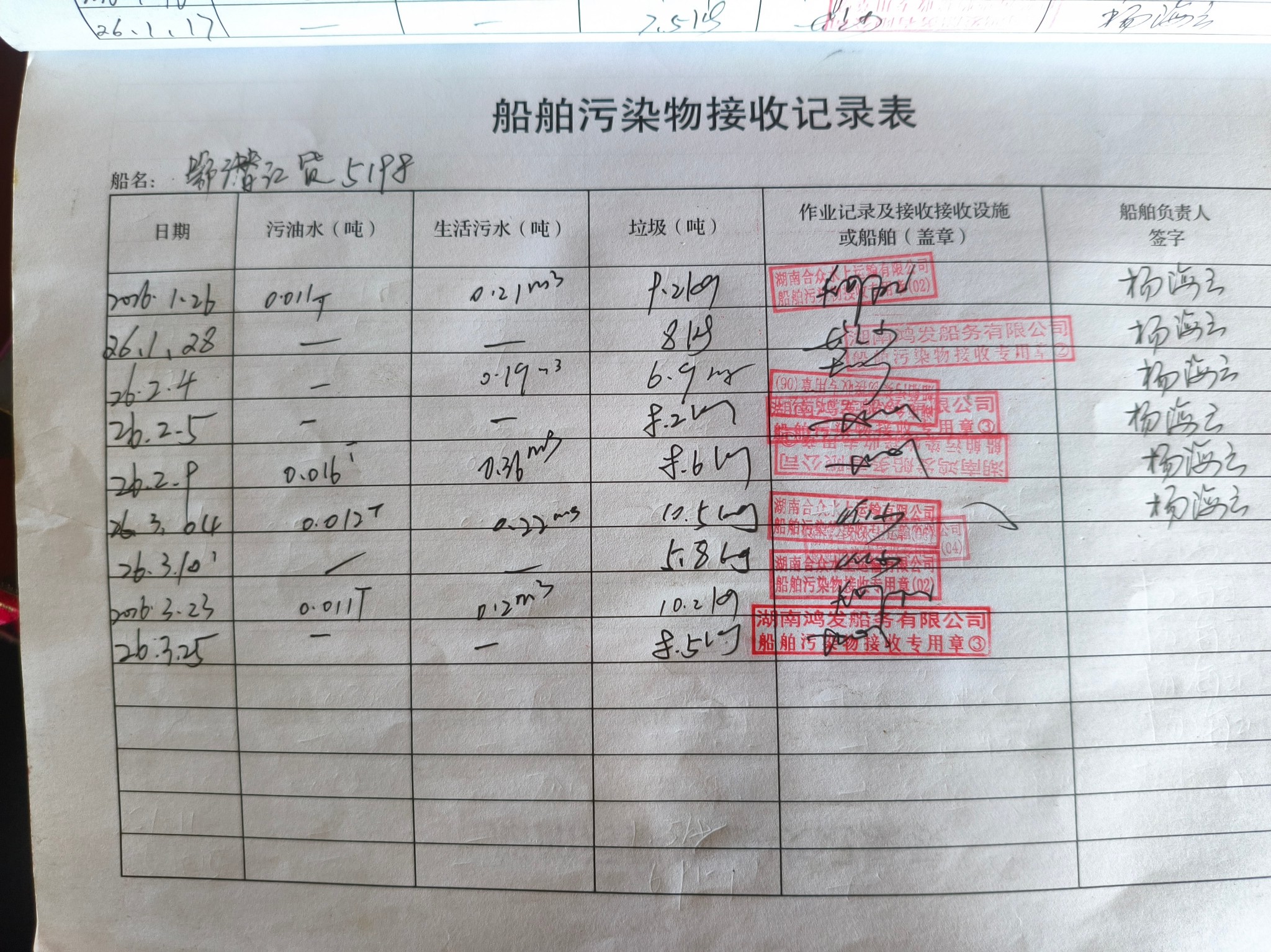 登船台账