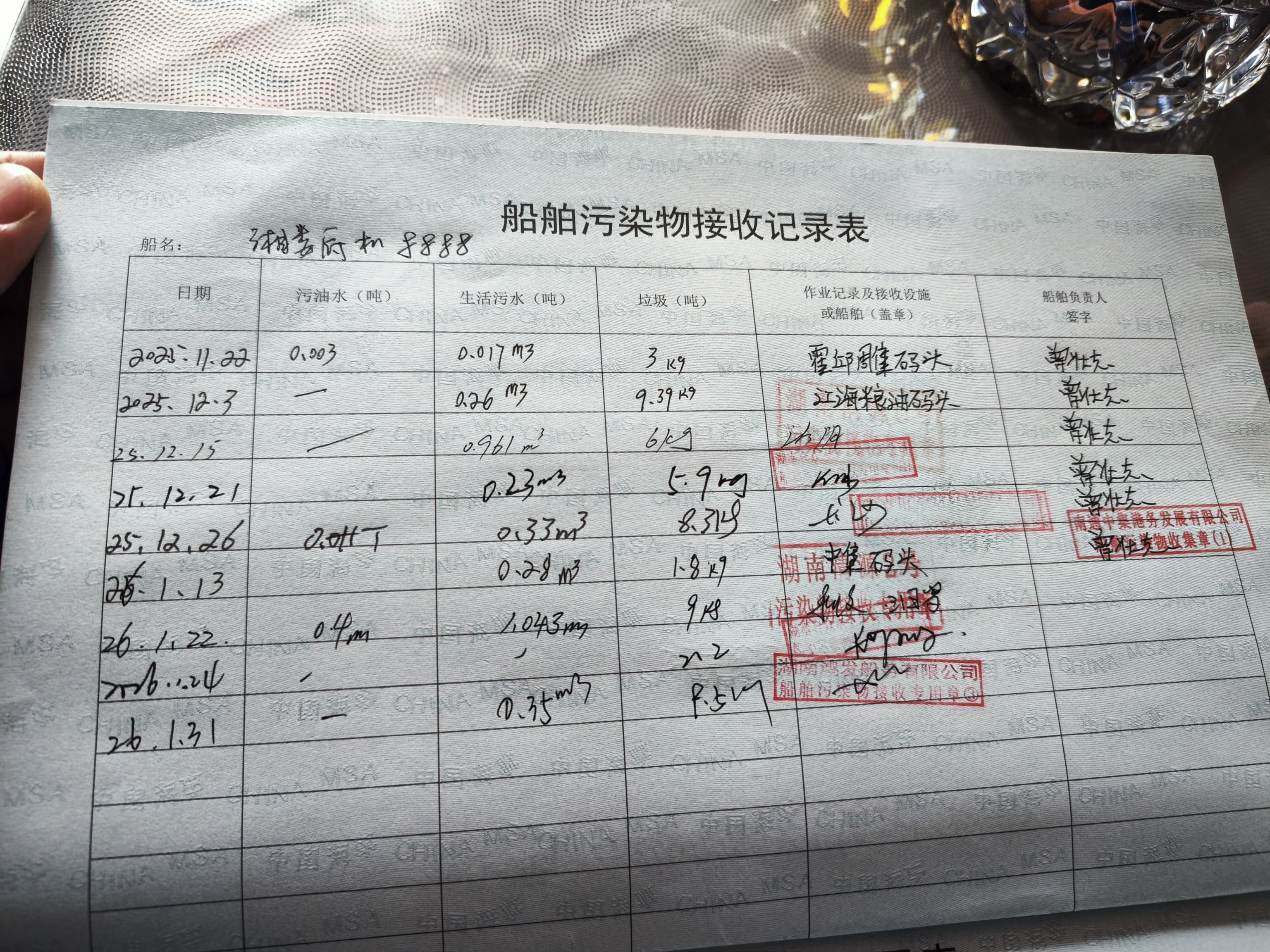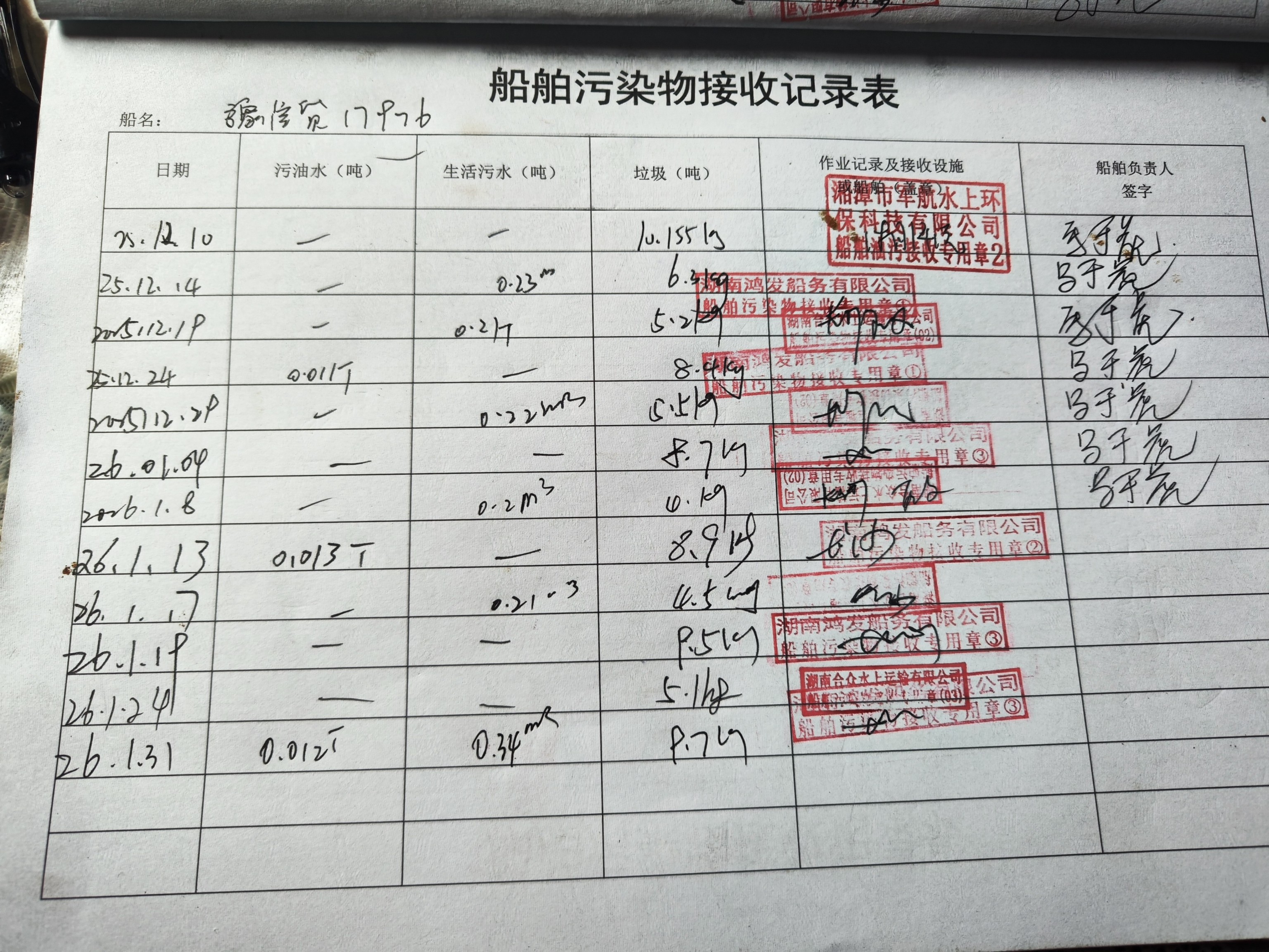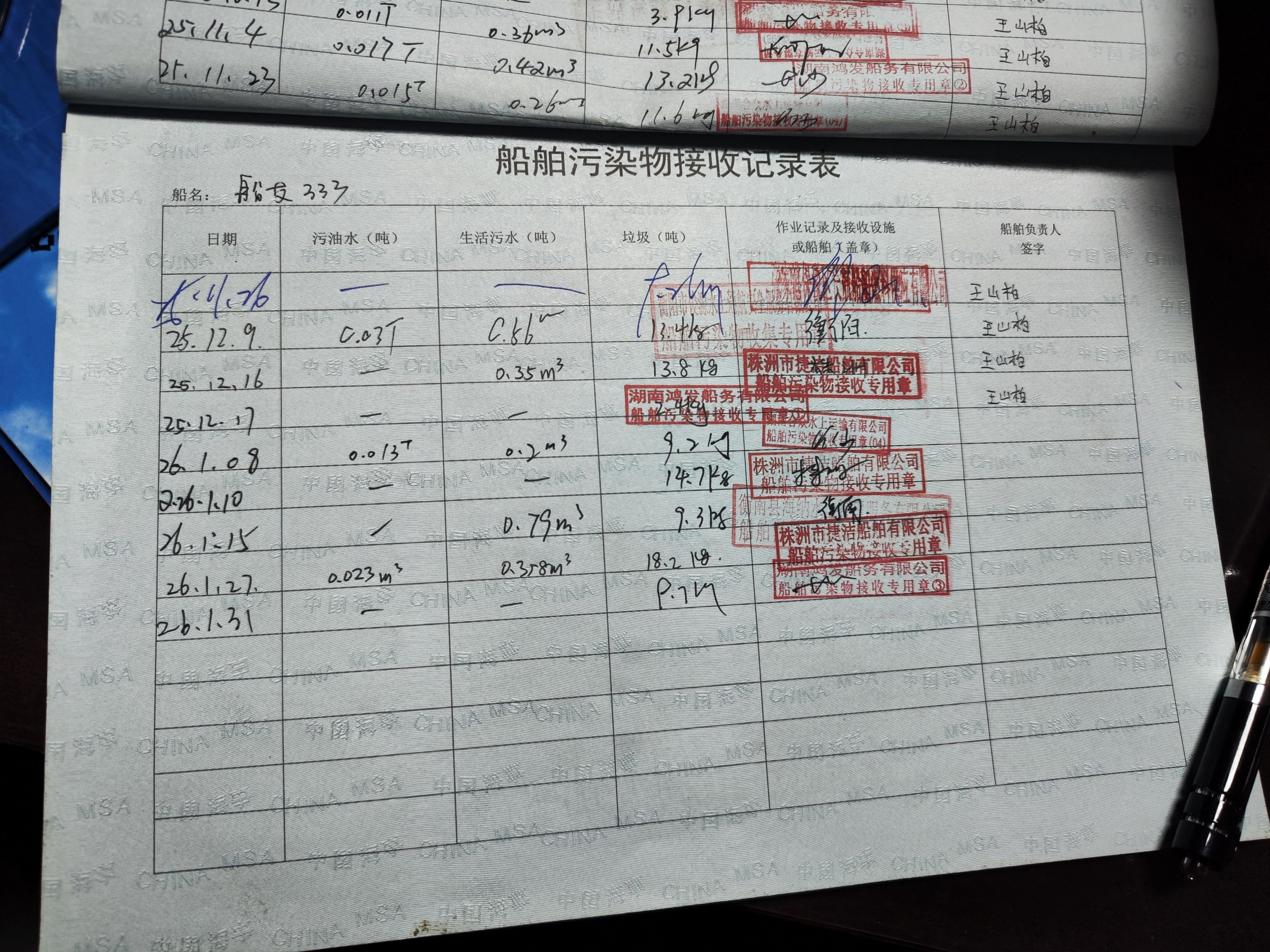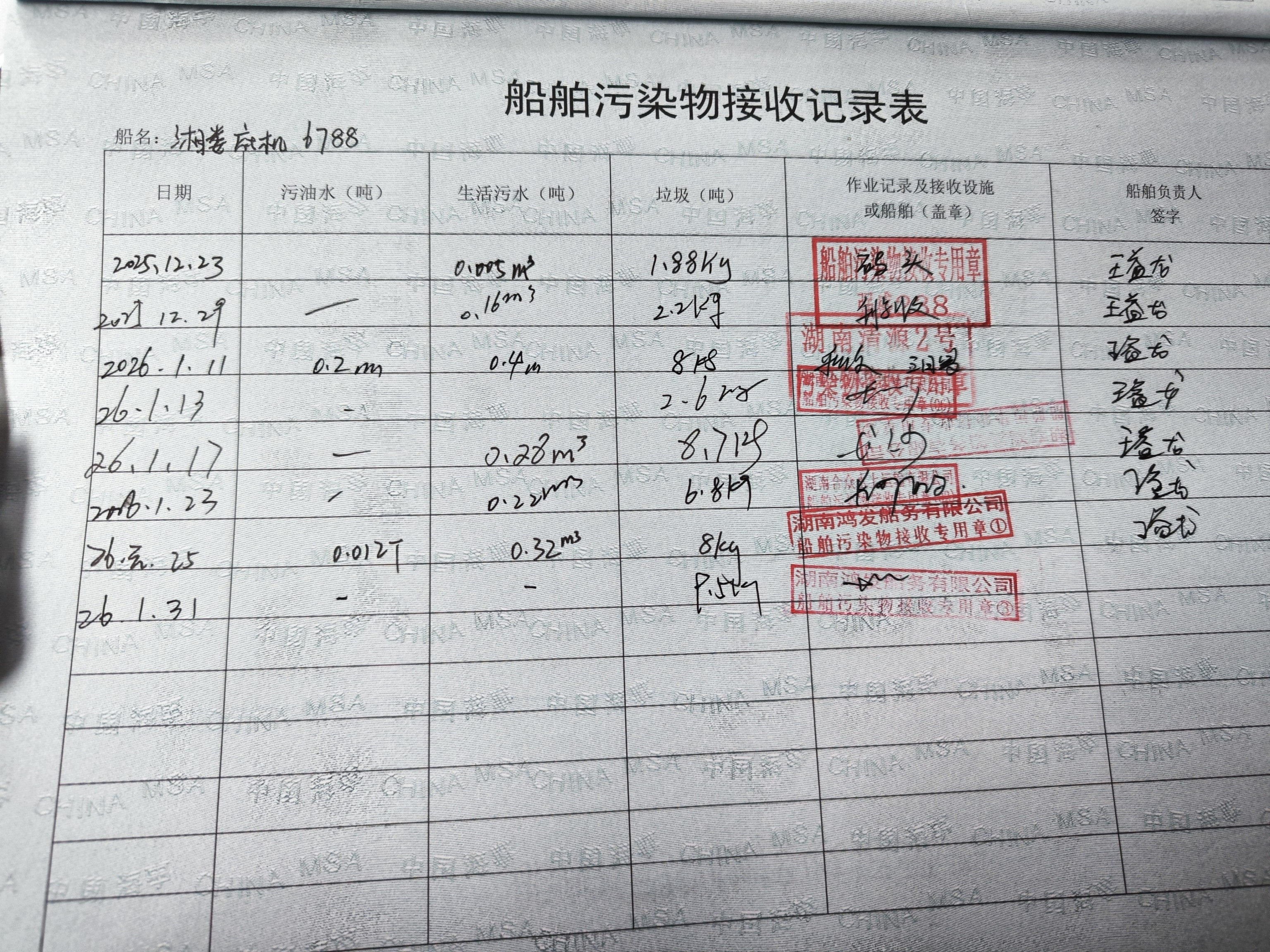 登船台账