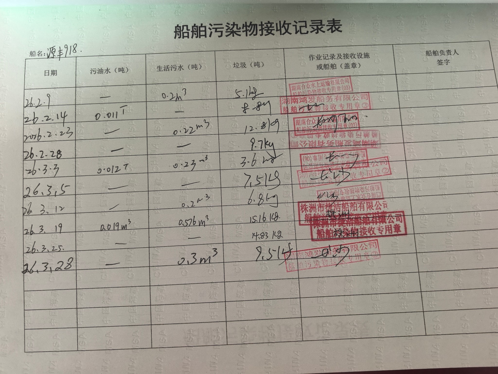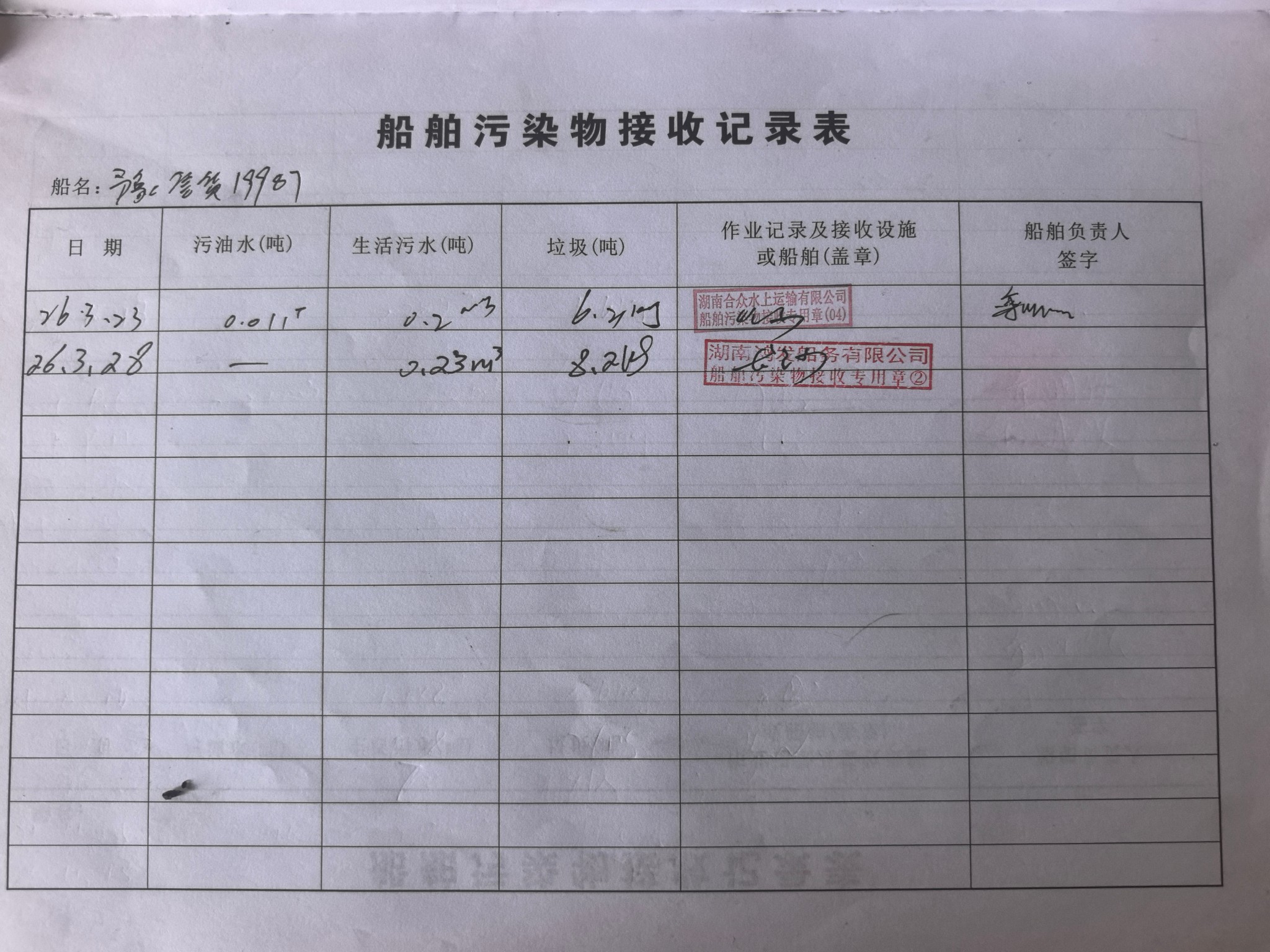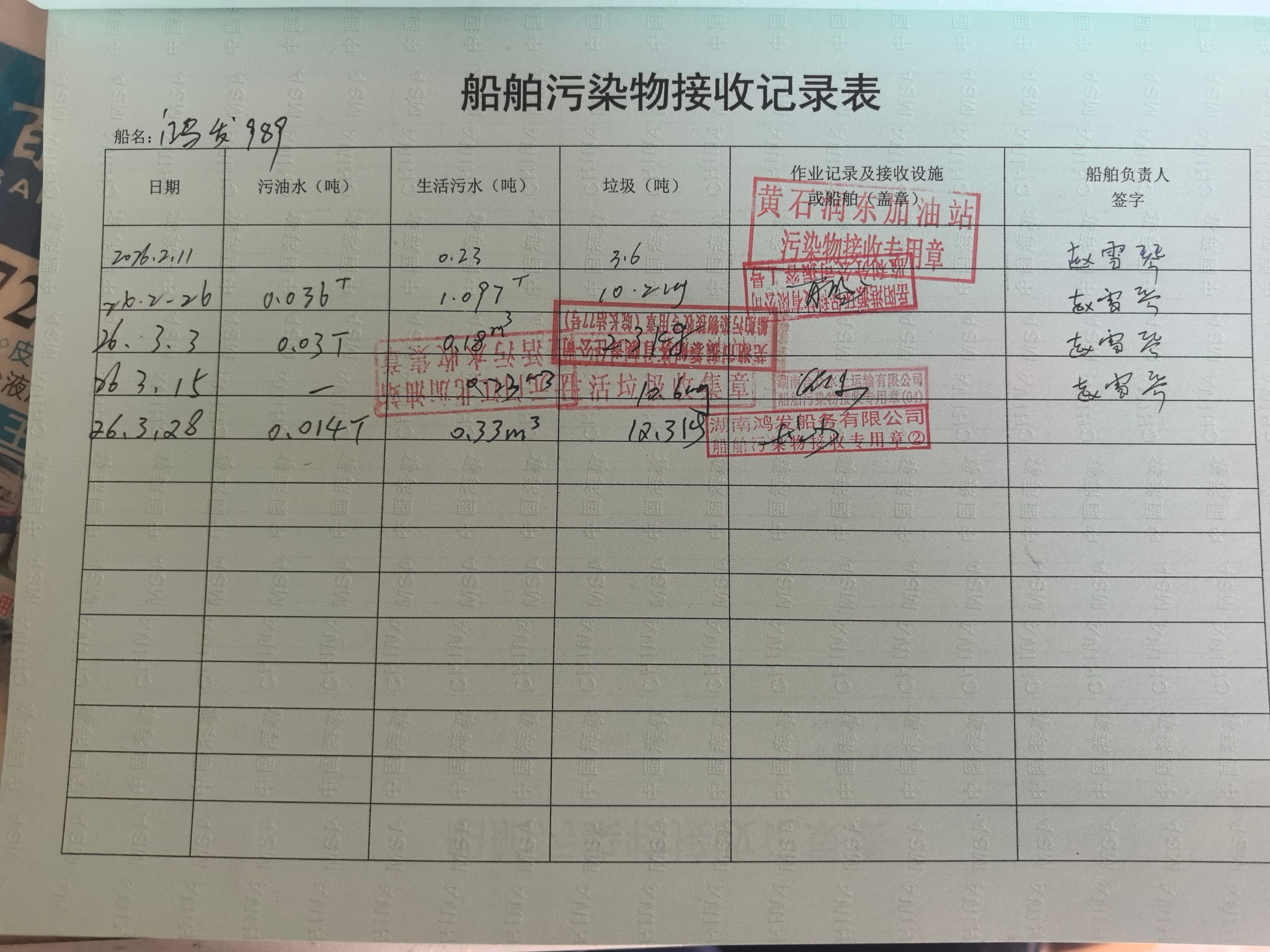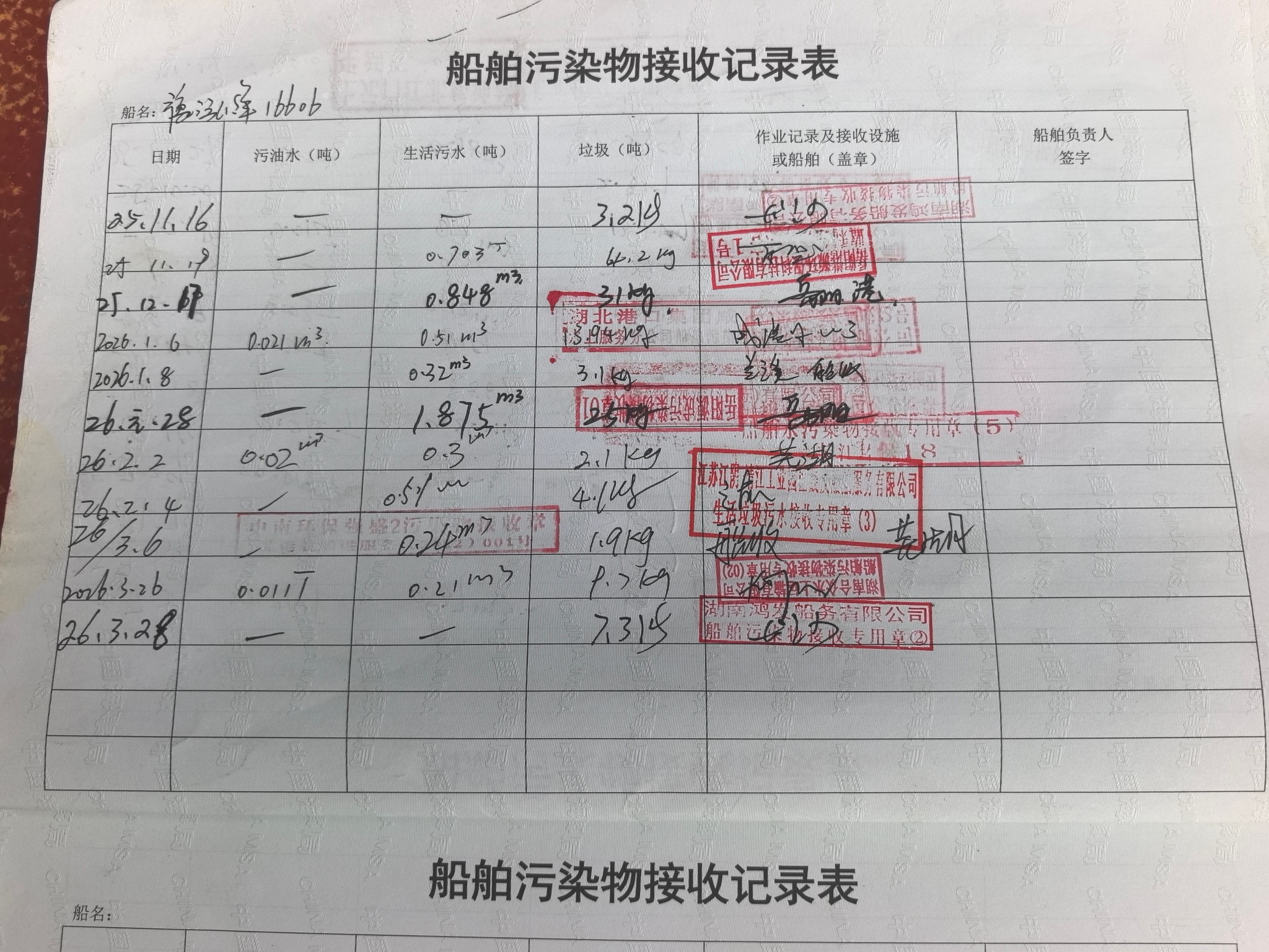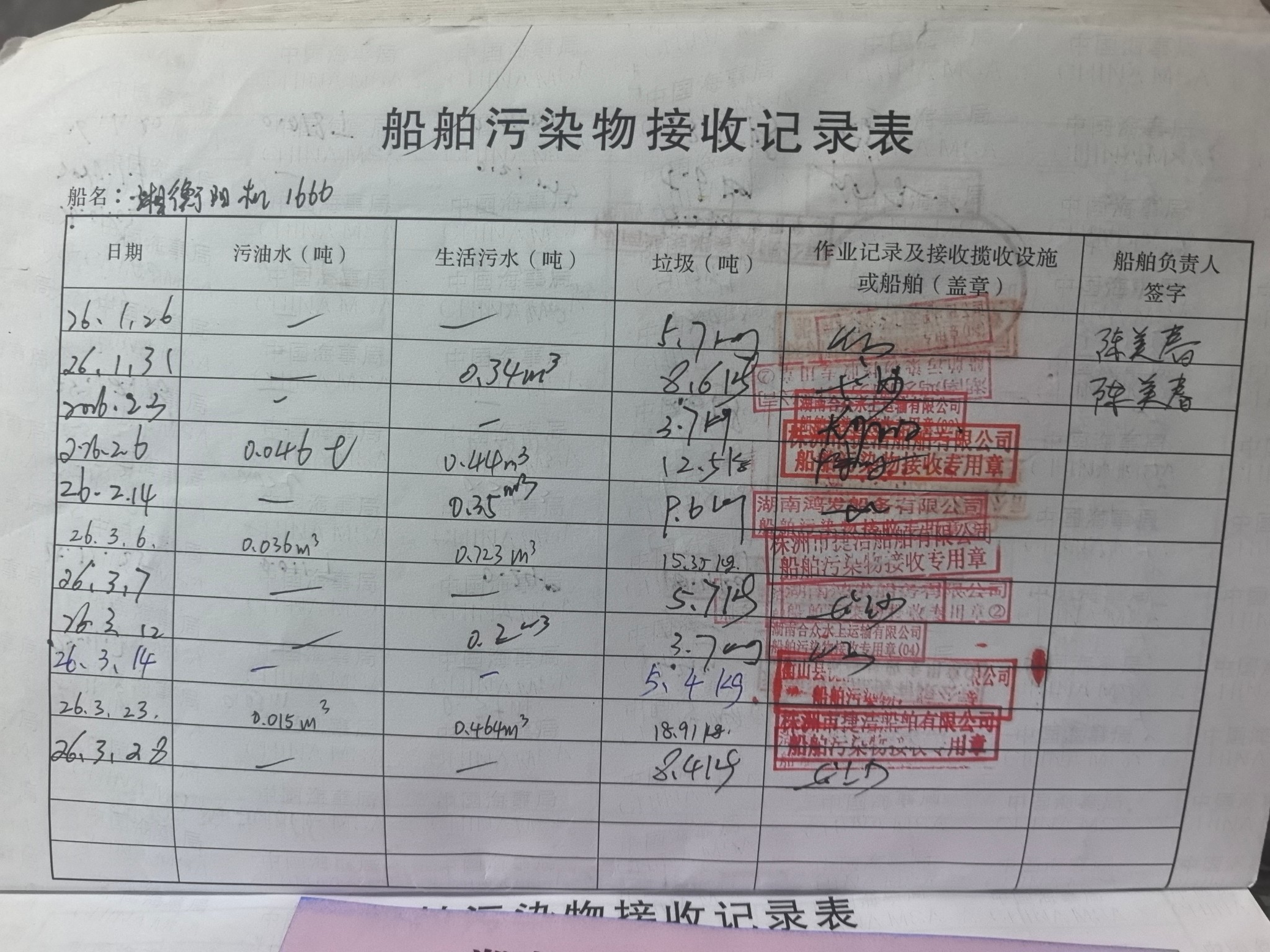 登船台账