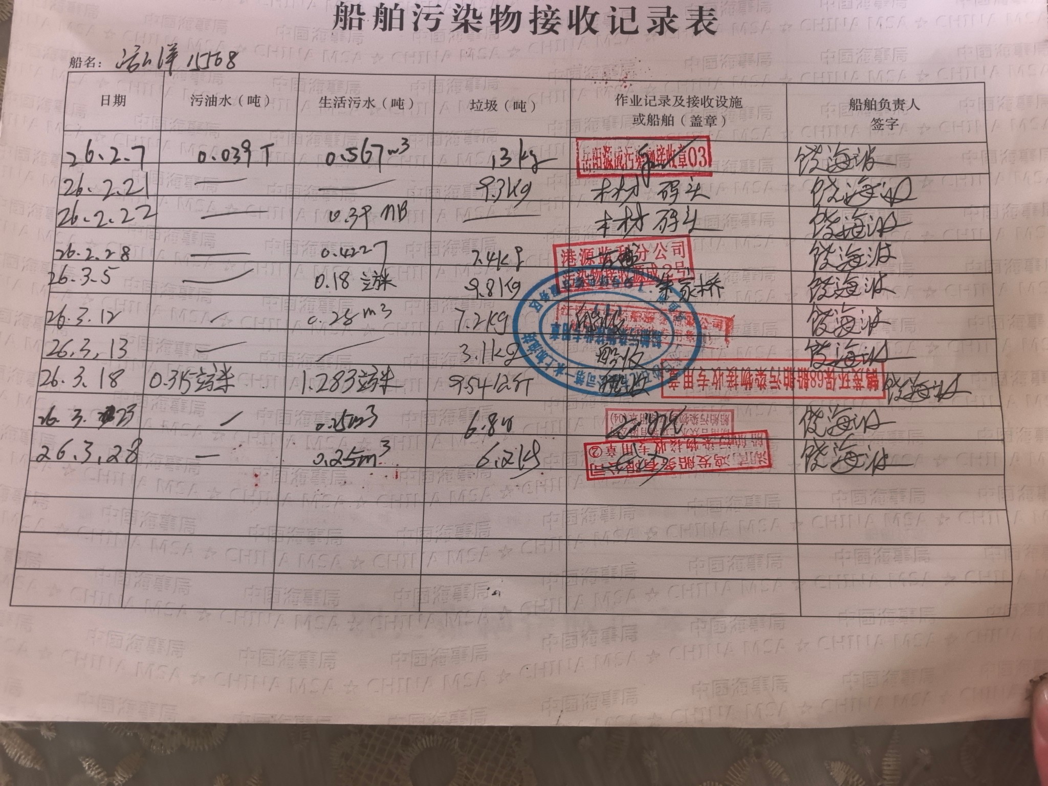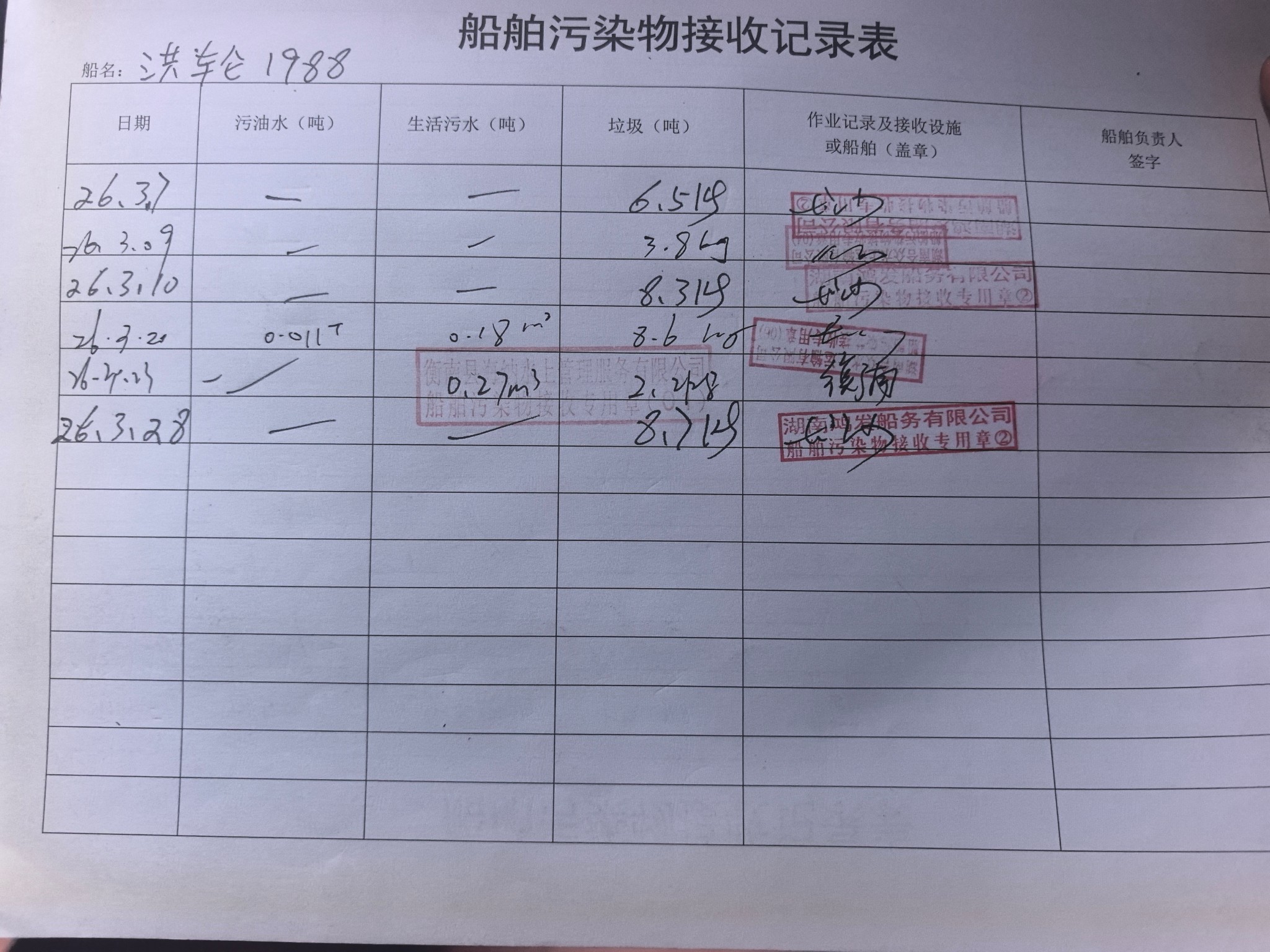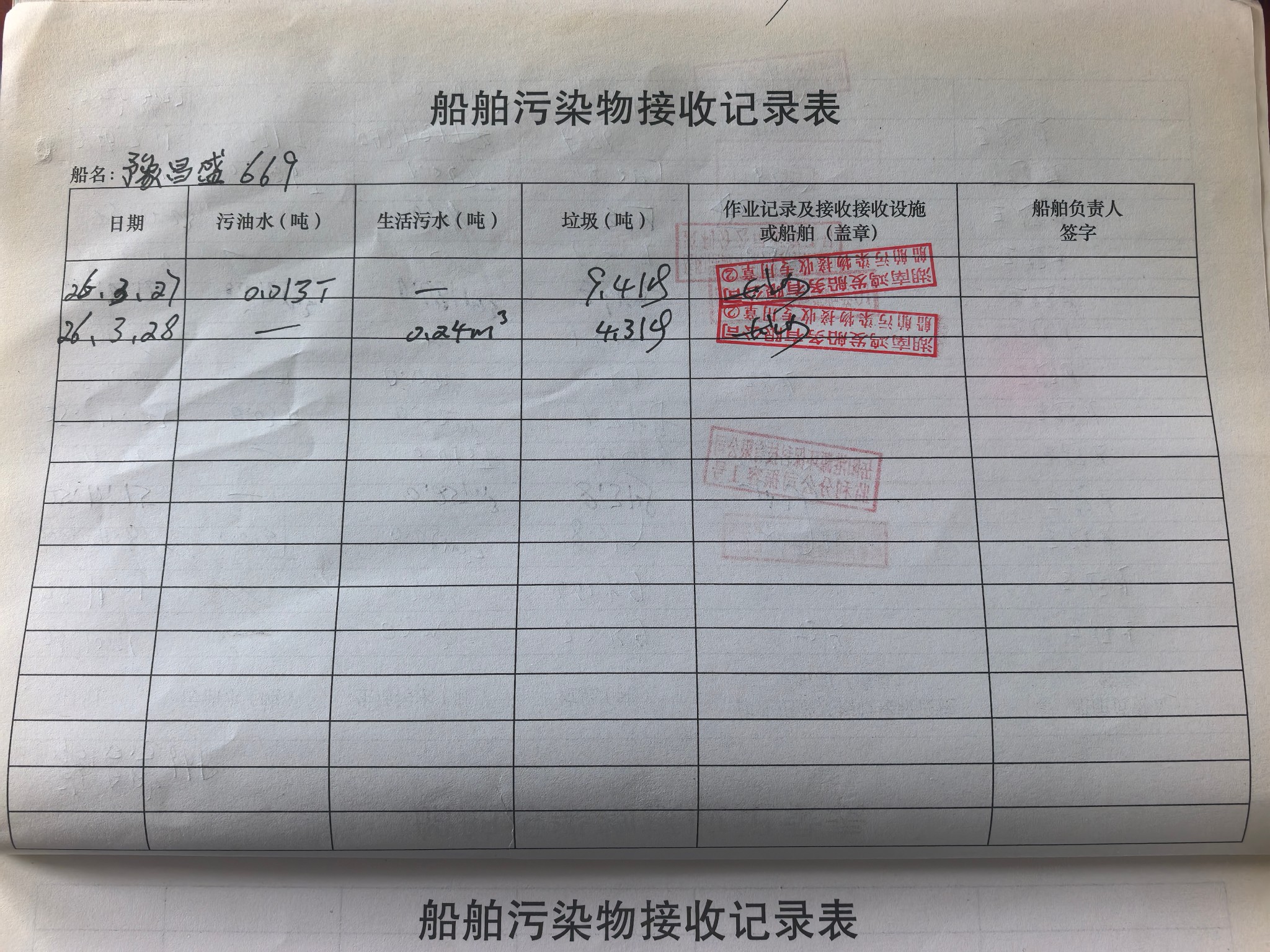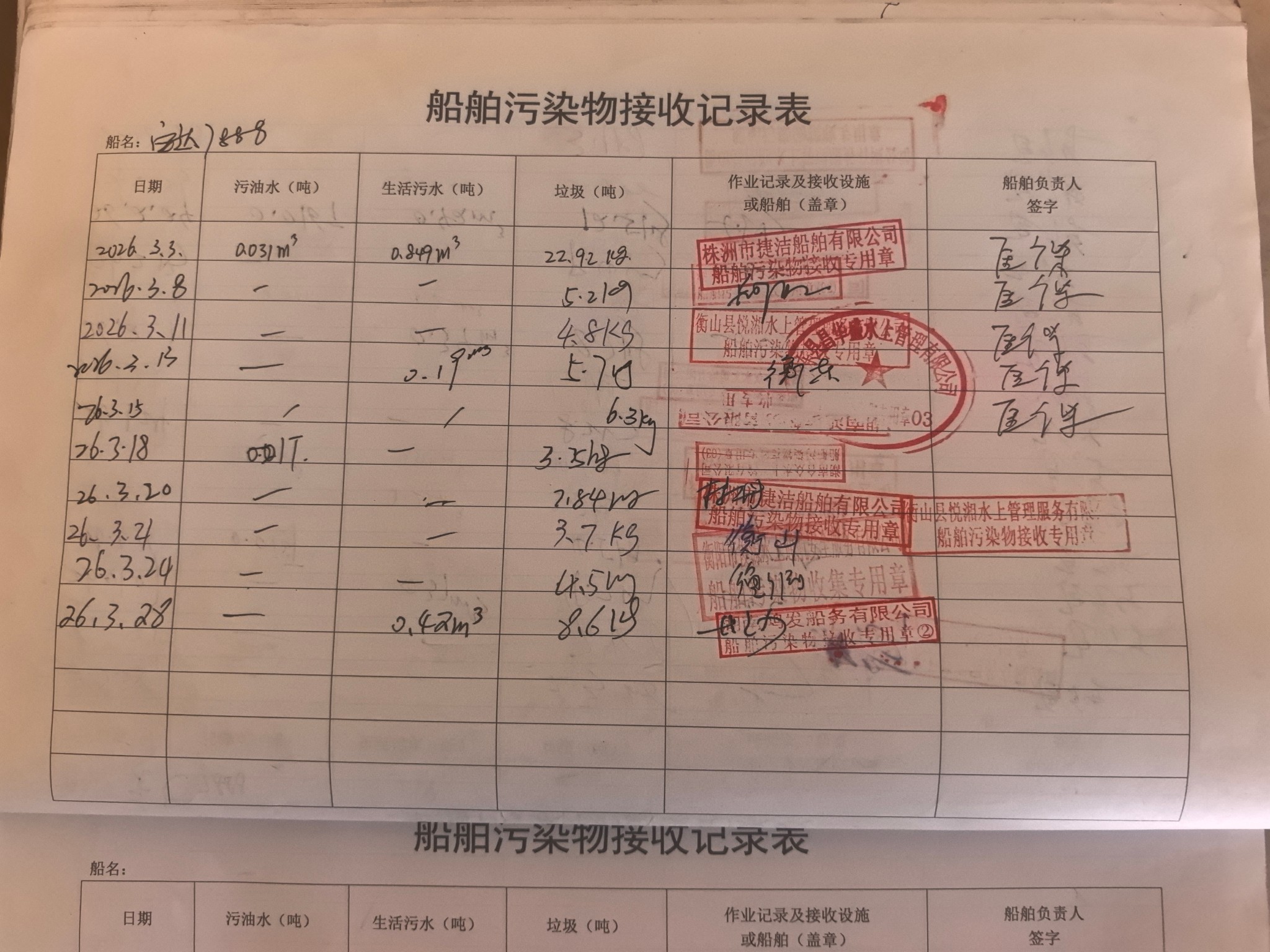 登船台账