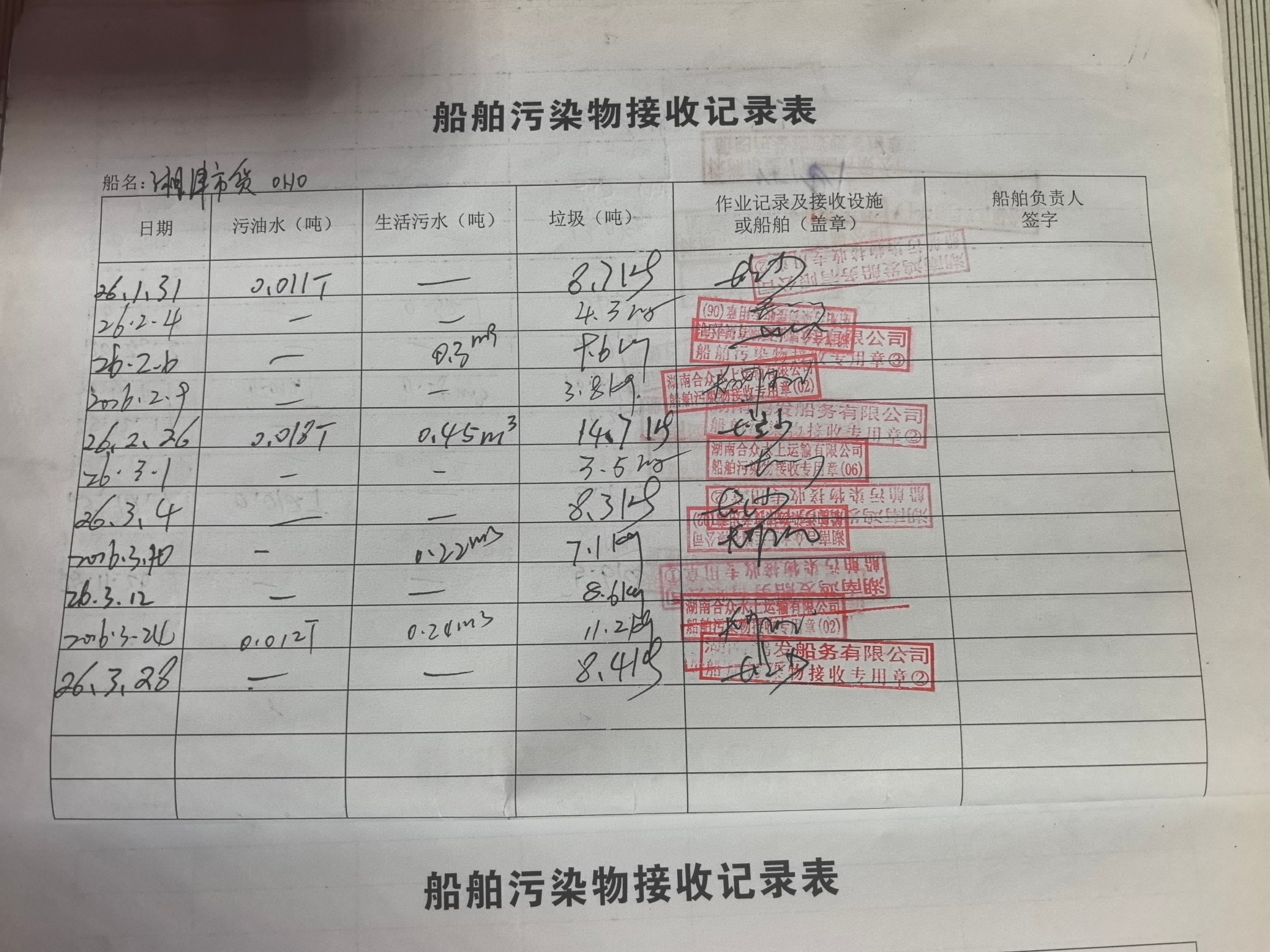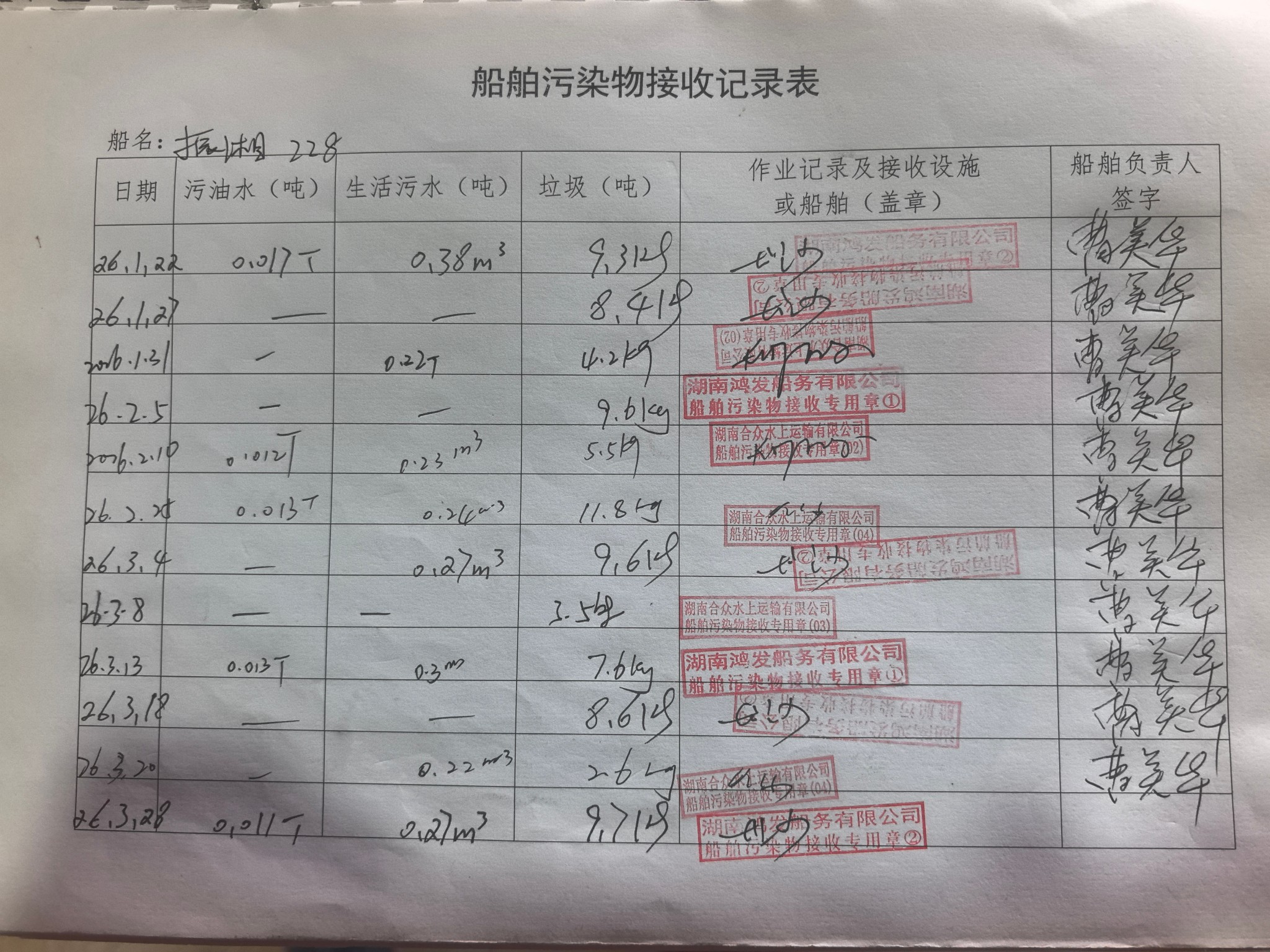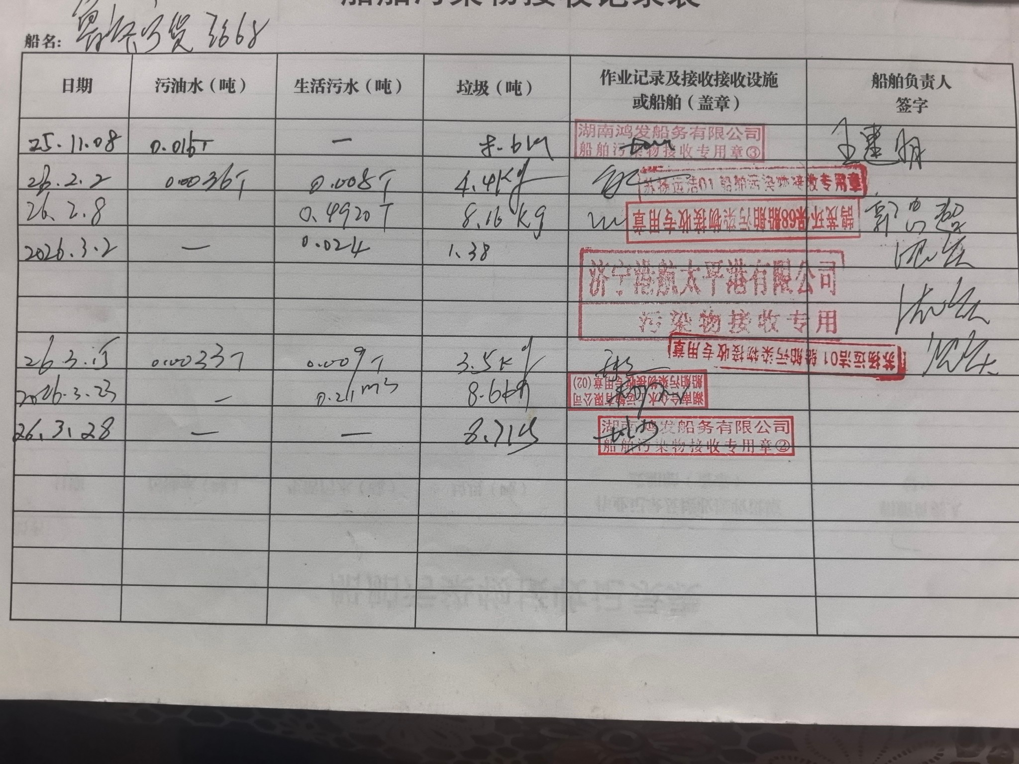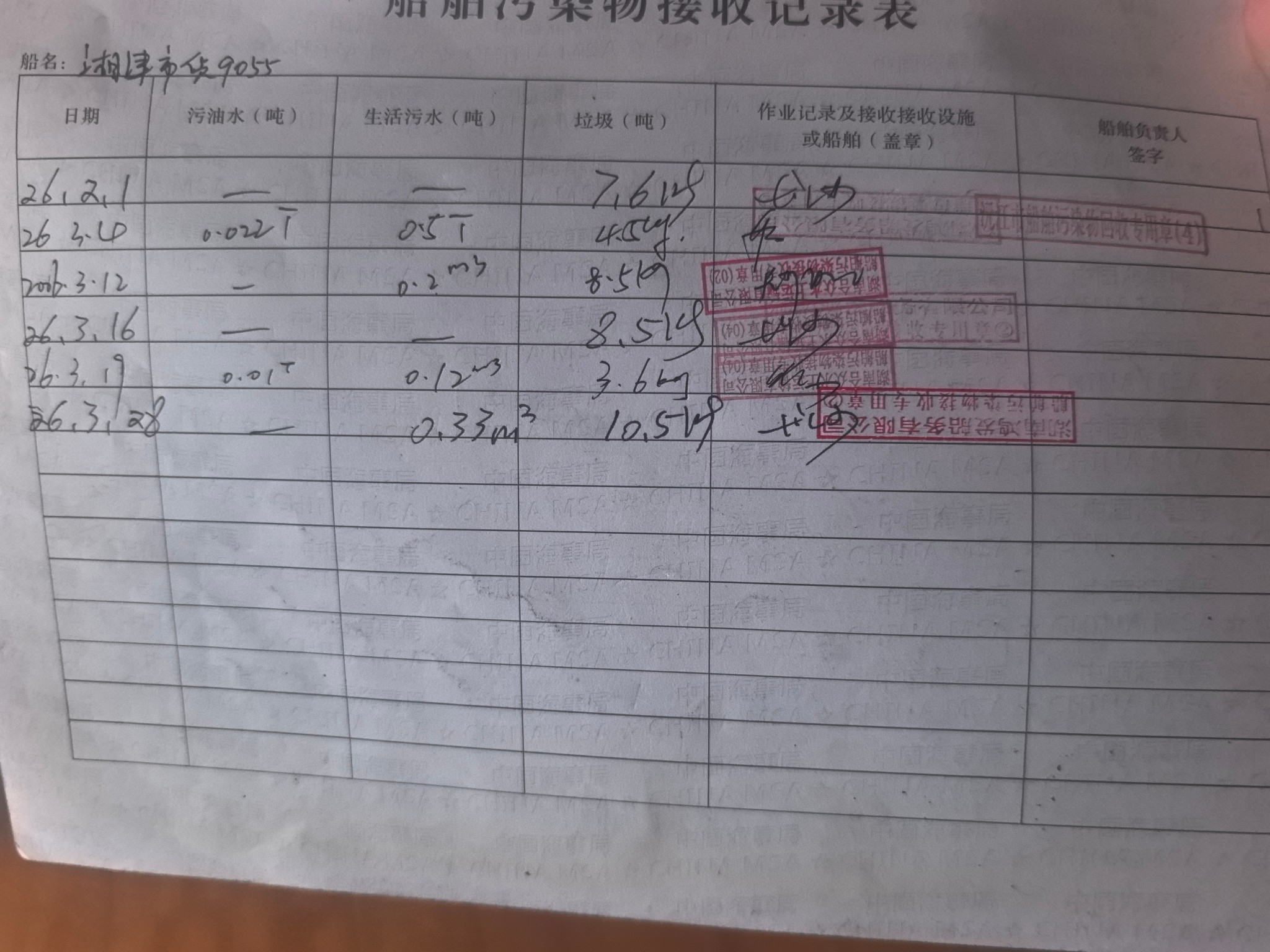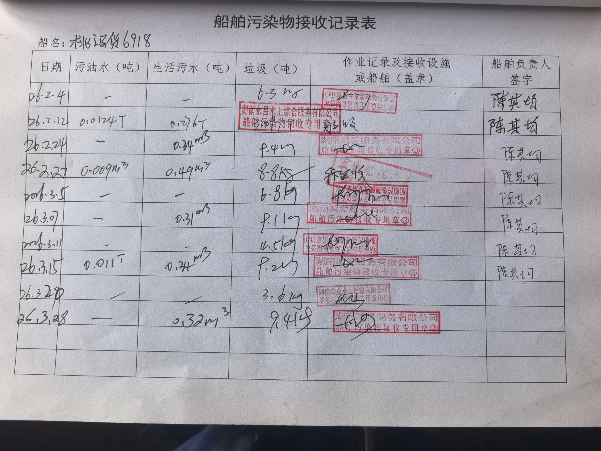 登船台账