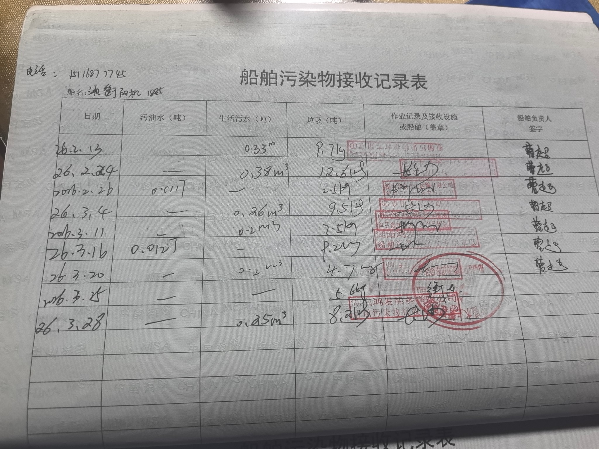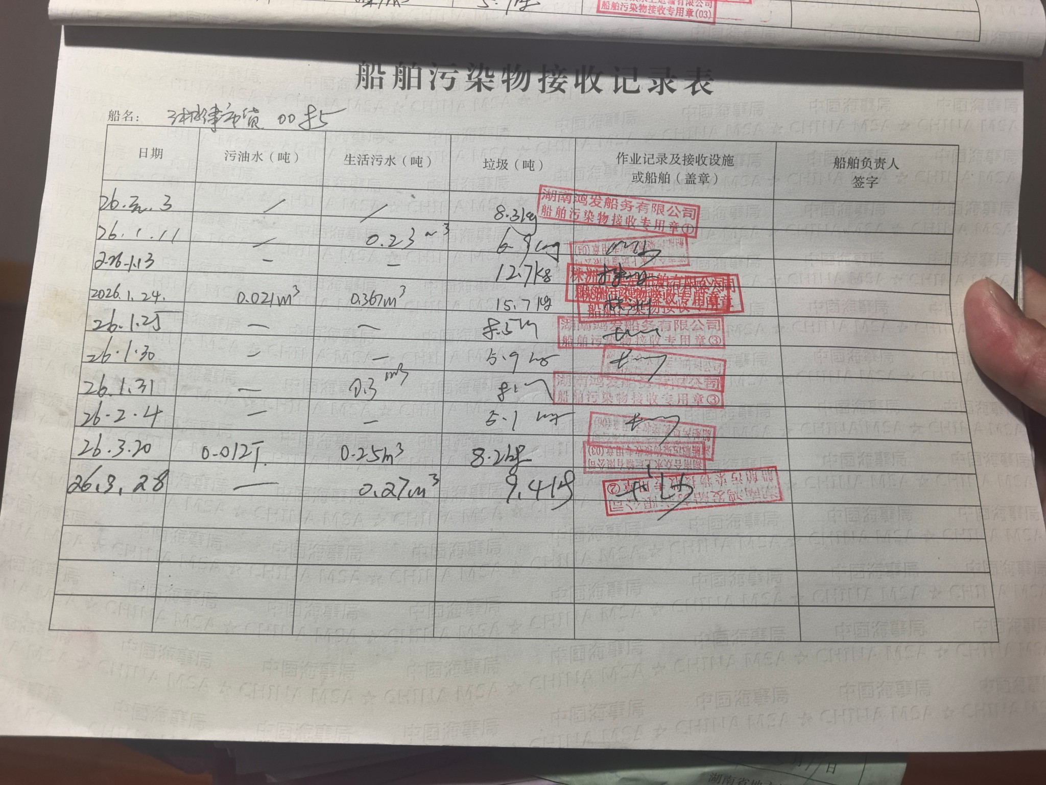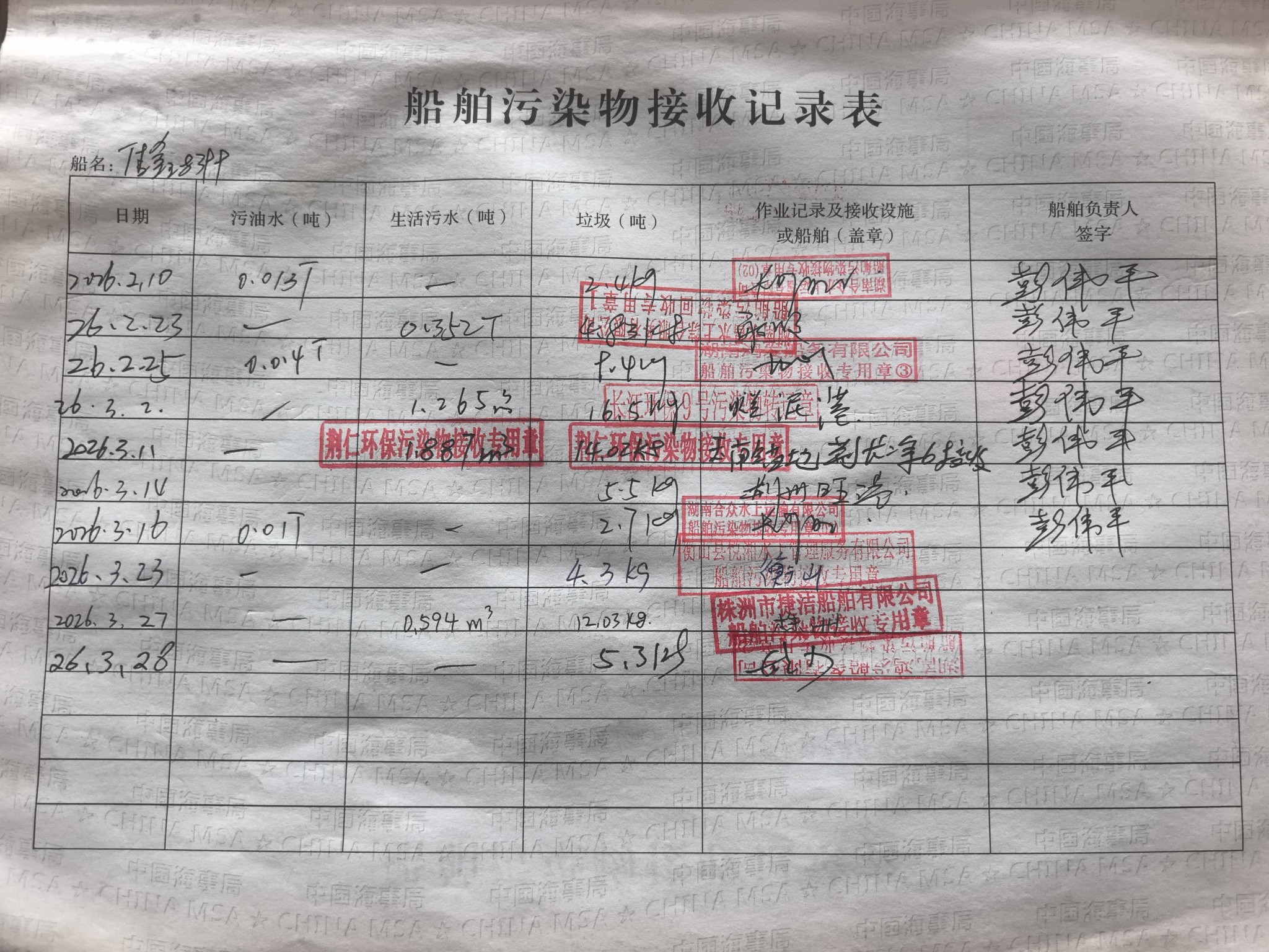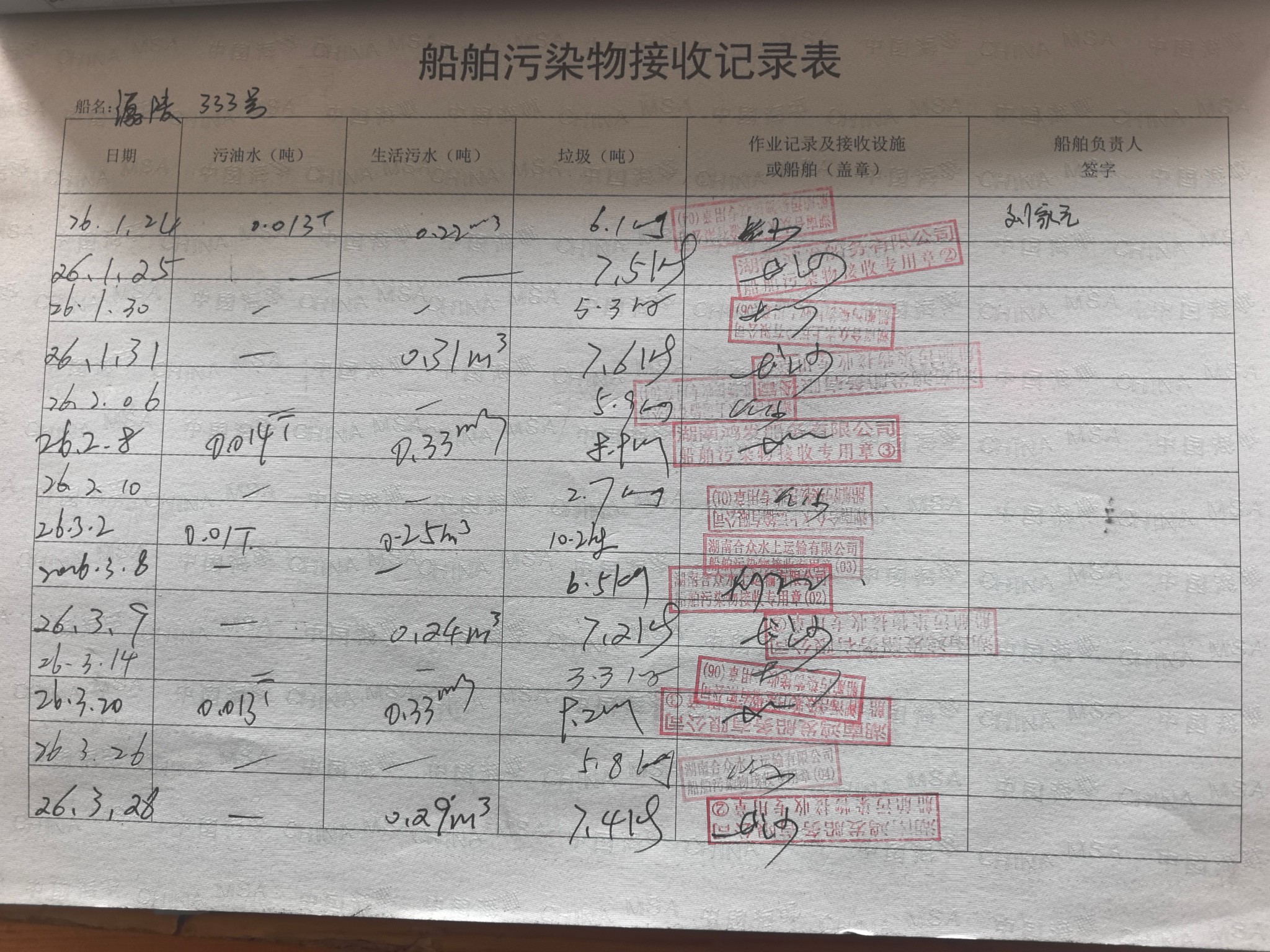 登船台账