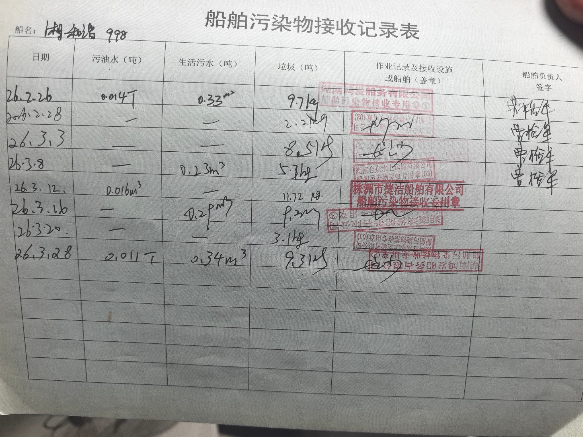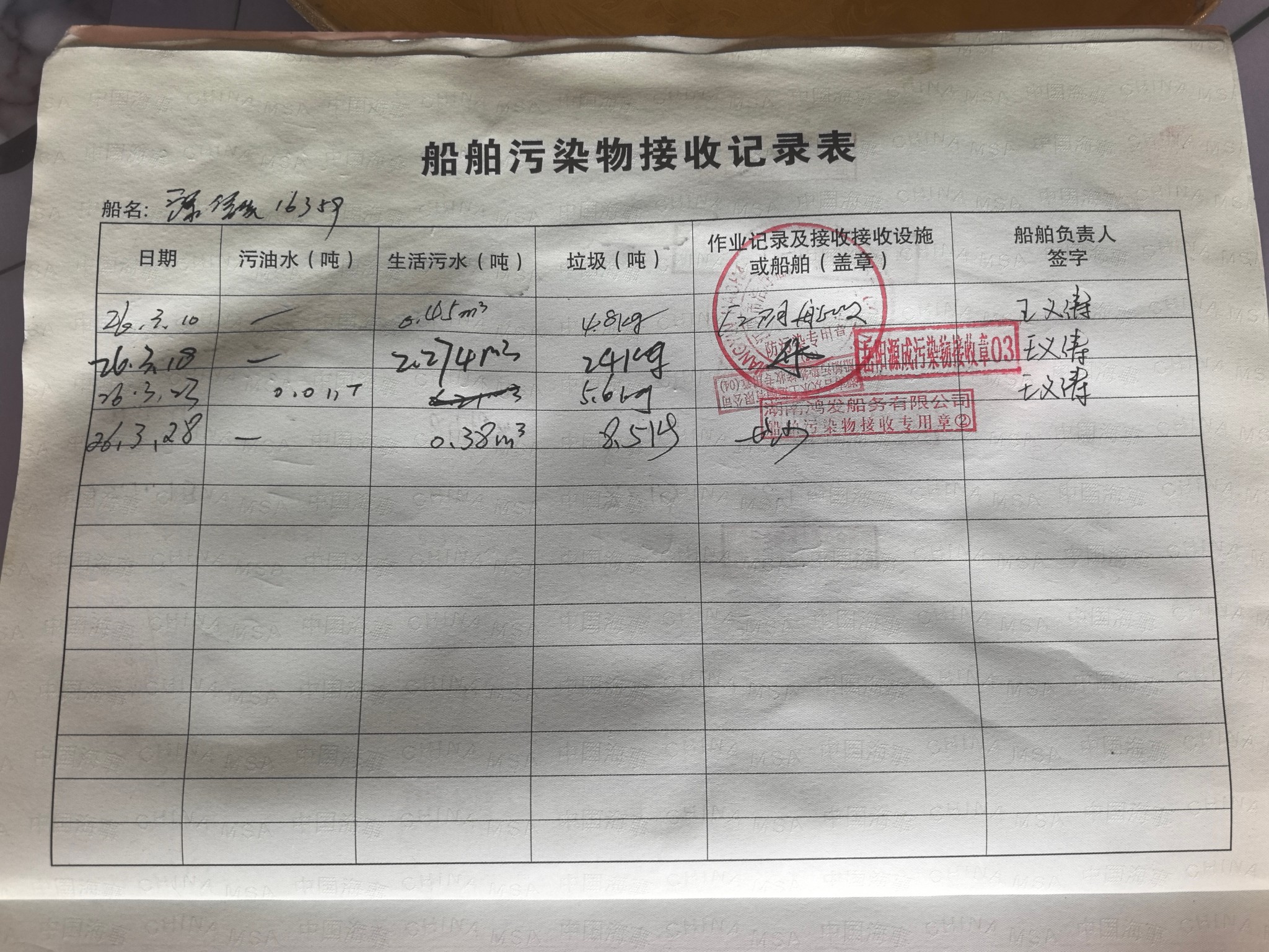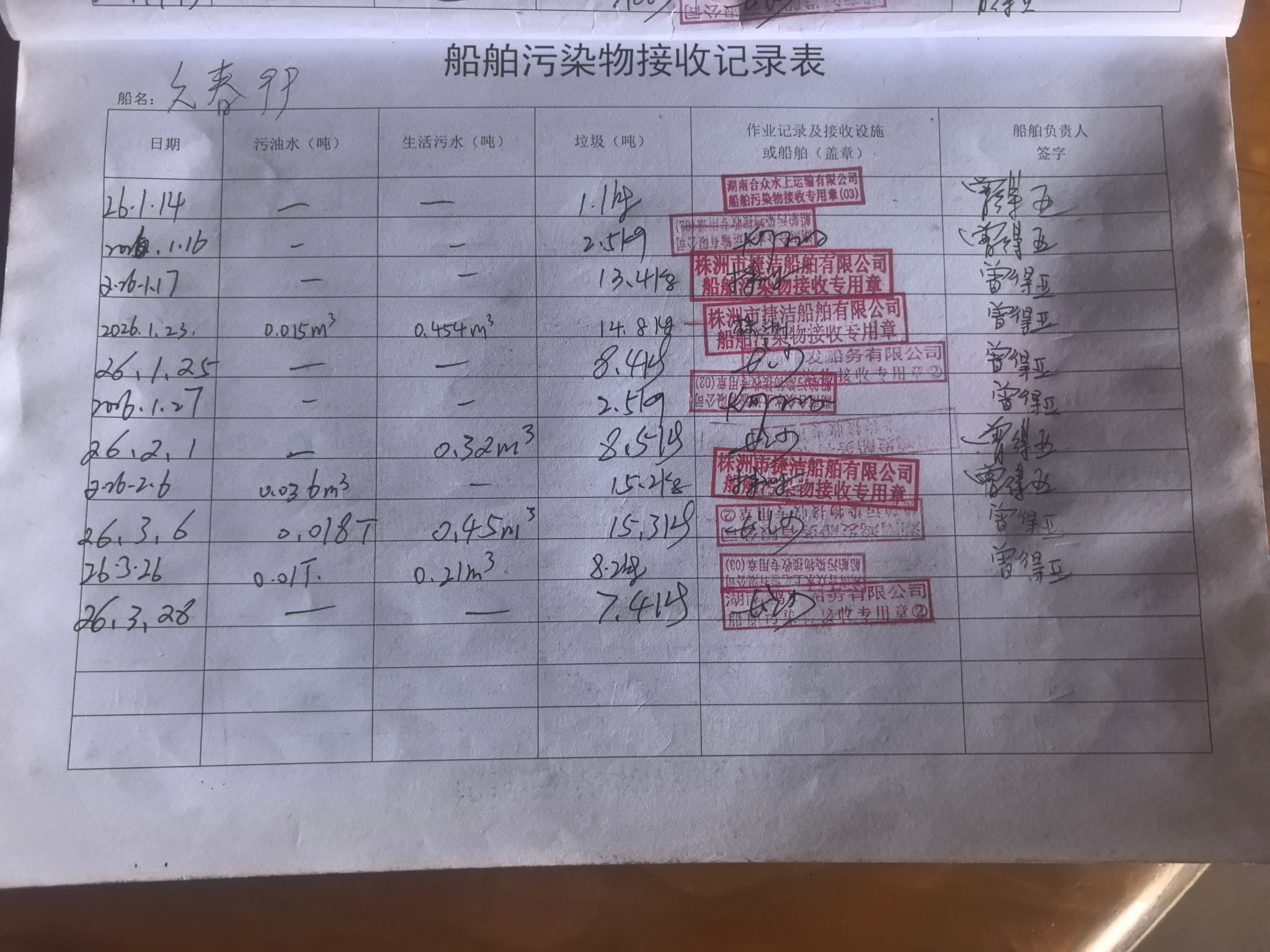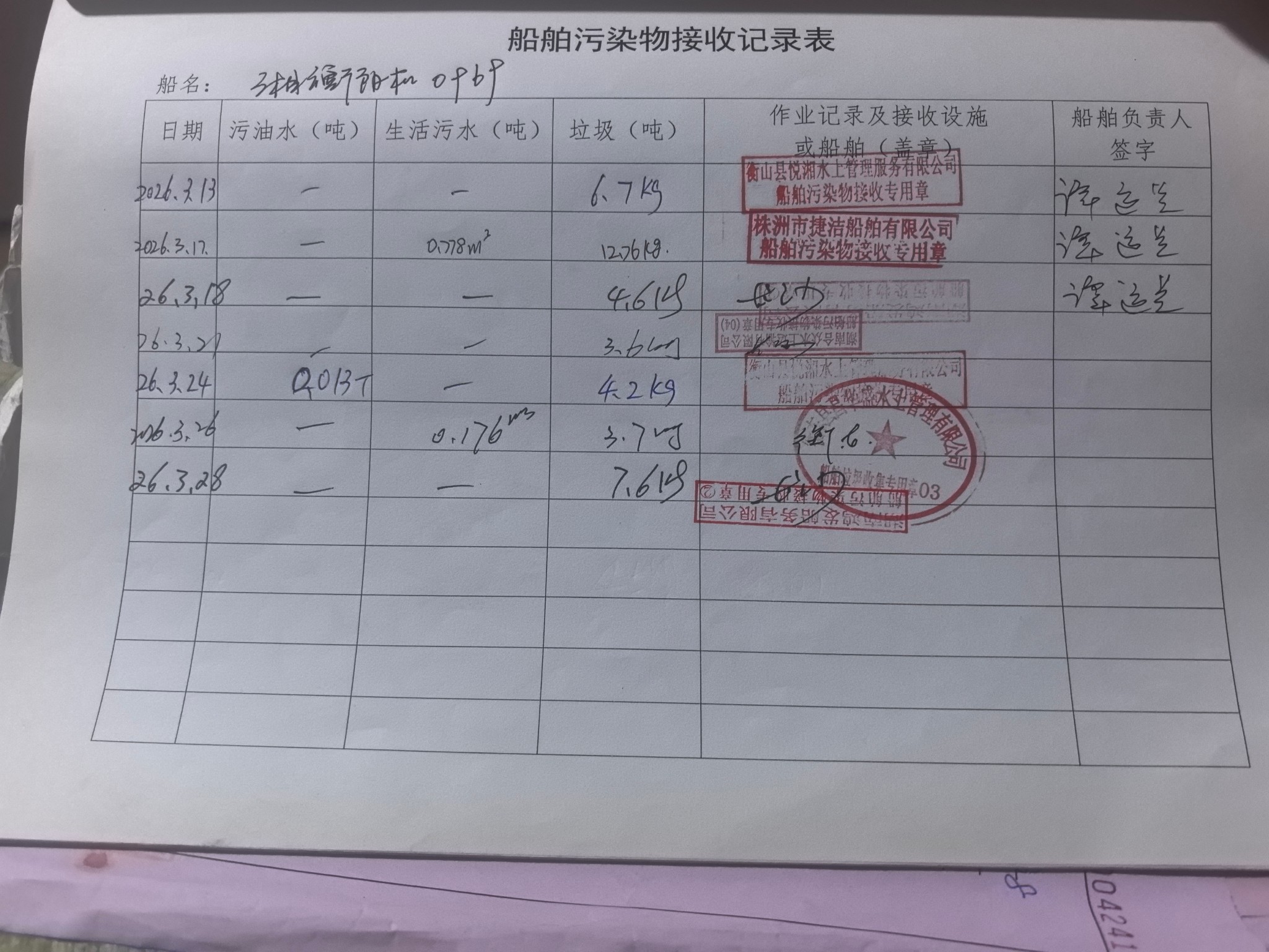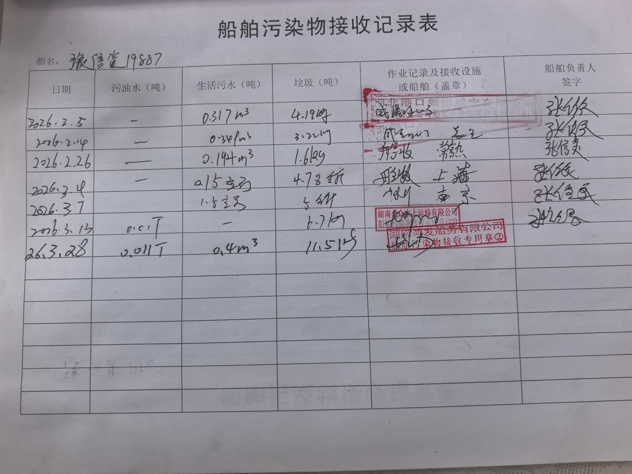 登船台账