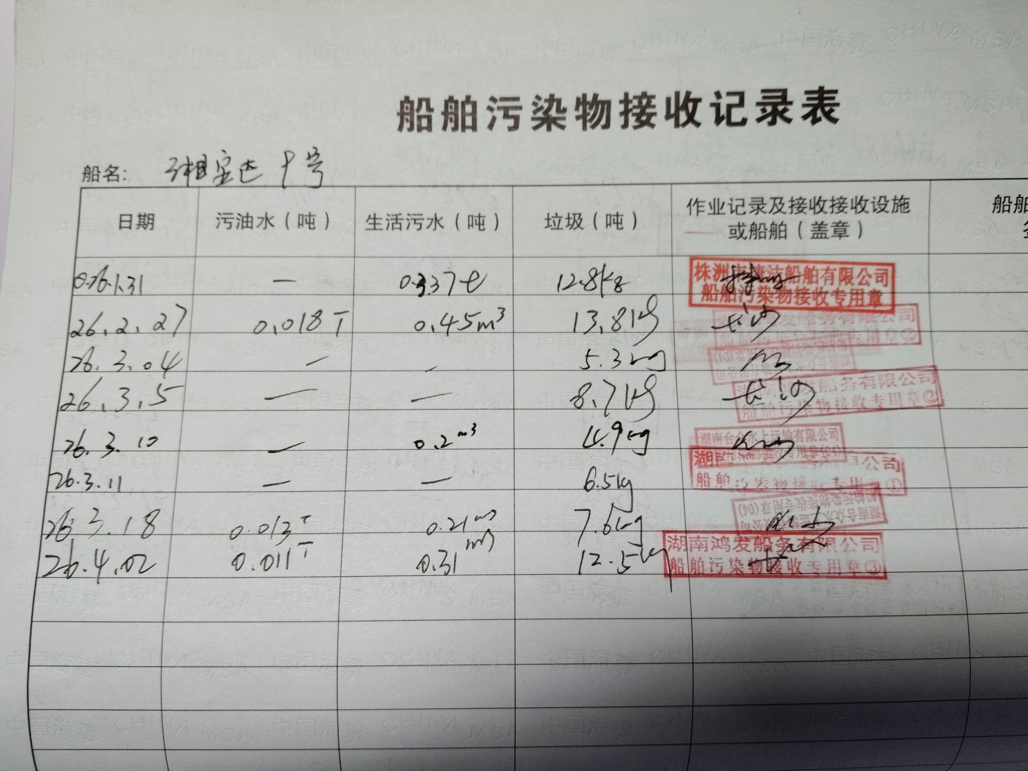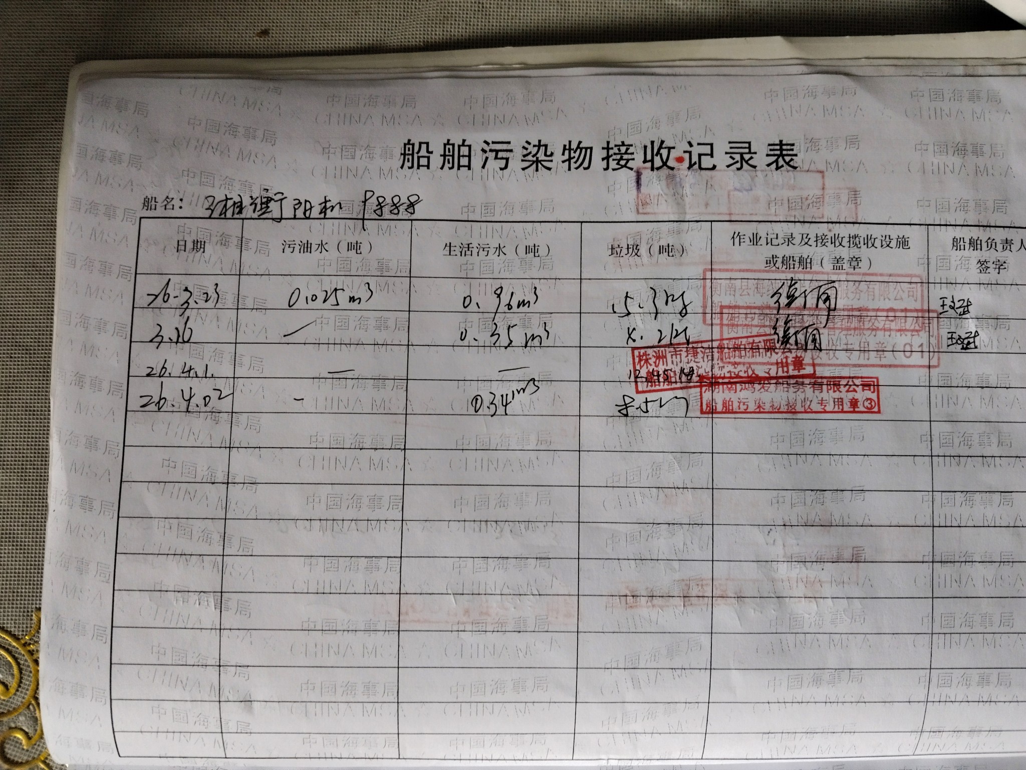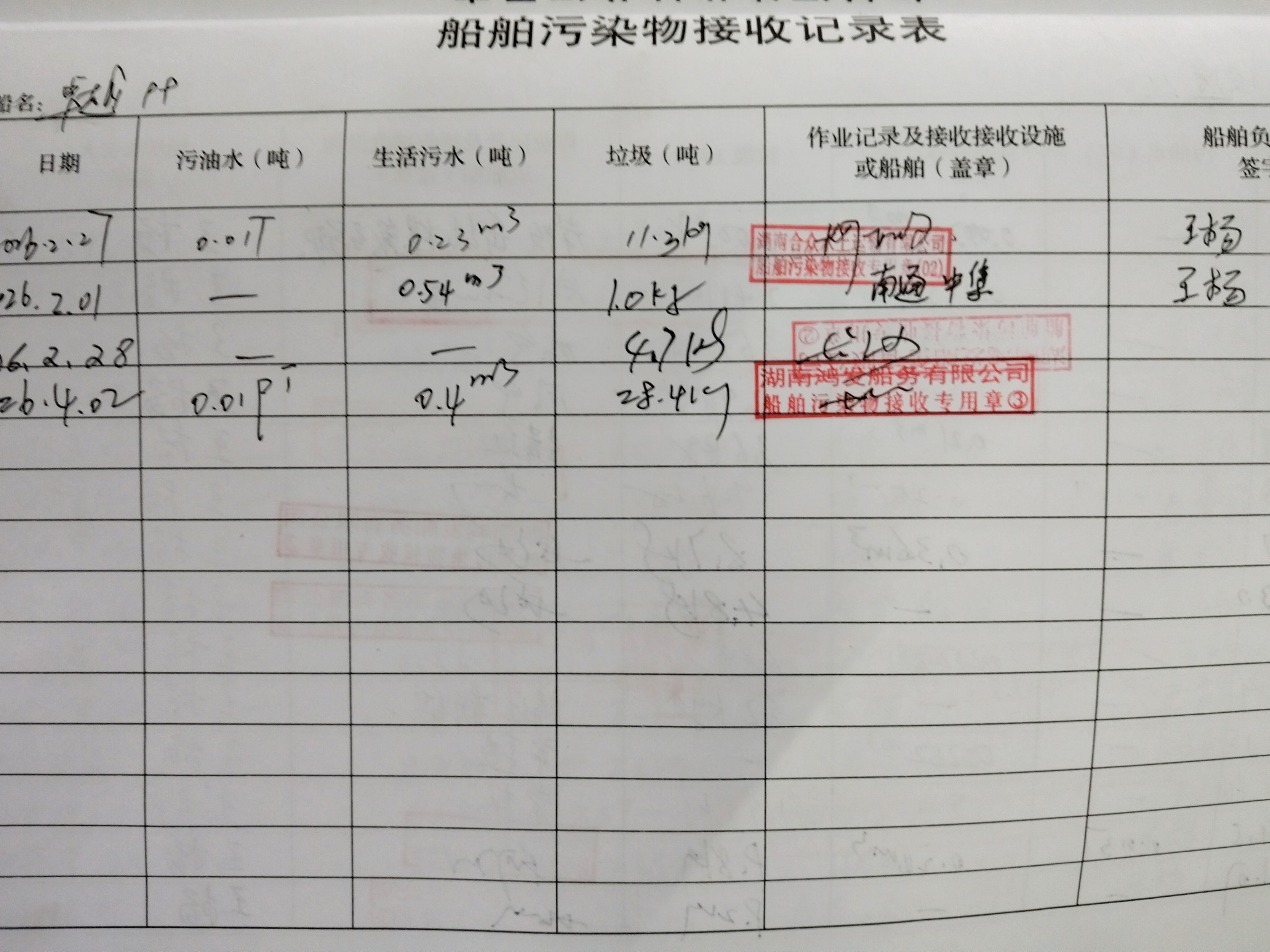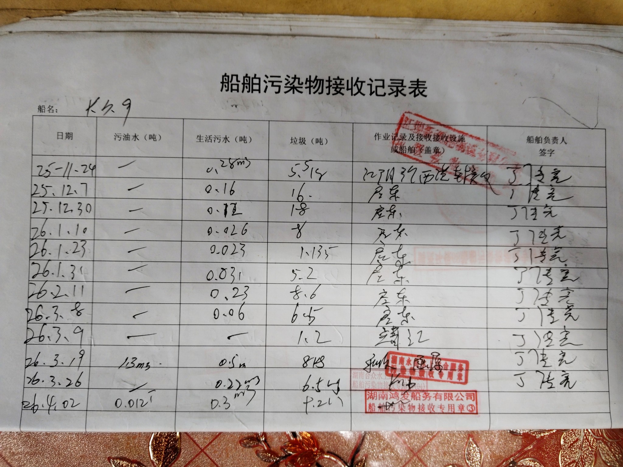 登船台账