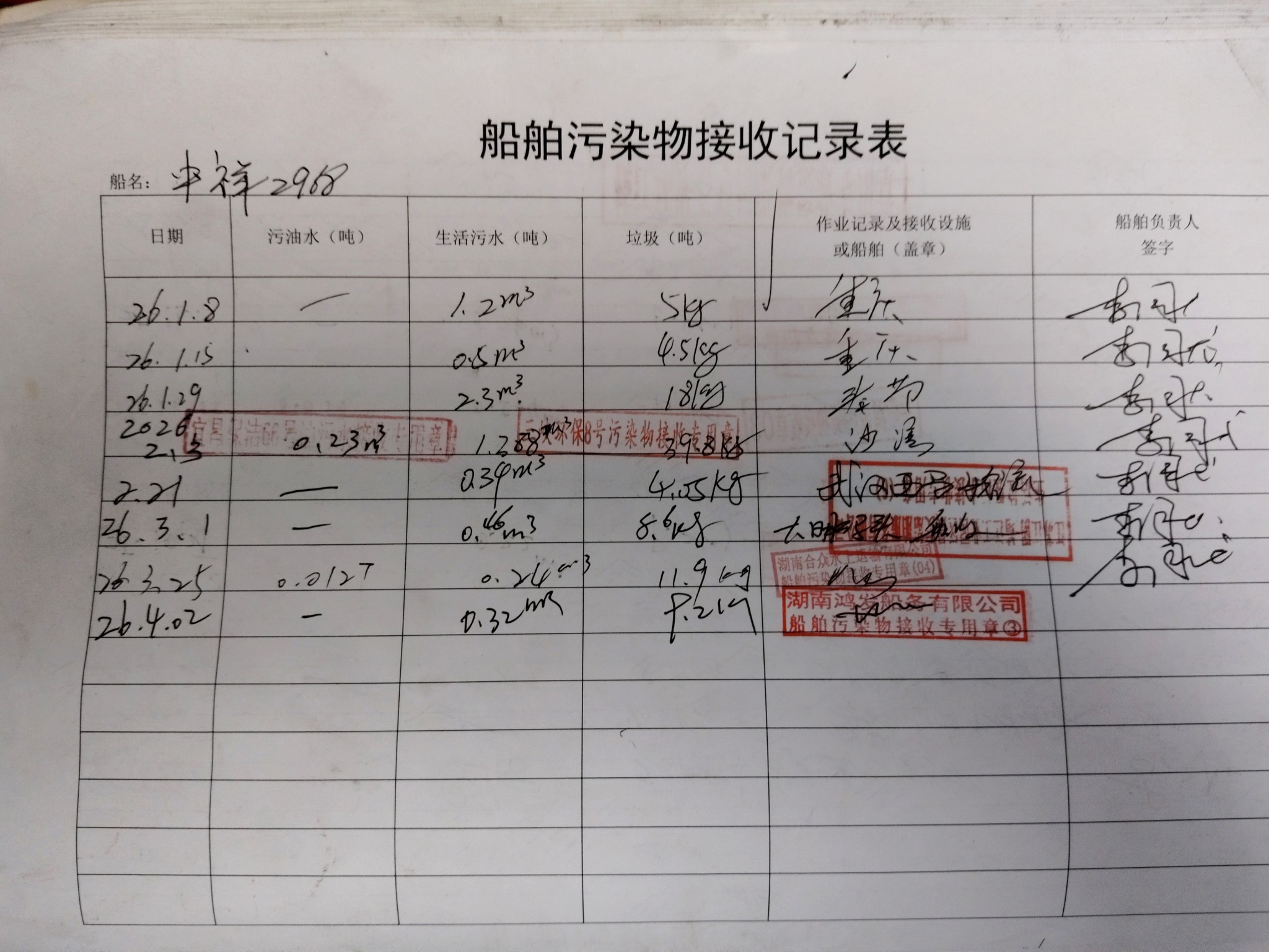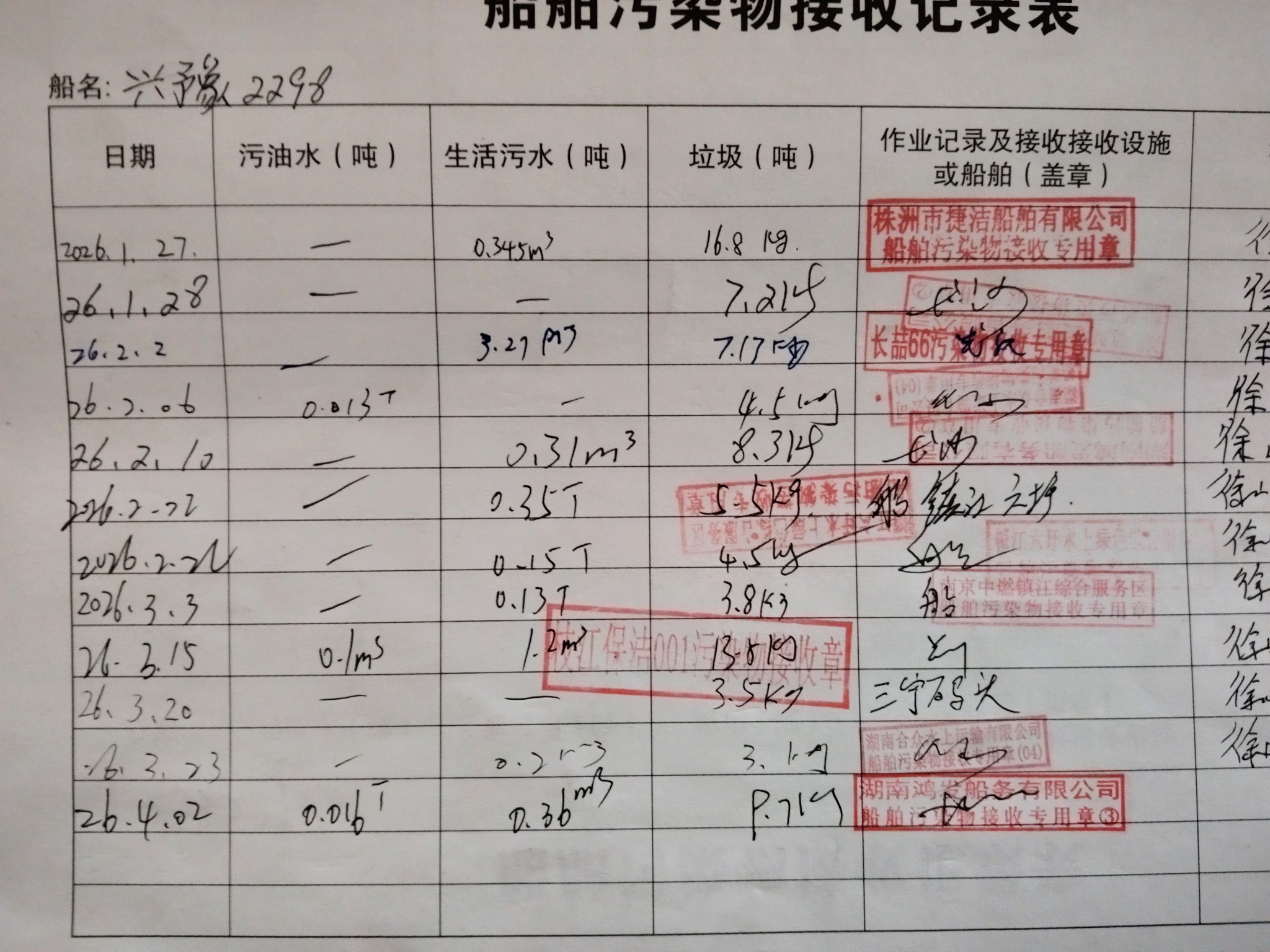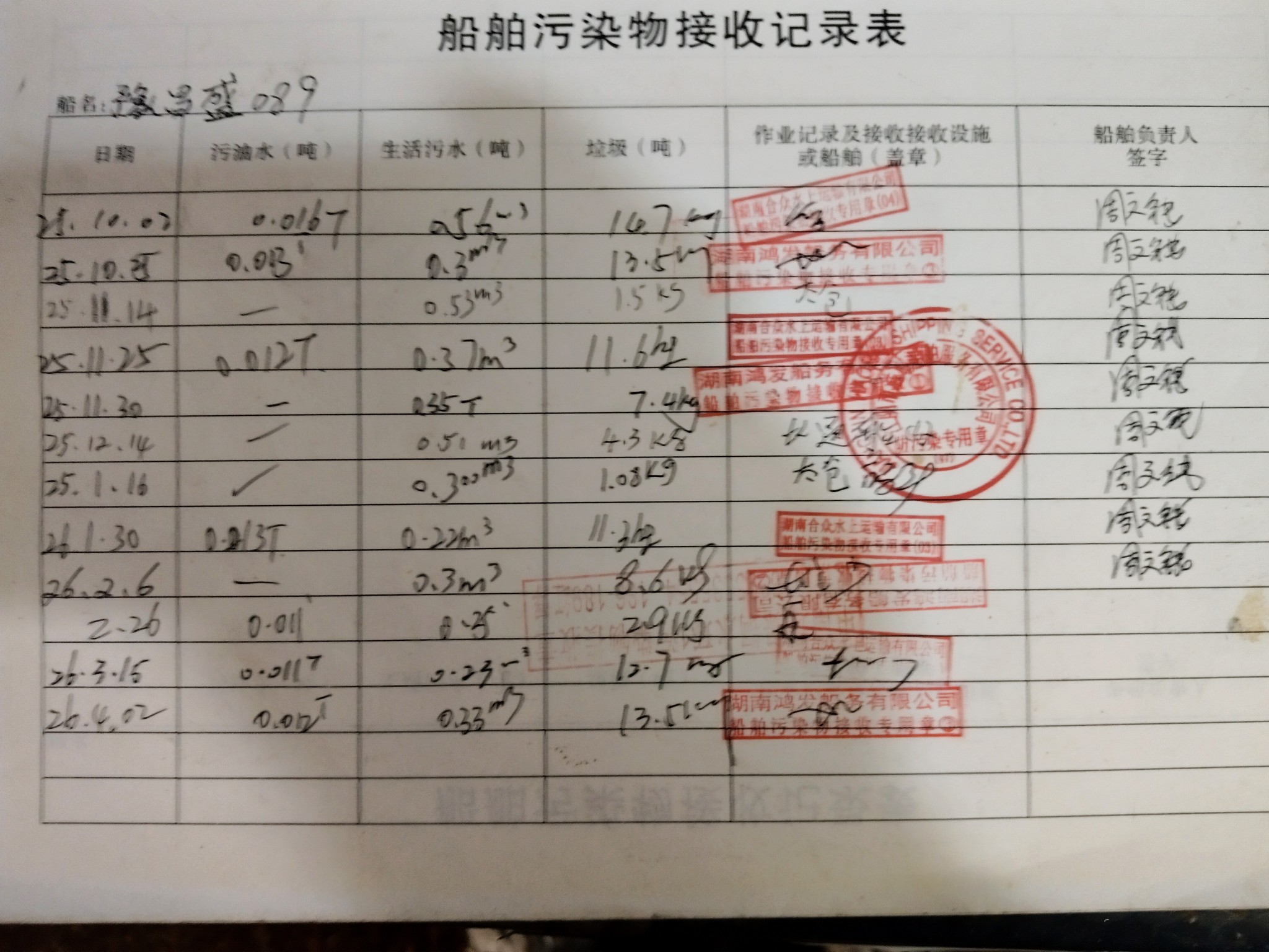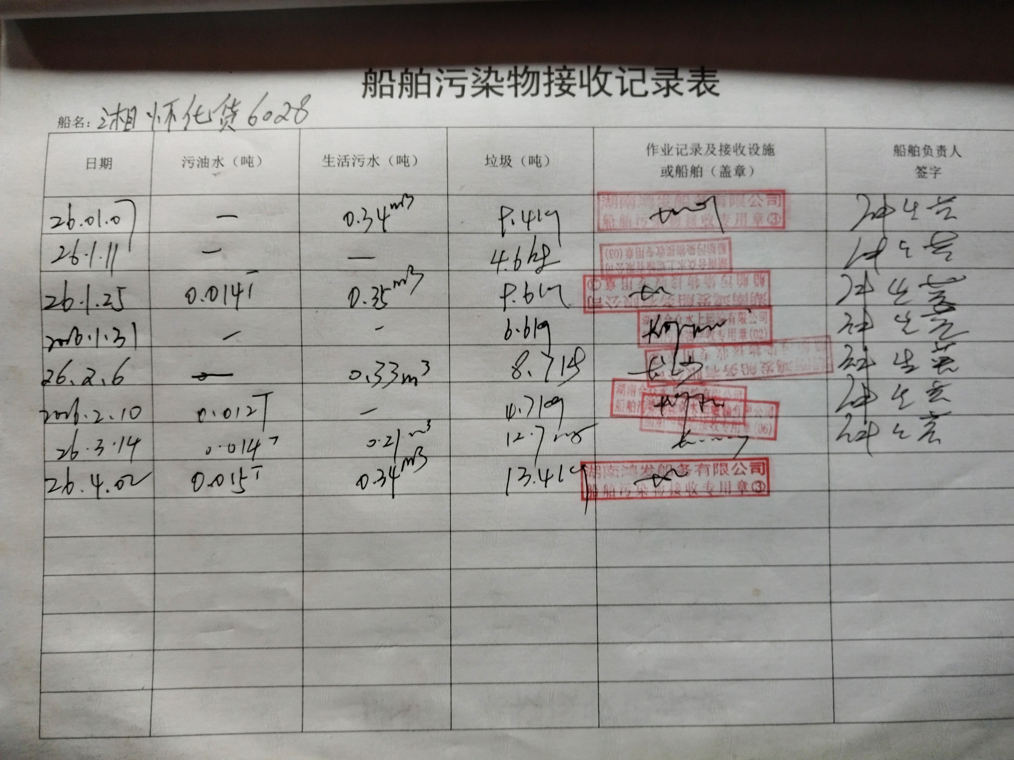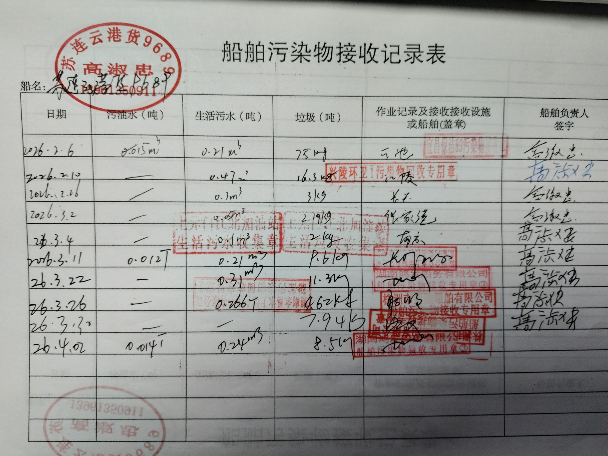 登船台账