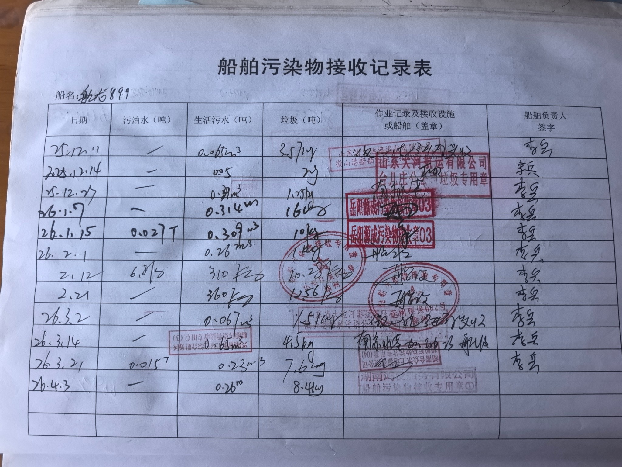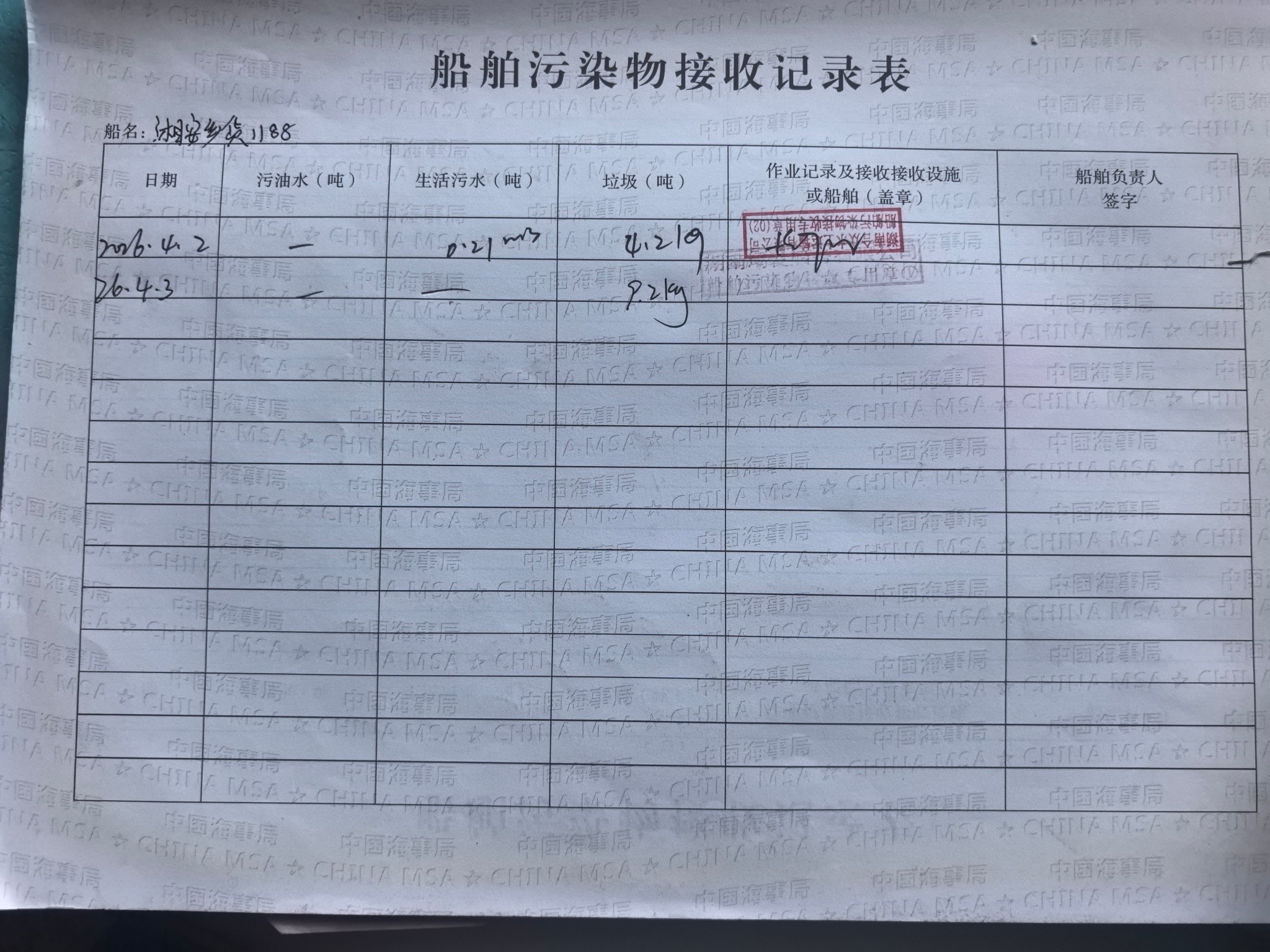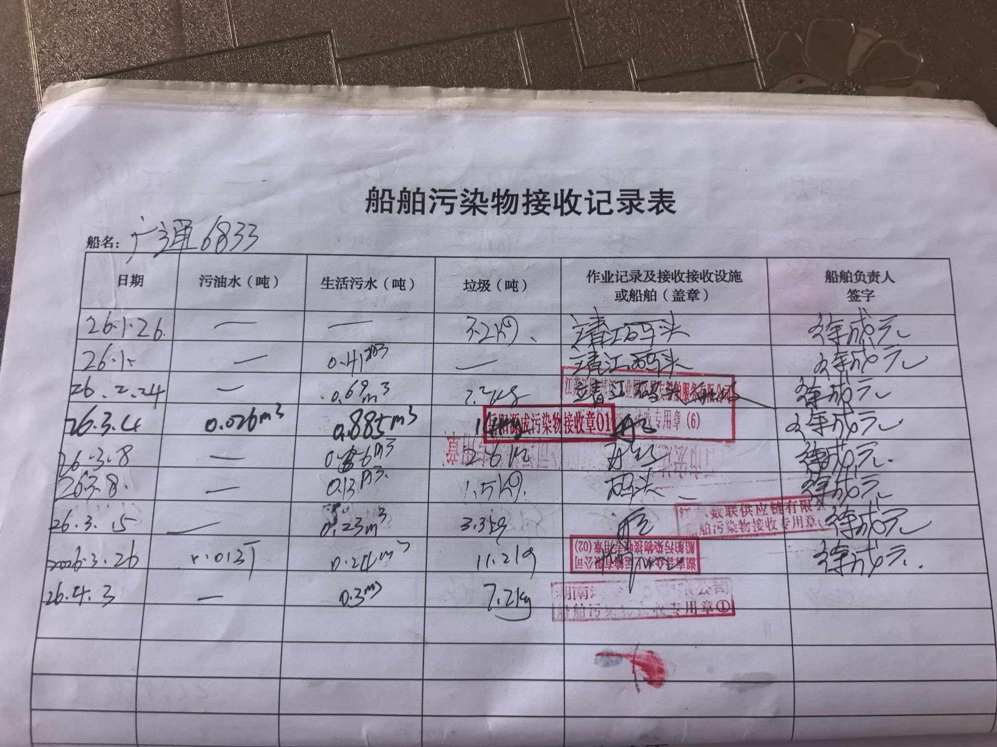 登船台账