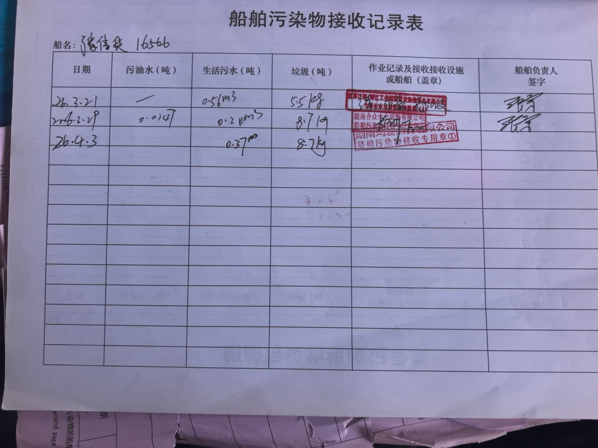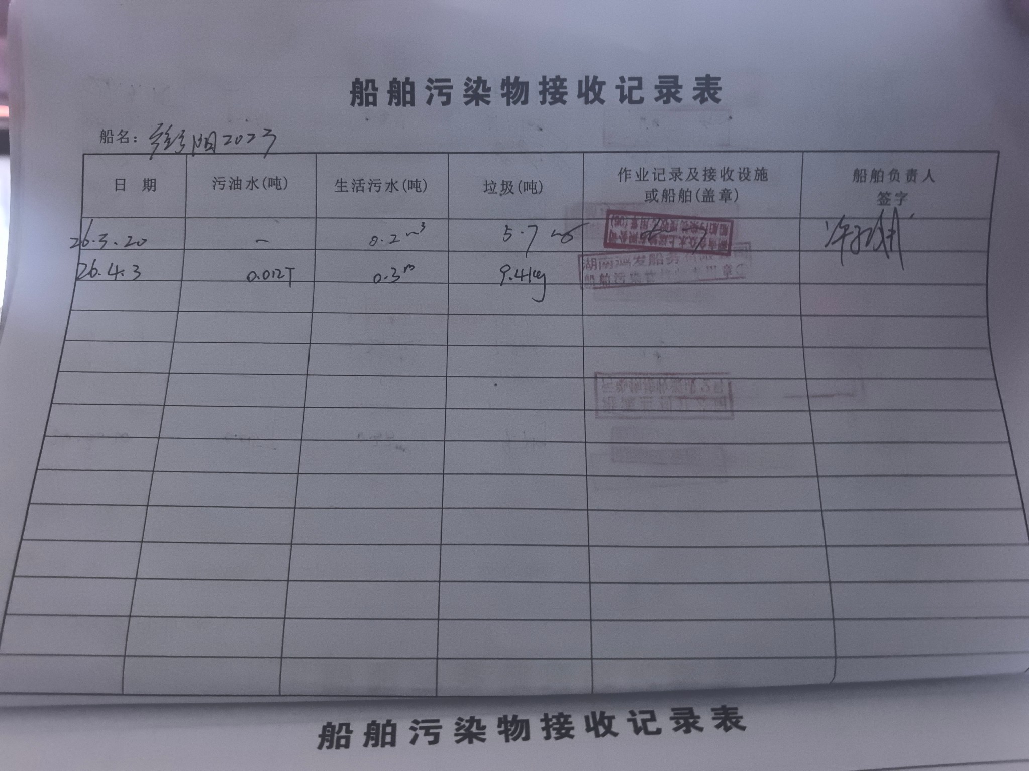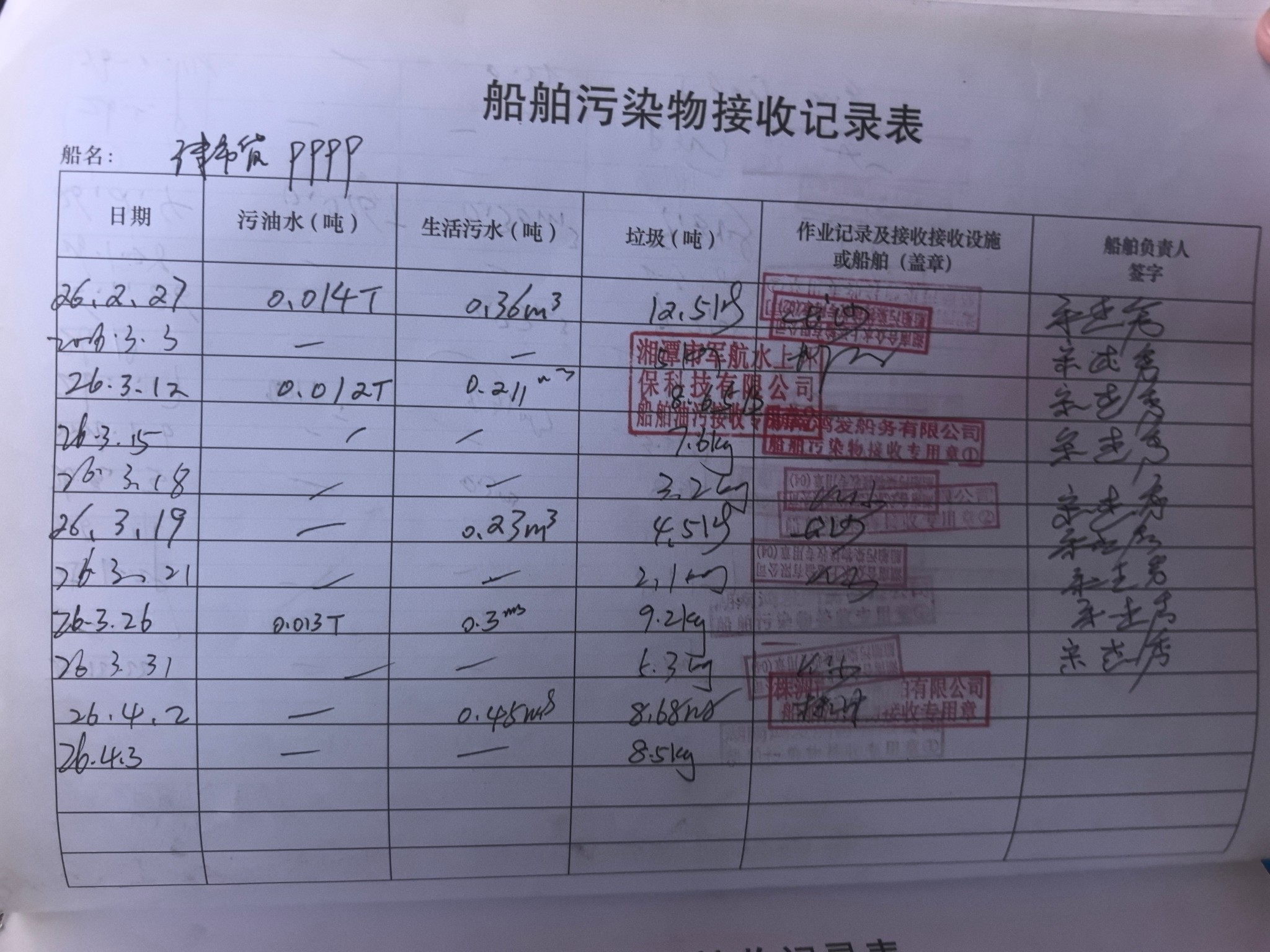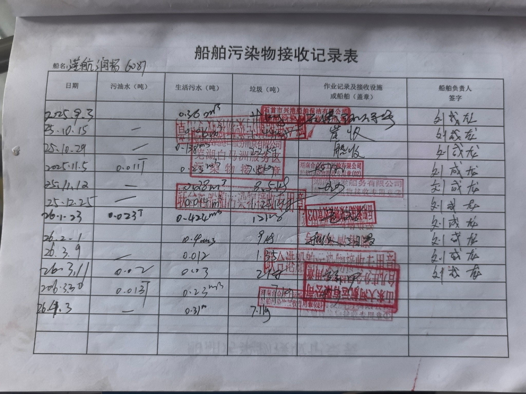 登船台账