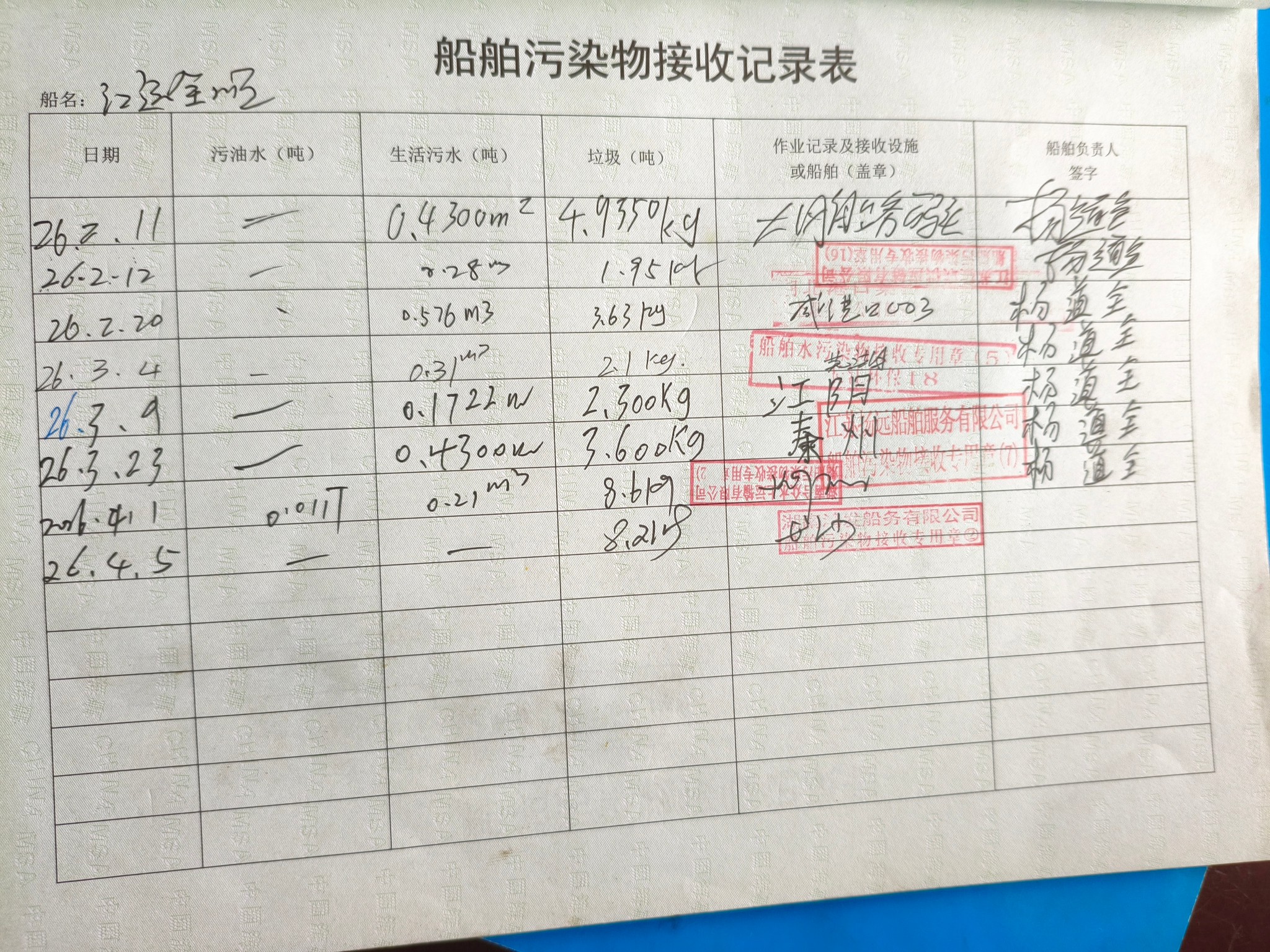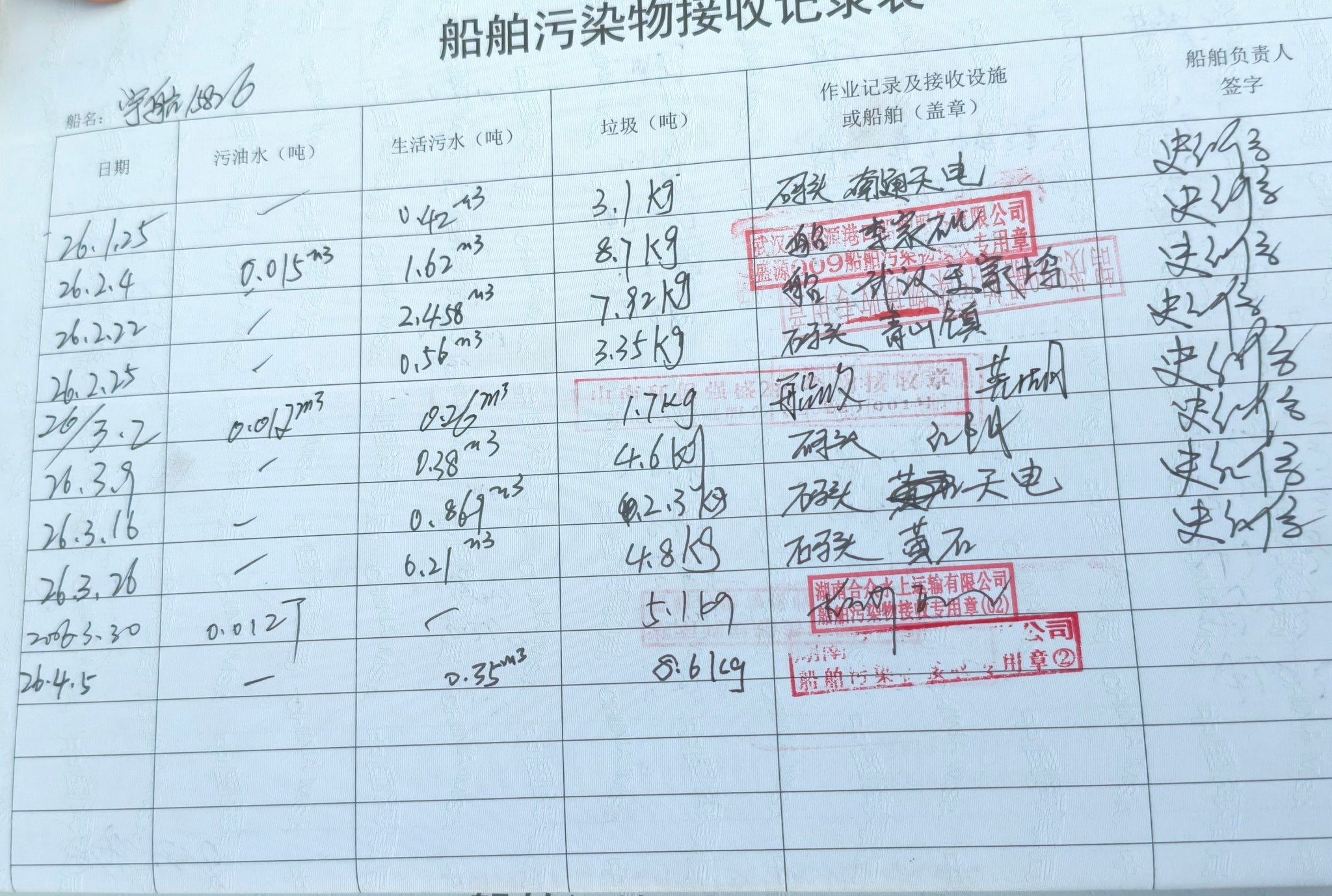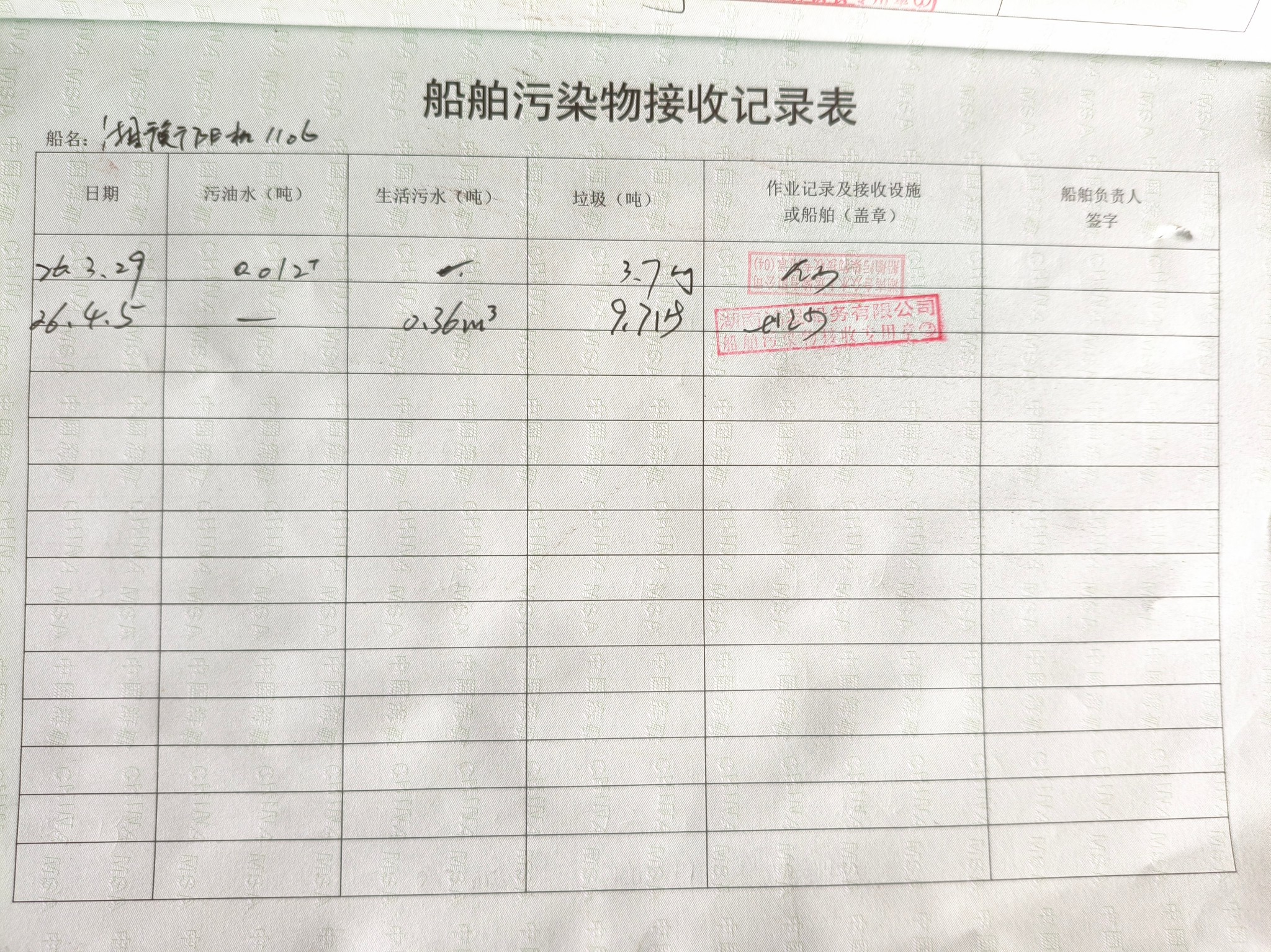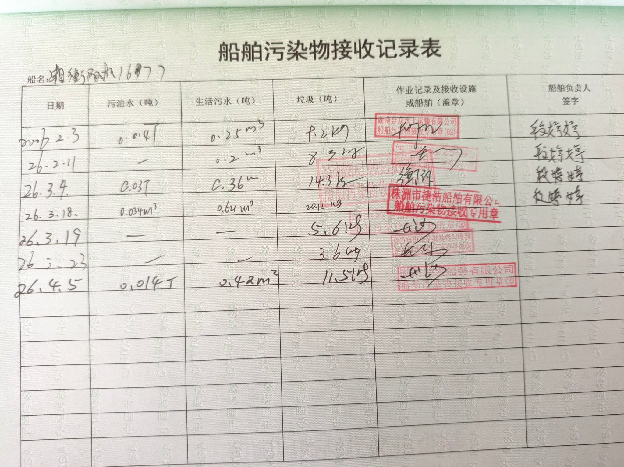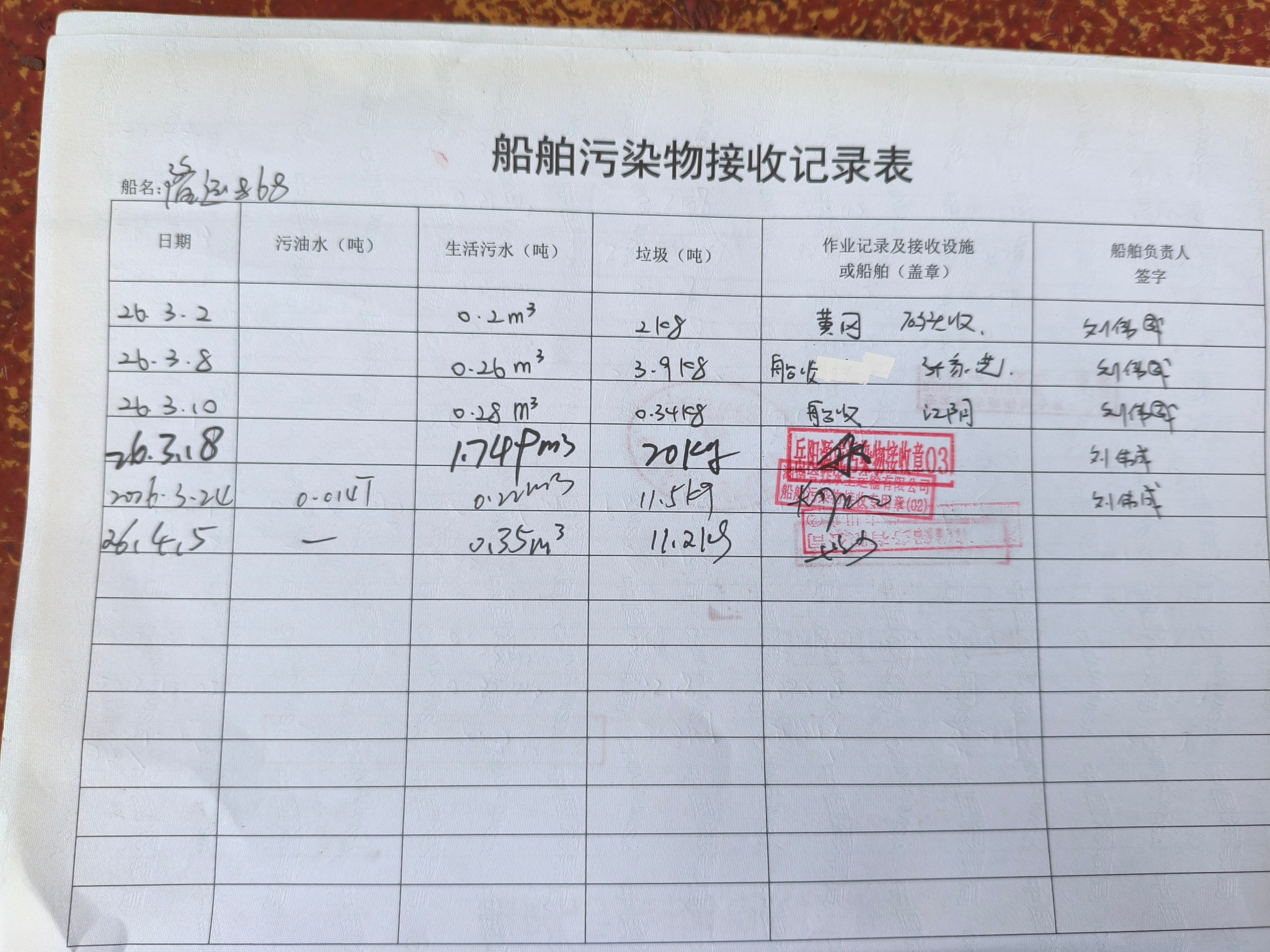 登船台账