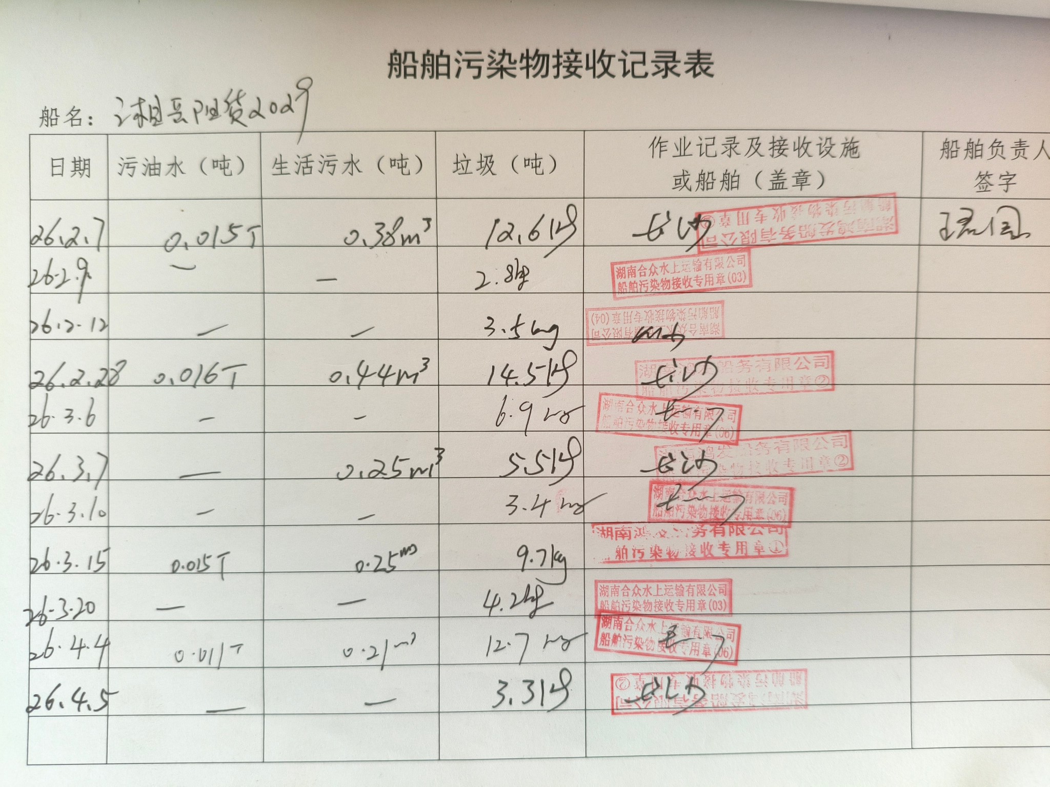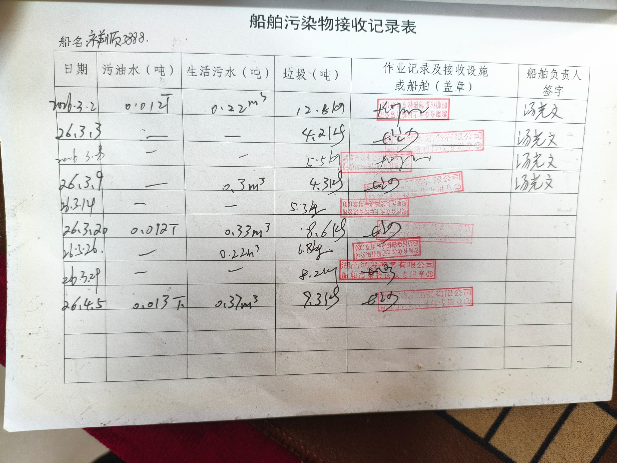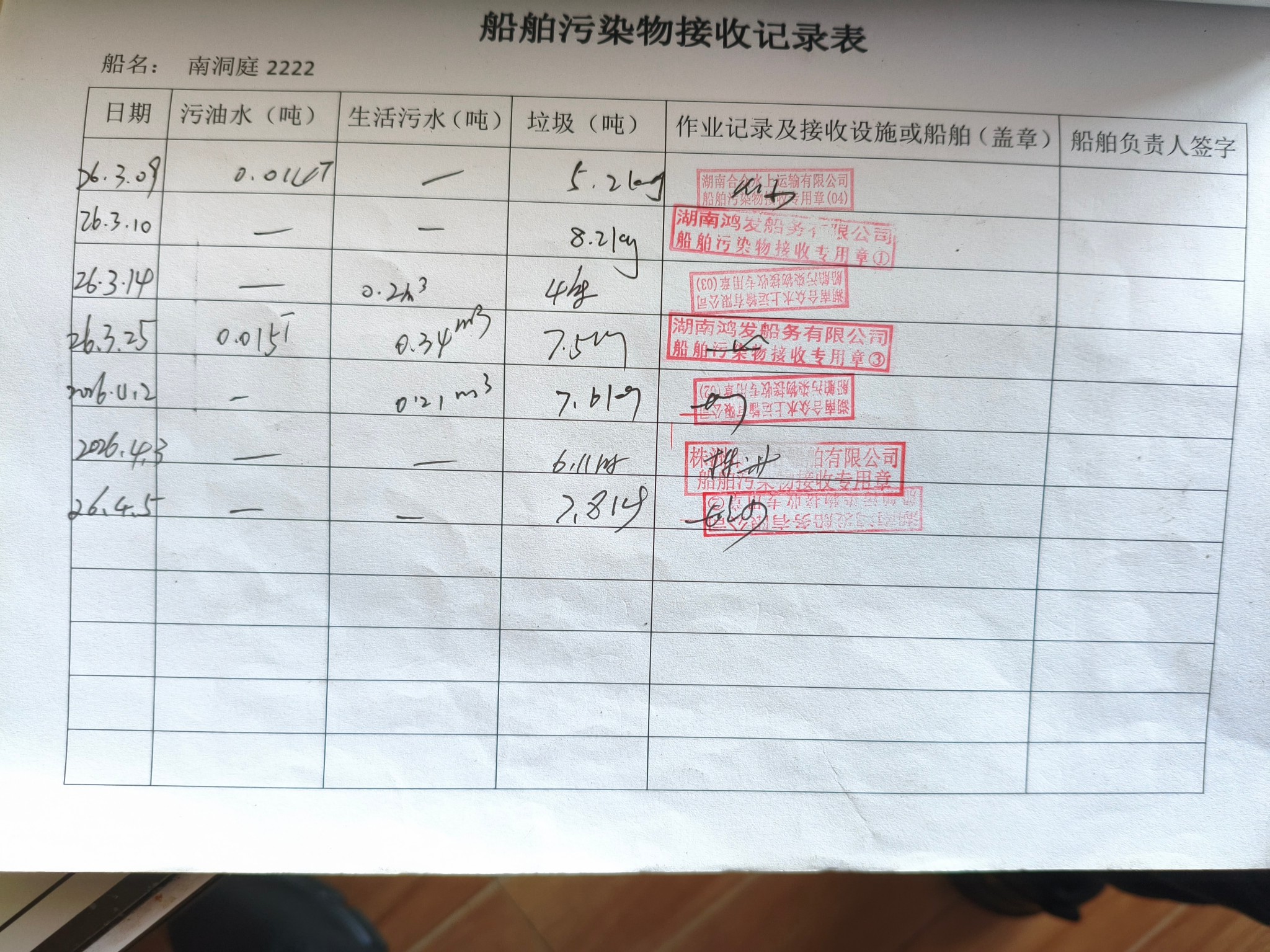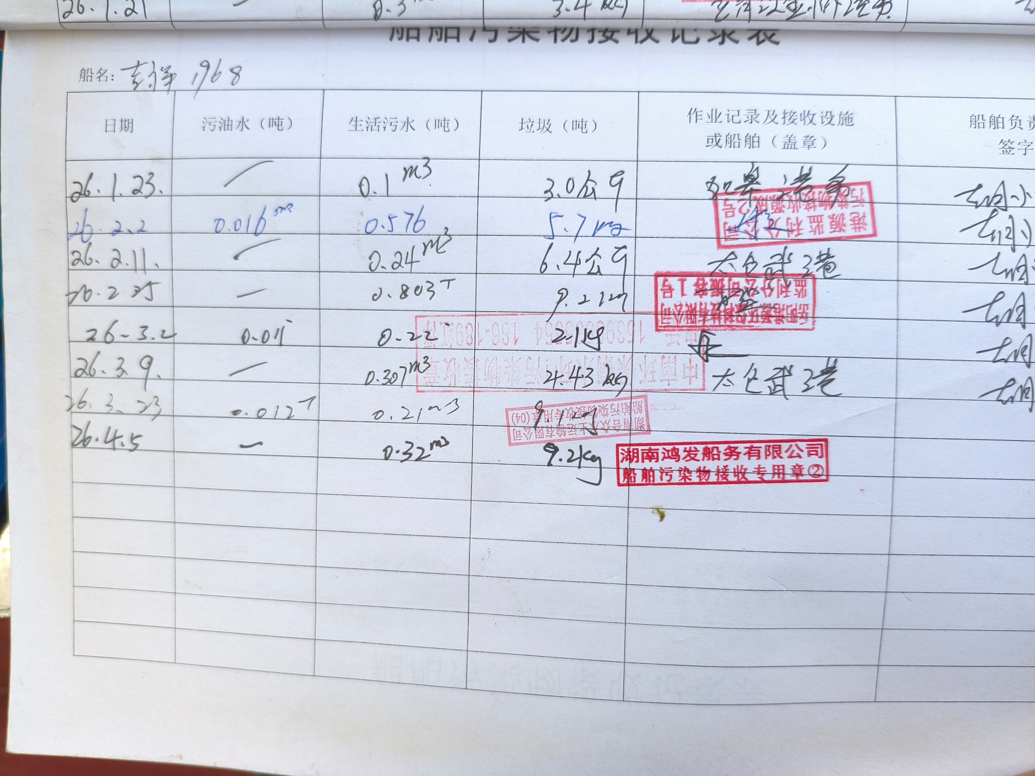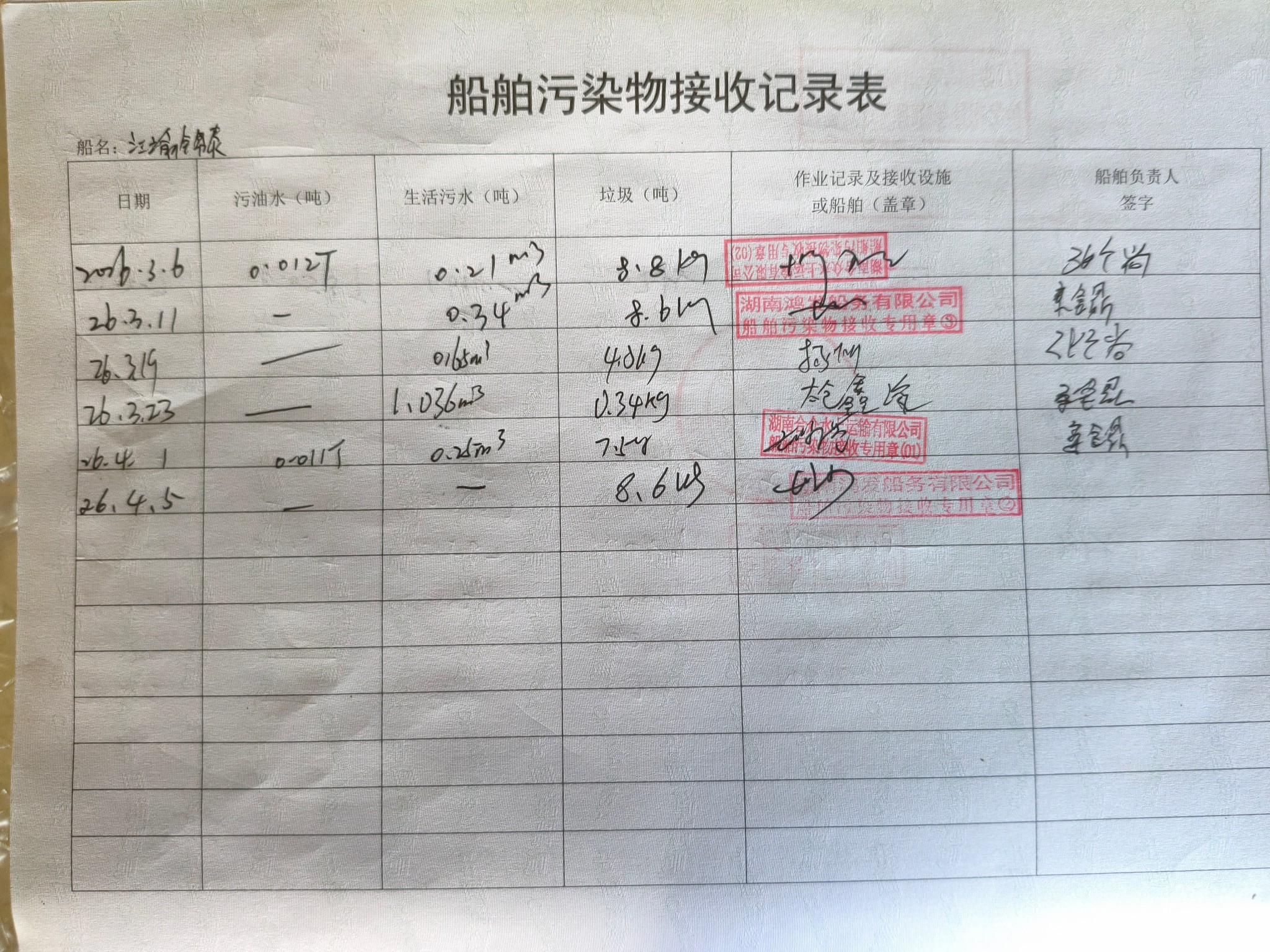 登船台账