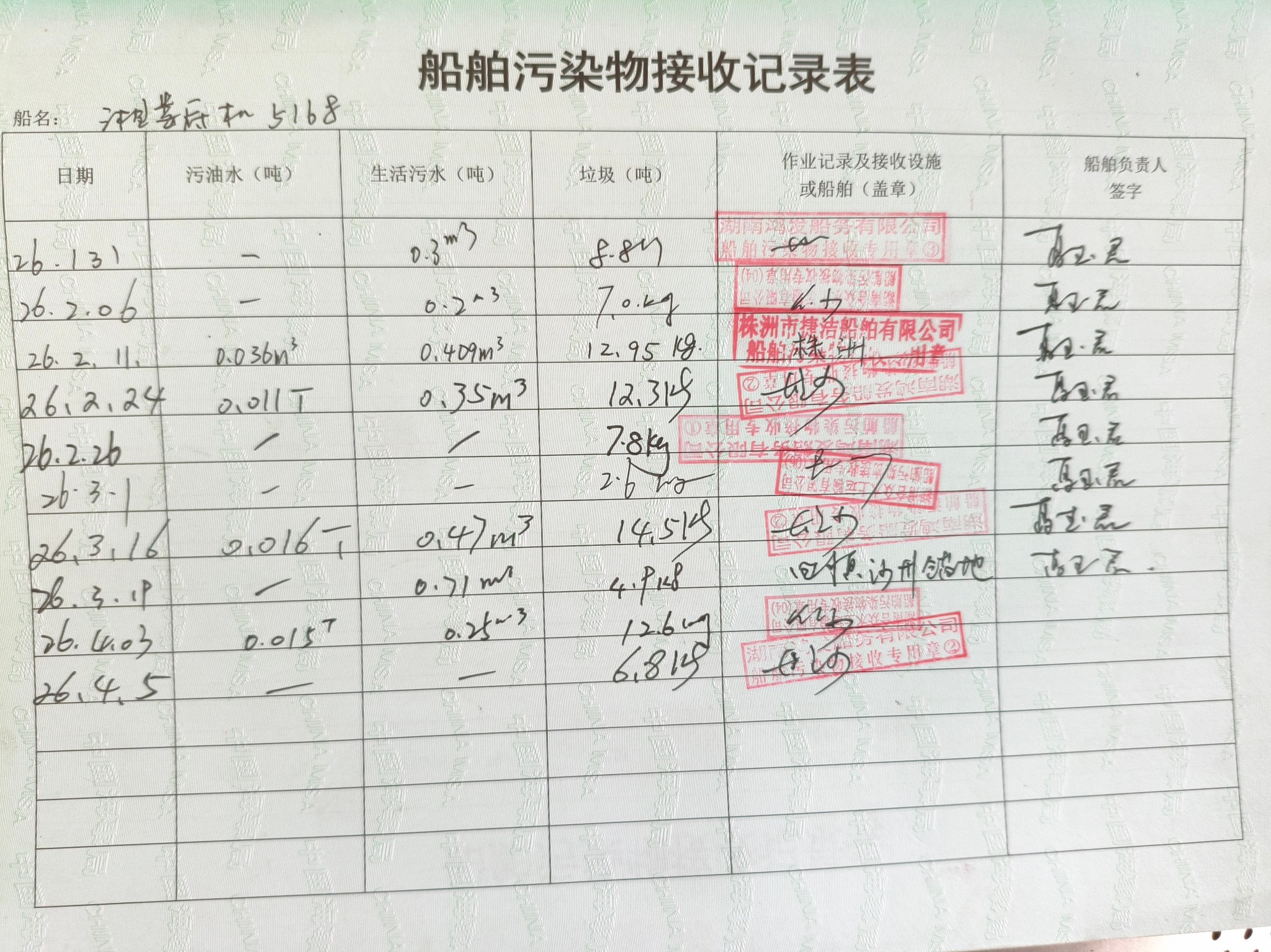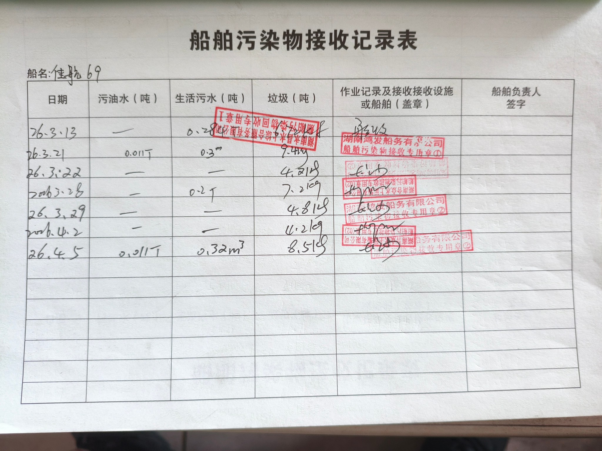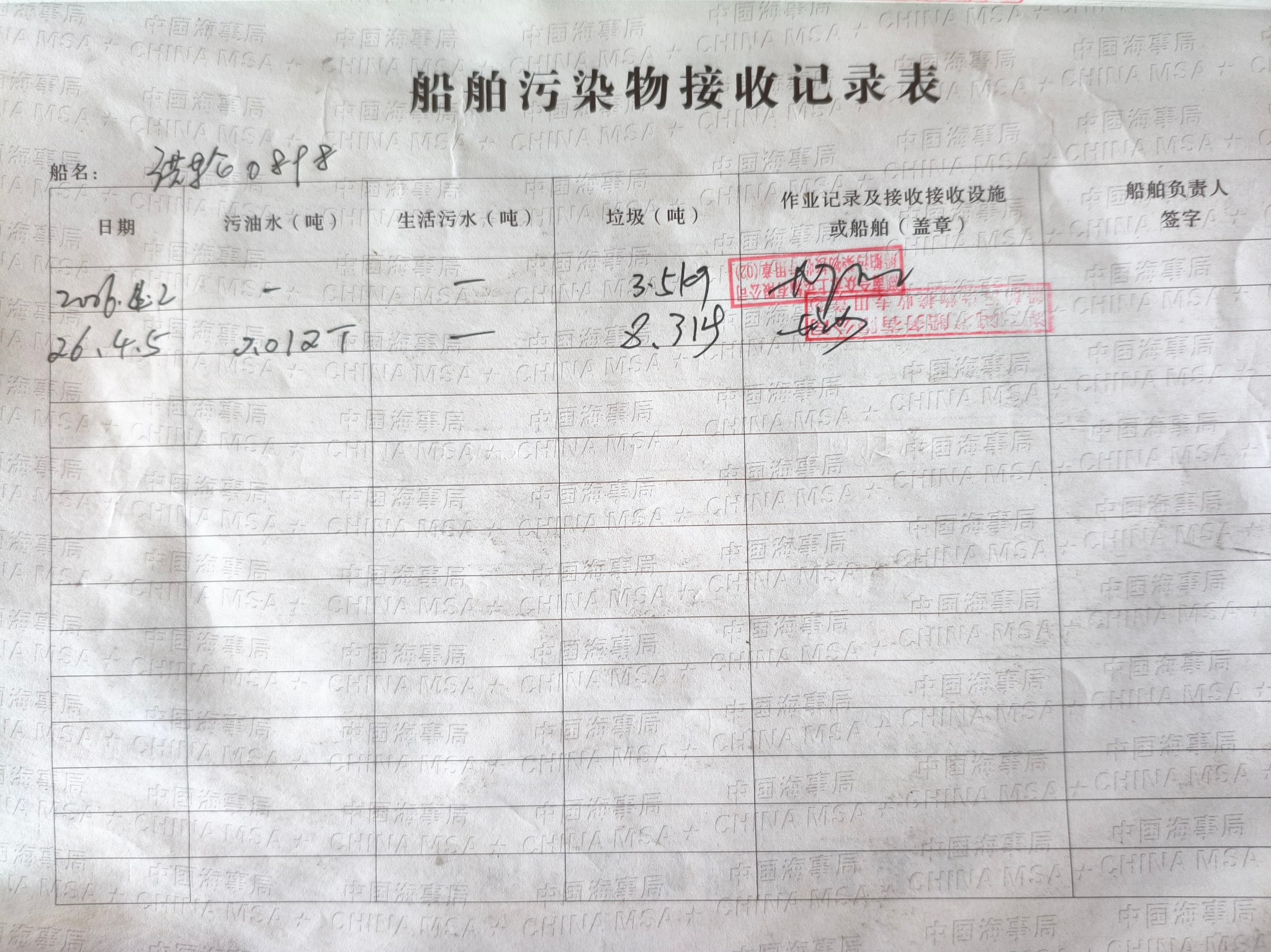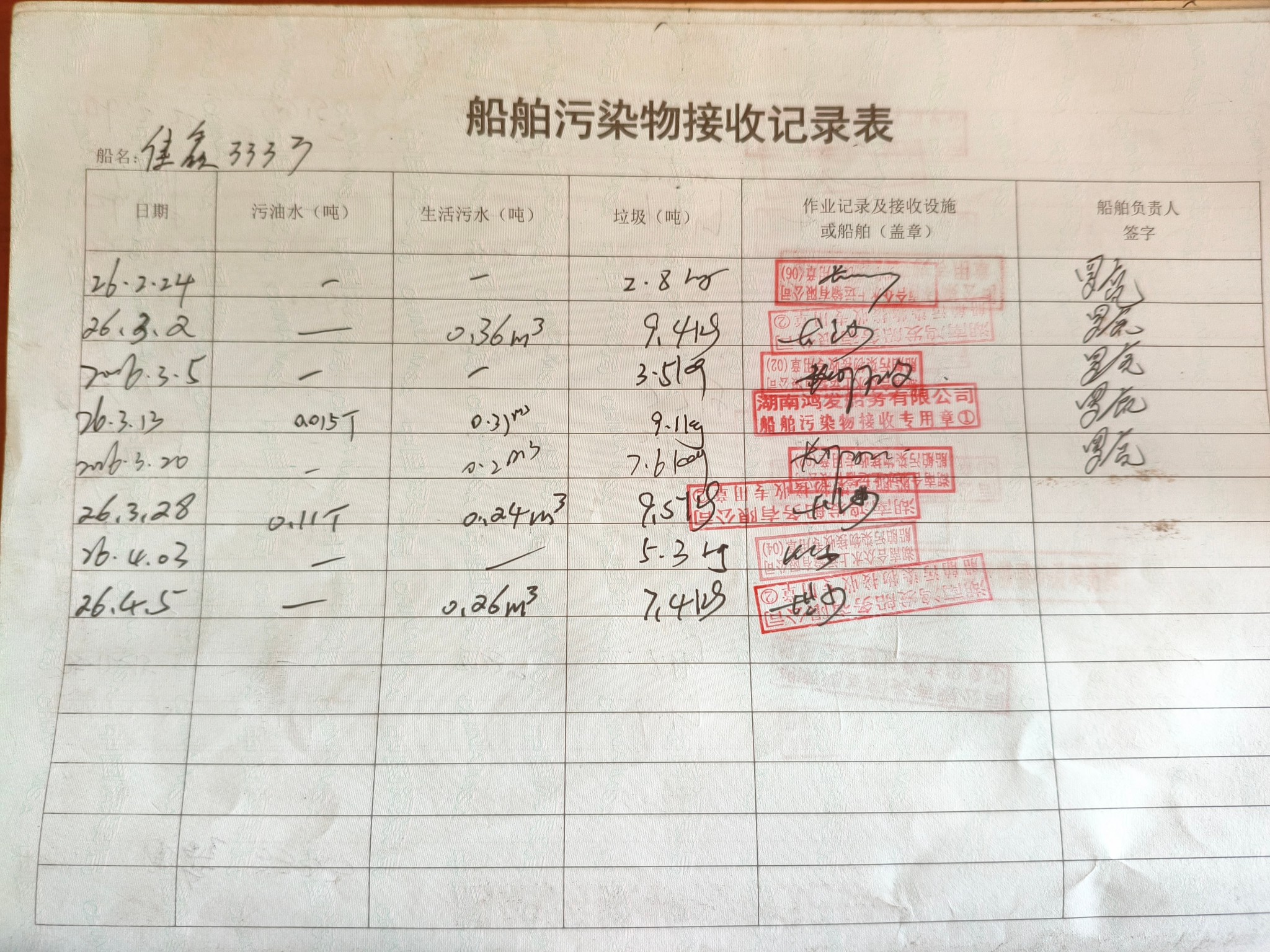 登船台账