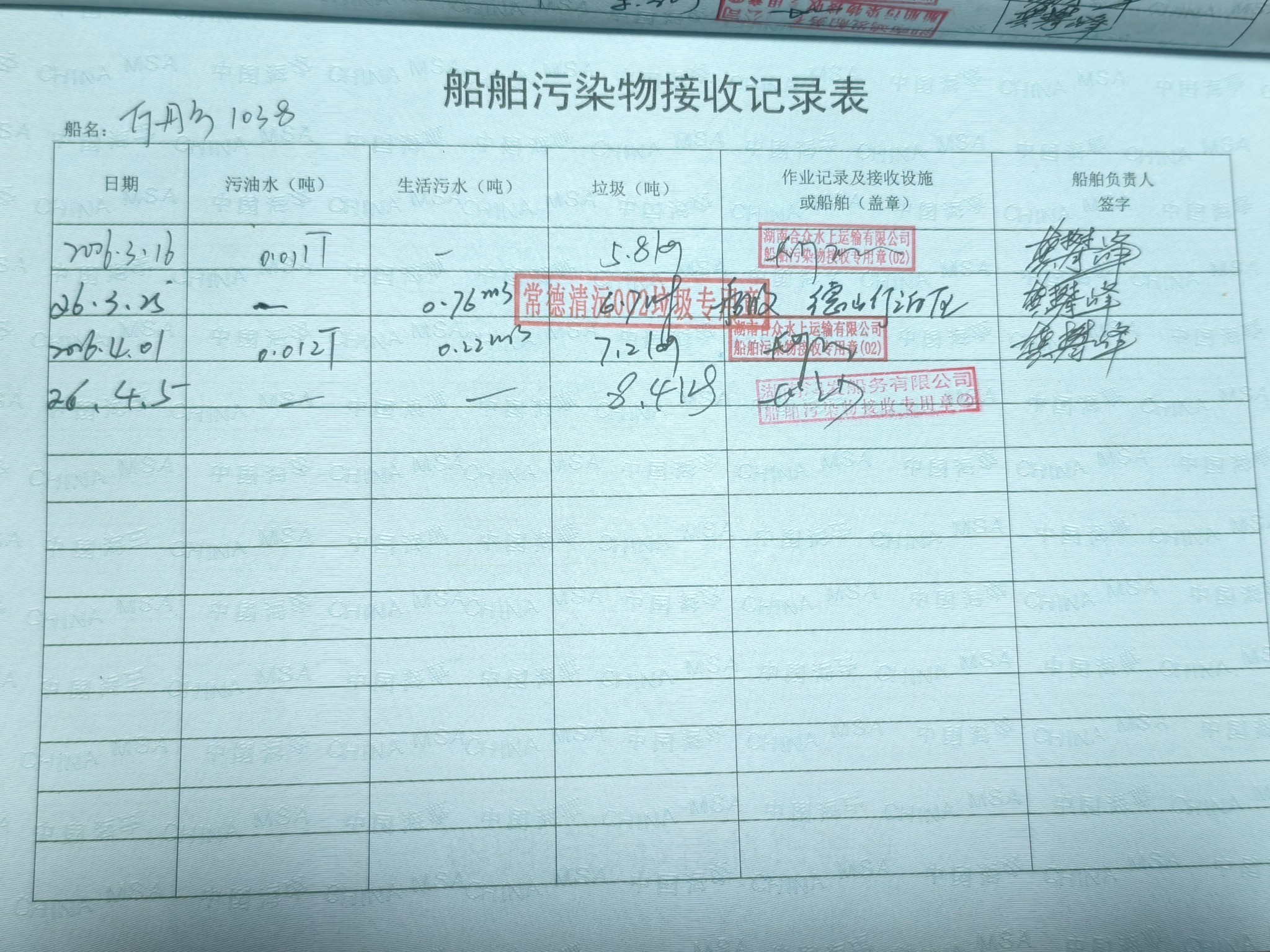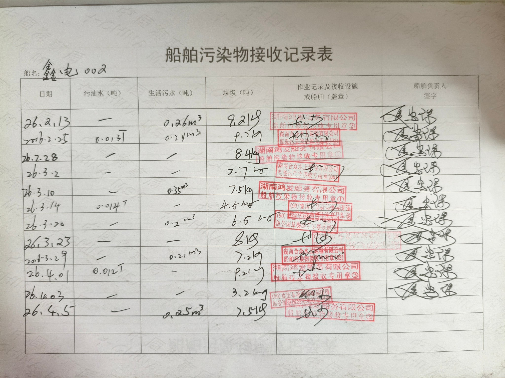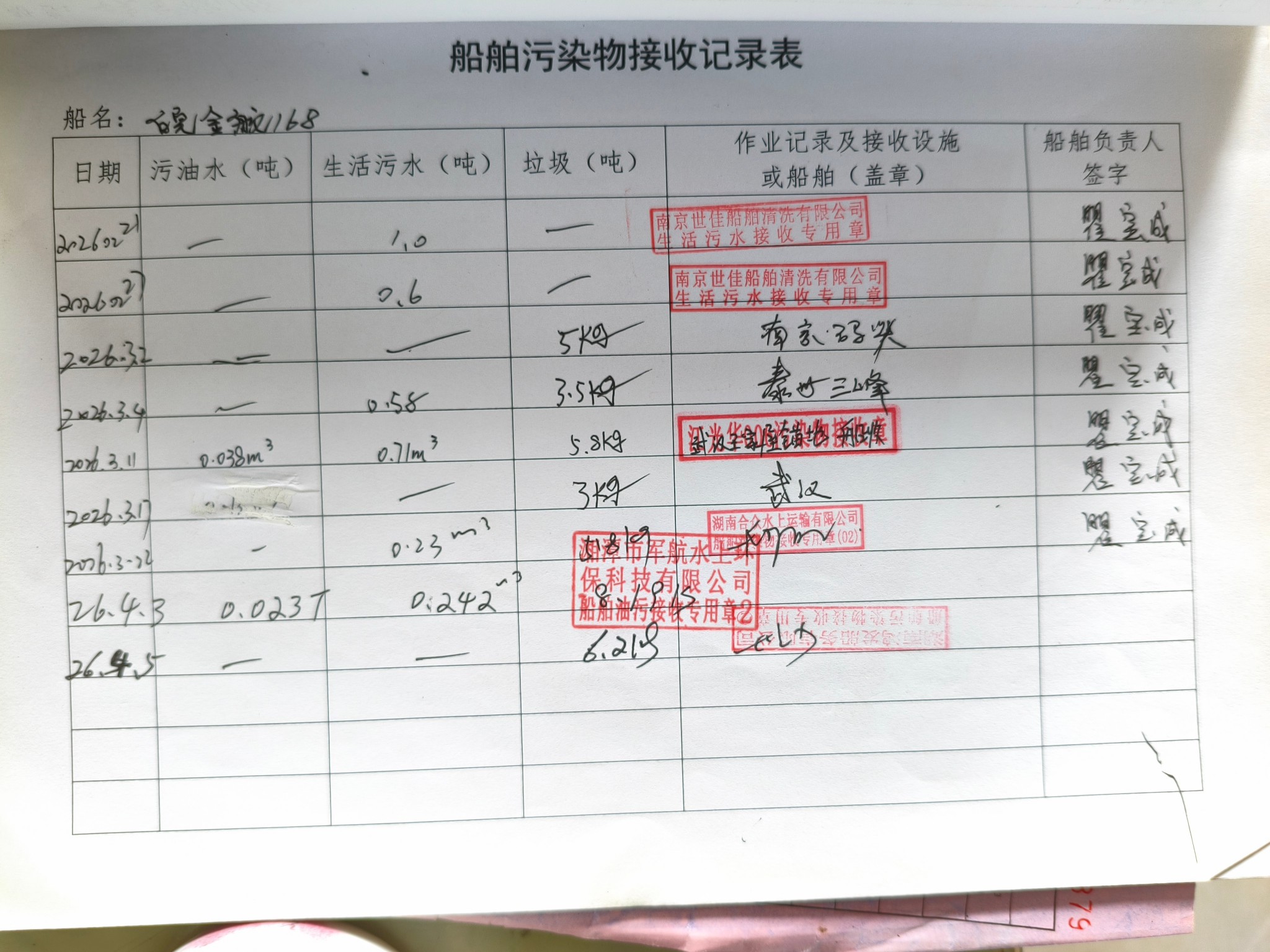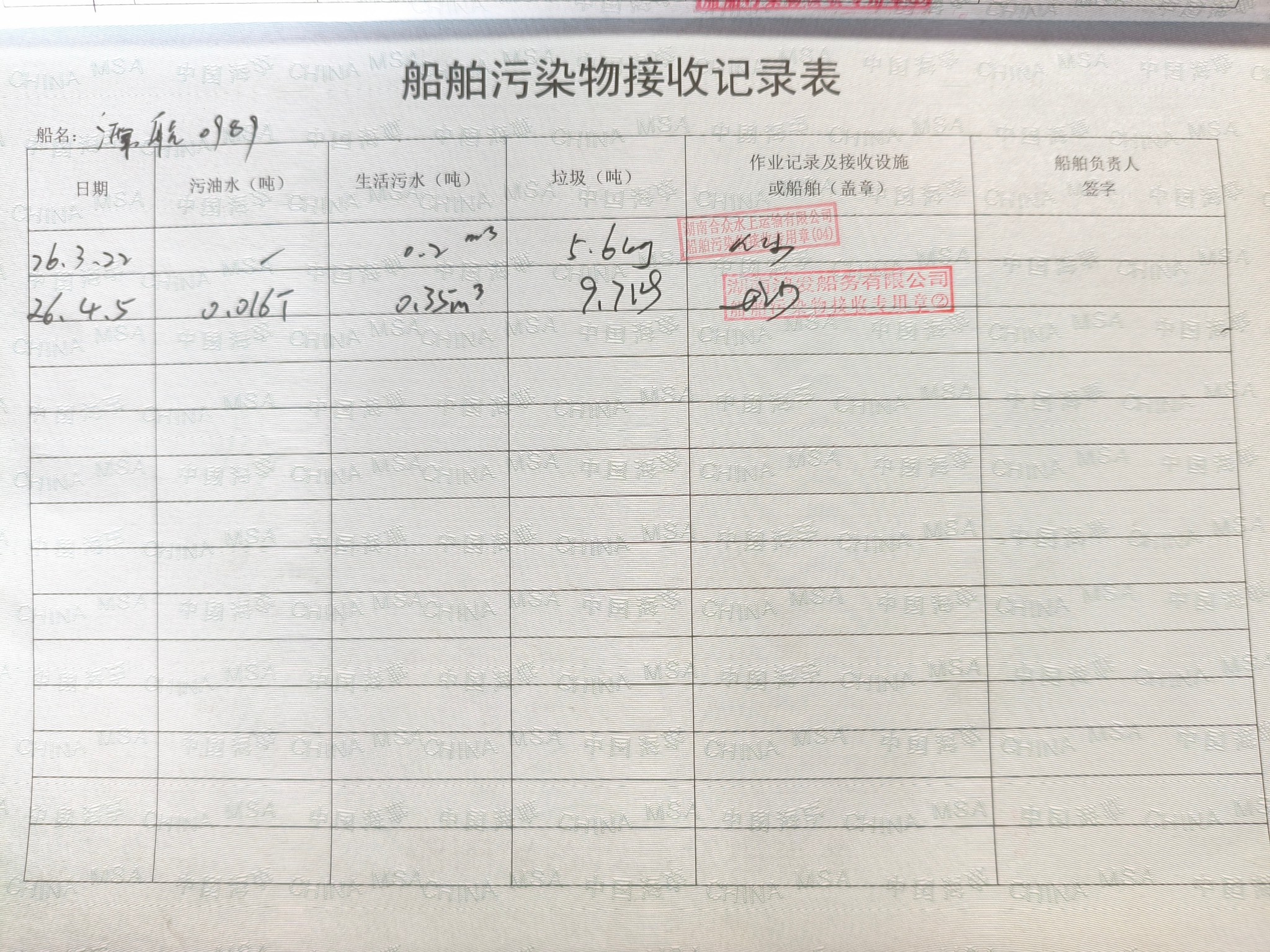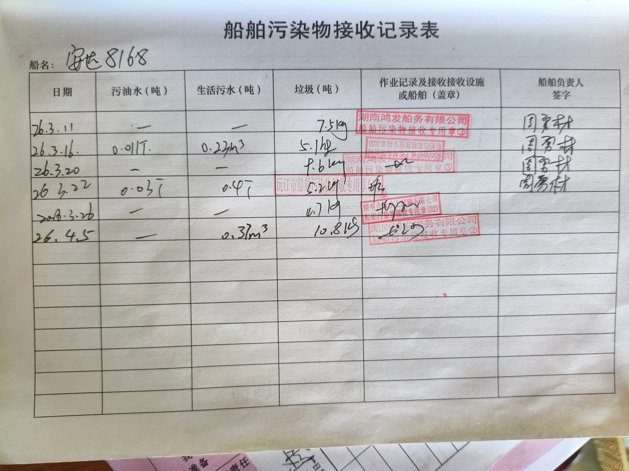 登船台账