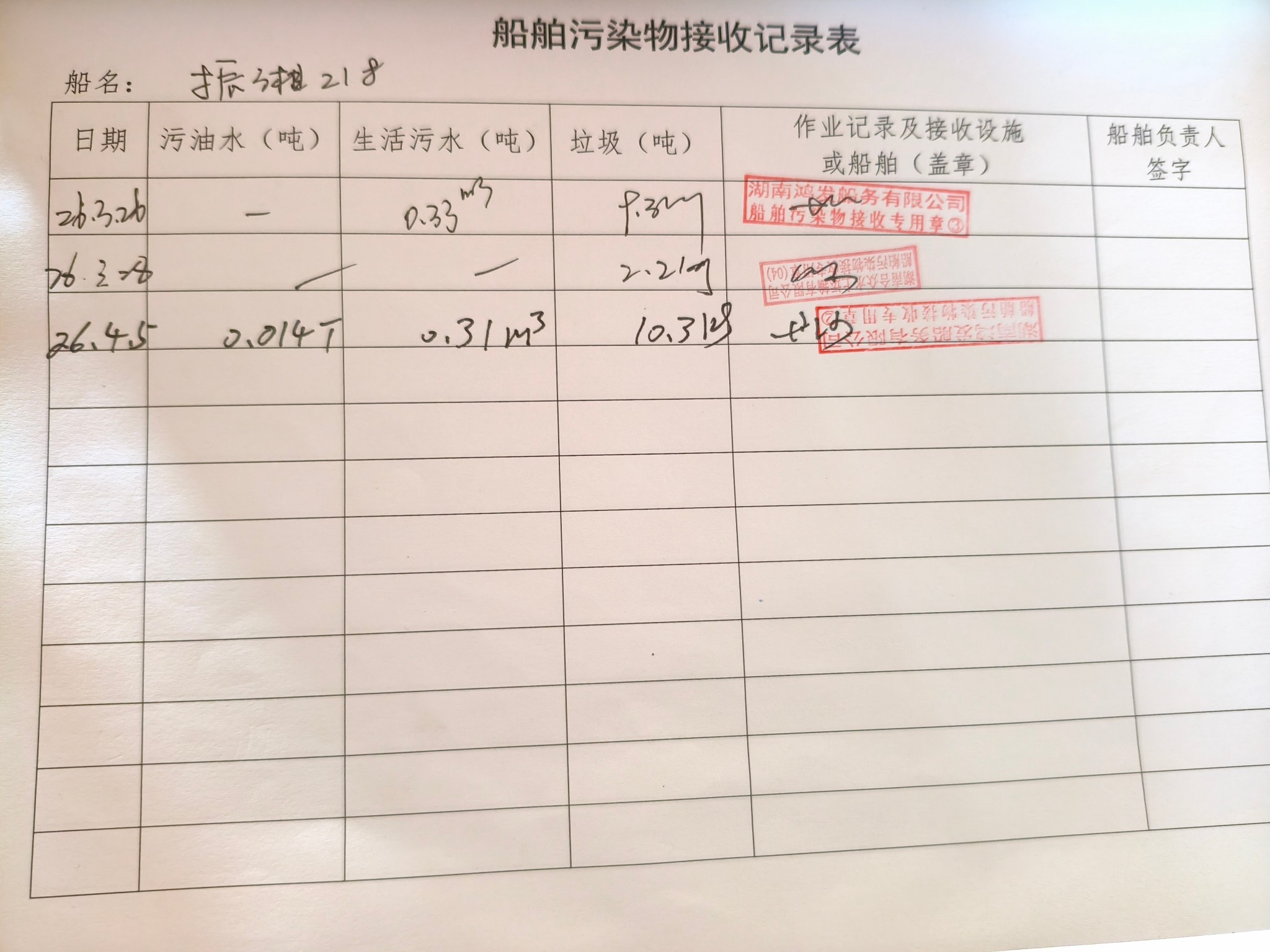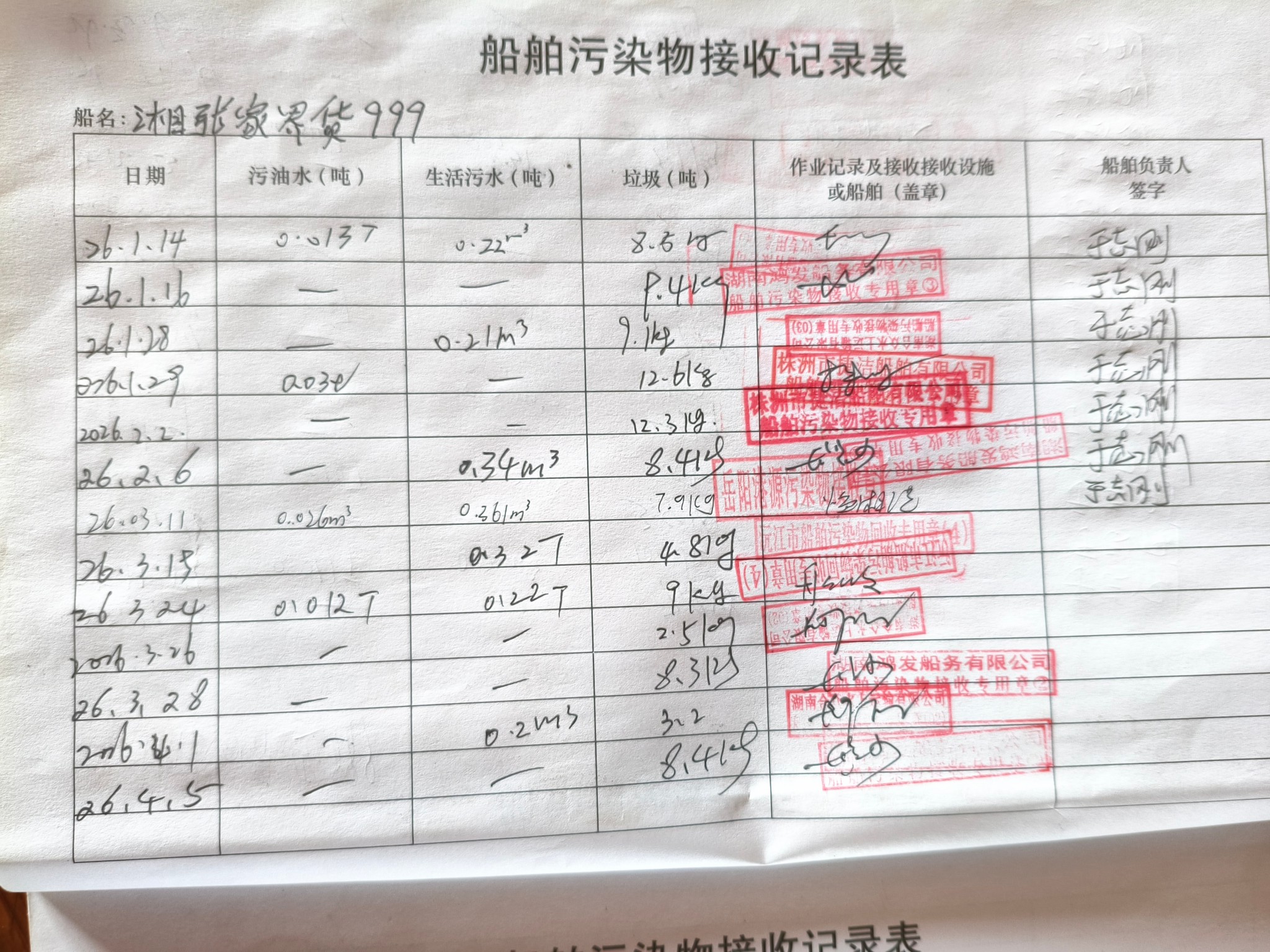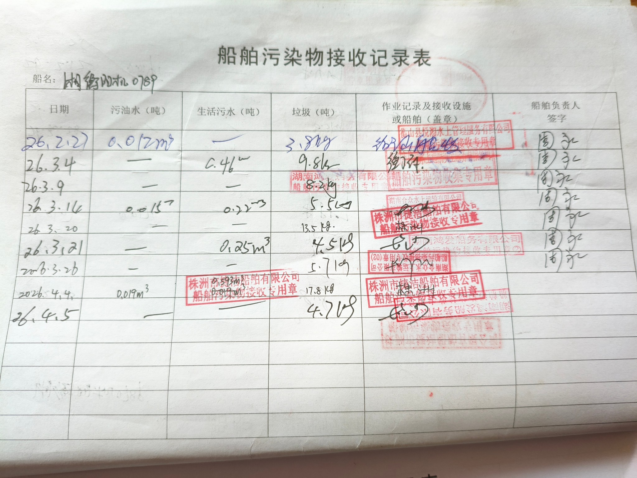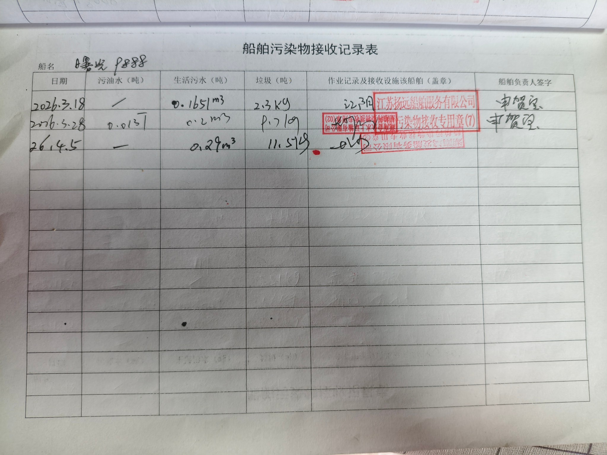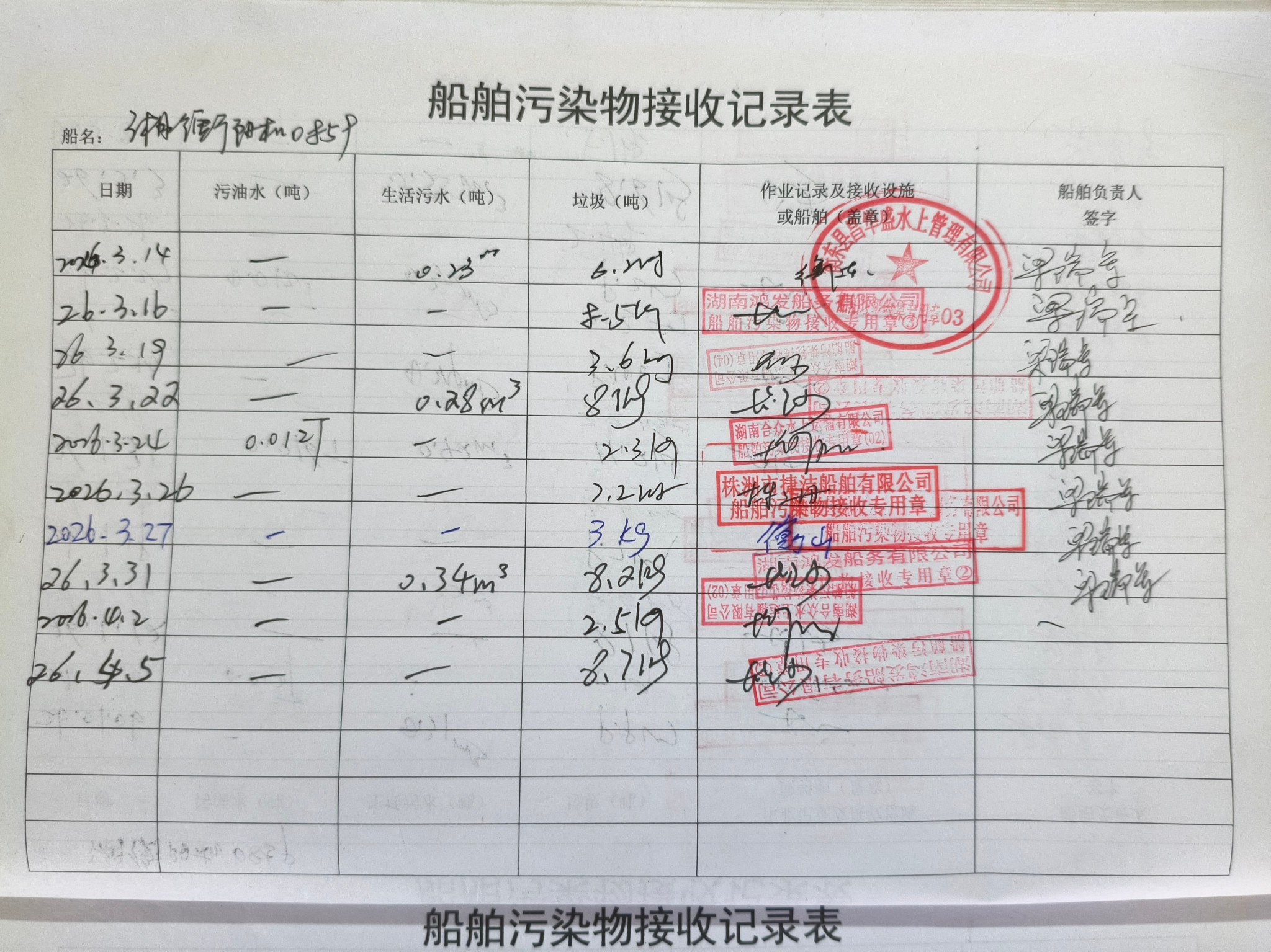 登船台账