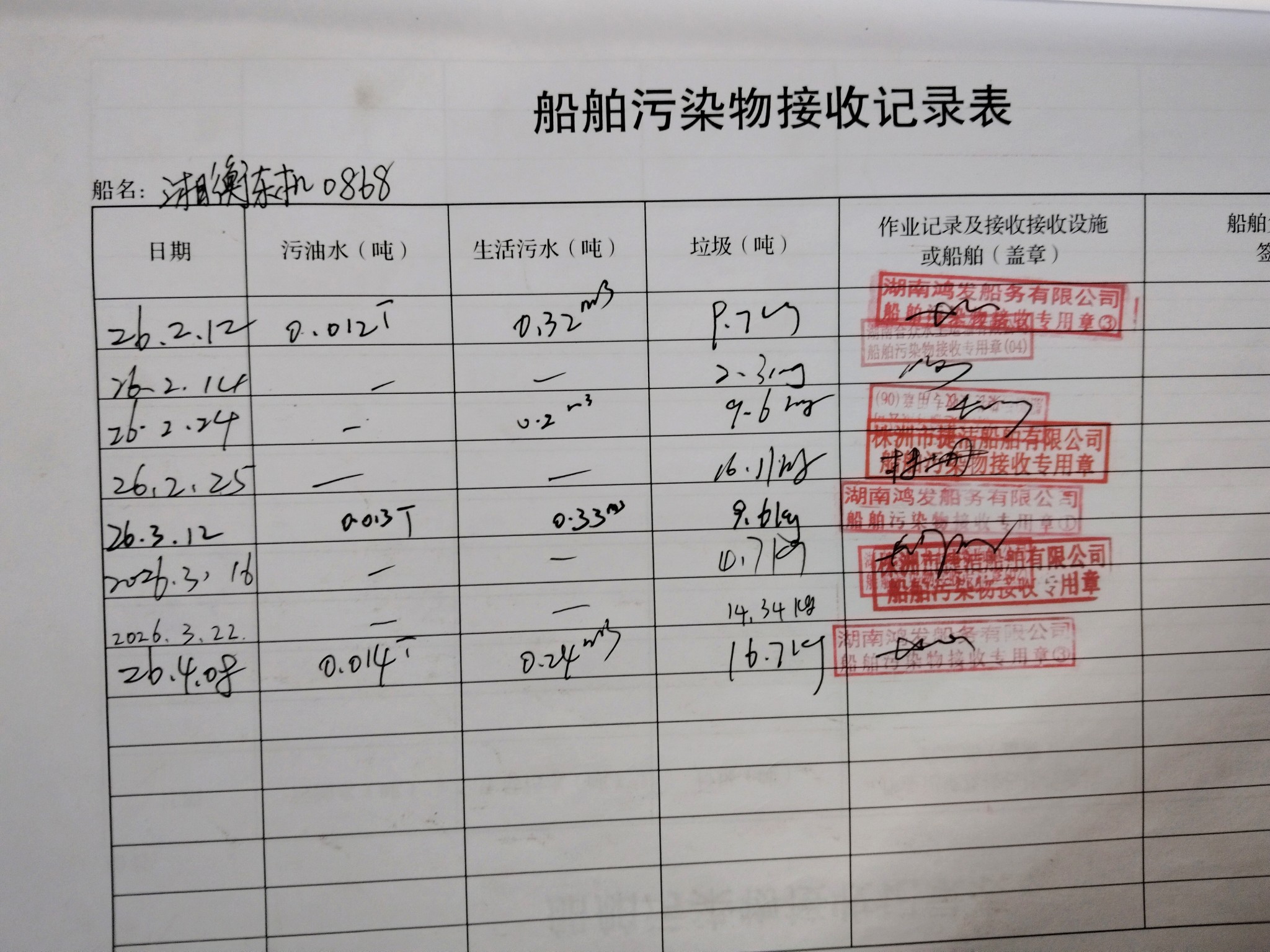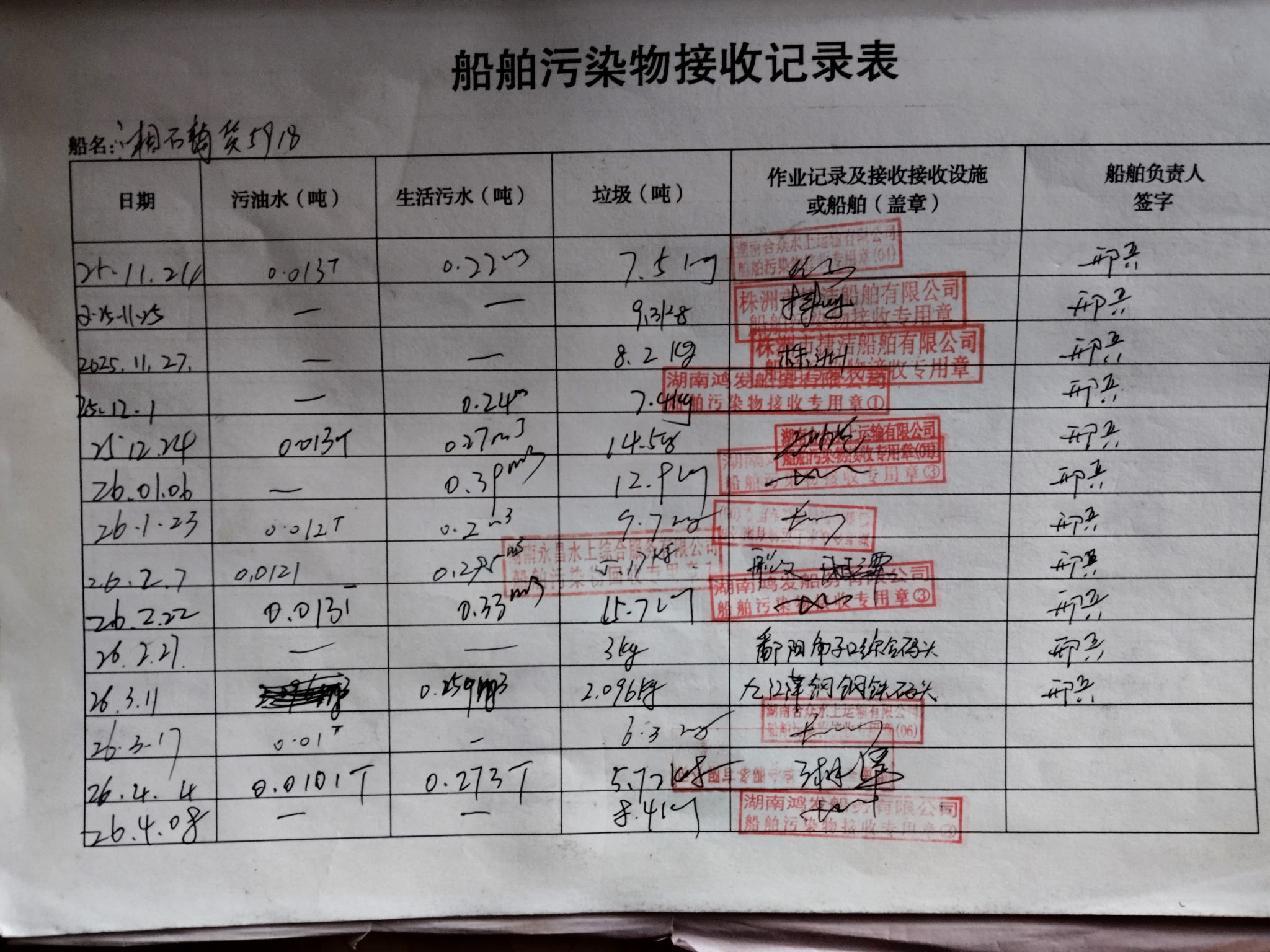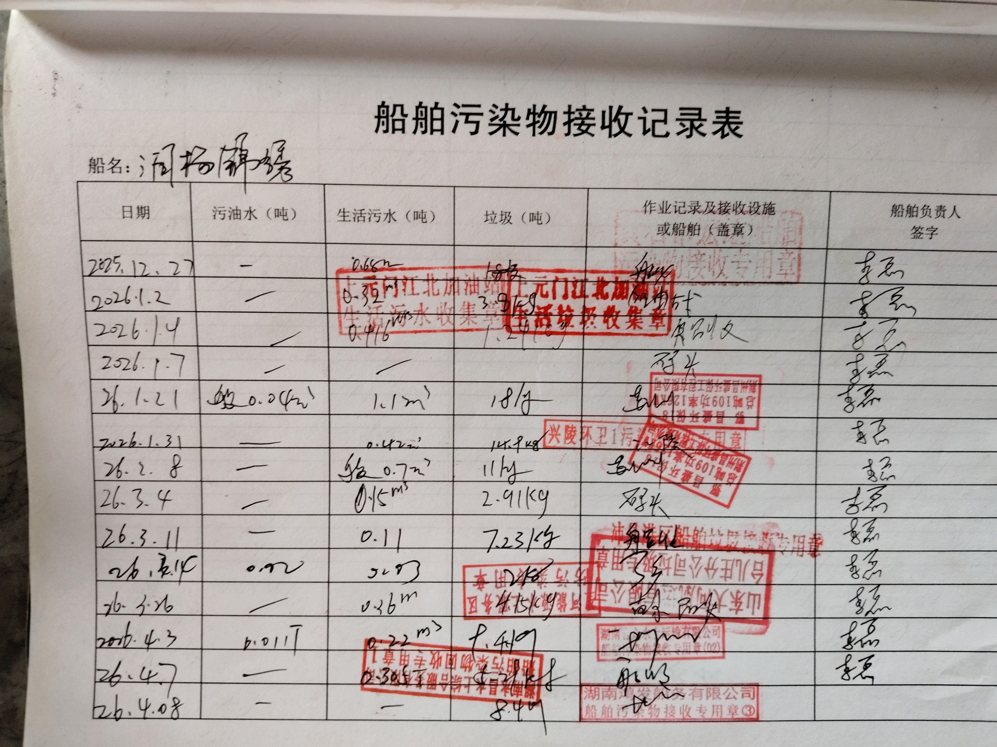 登船台账