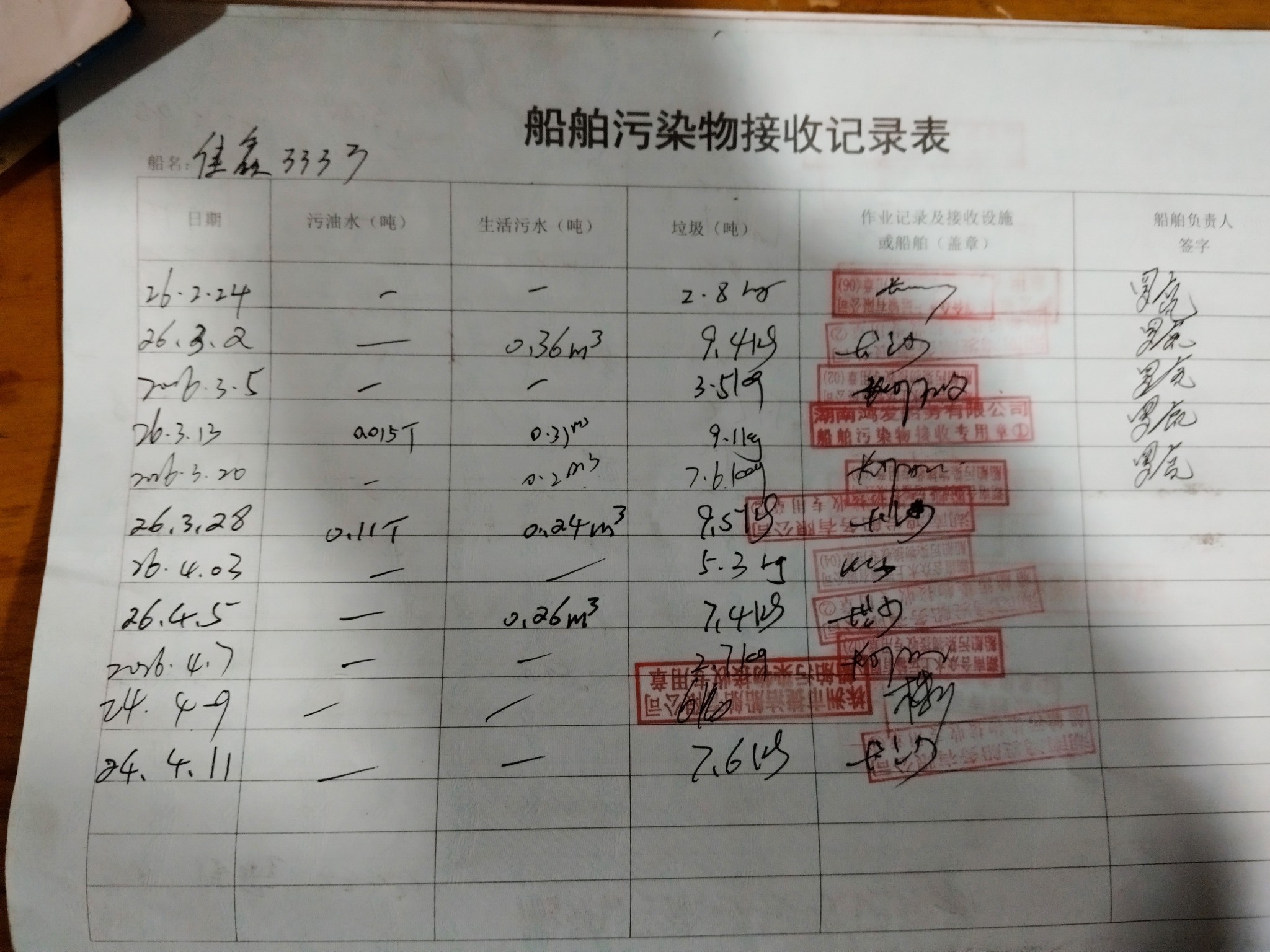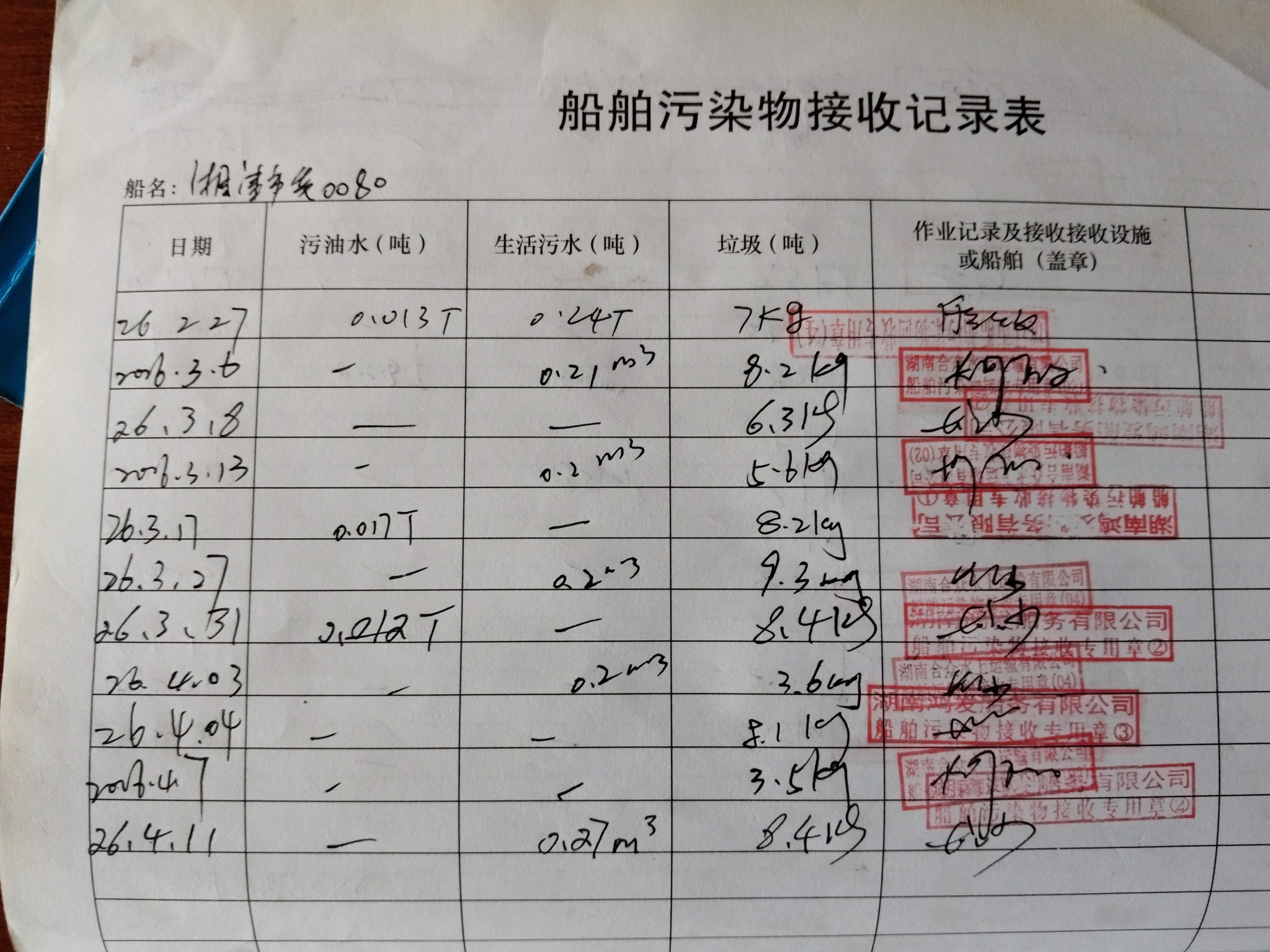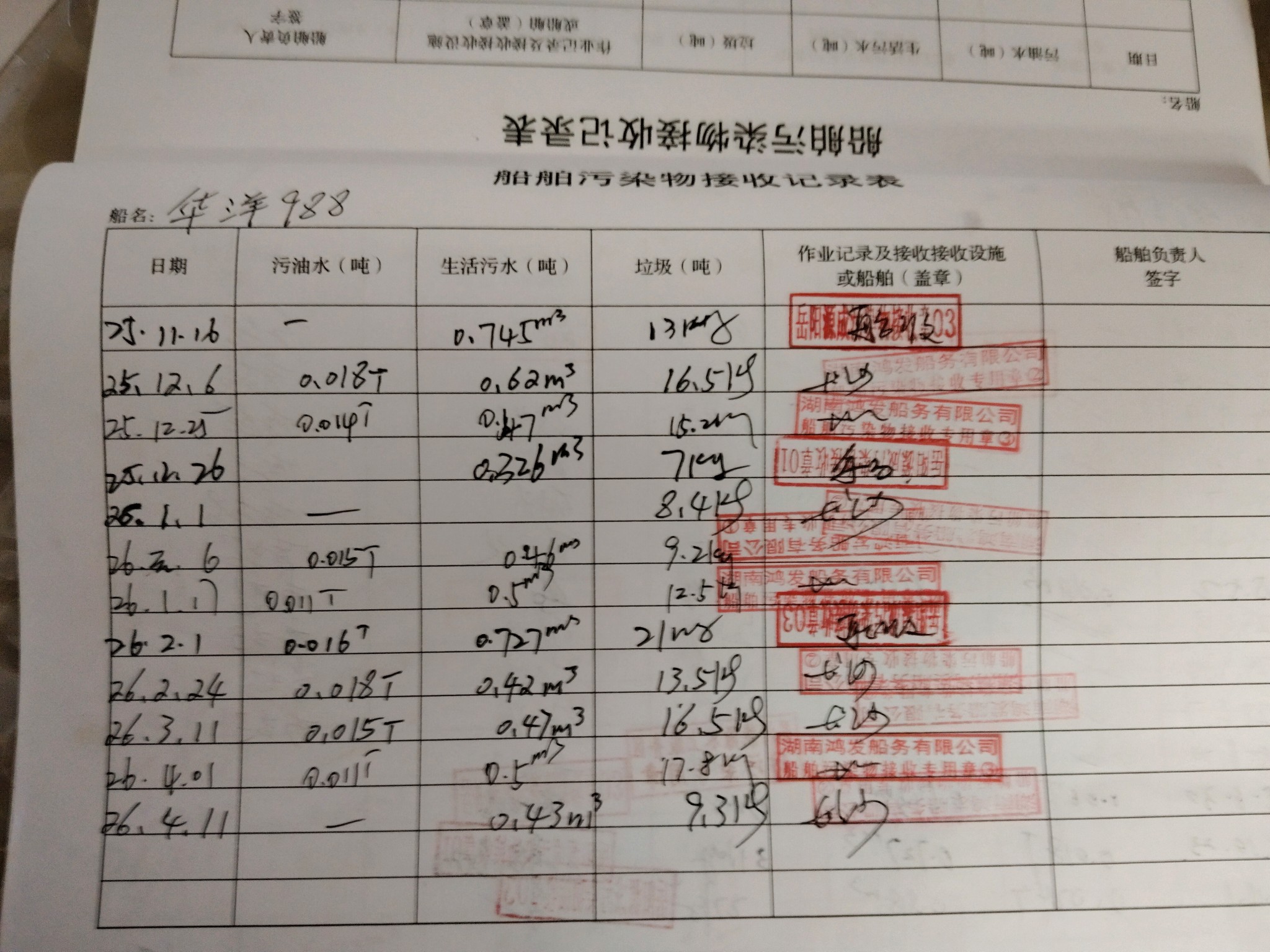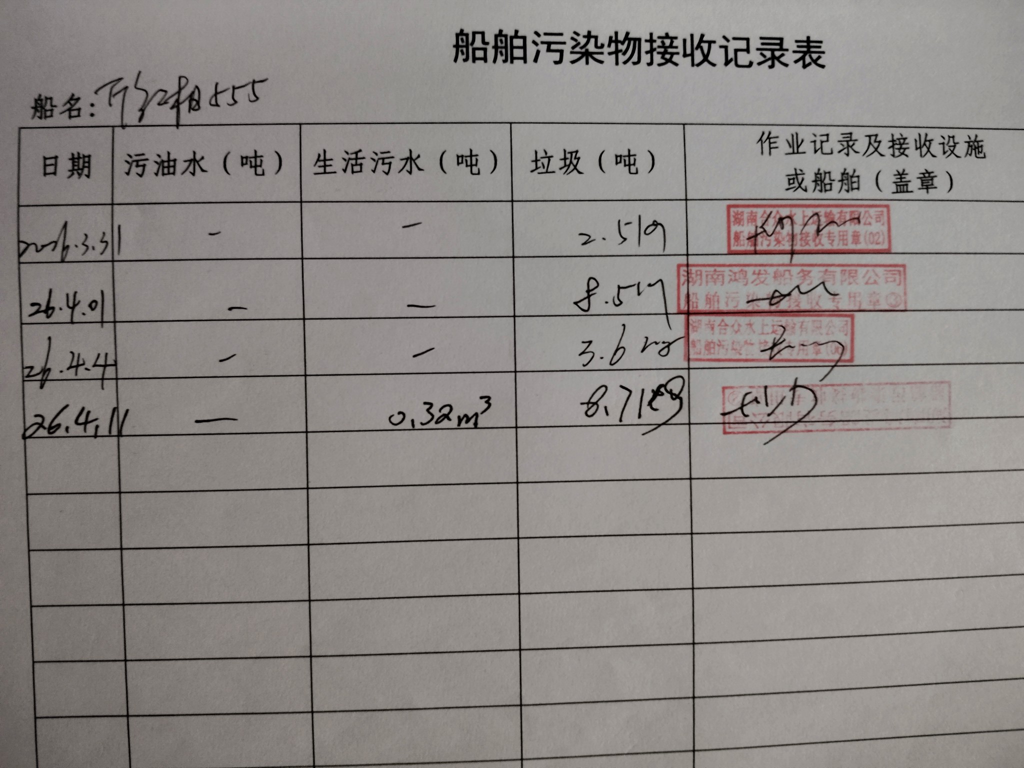 登船台账