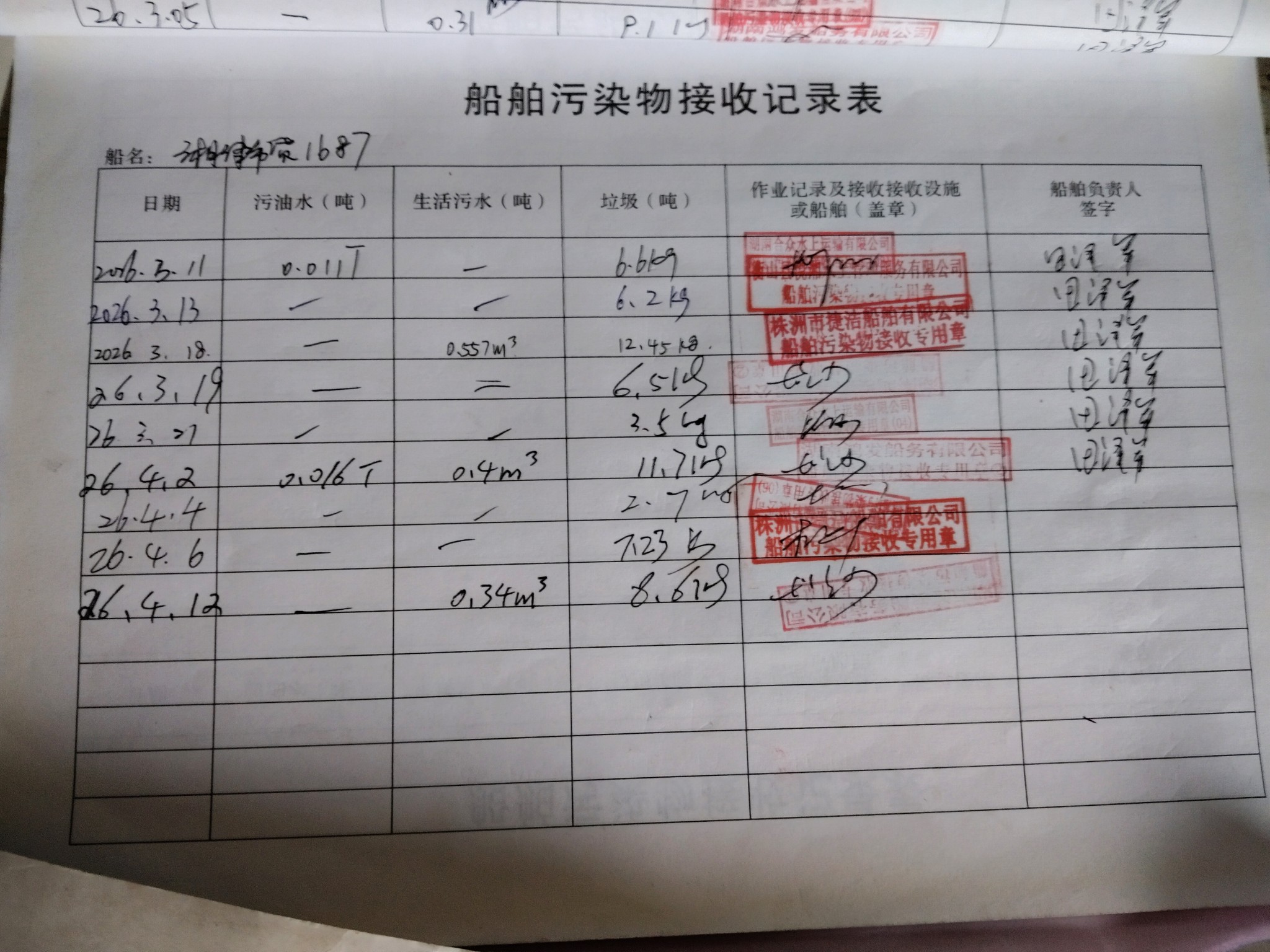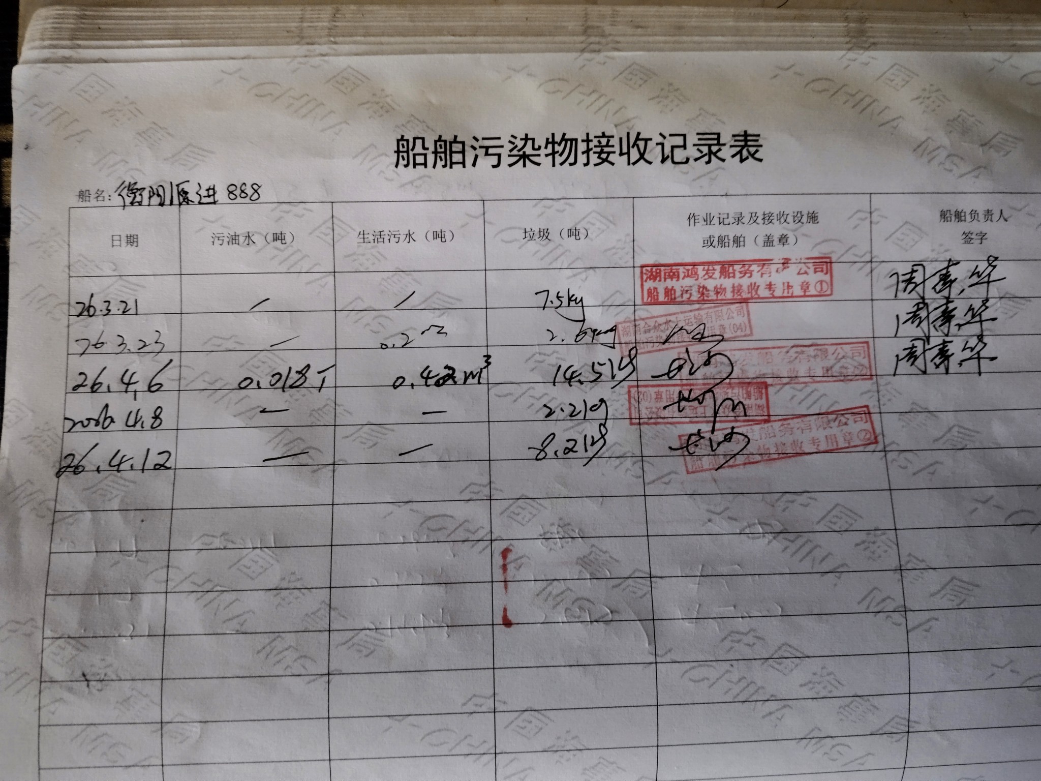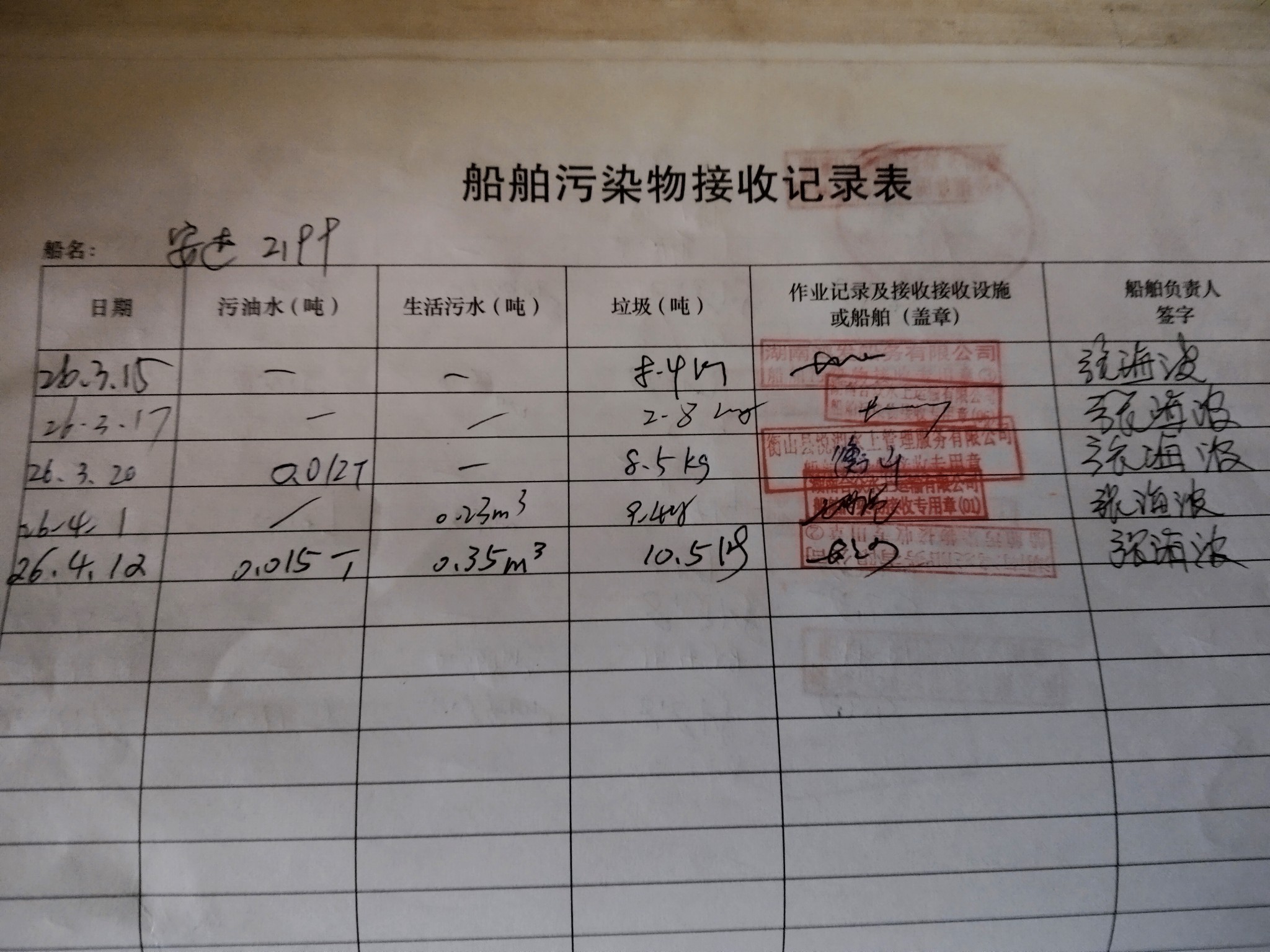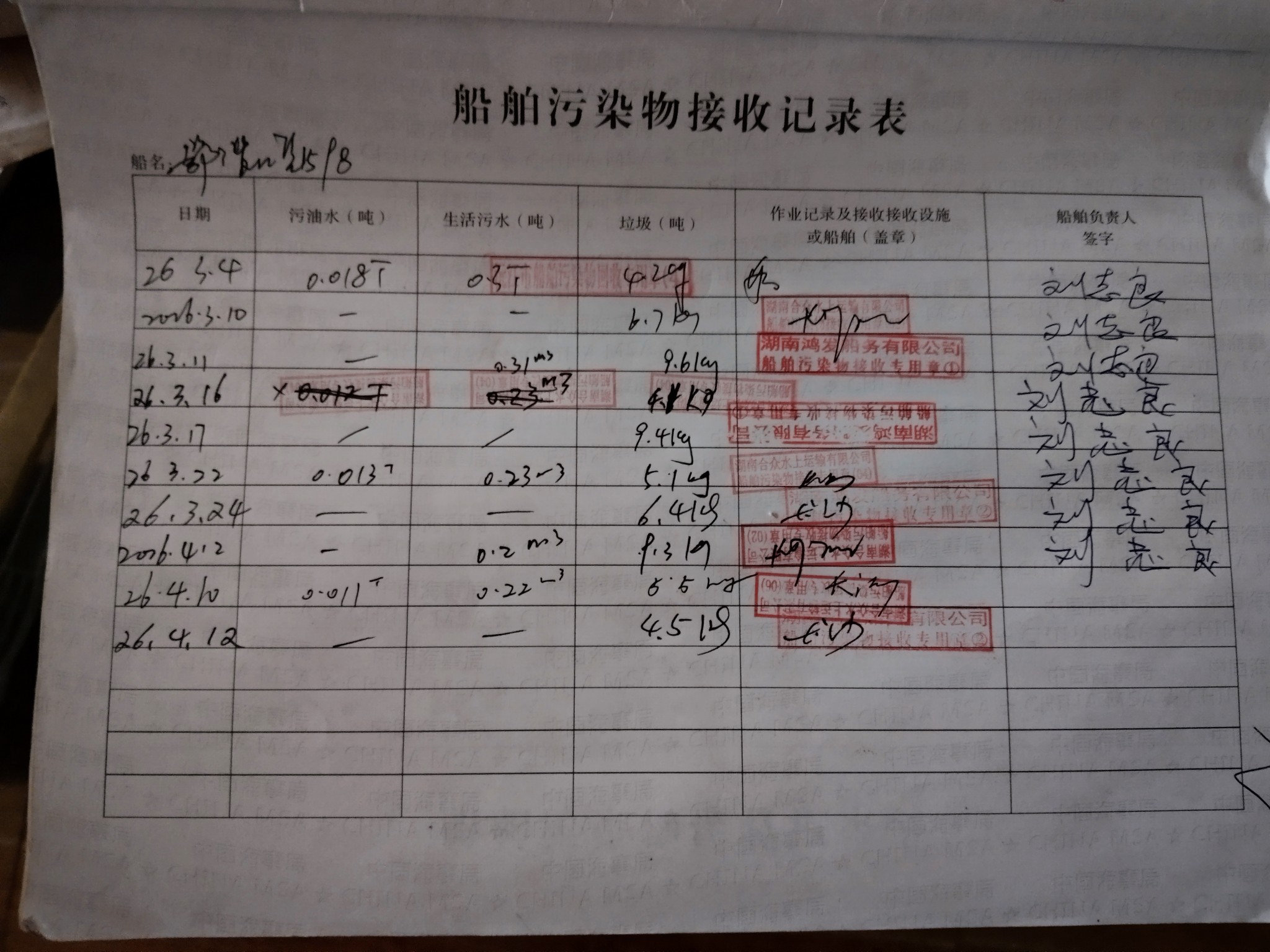 登船台账