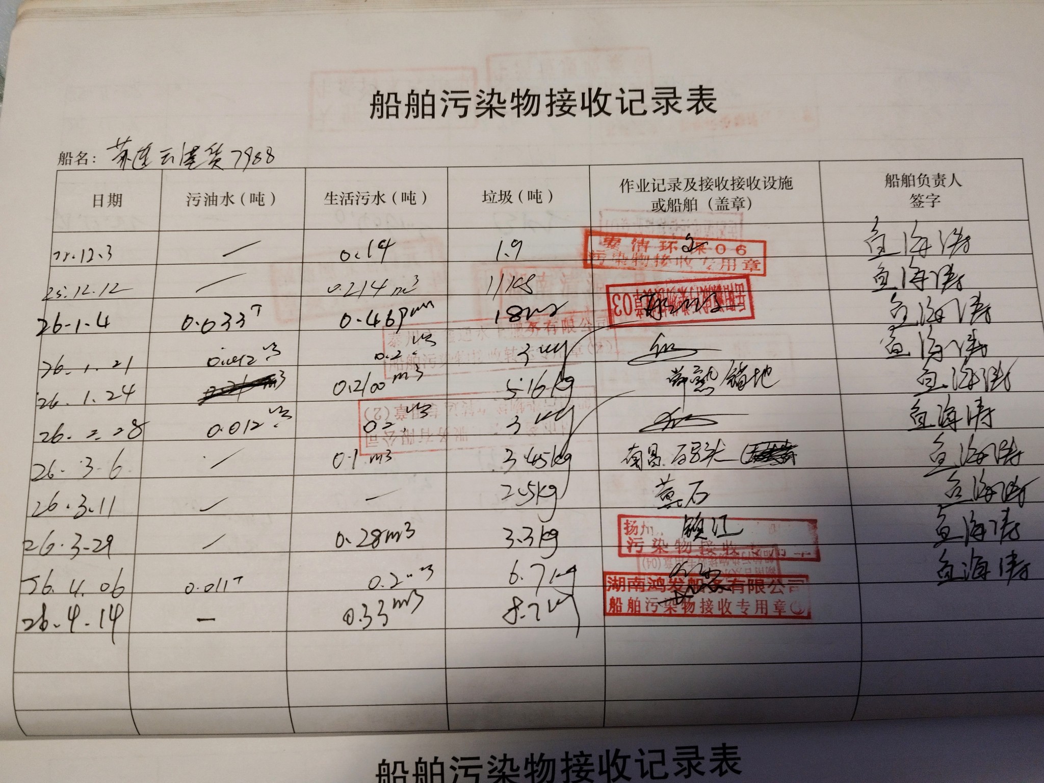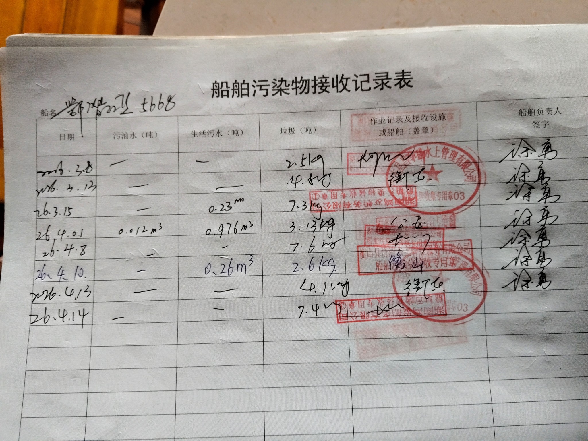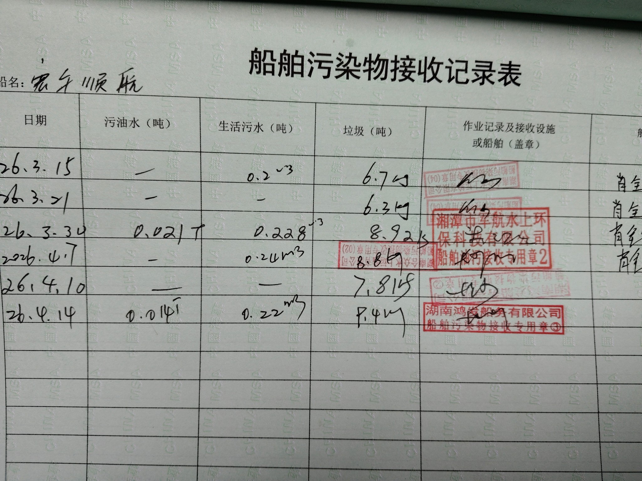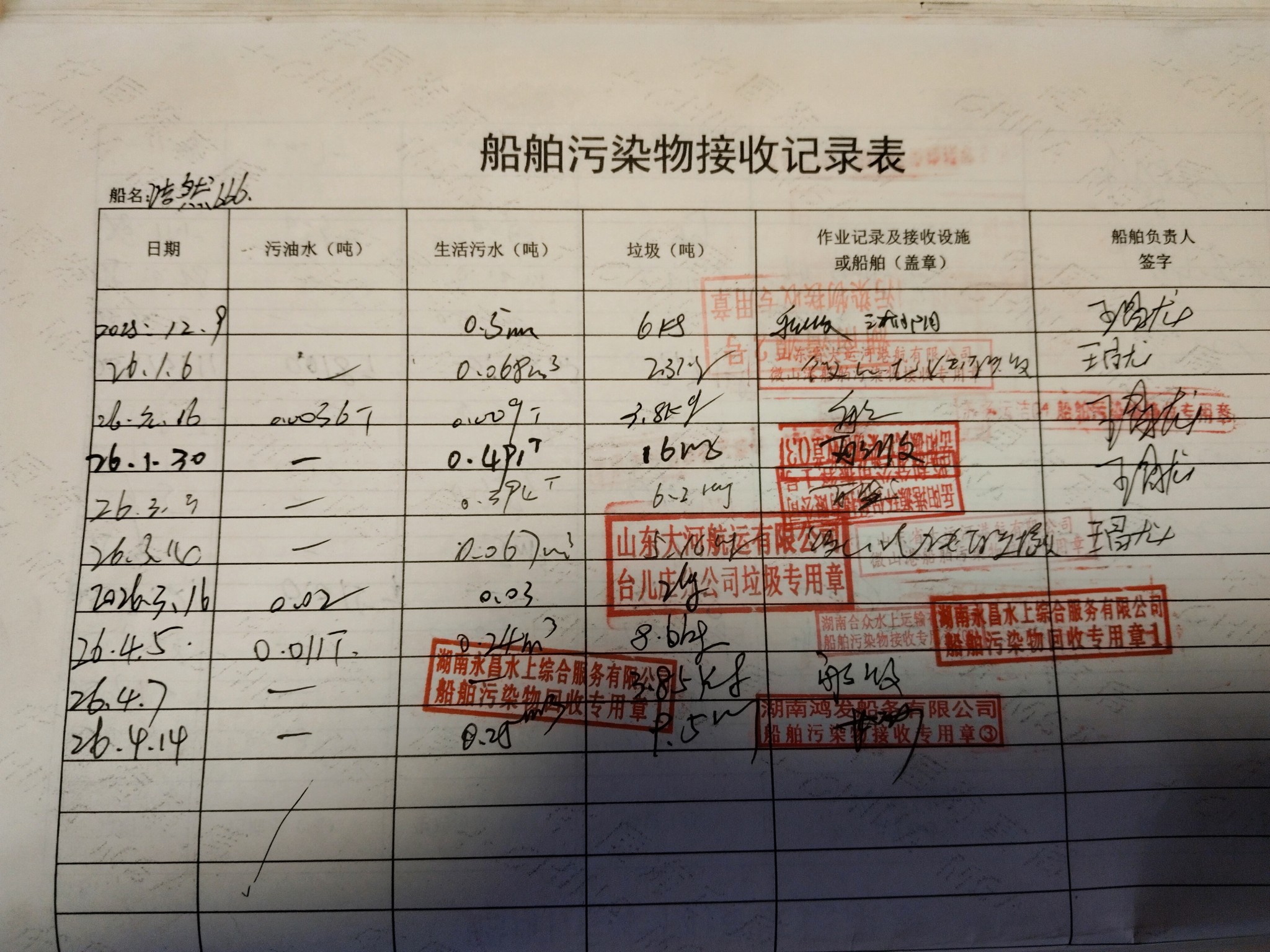 登船台账