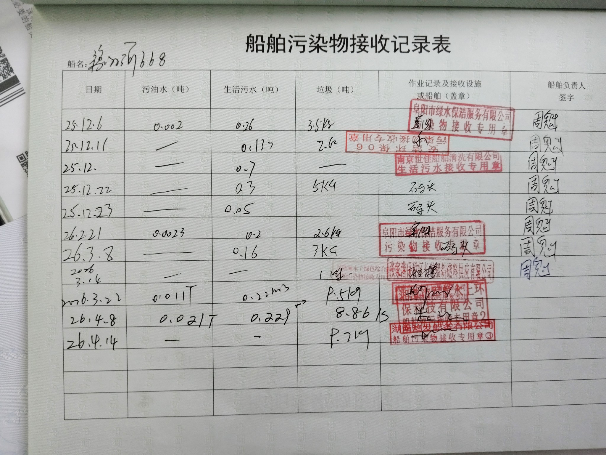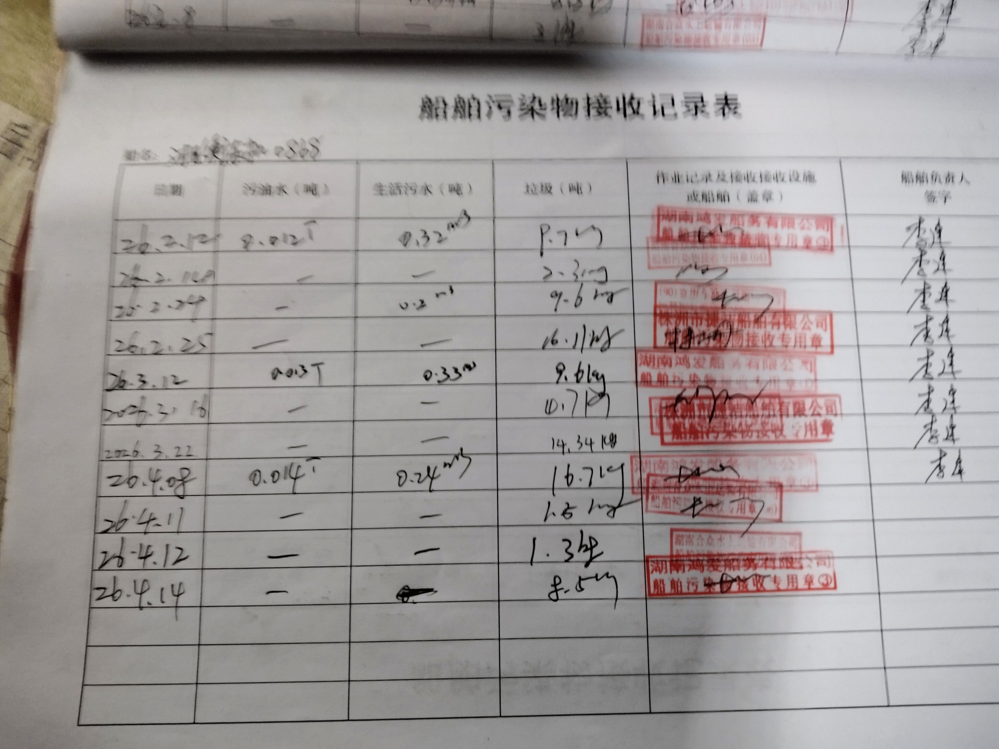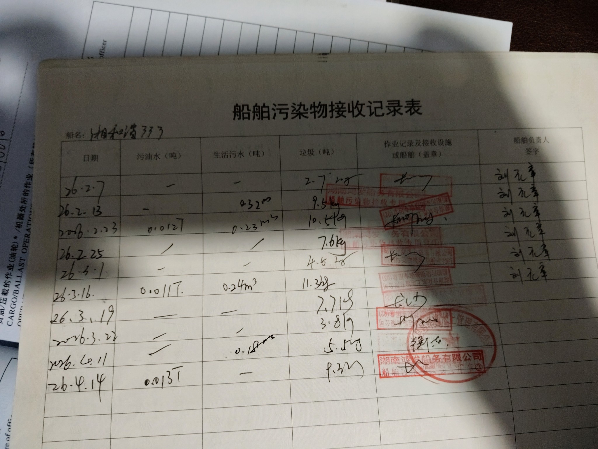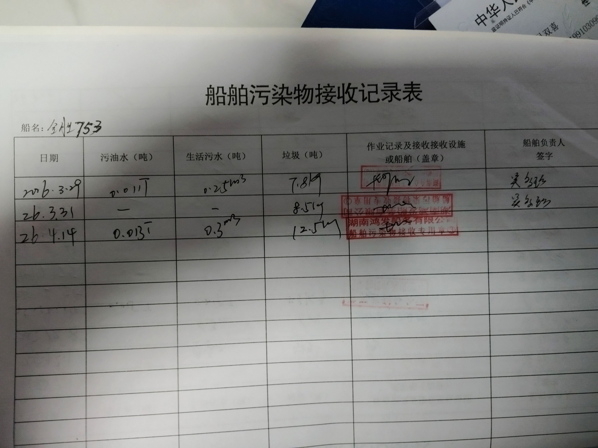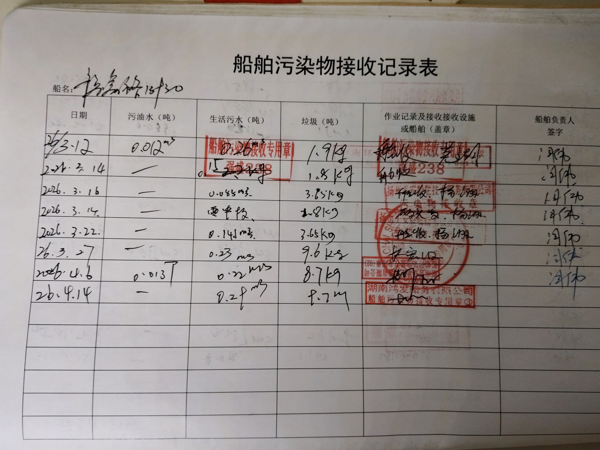 登船台账