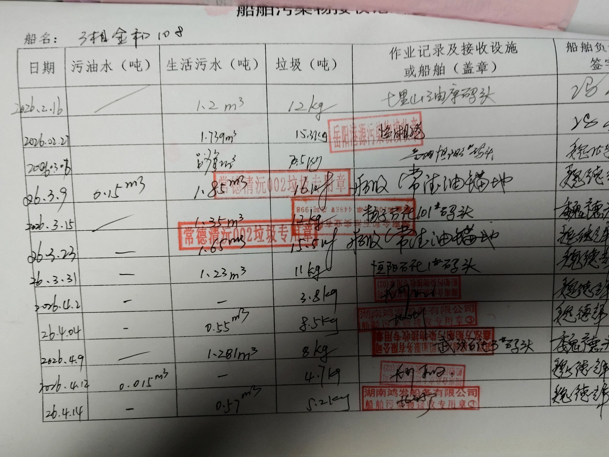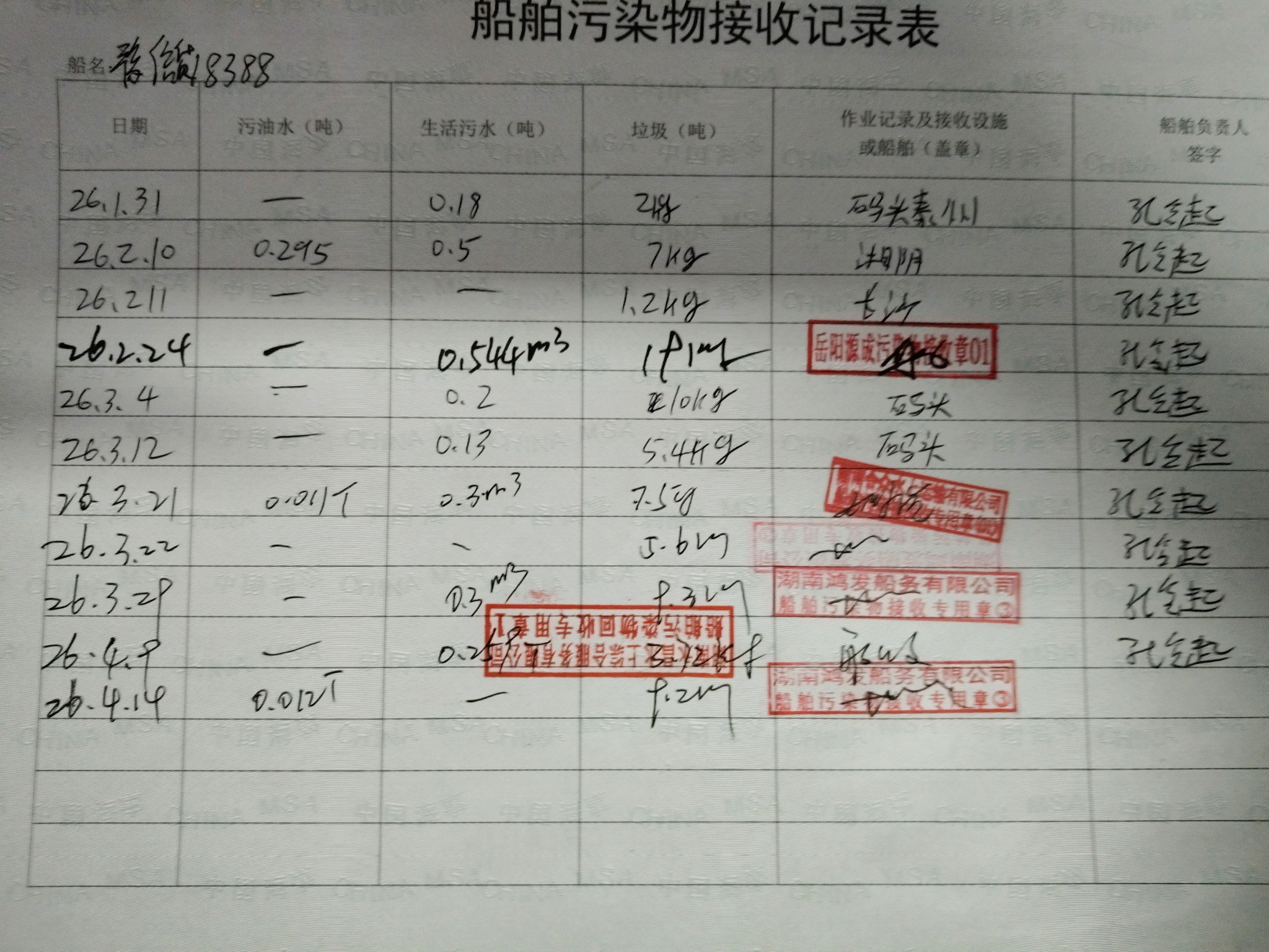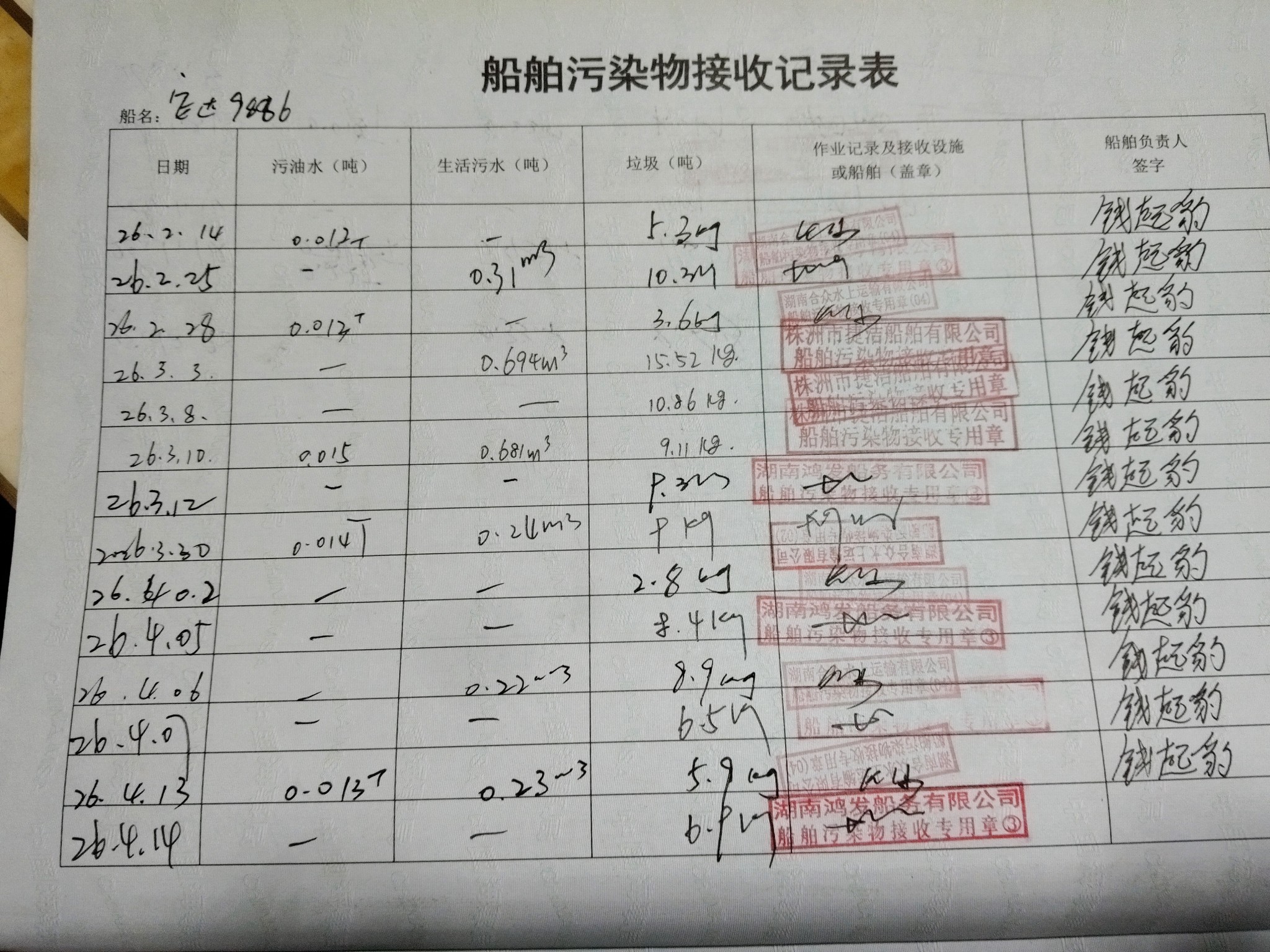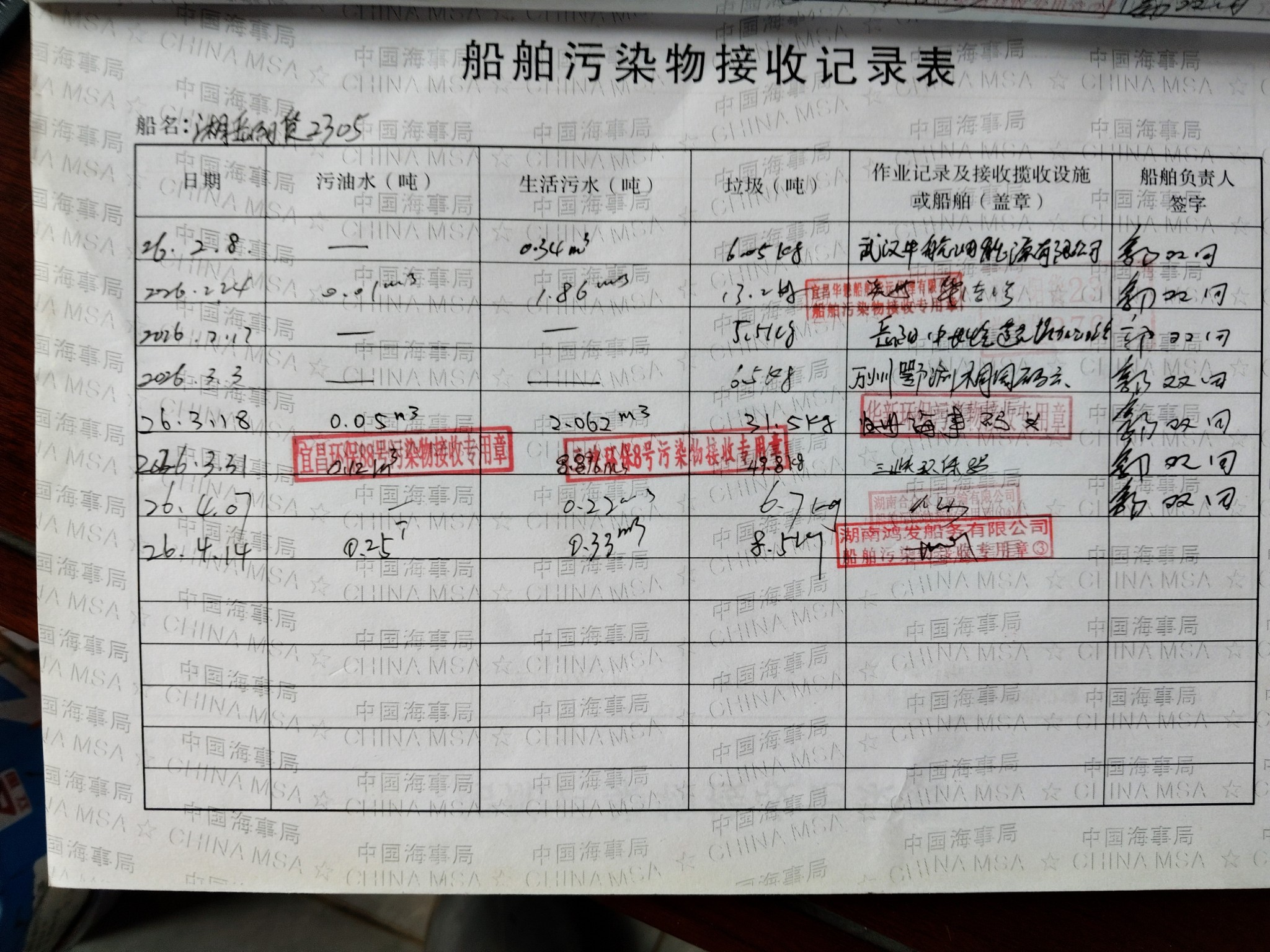 登船台账