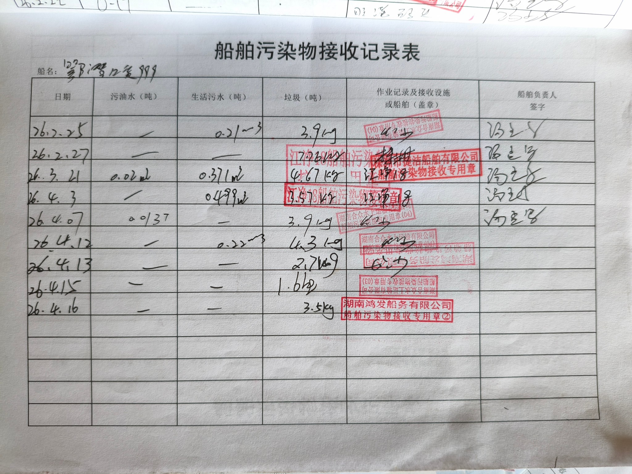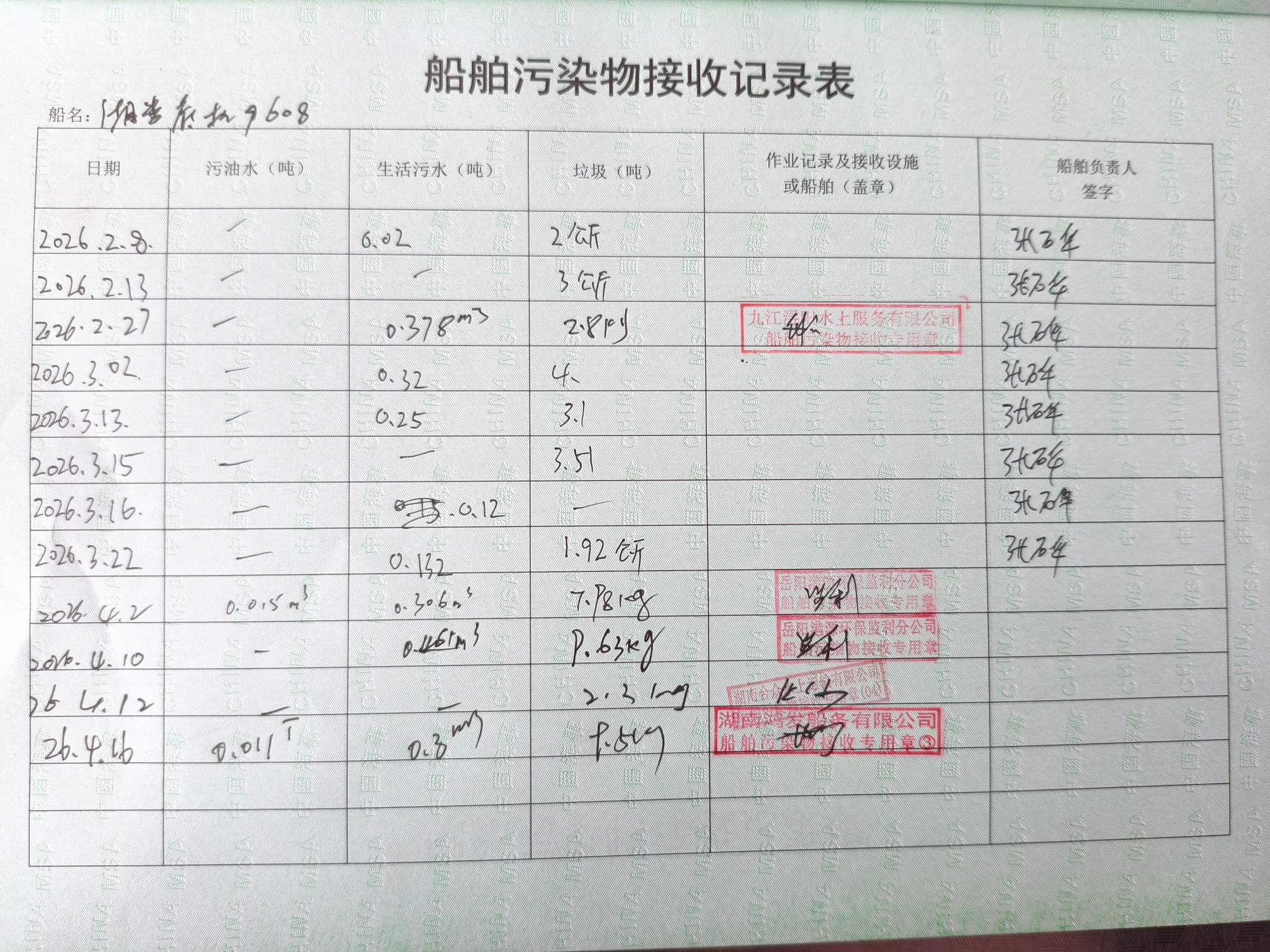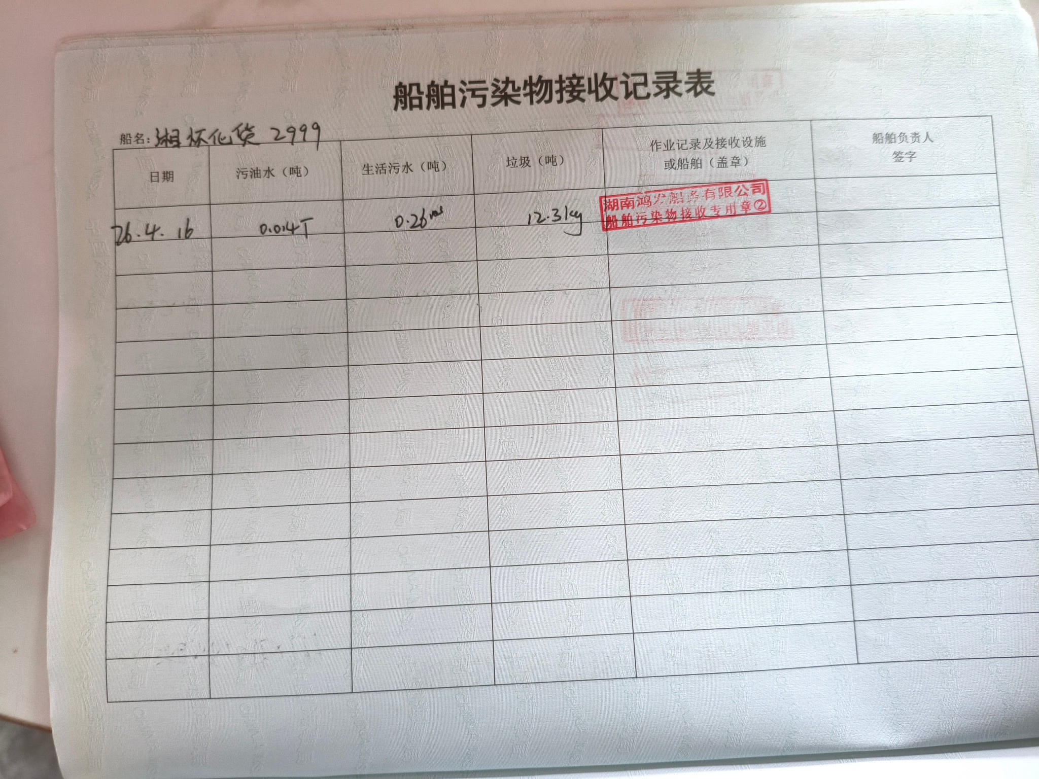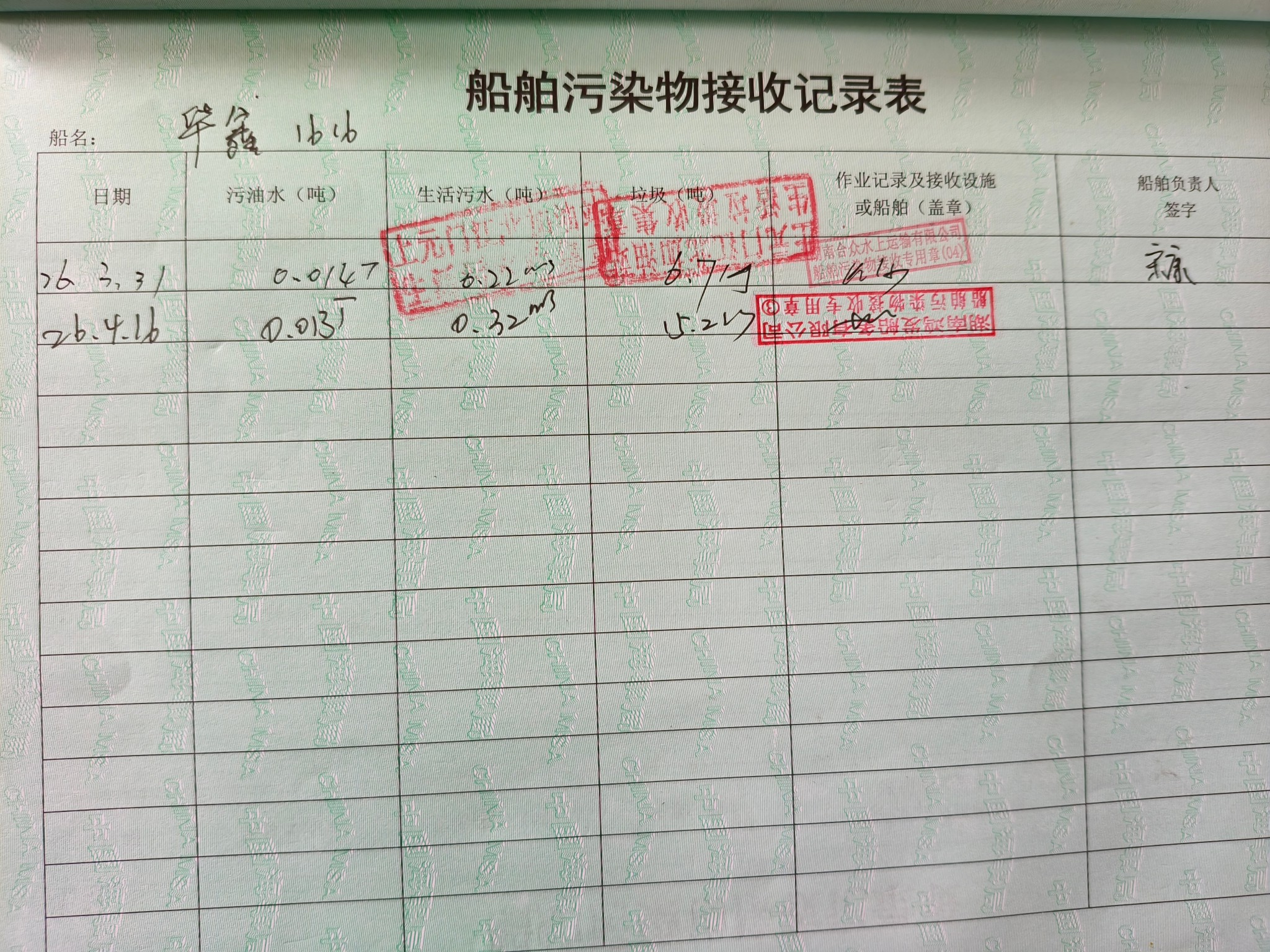 登船台账