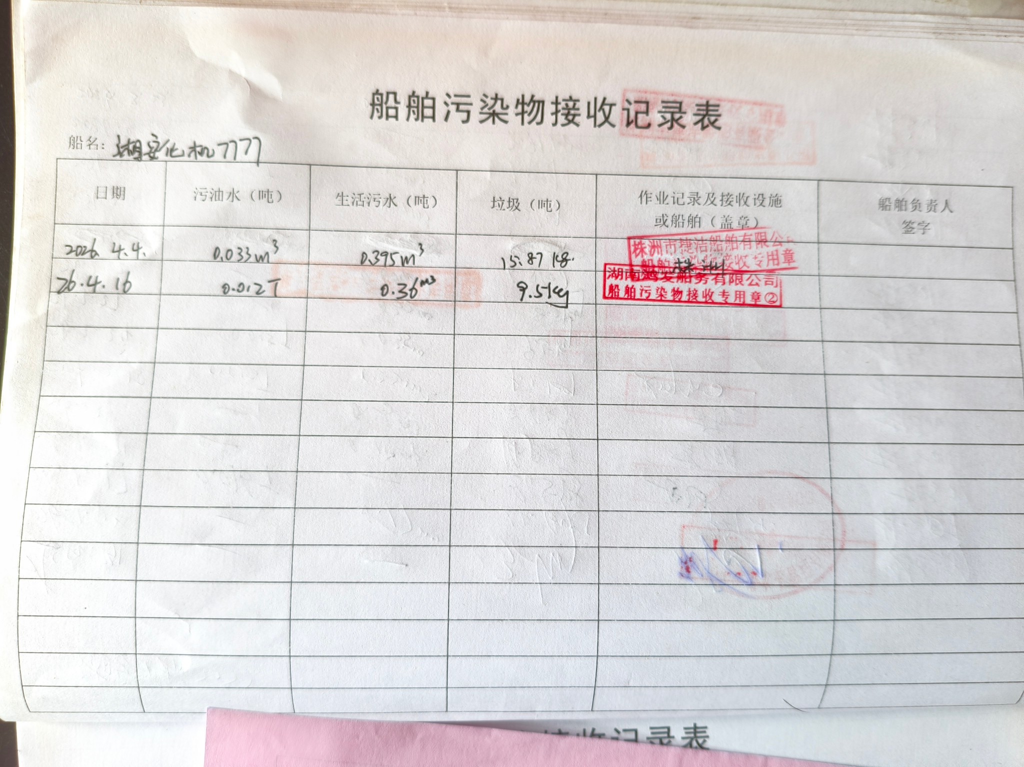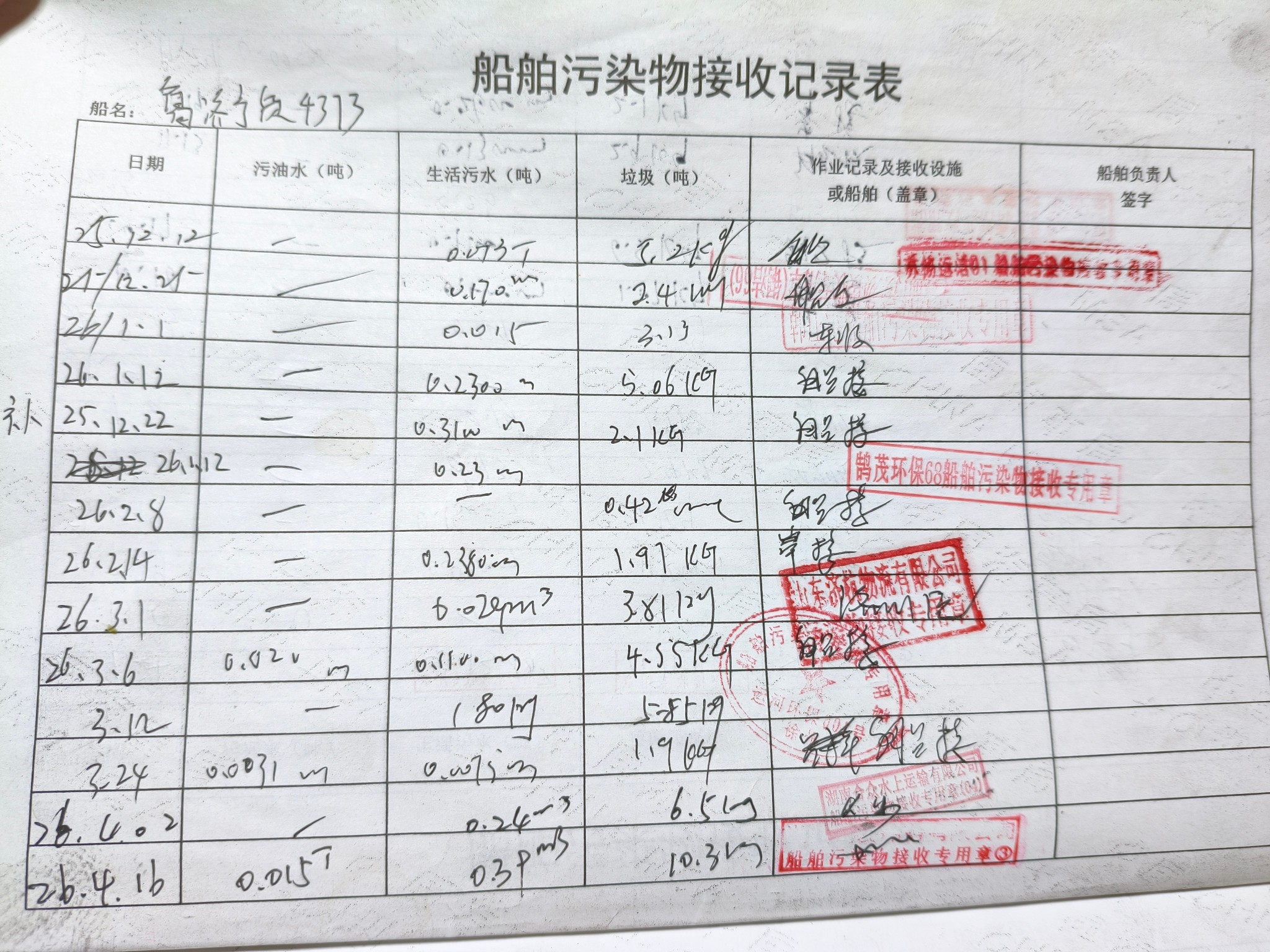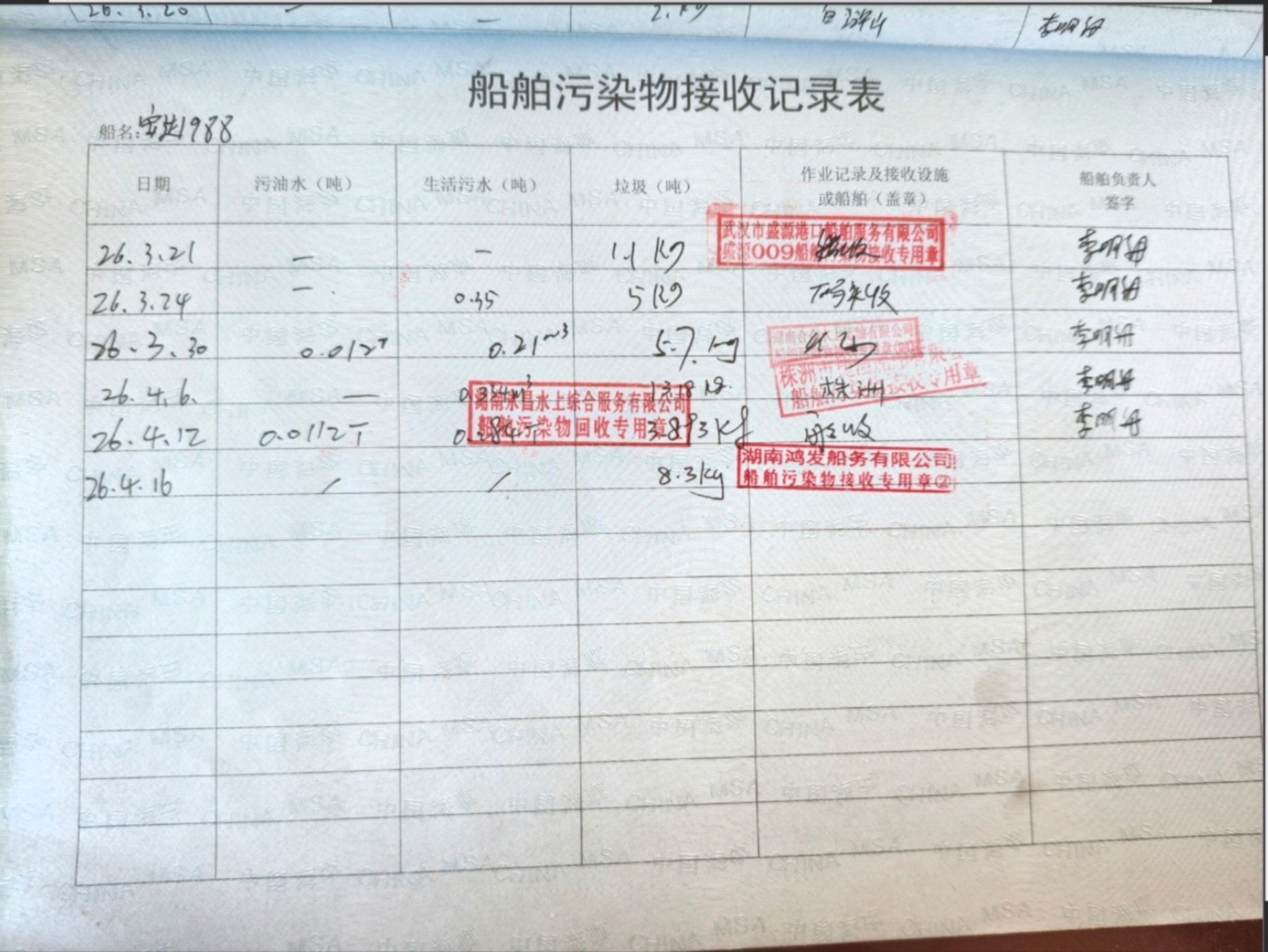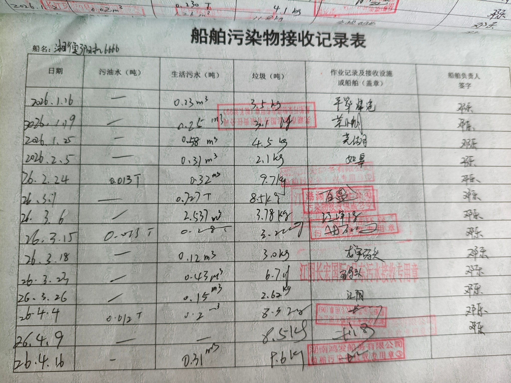 登船台账