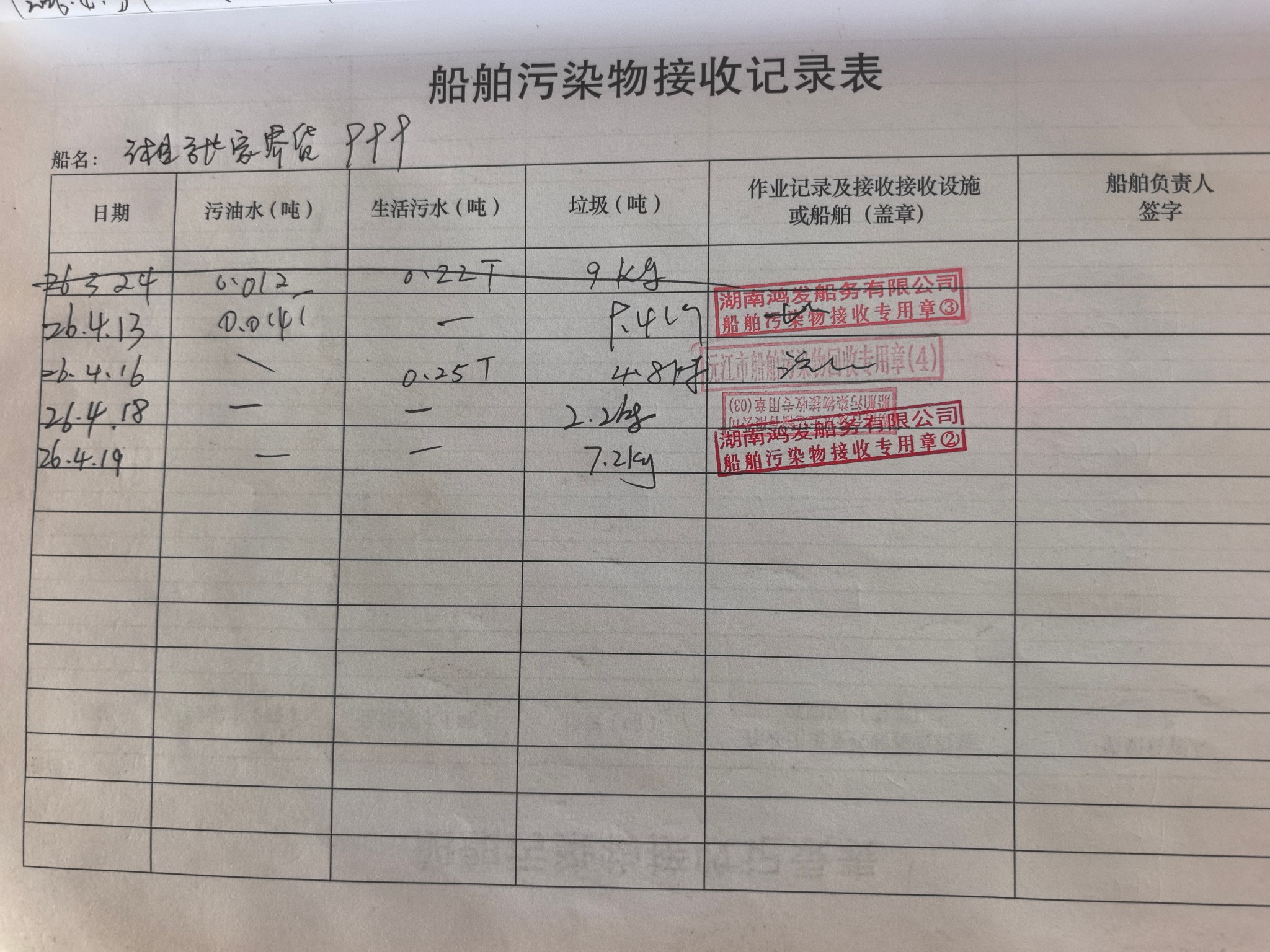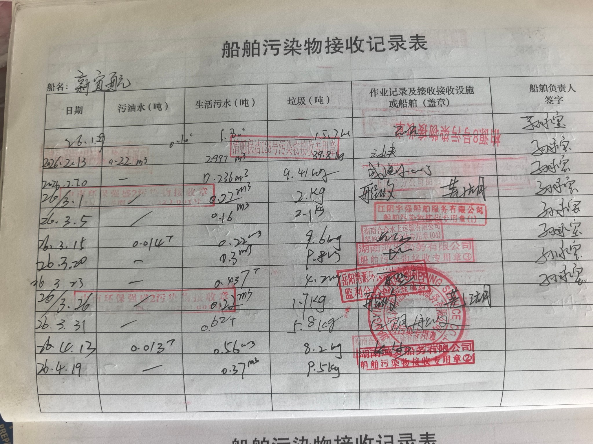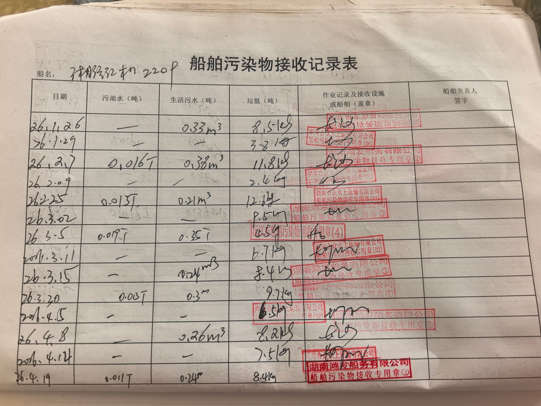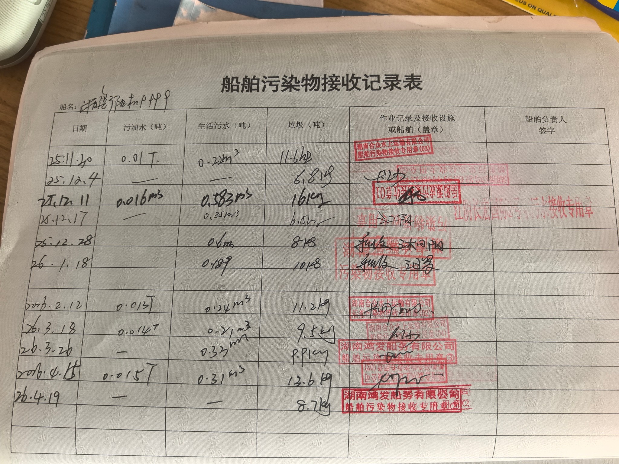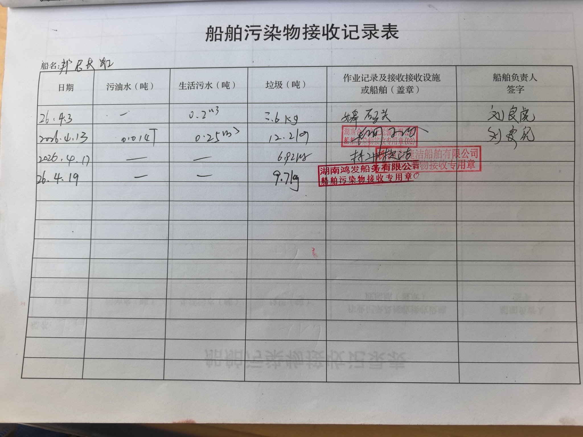 登船台账
