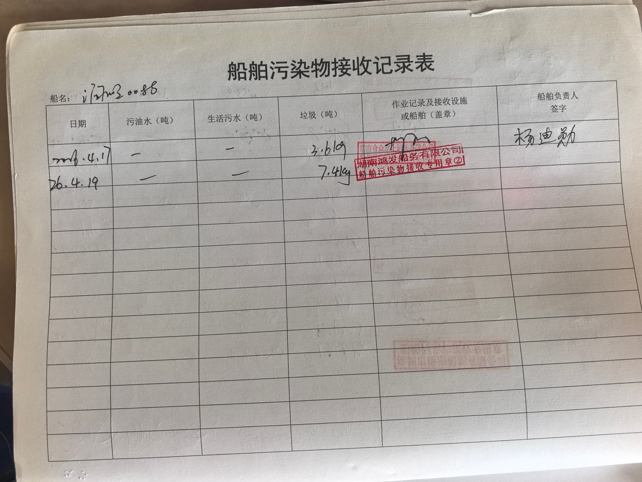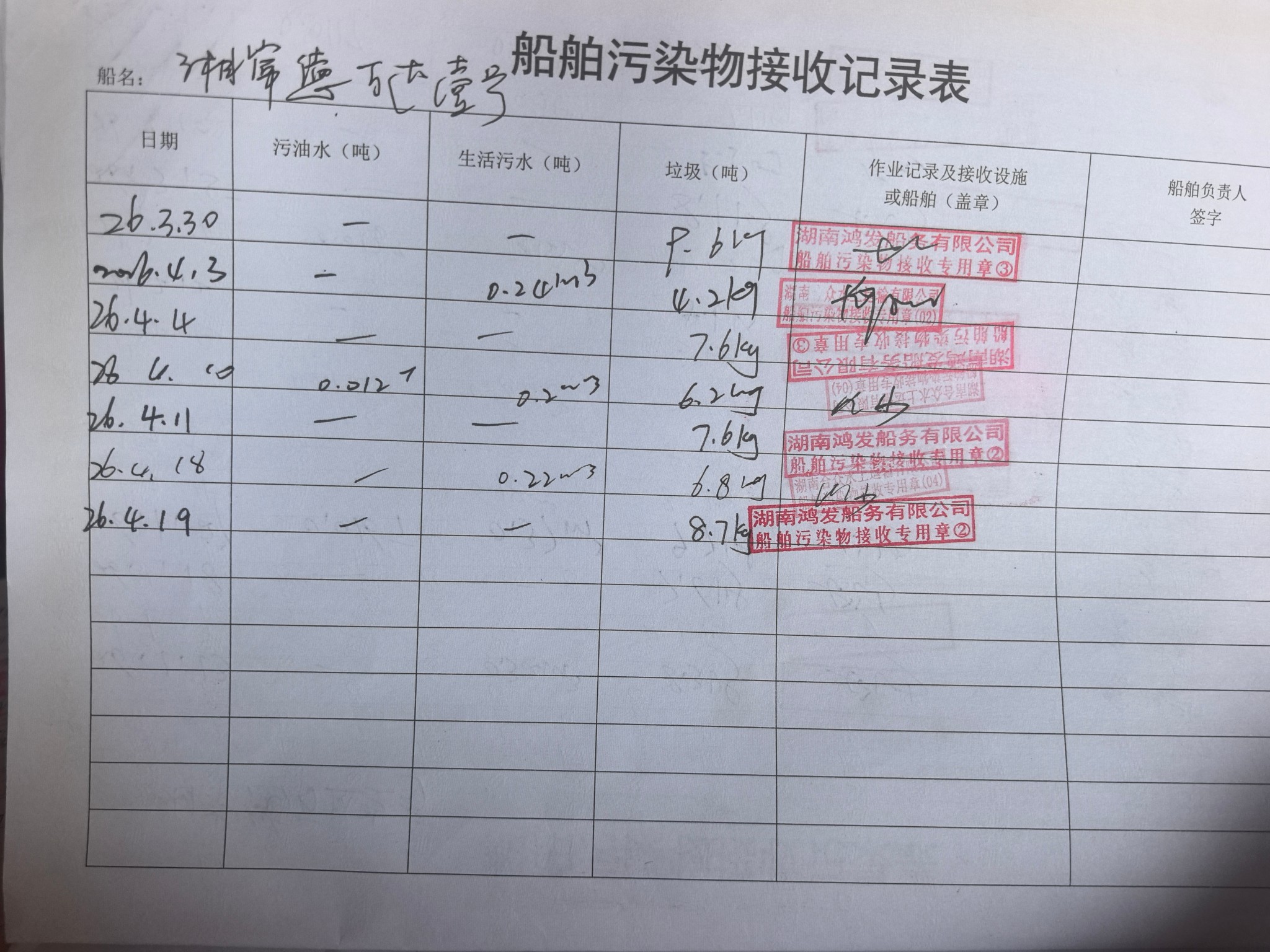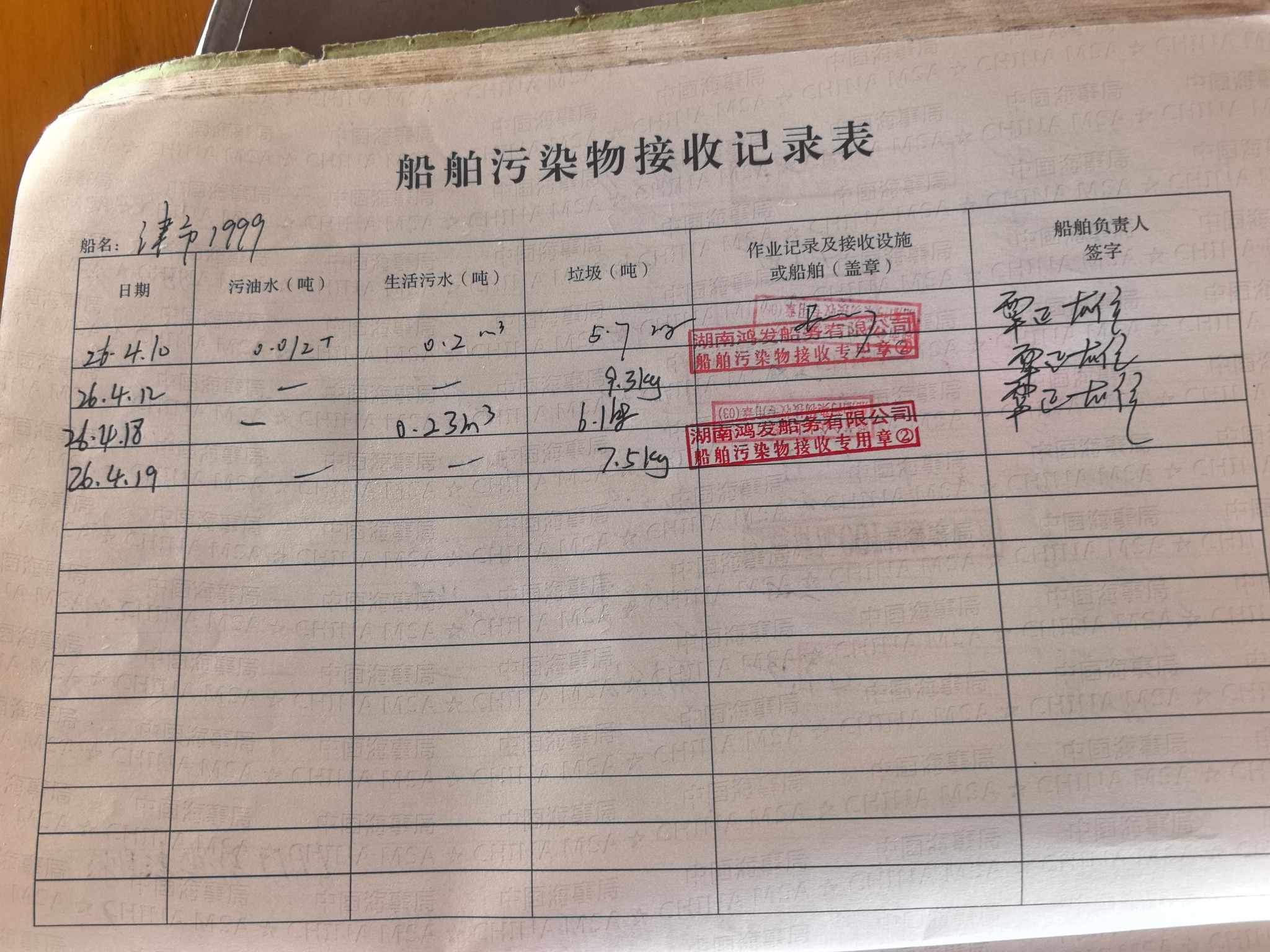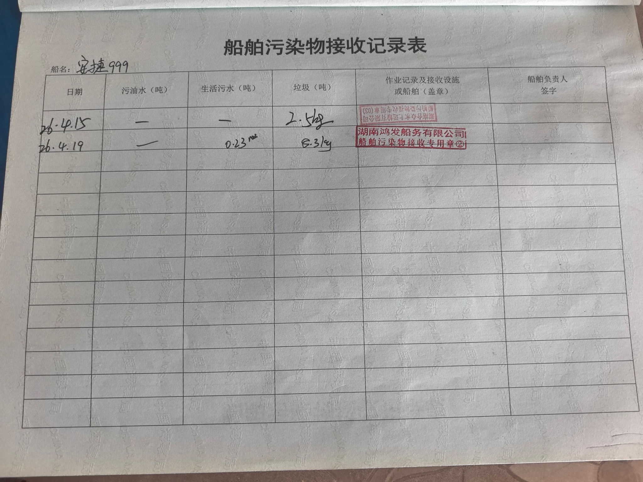 登船台账