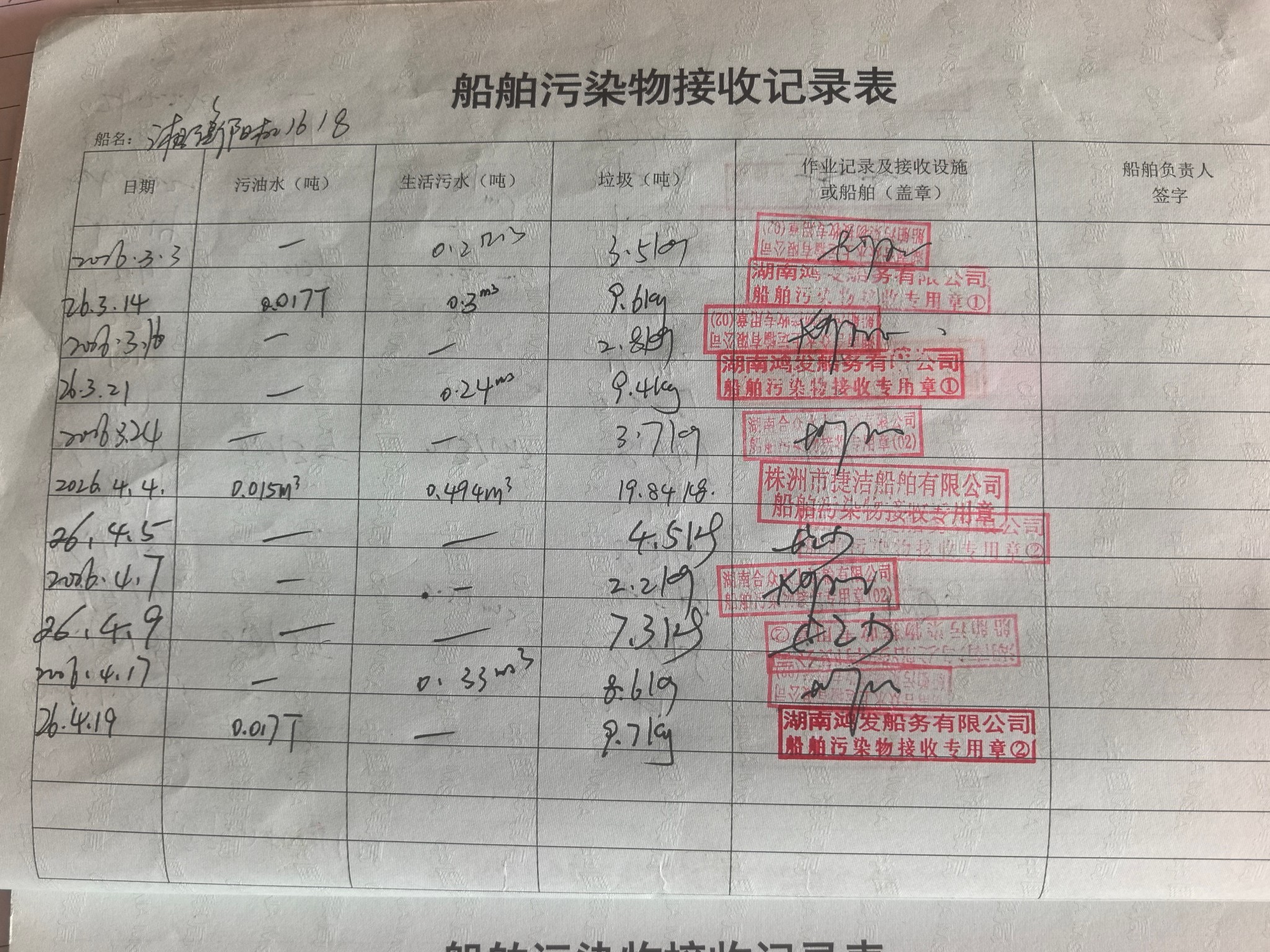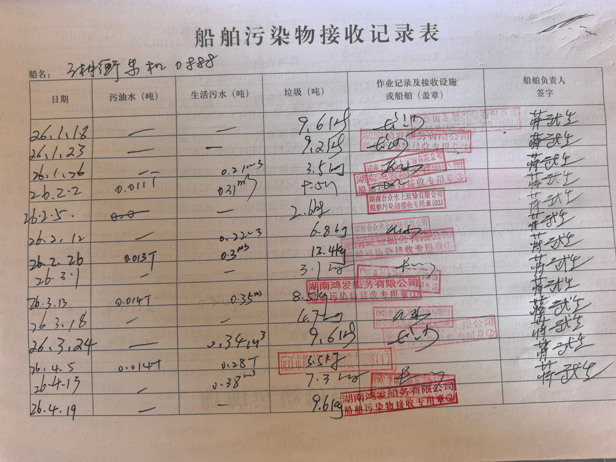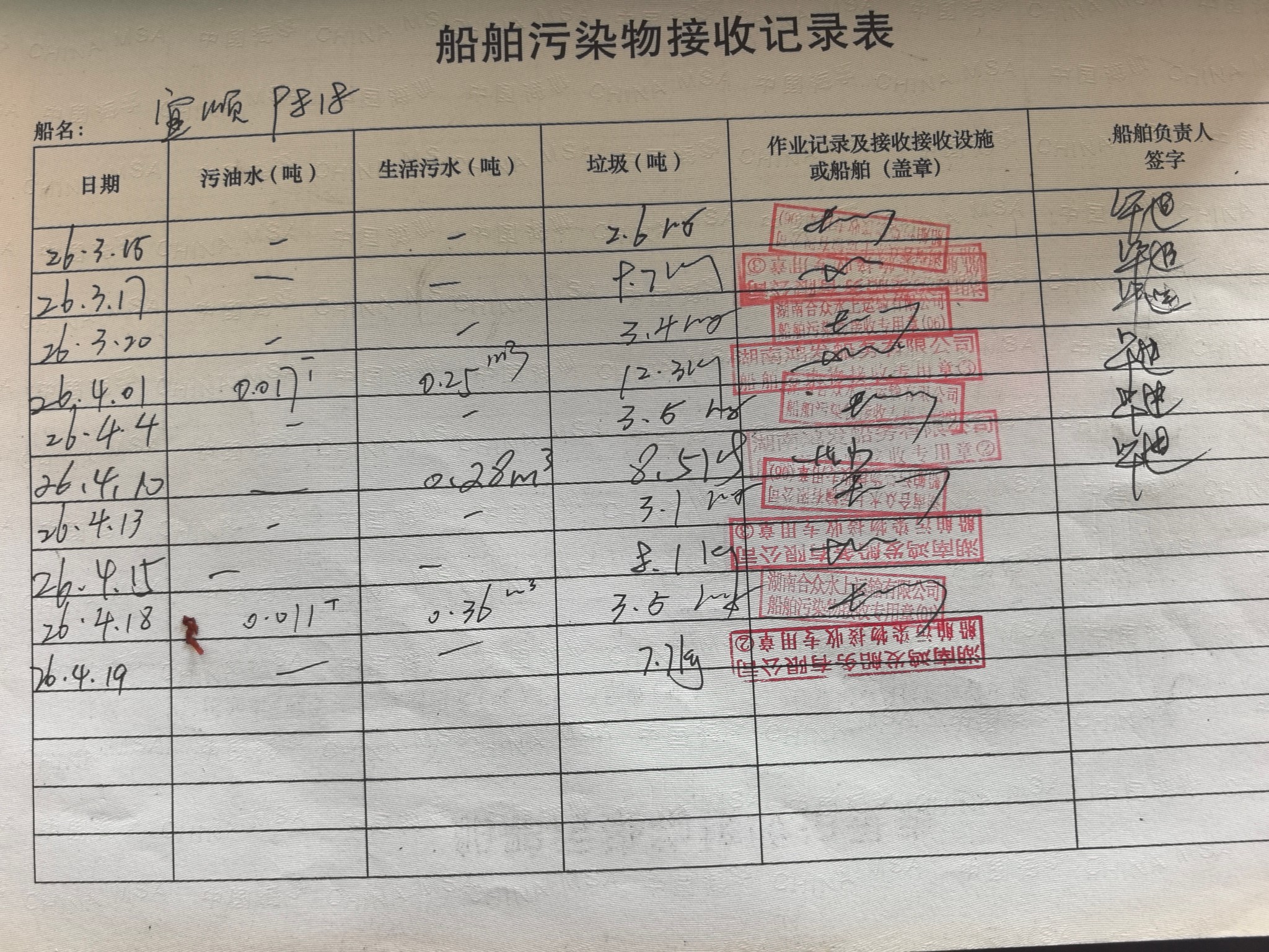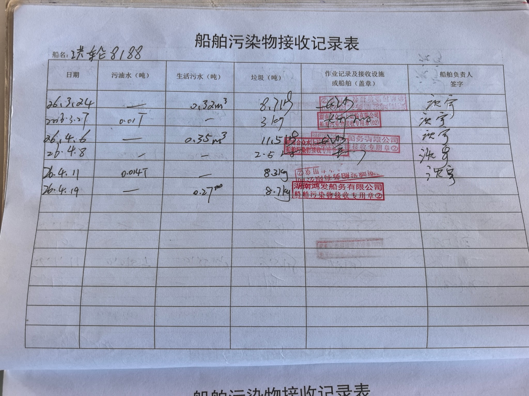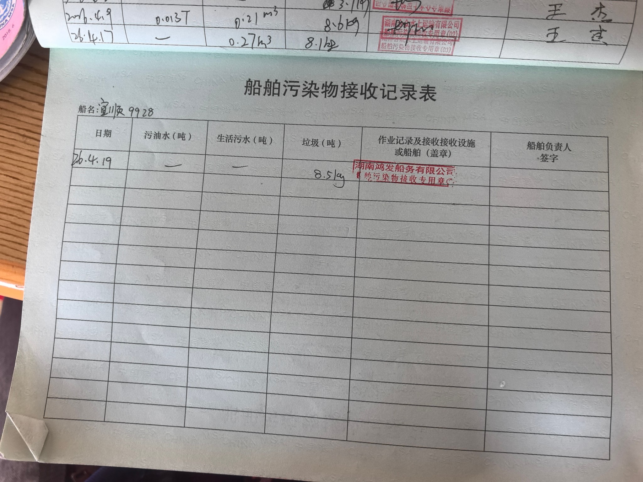 登船台账