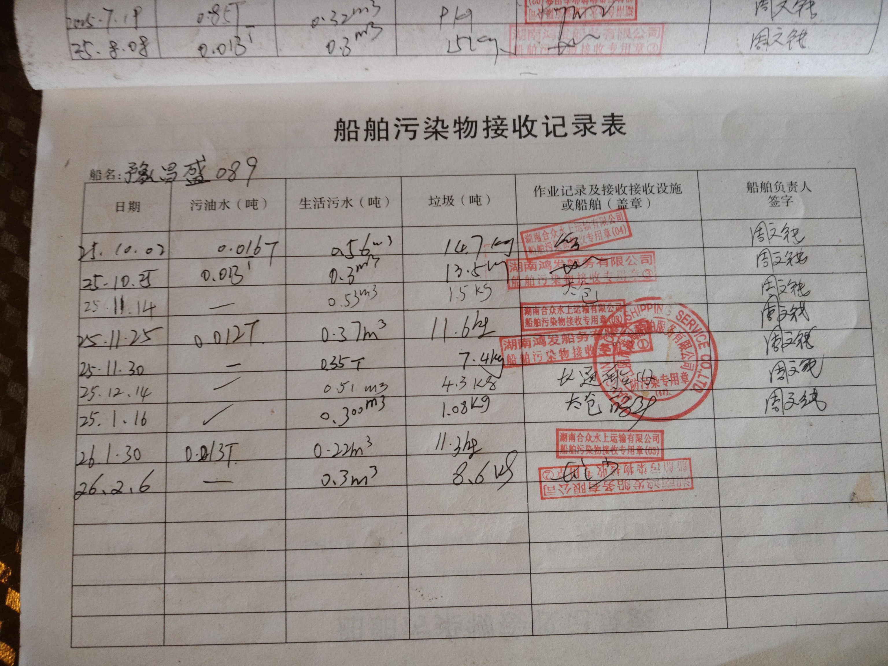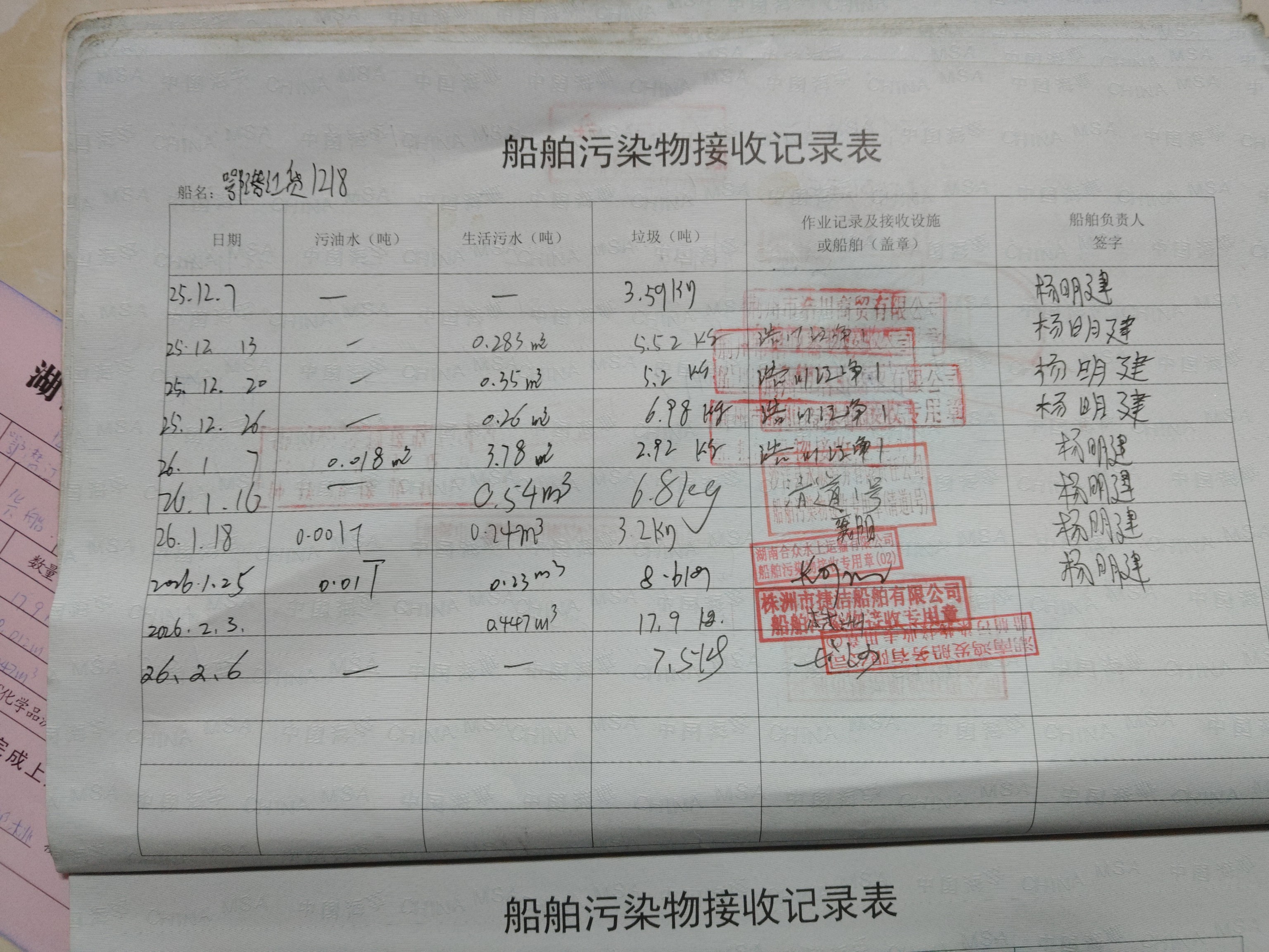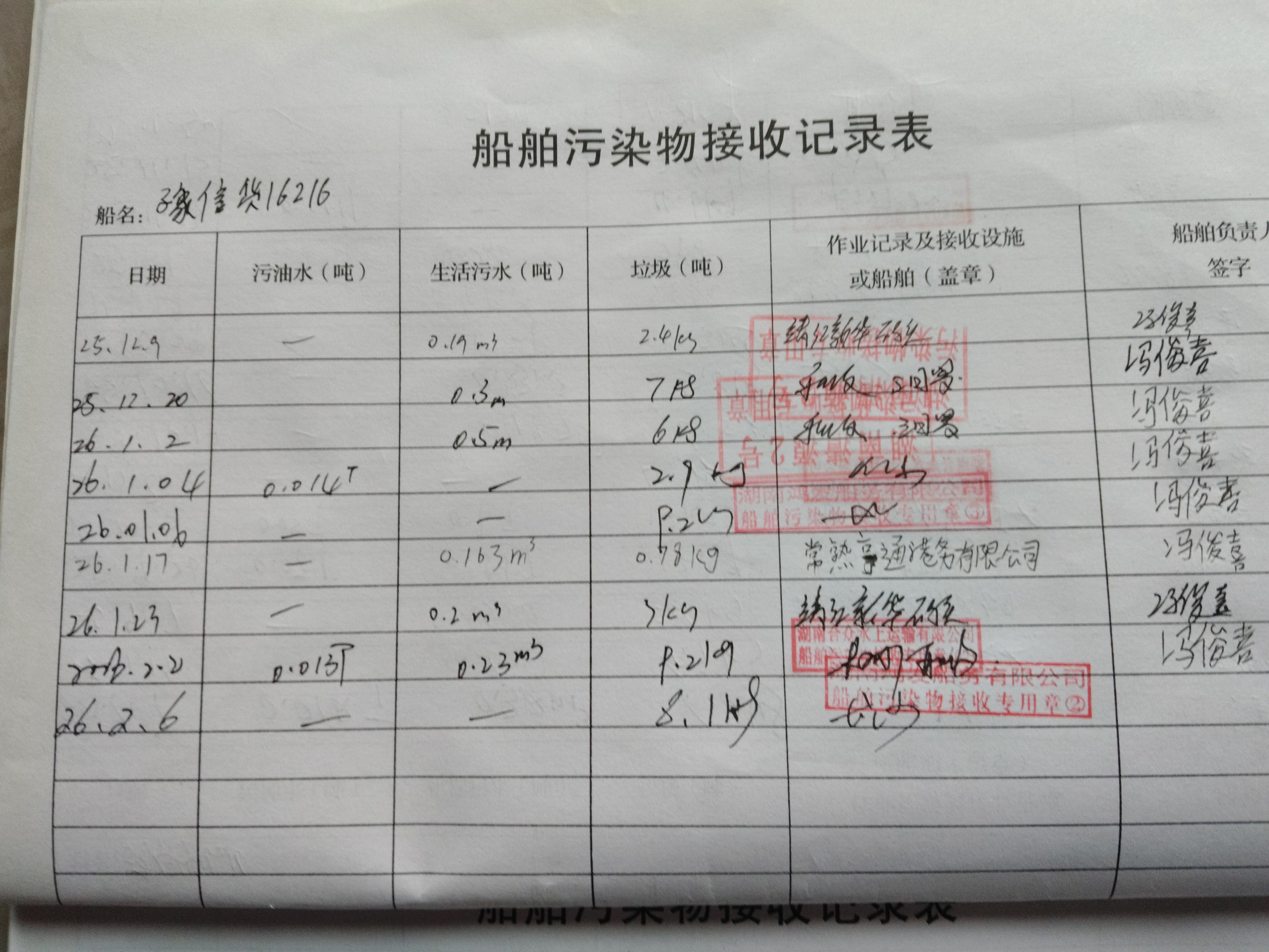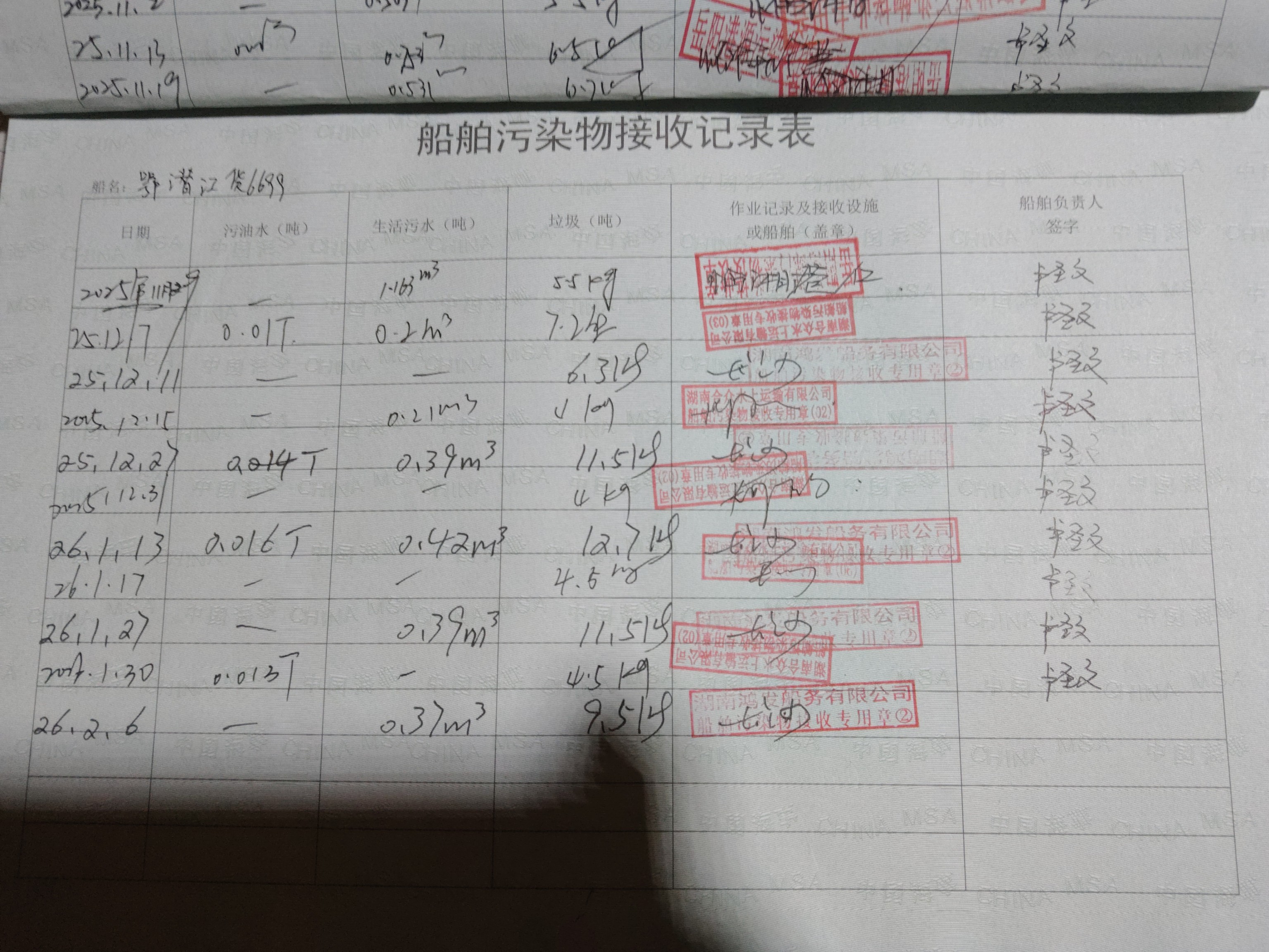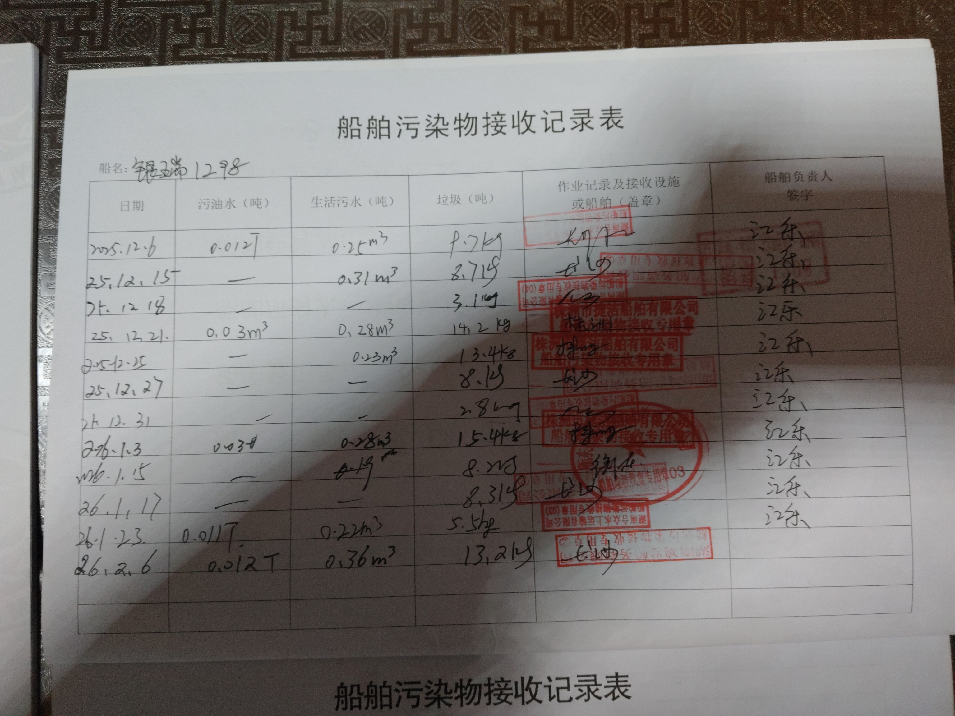登船台账