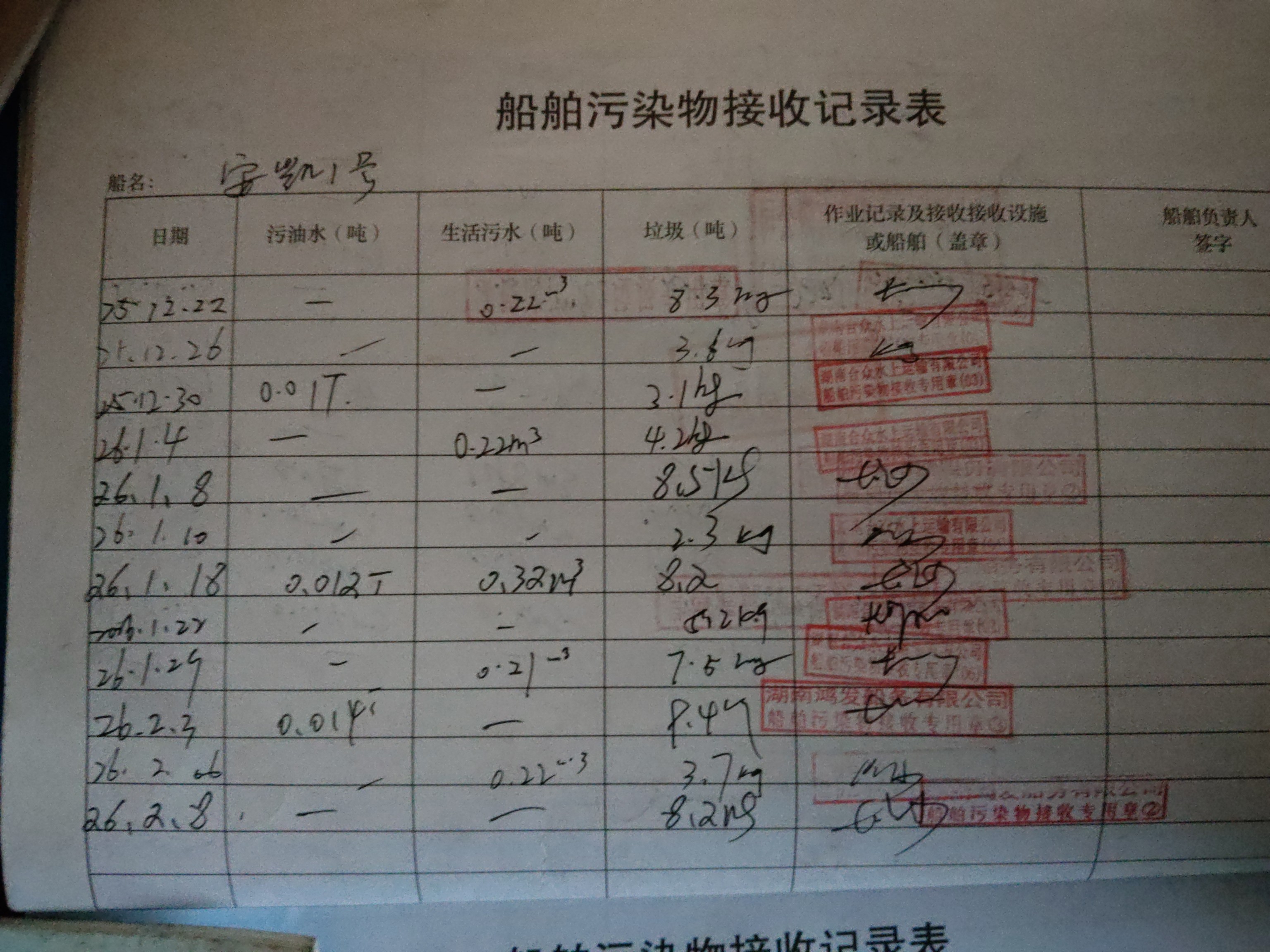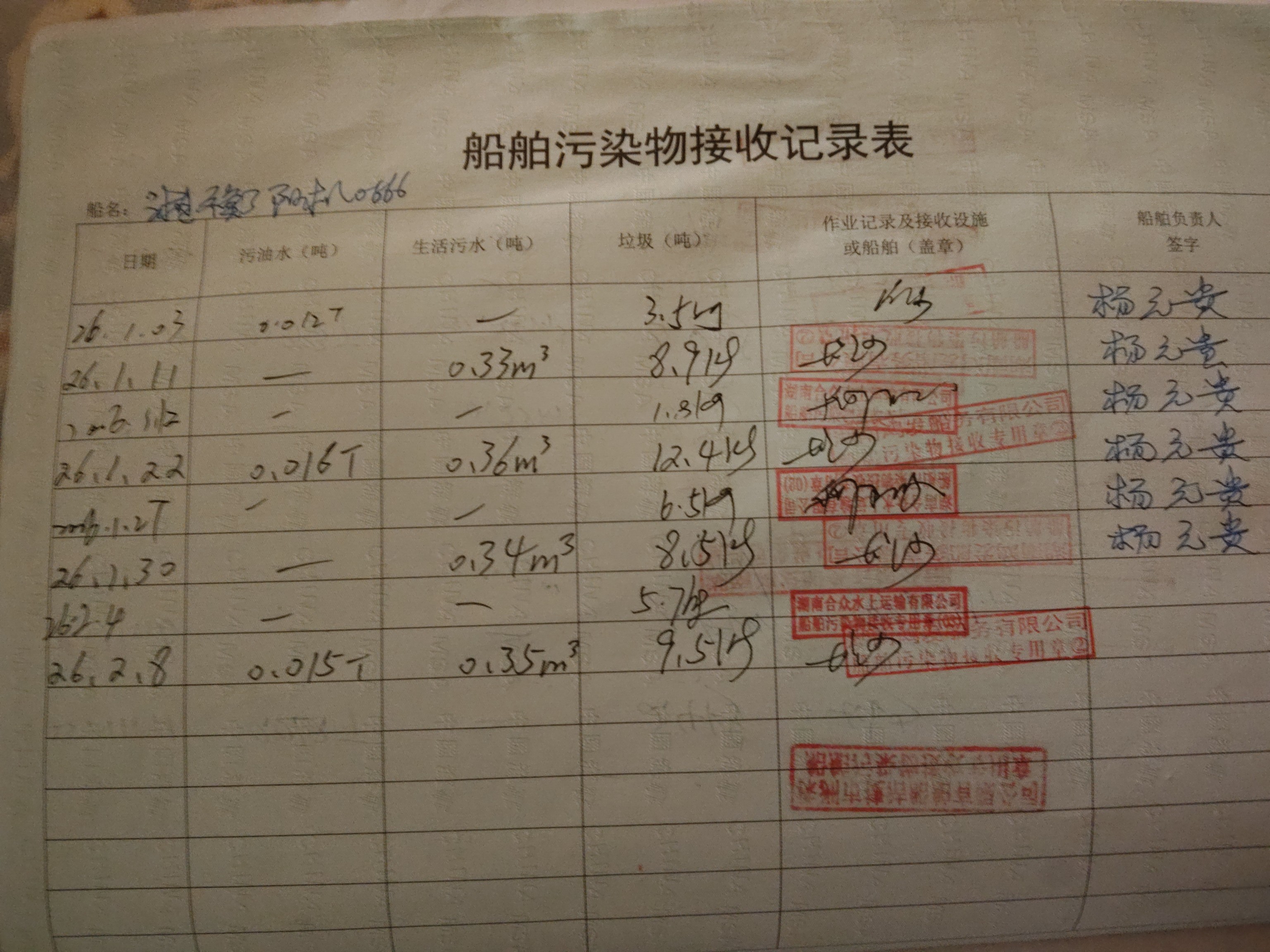登船台账