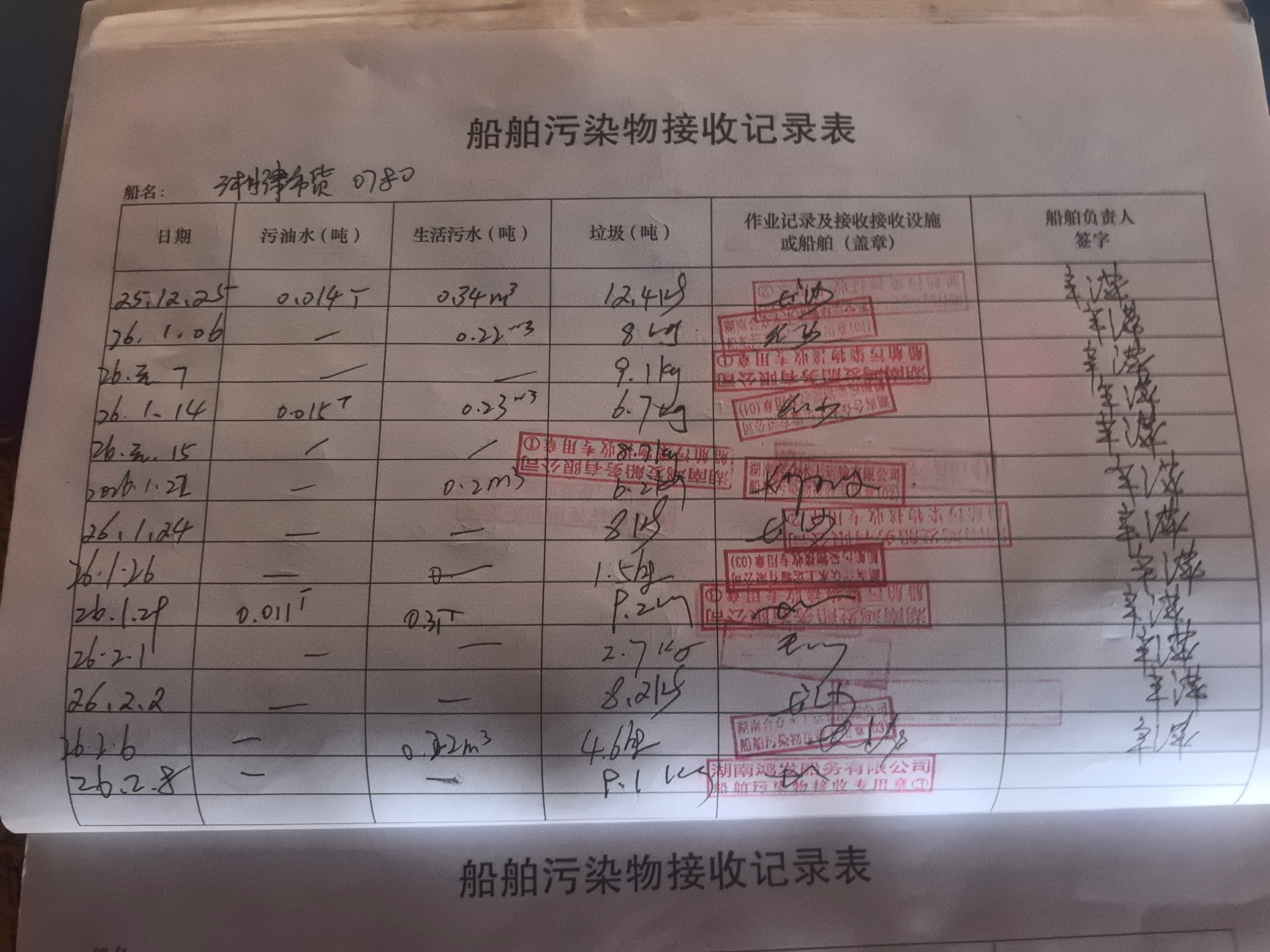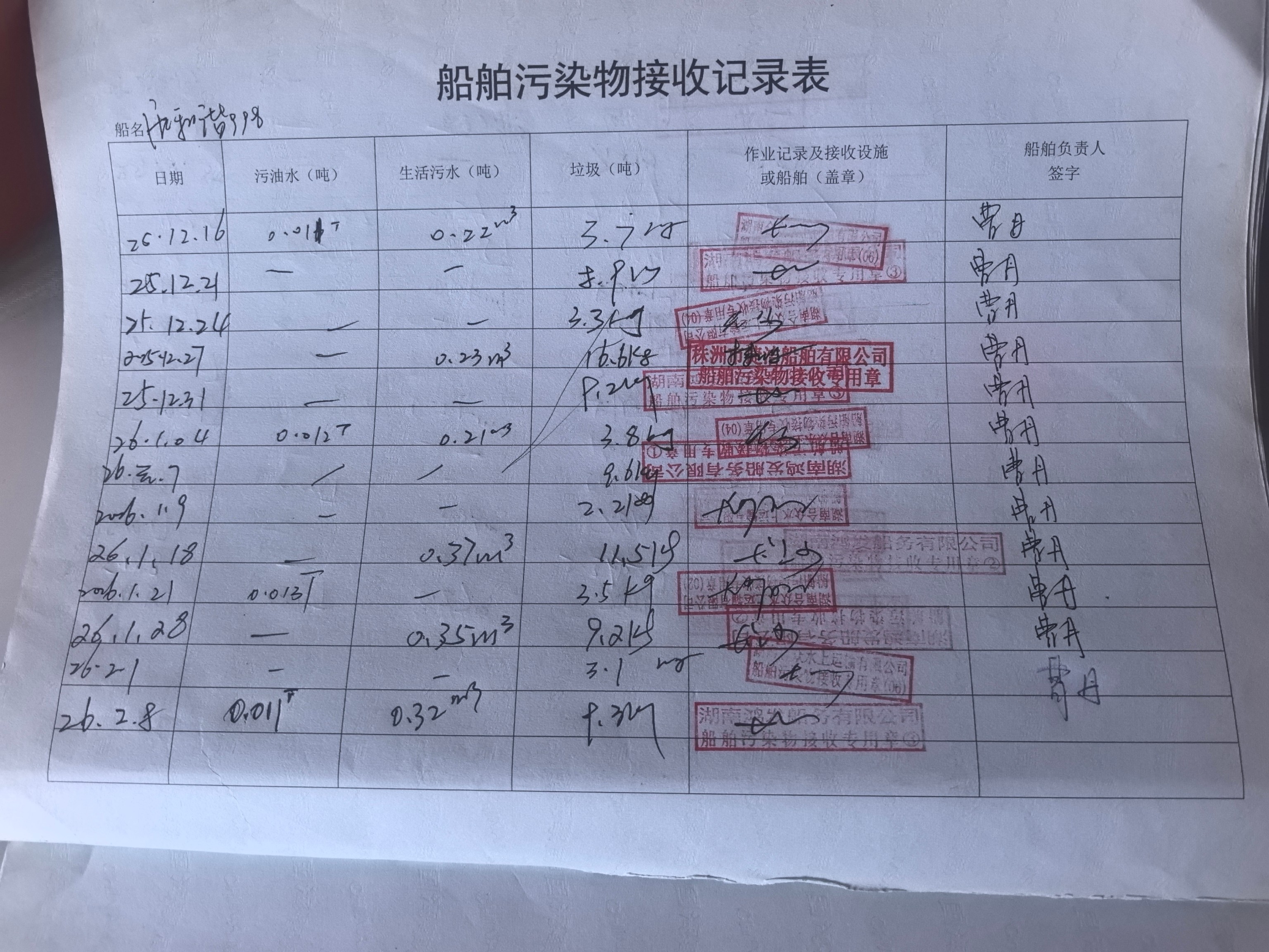 登船台账