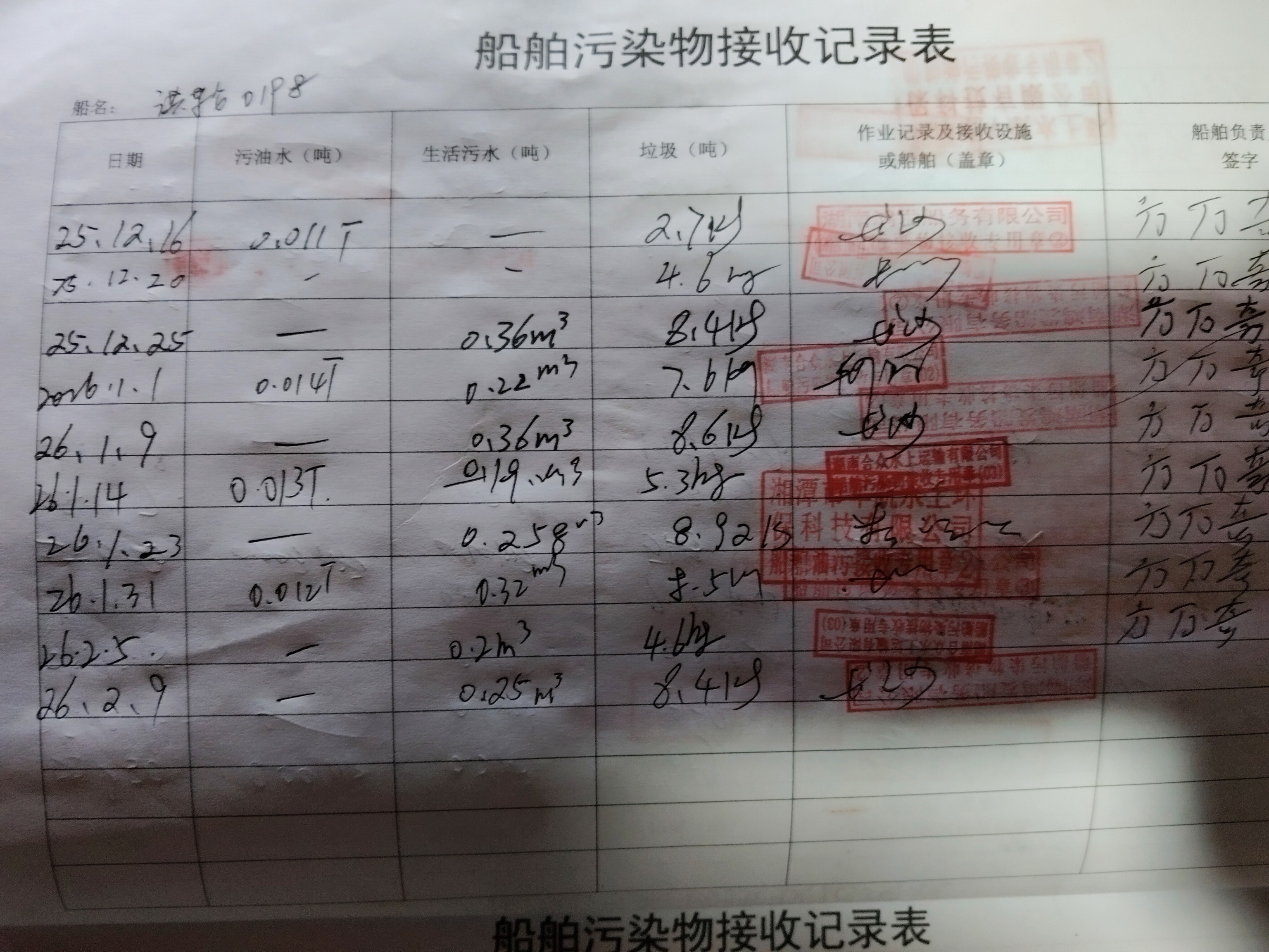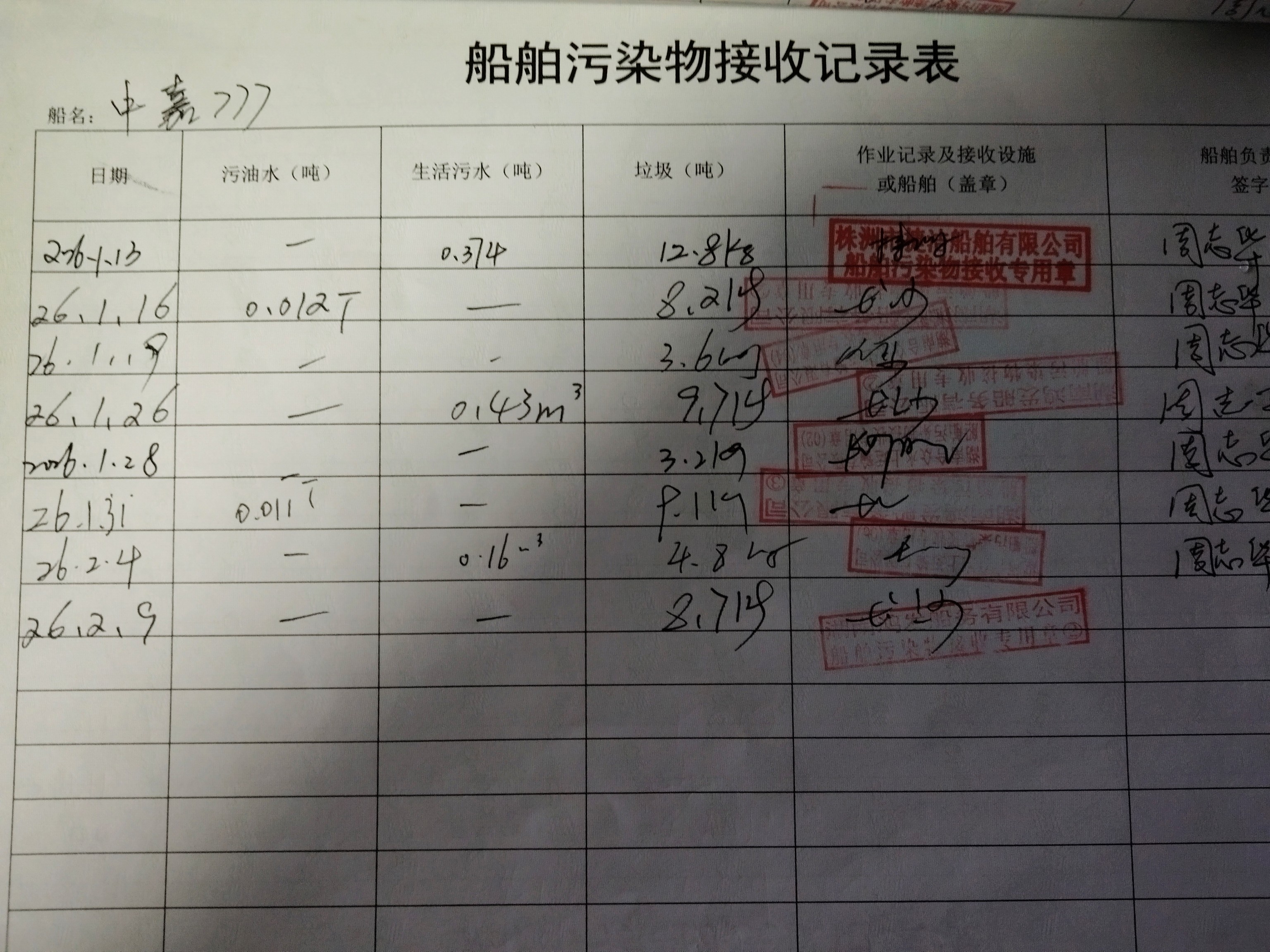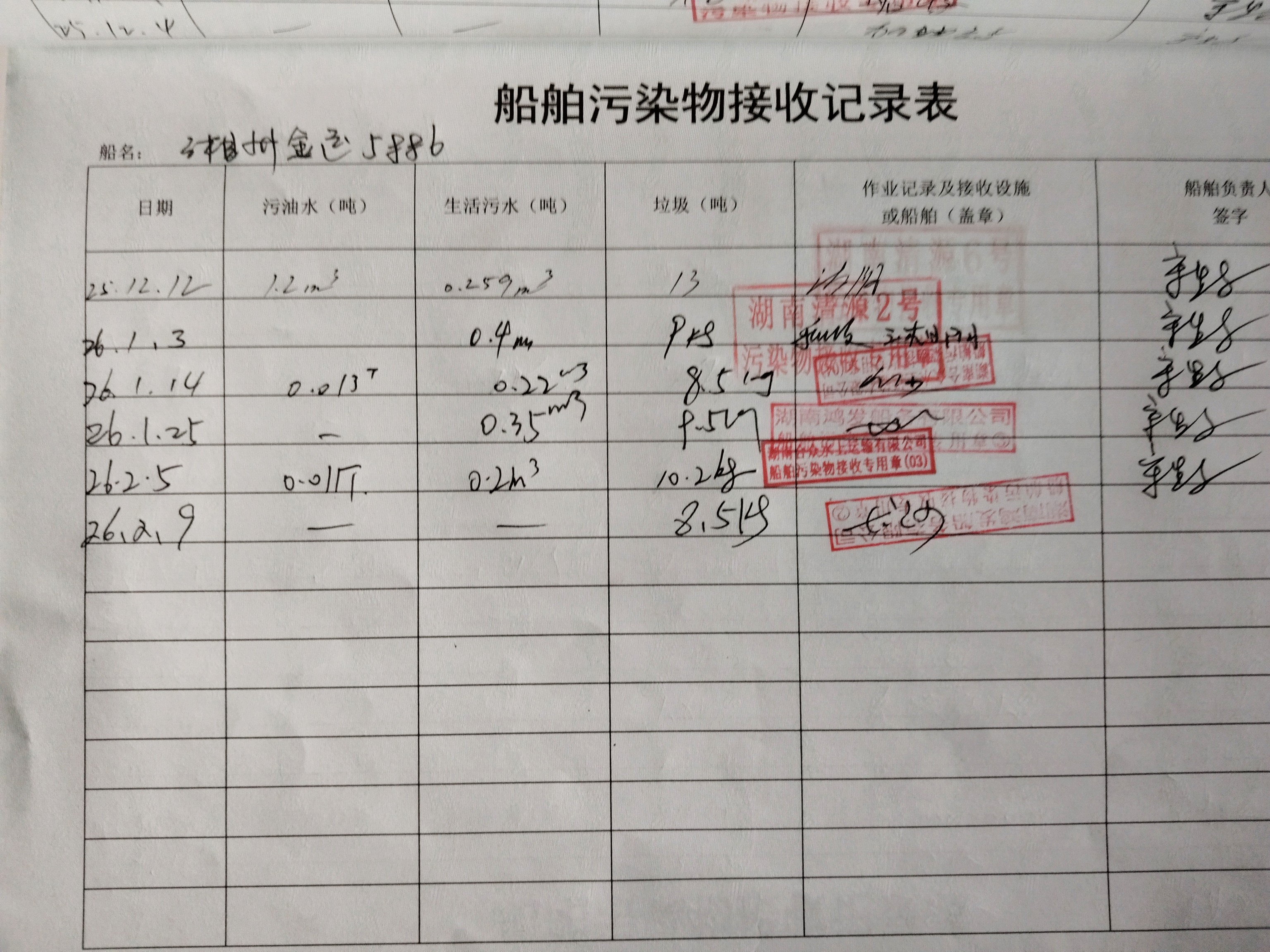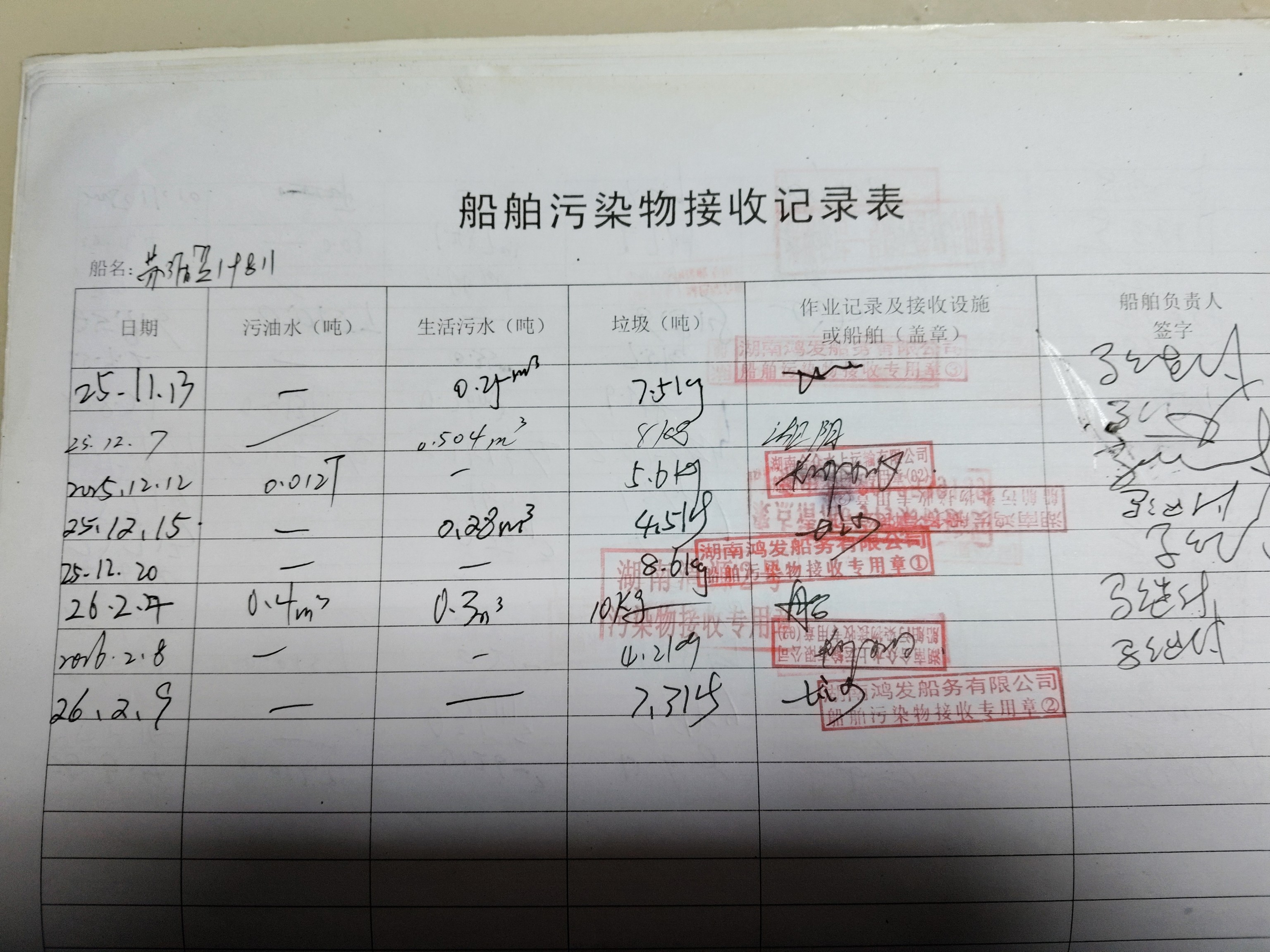 登船台账