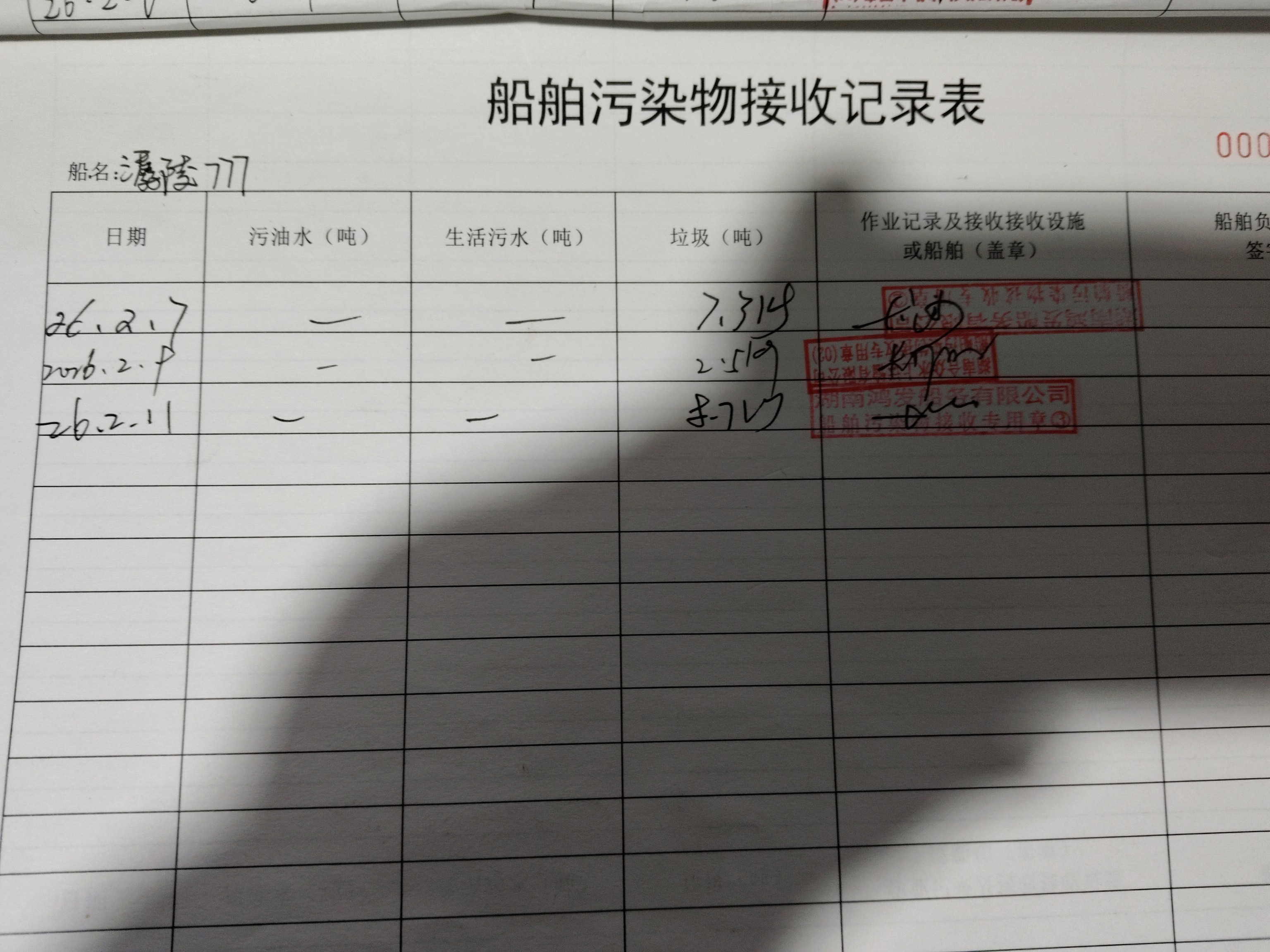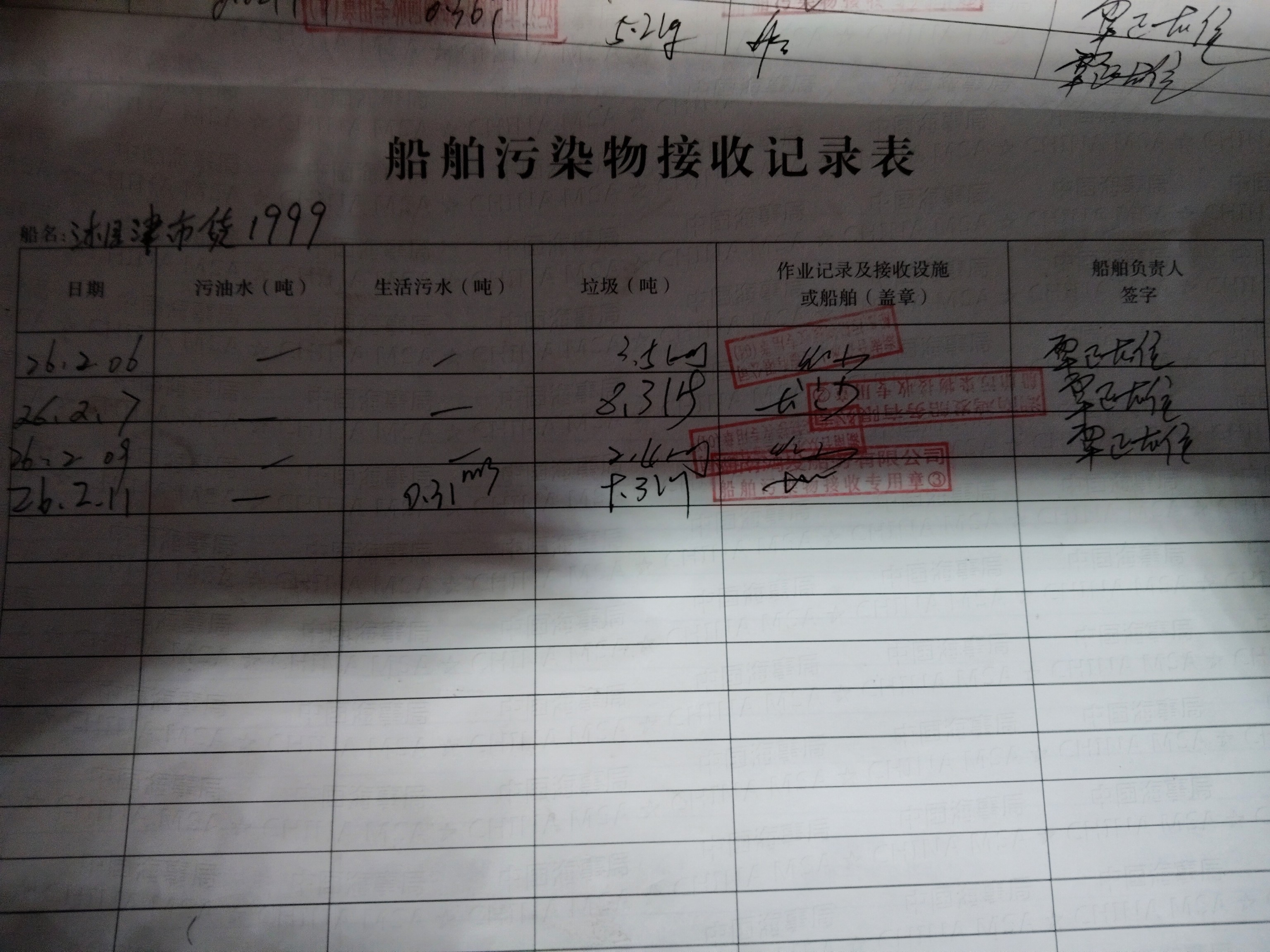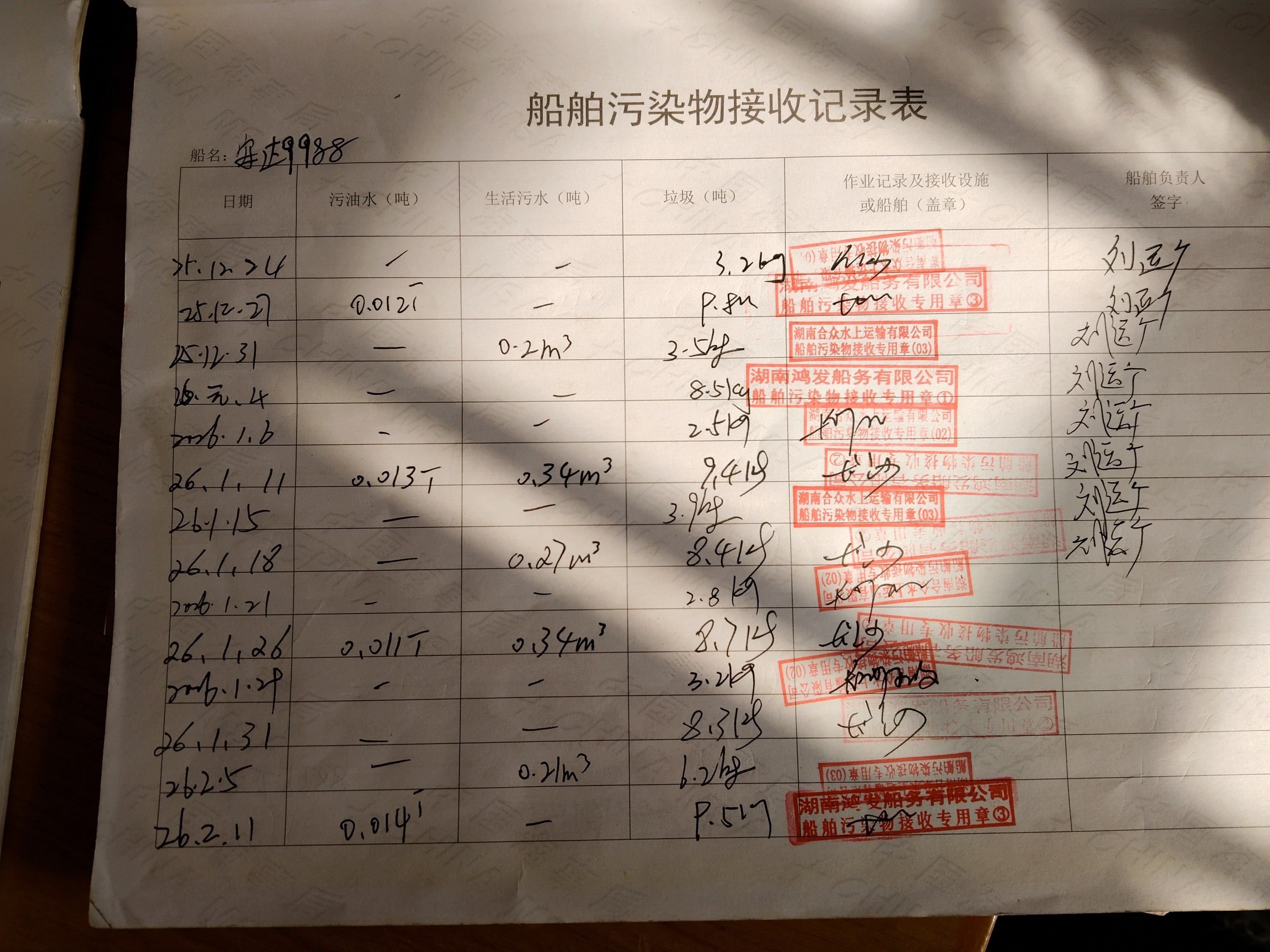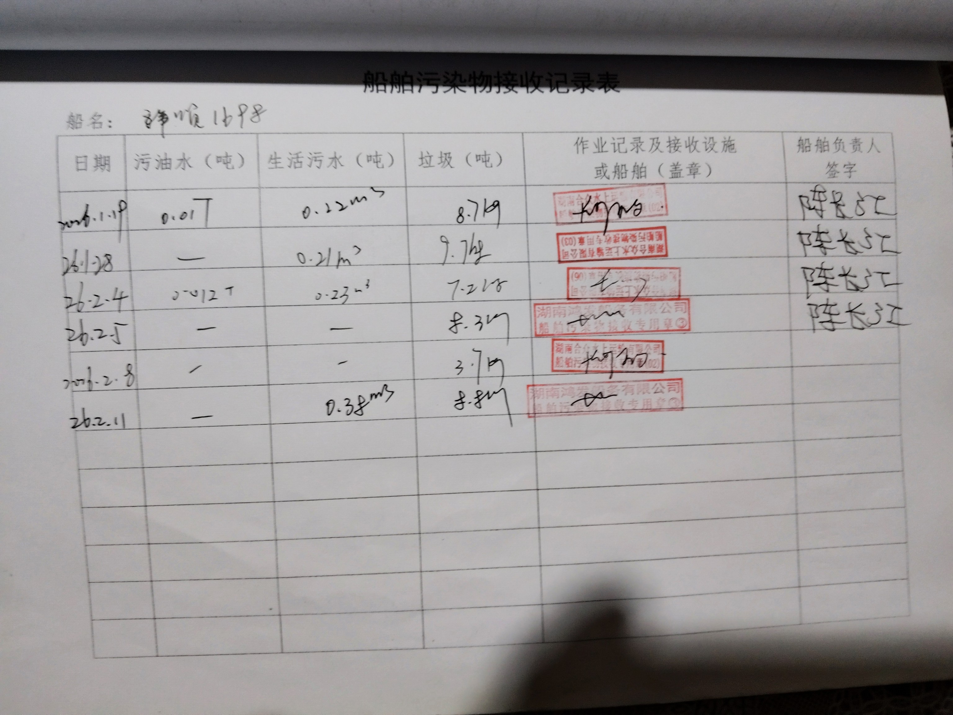 登船台账