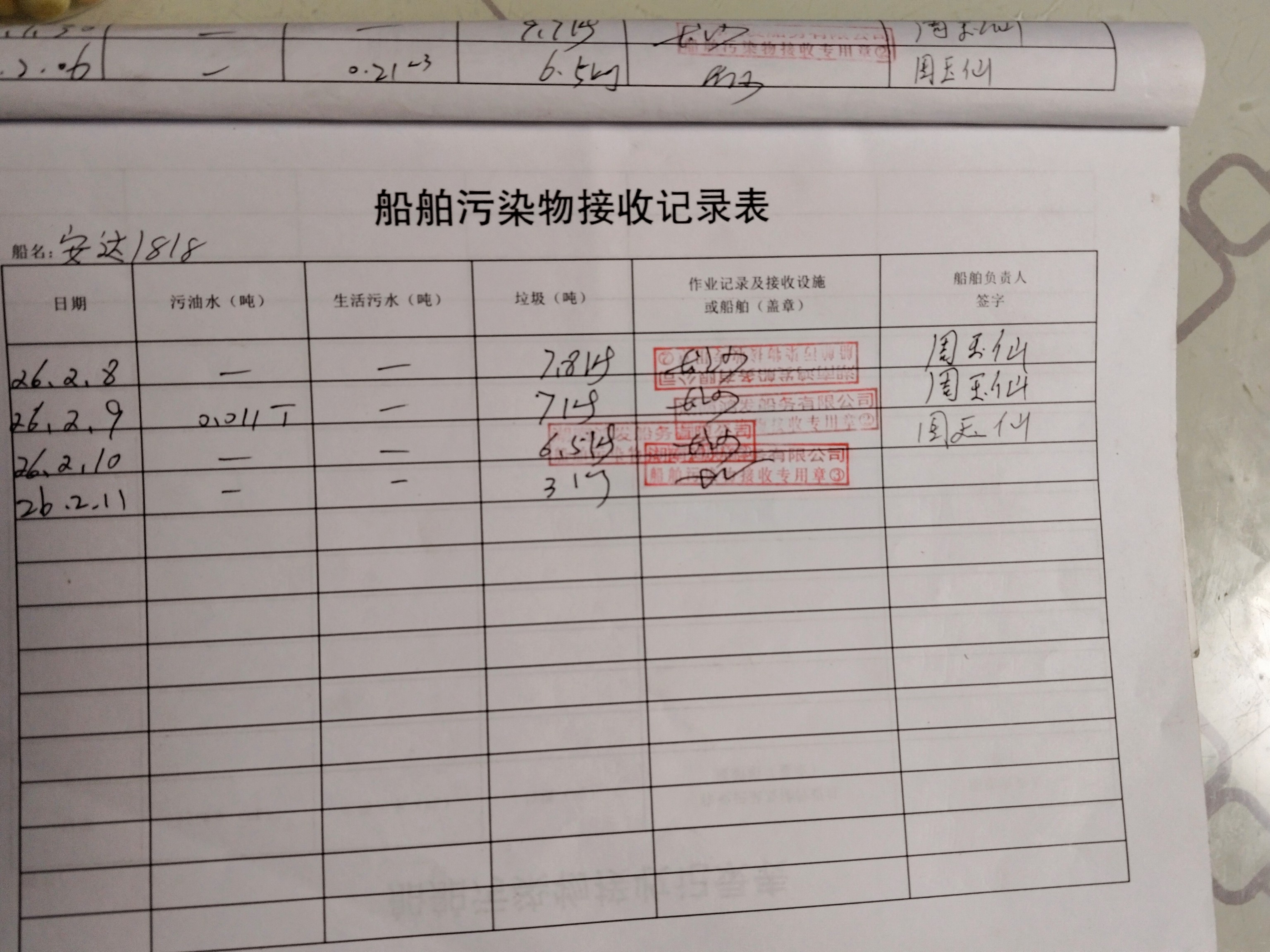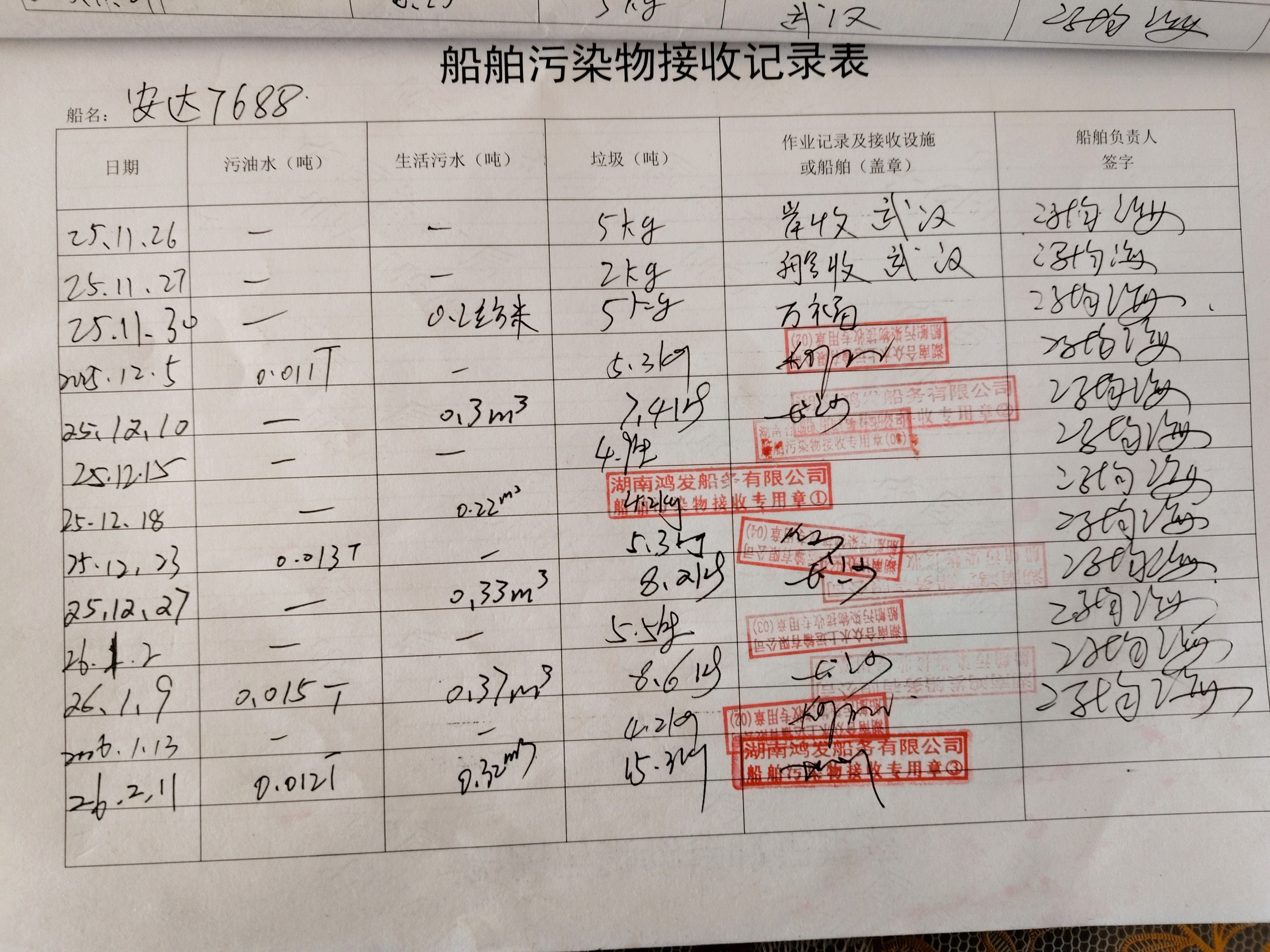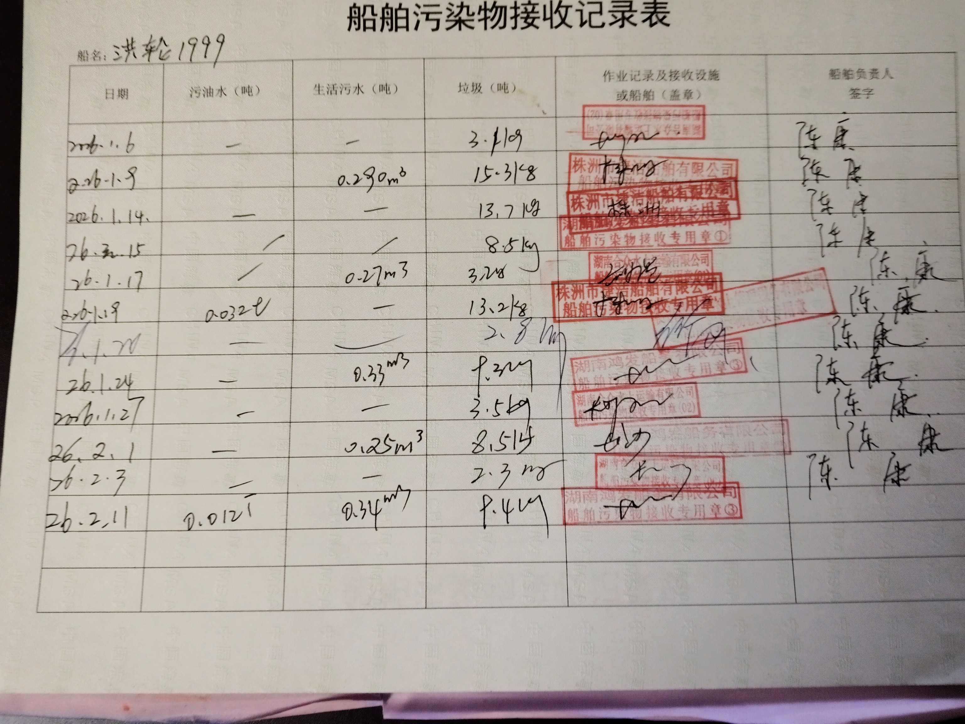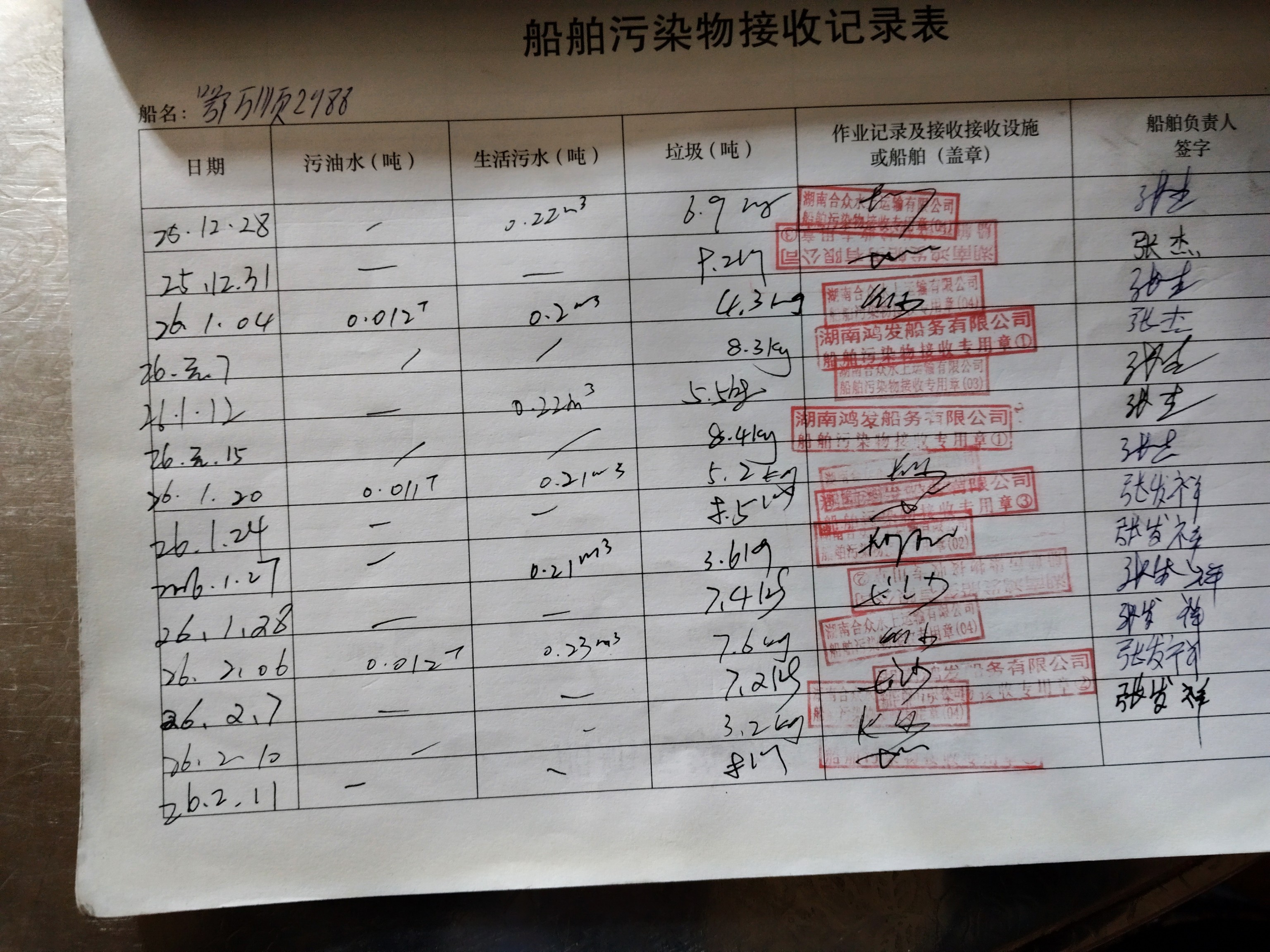 登船台账
