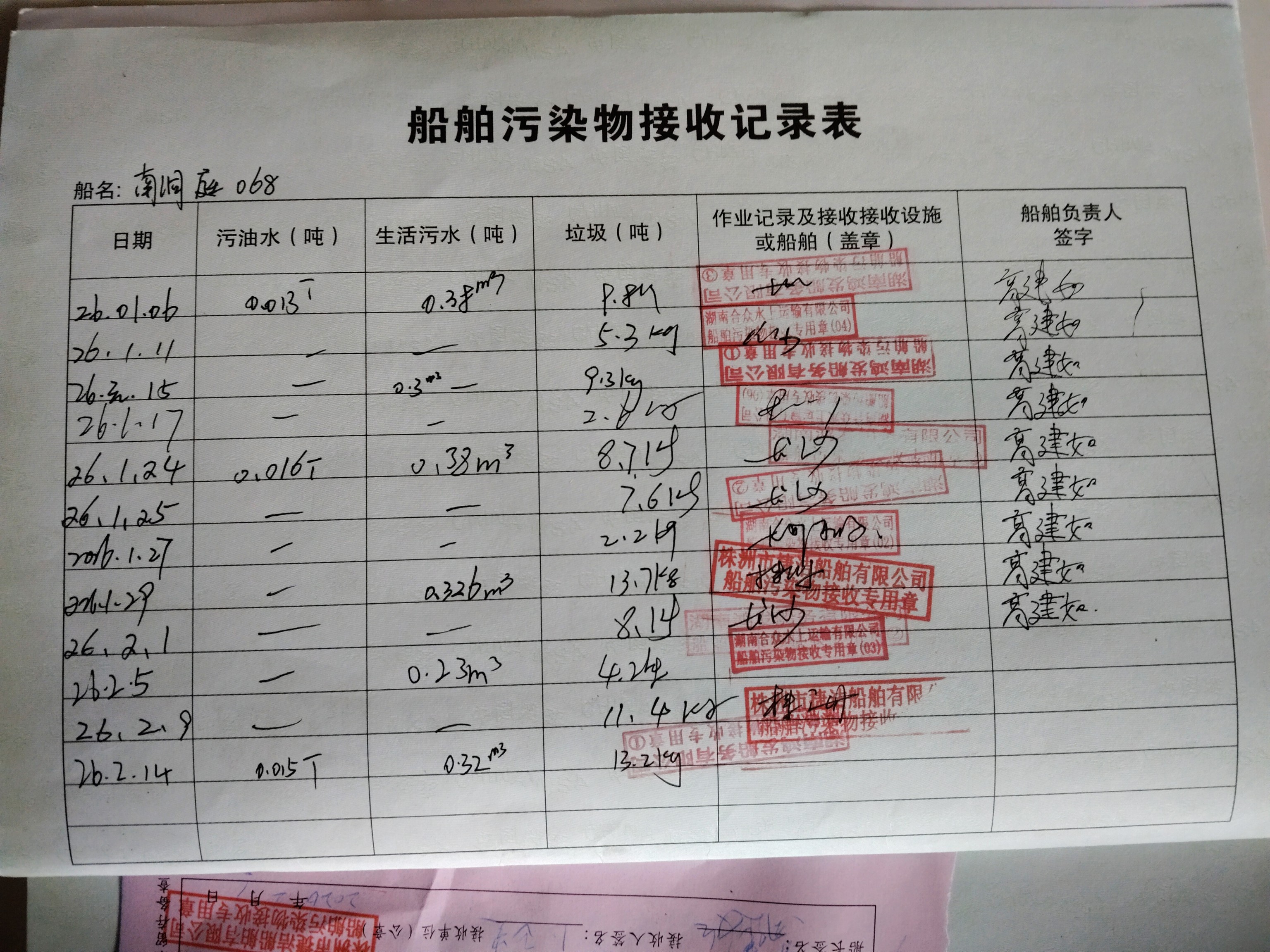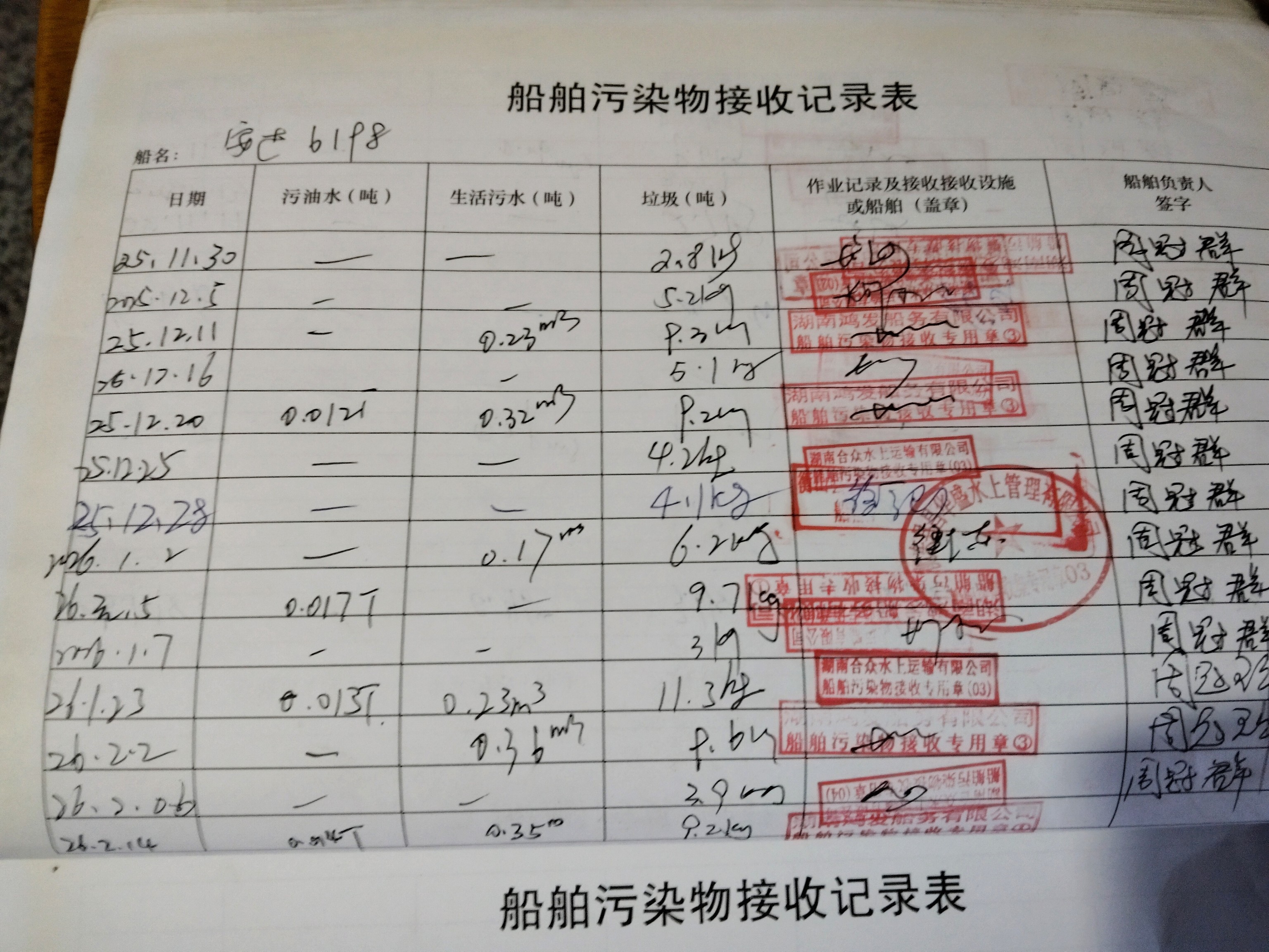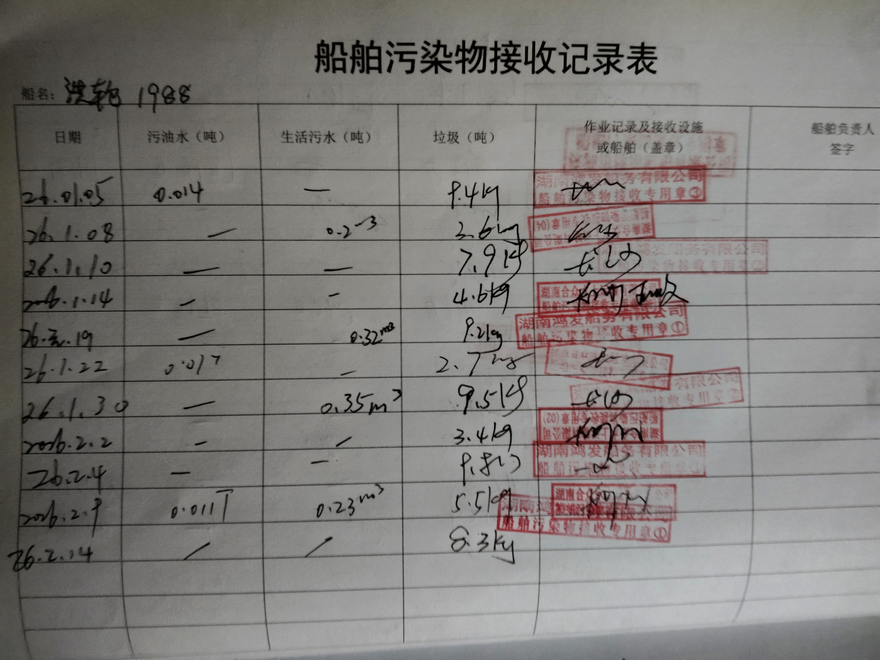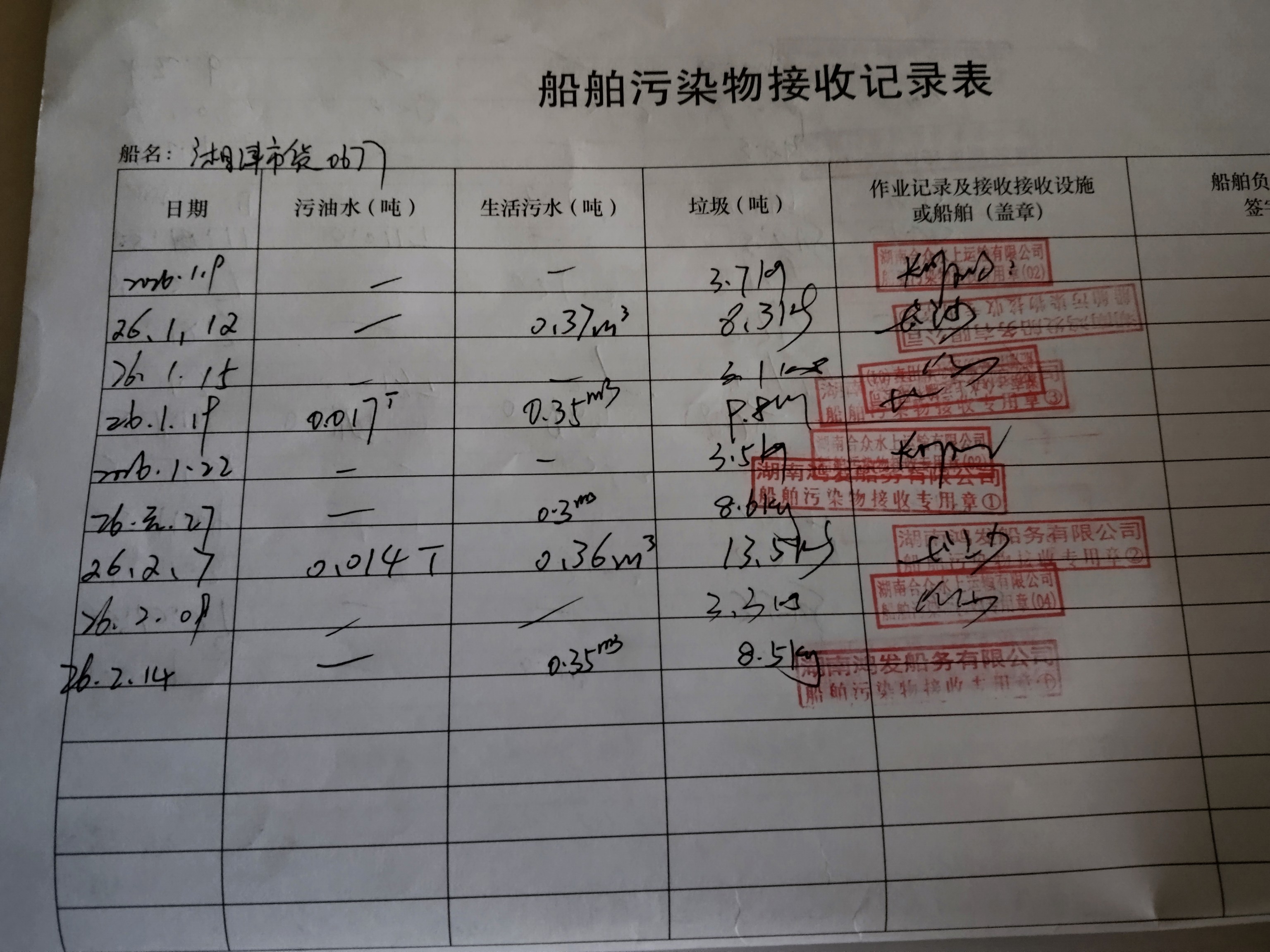 登船台账