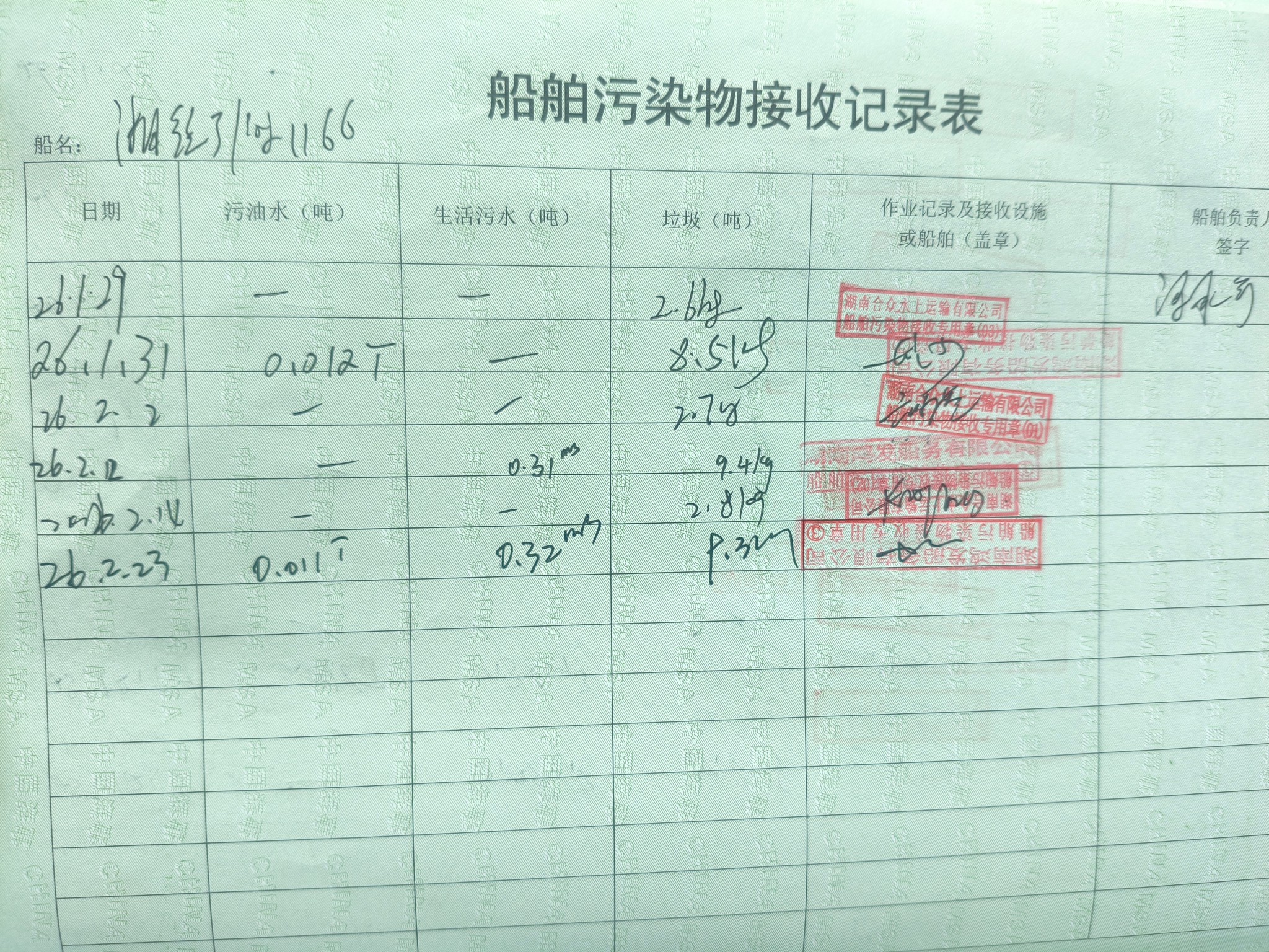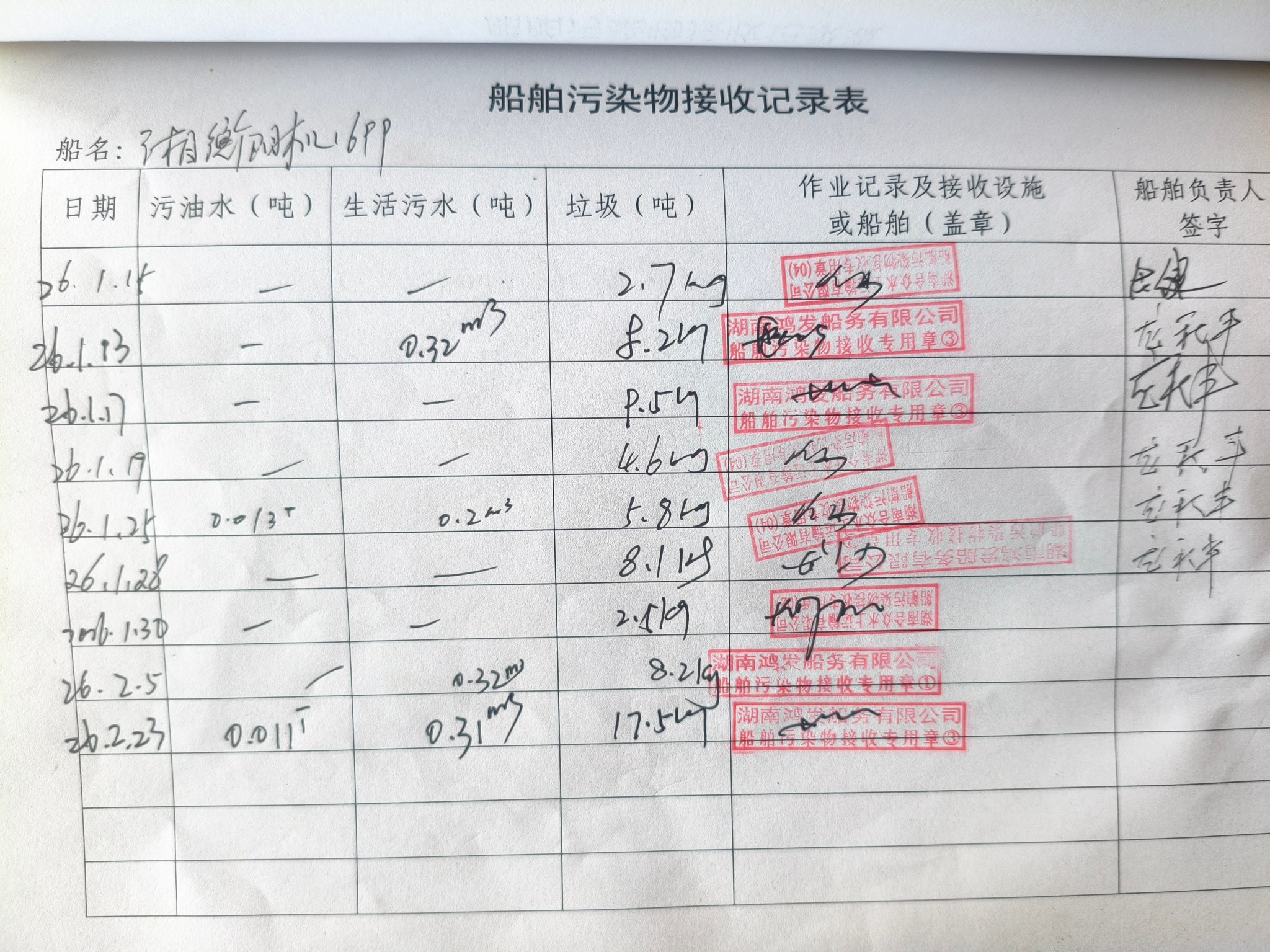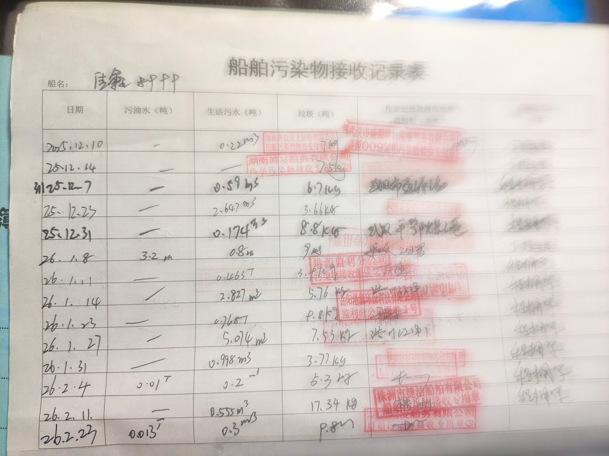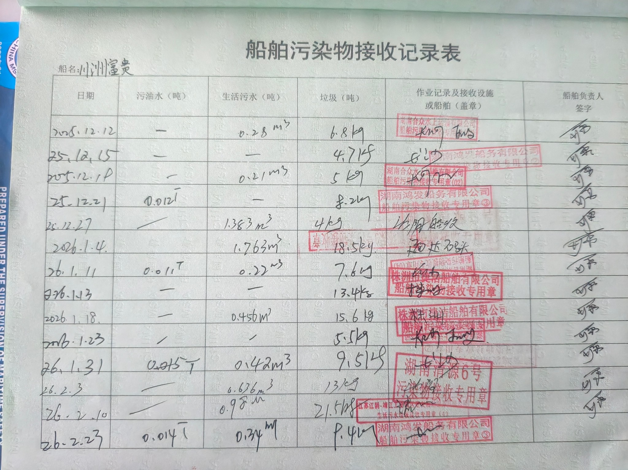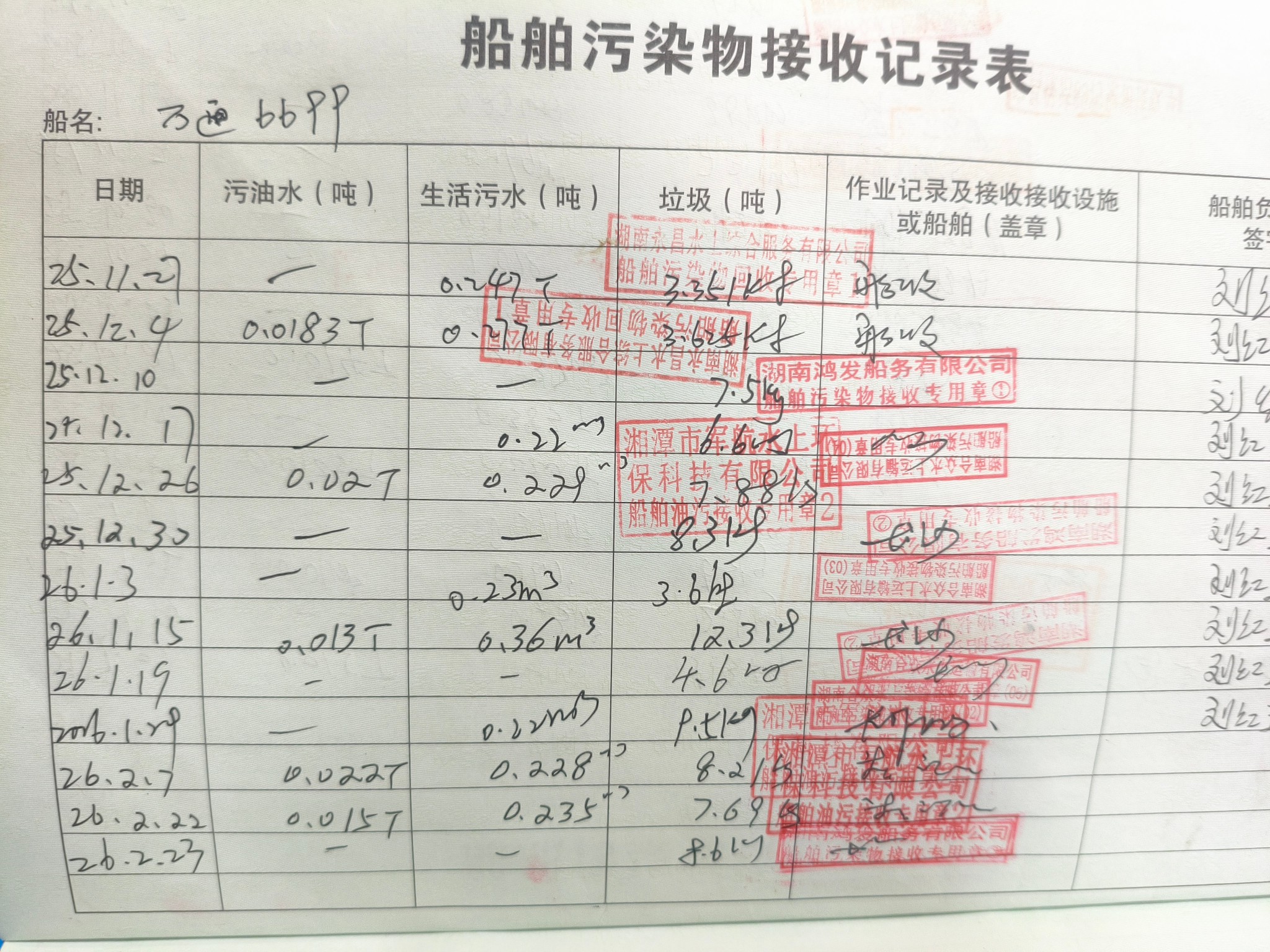 登船台账