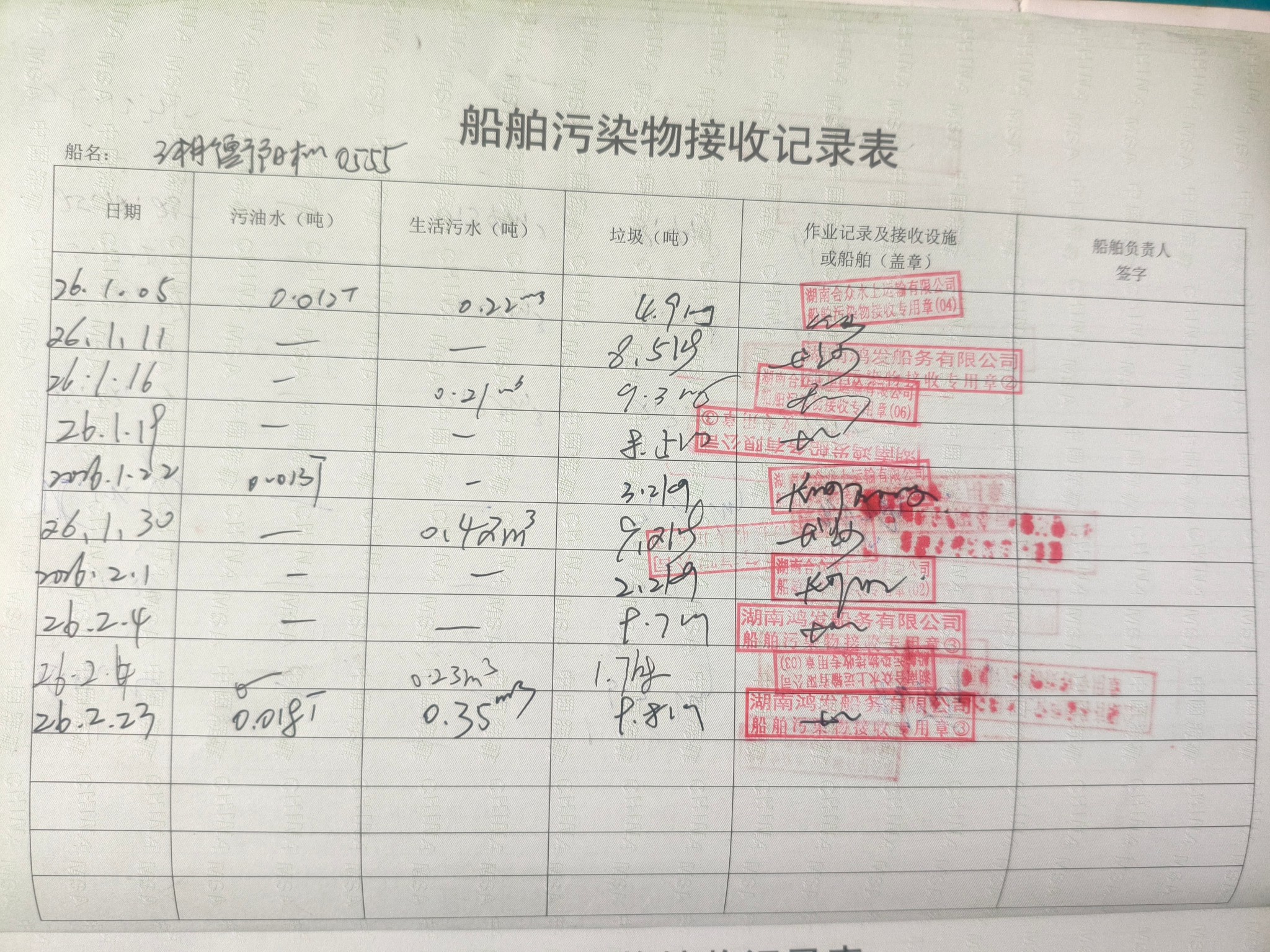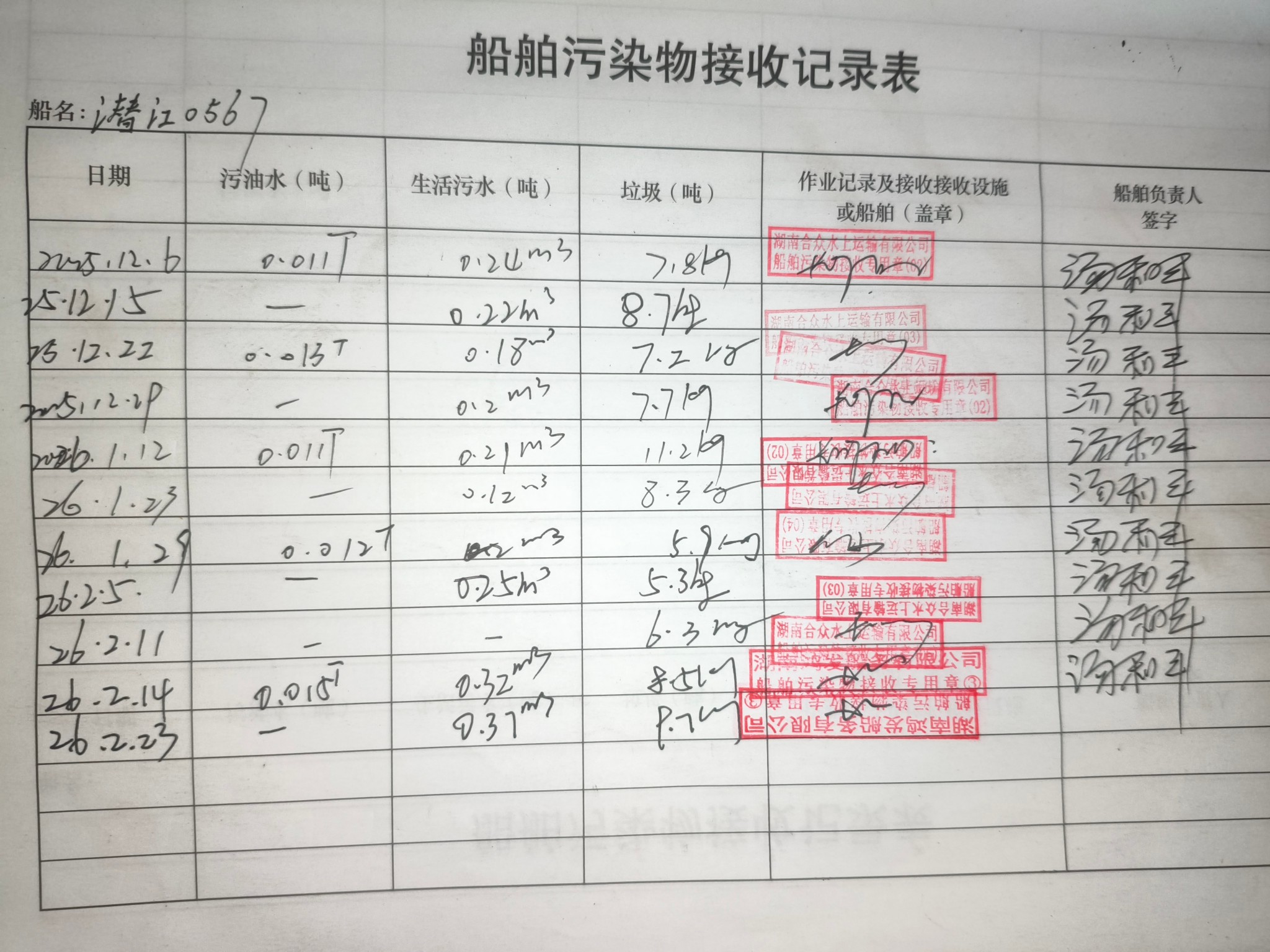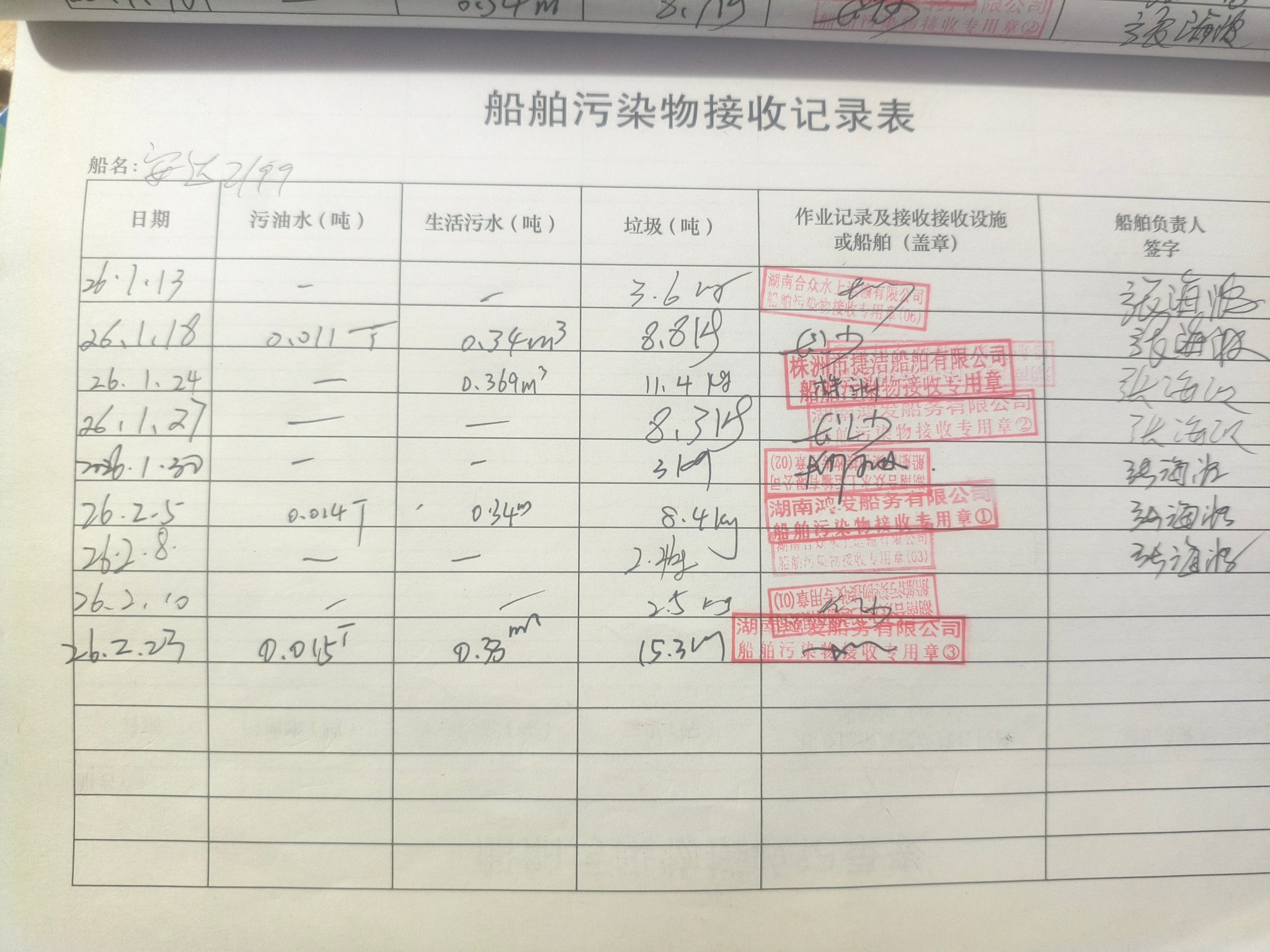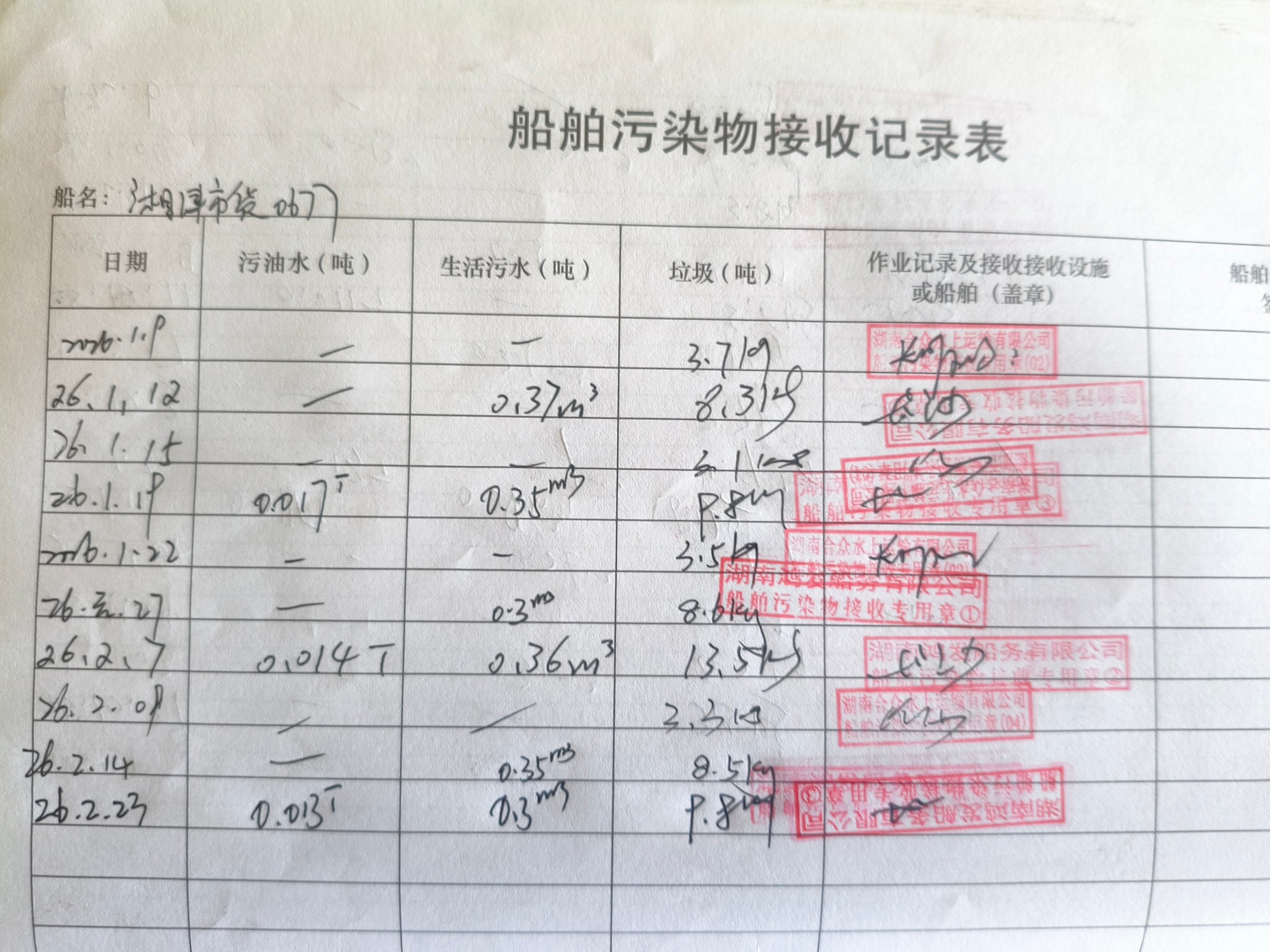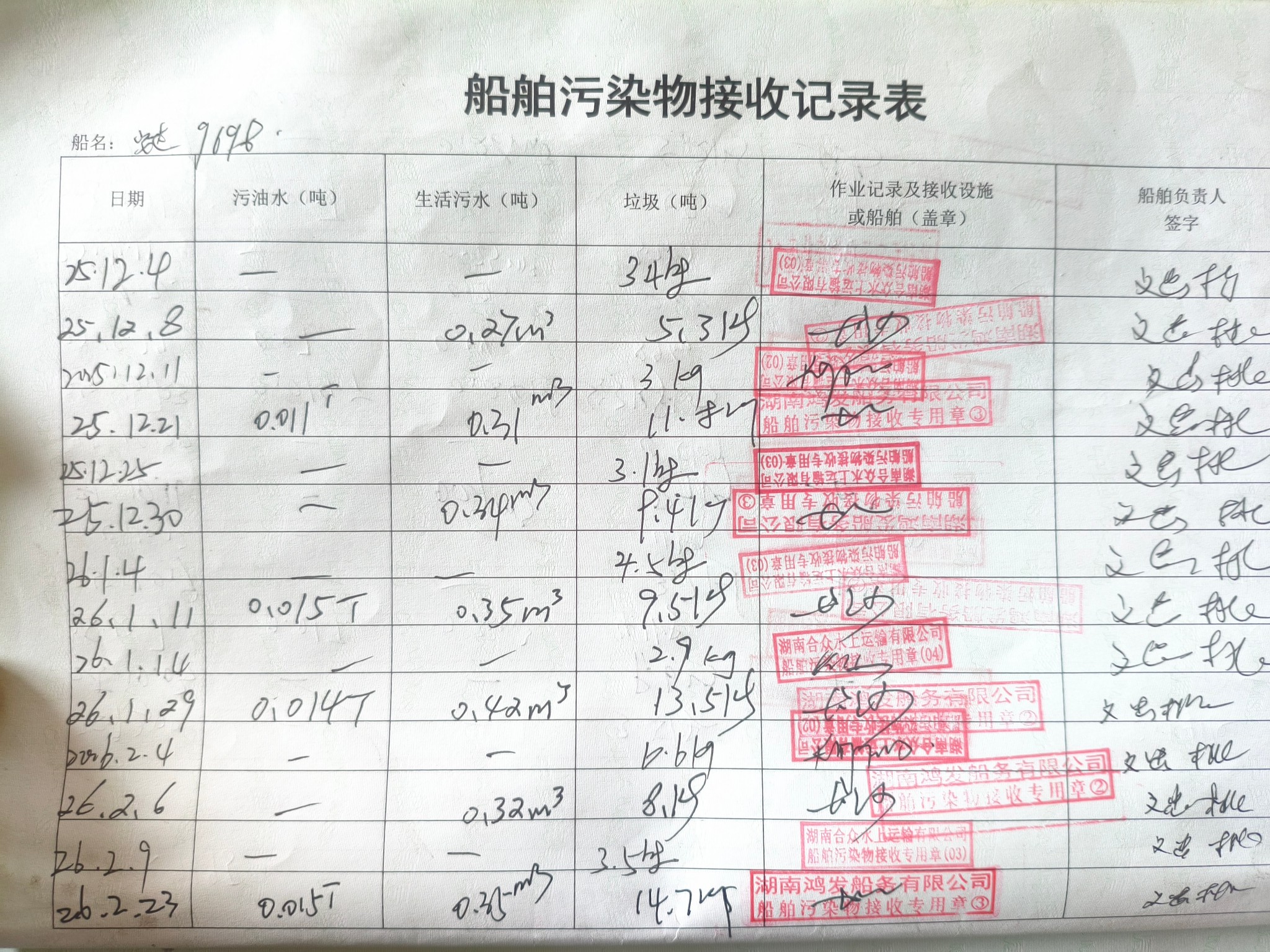 登船台账