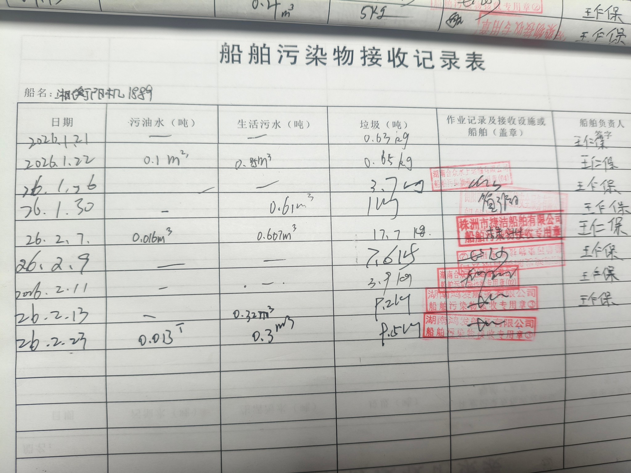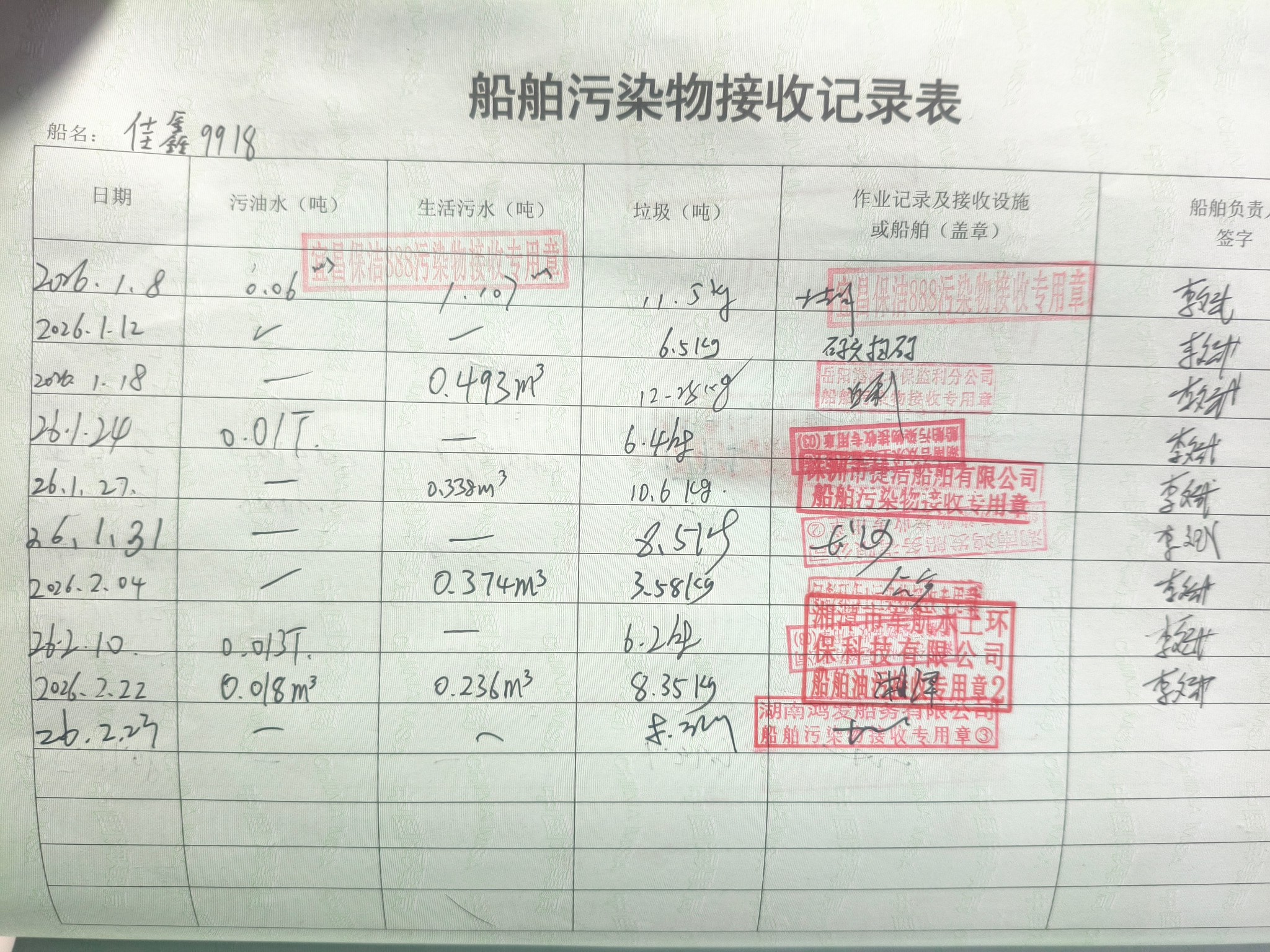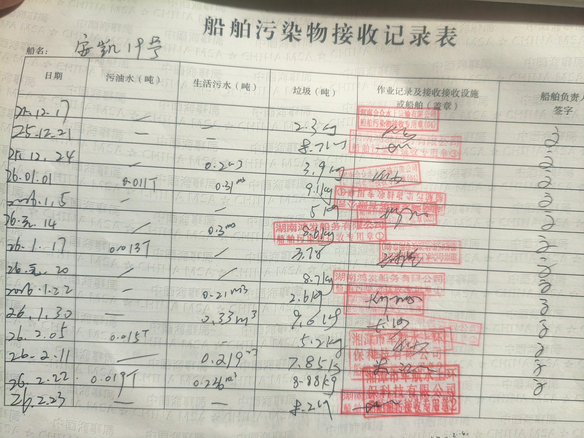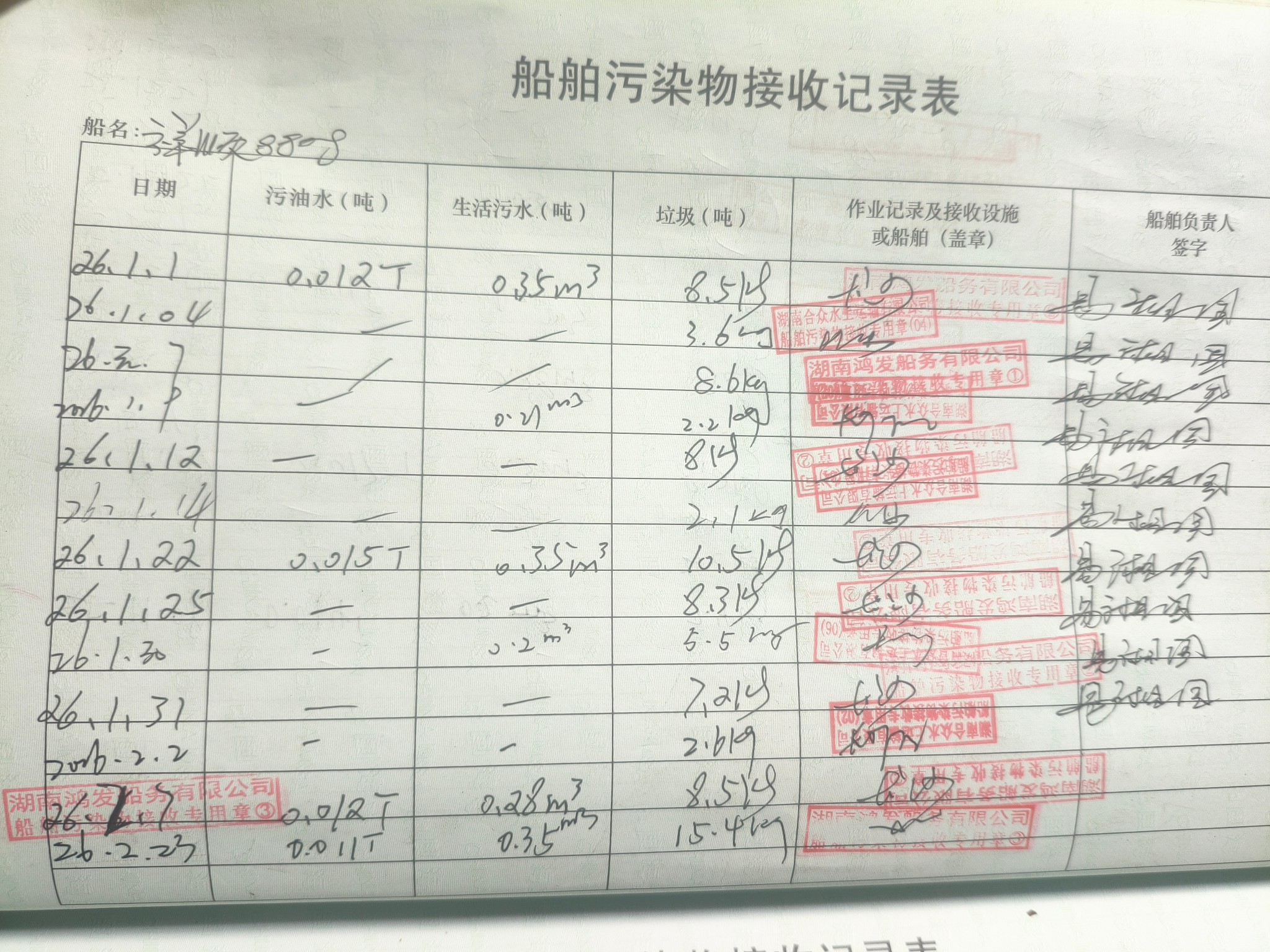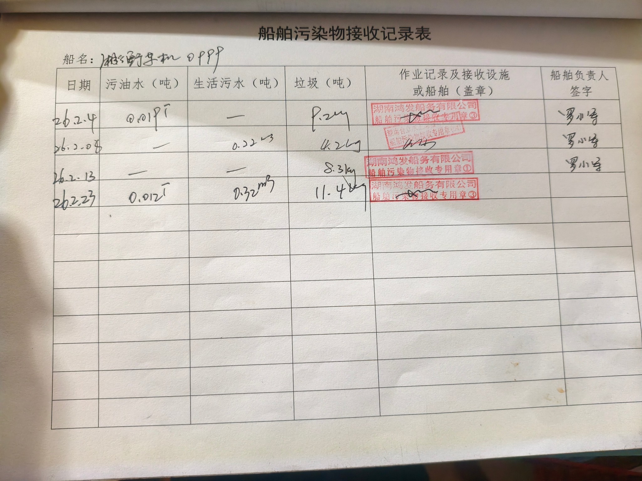 登船台账